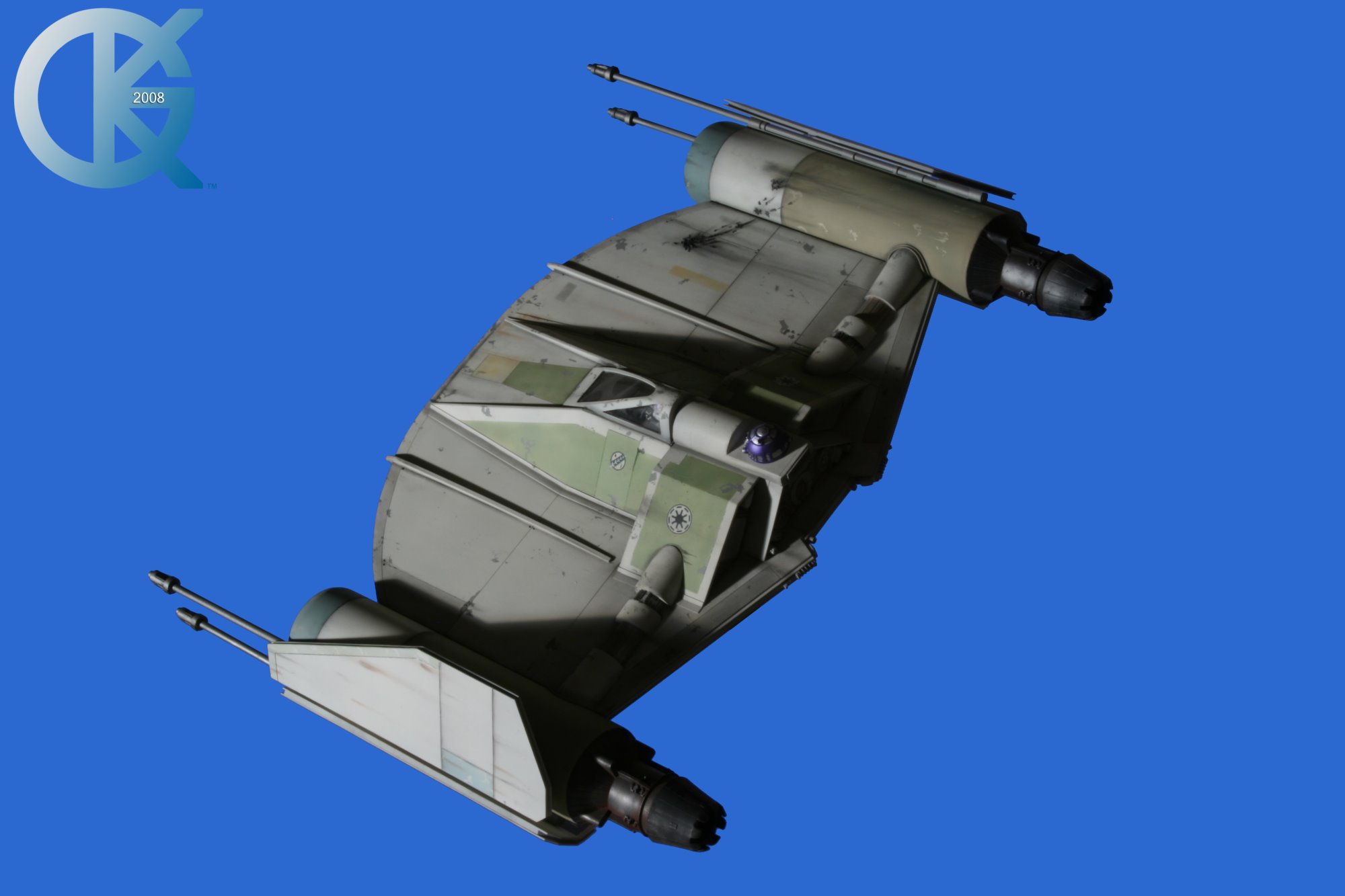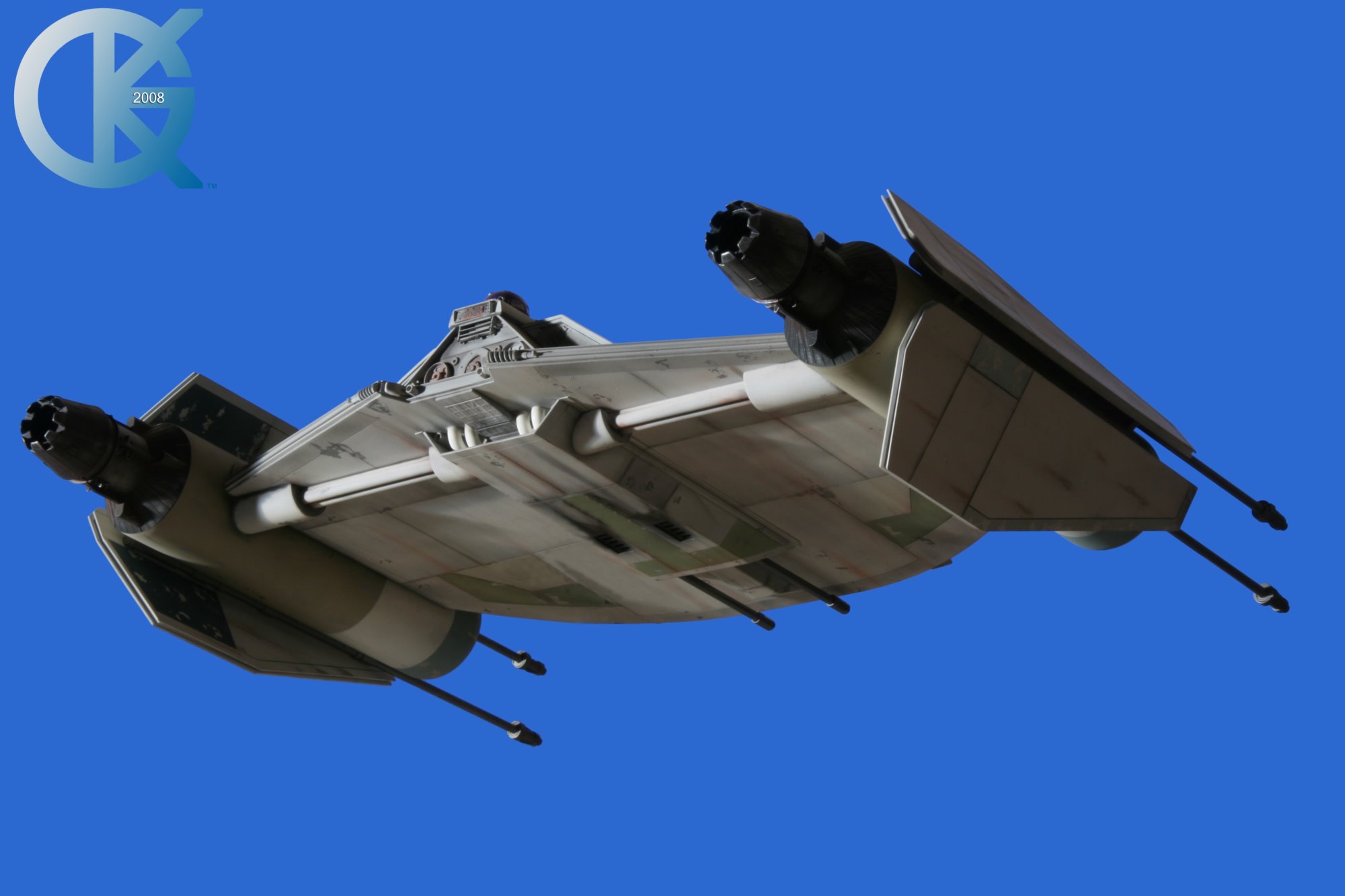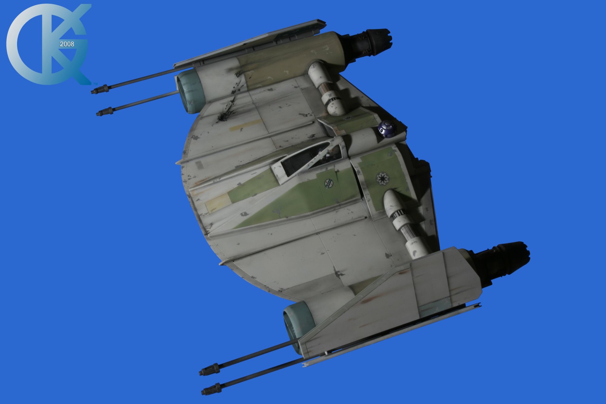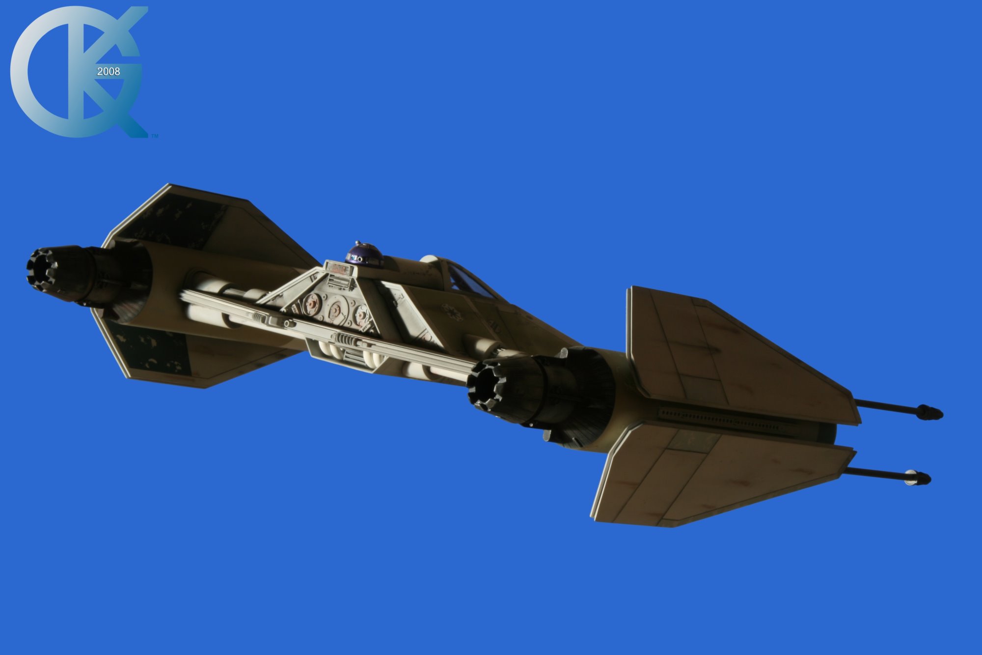 Of the Composite I created back then, utilizing my Blue Screen Photos of the model, I featured it here on Modeler Magic on November 20, 2009. I felt it greatly fit into the films… and I hope you enjoy it. It is called “The Clone Wars”.
