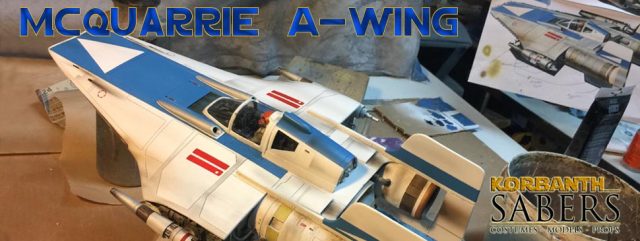 Artist Ralph McQaurrie will always be remembered for his brilliant and imaginative work in the film and art industry. A many of his designs were used for popular science fiction films… of which this one made it into the Star Wars universe. If real, this concept A-Wing is much larger than the actual A-Wing that we saw in Return of the Jedi. When artist Richard Long patterned a kit of it, I wanted one greatly. I eventually was able to get this kit direct from Richard Long, and even arrange the pattern sale to KORBANTH, who may begin selling it soon. That stated… this model was masterfully built up by artist Dan Grumeretz for our display here. Dan took time to really follow what McQuarrie had painted. In recent years, the series Star Wars Rebels began using this design, albeit slightly different, against the growing Imperial menace. Needless to say, even though that show is amazing, I wanted this to be a tribute to Ralph McQuarrie, and as such… Dan made it so. He slightly modified this model in panel lines, and even shape. The front nose in the paintings is not straight, but V-shaped. Even the new toy missed that one. I am very pleased with Dan’s work on this. I believe Ralph would have liked this. Ble Screen Photos will soon be shown.