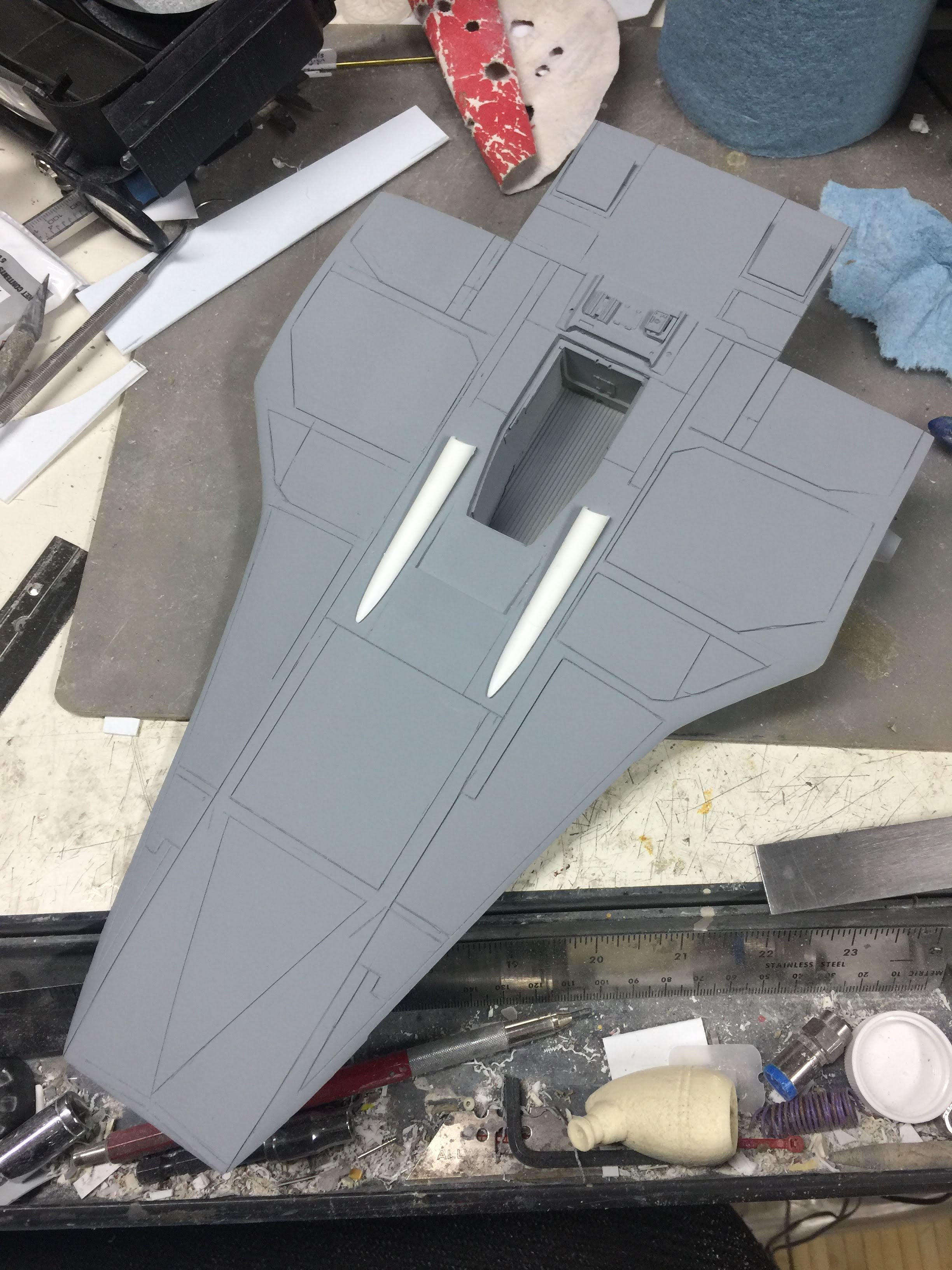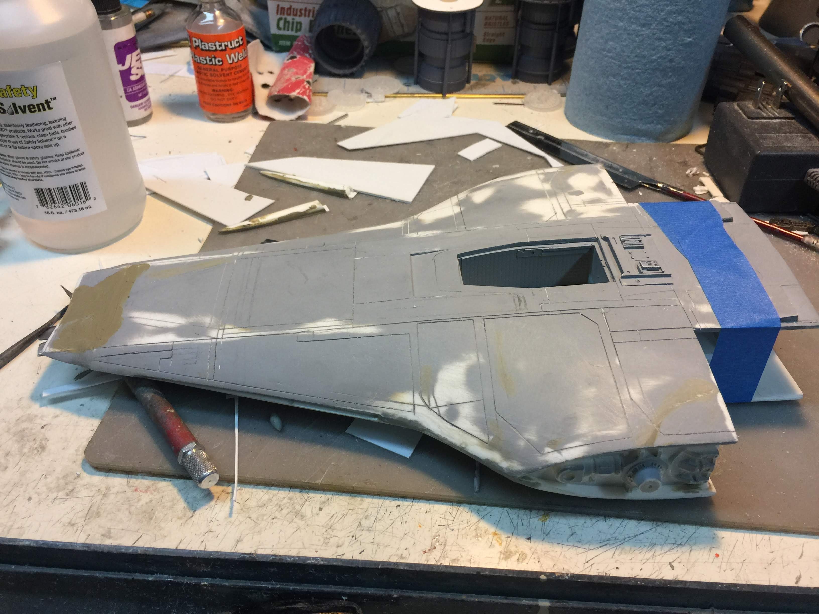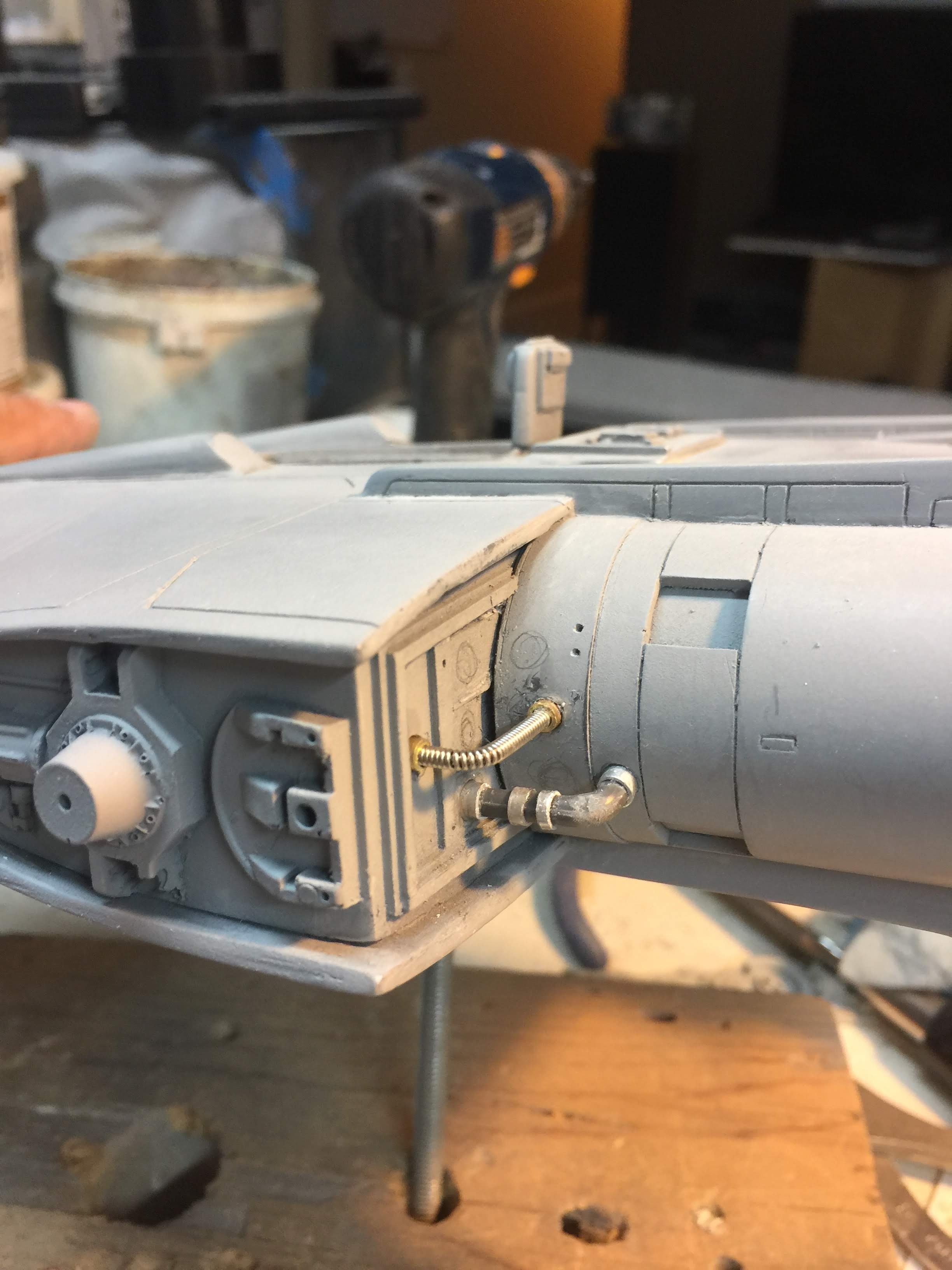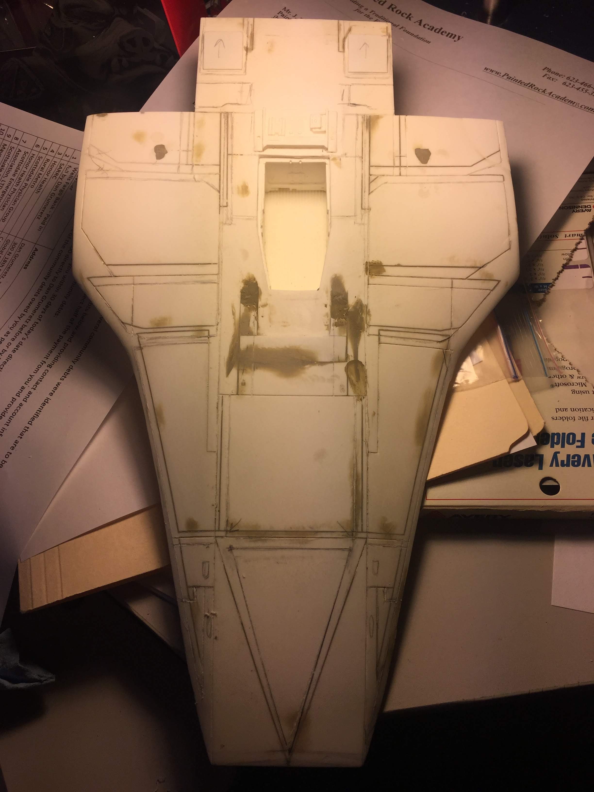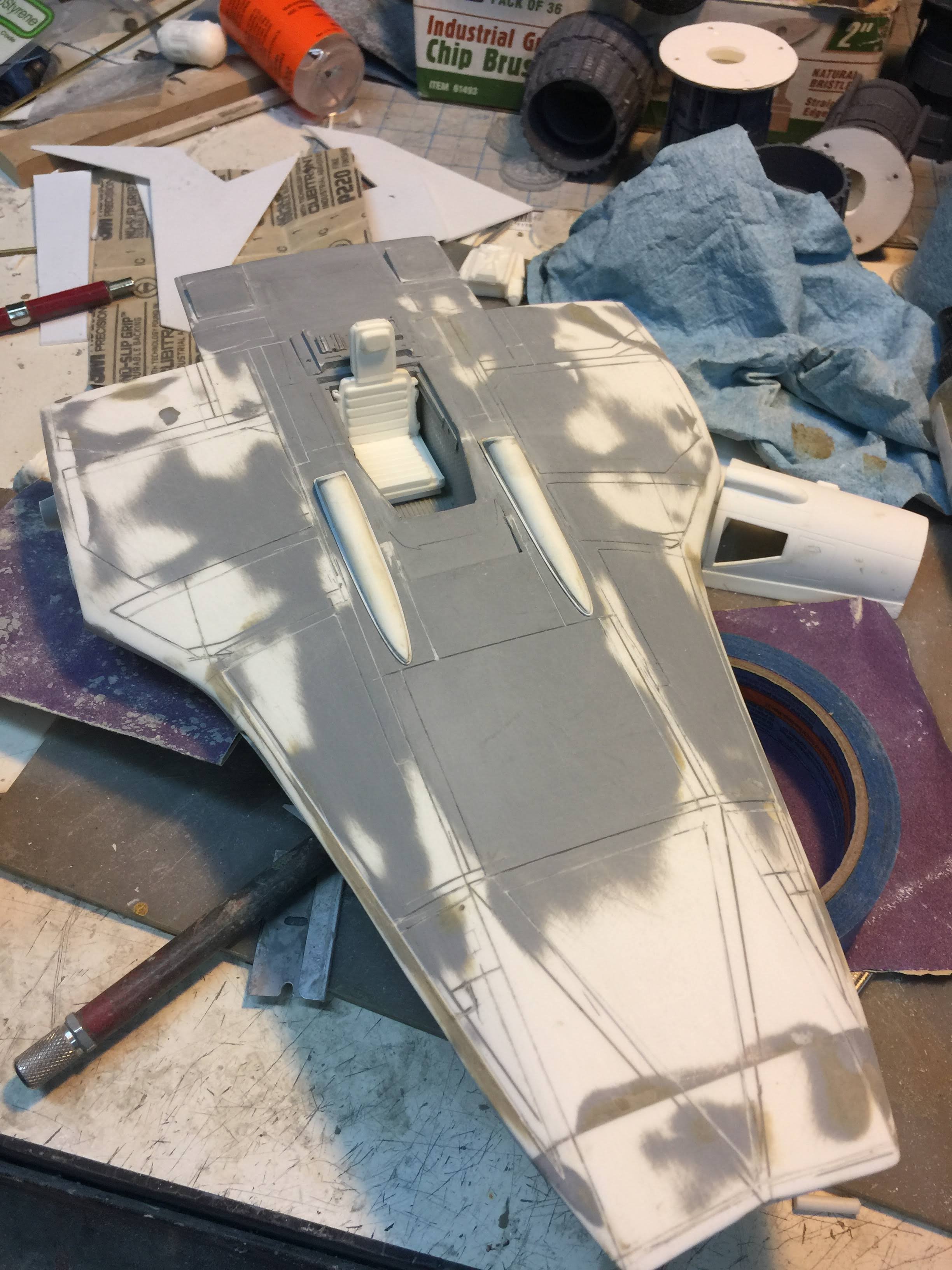 Artist Ralph McQaurrie will always be remembered for his brilliant and imaginative work in the film and art industry. A many of his designs were used for popular science fiction films… of which this one made it into the Star Wars universe. If real, this concept A-Wing is much larger than the actual A-Wing that we saw in Return of the Jedi. When artist Richard Long patterned a kit of it, I wanted one greatly. I eventually was able to get this kit direct from Richard Long, and even arrange the pattern sale to KORBANTH, who may begin selling it soon. That stated… this model was masterfully built up by artist Dan Grumeretz for our display here. Dan took time to really follow what McQuarrie had painted. In recent years, the series Star Wars Rebels began using this design, albeit slightly different, against the growing Imperial menace. Needless to say, even though that show is amazing, I wanted this to be a tribute to Ralph McQuarrie, and as such… Dan made it so. He slightly modified this model in panel lines, and even shape. The front nose in the paintings is not straight, but V-shaped. Even the new toy missed that one. I am very pleased with Dan’s work on this. I believe Ralph would have liked this. Ble Screen Photos will soon be shown.