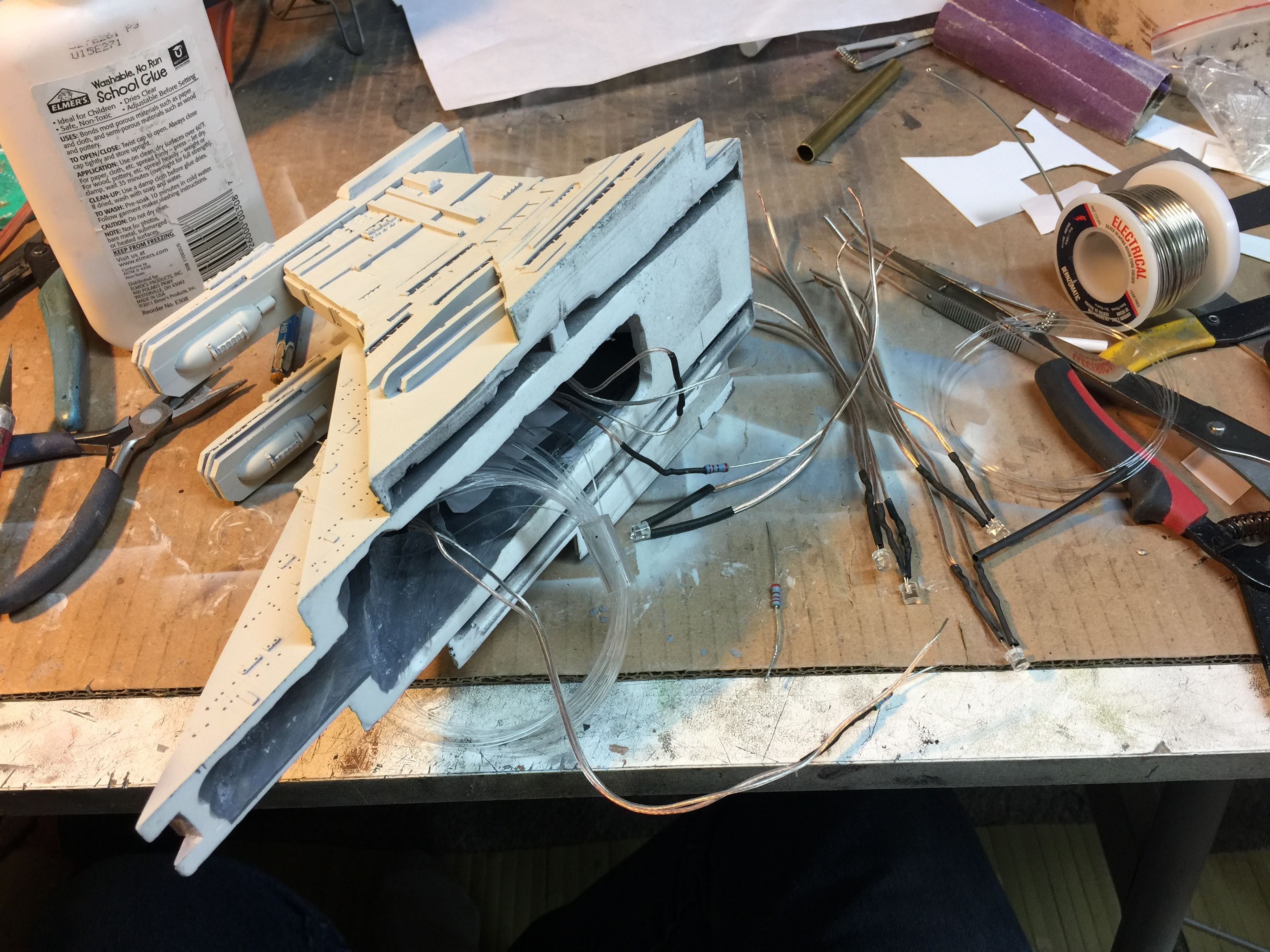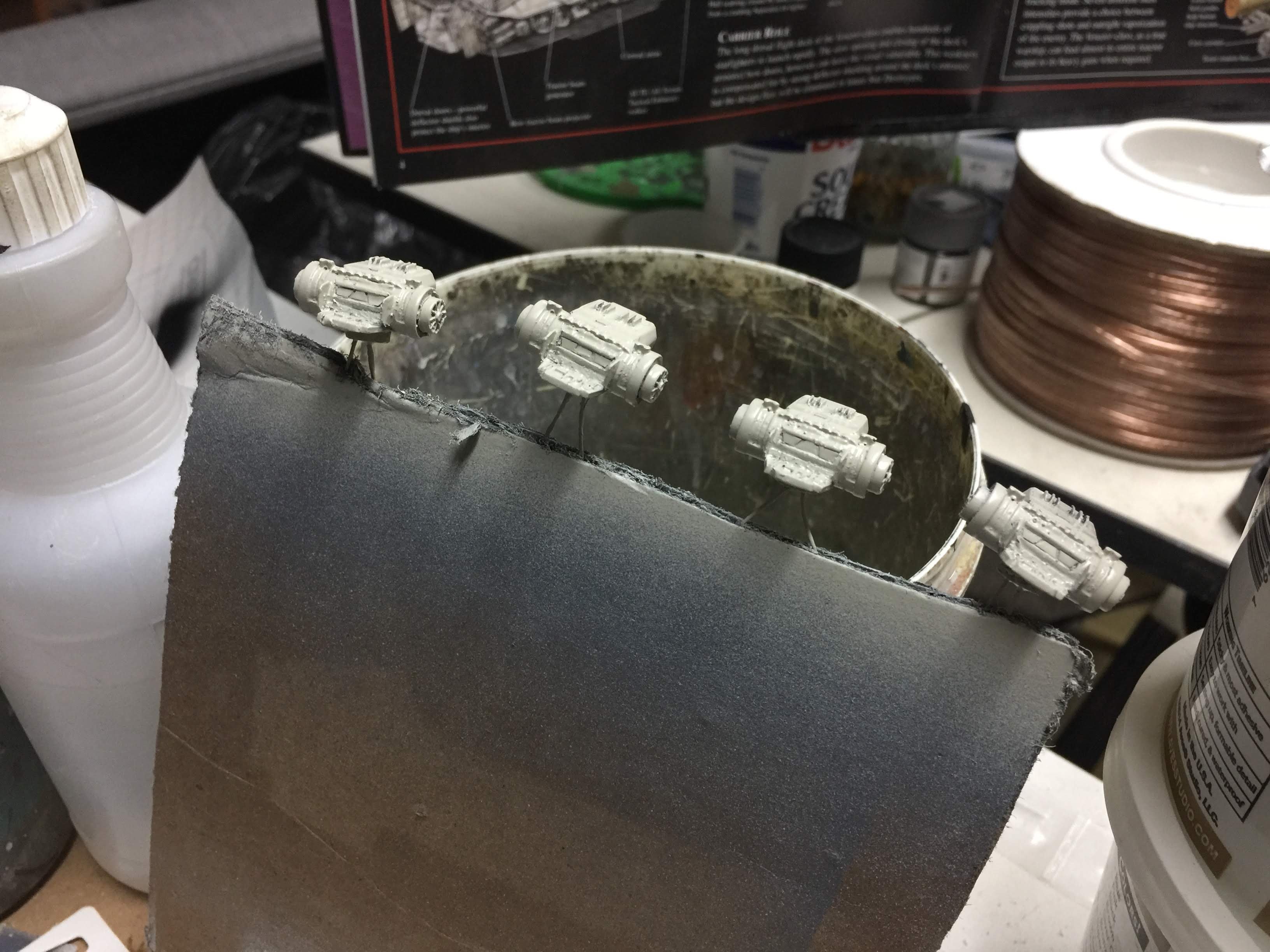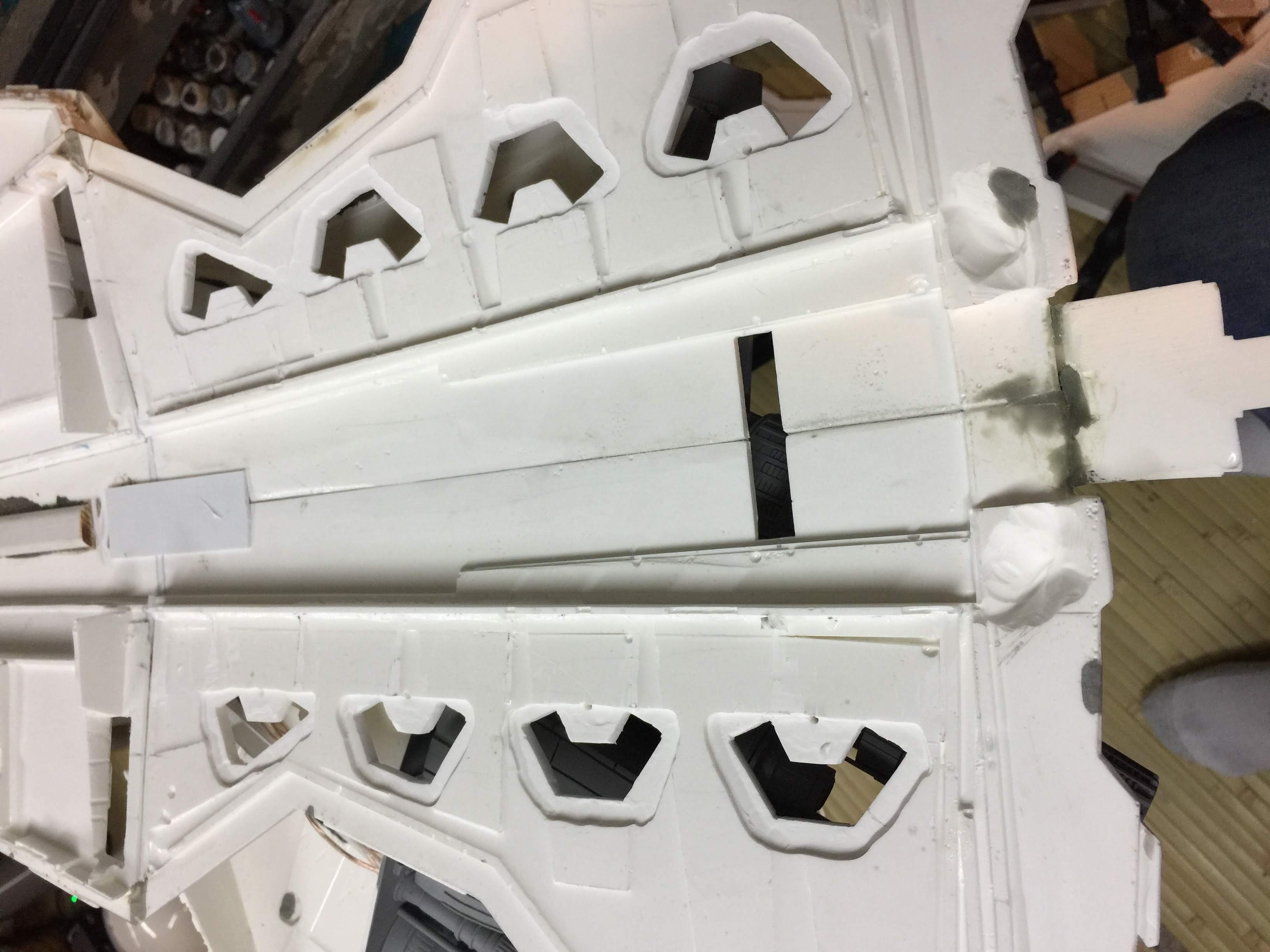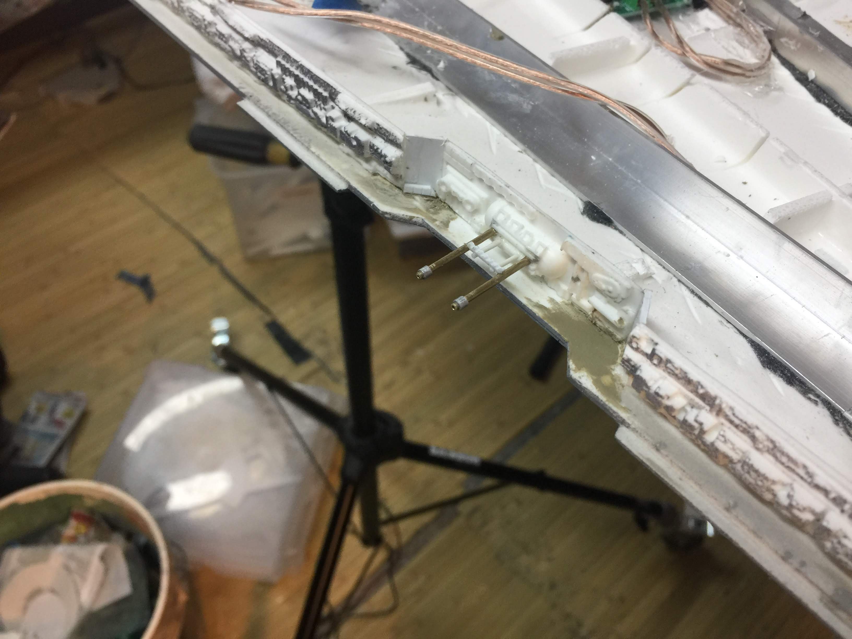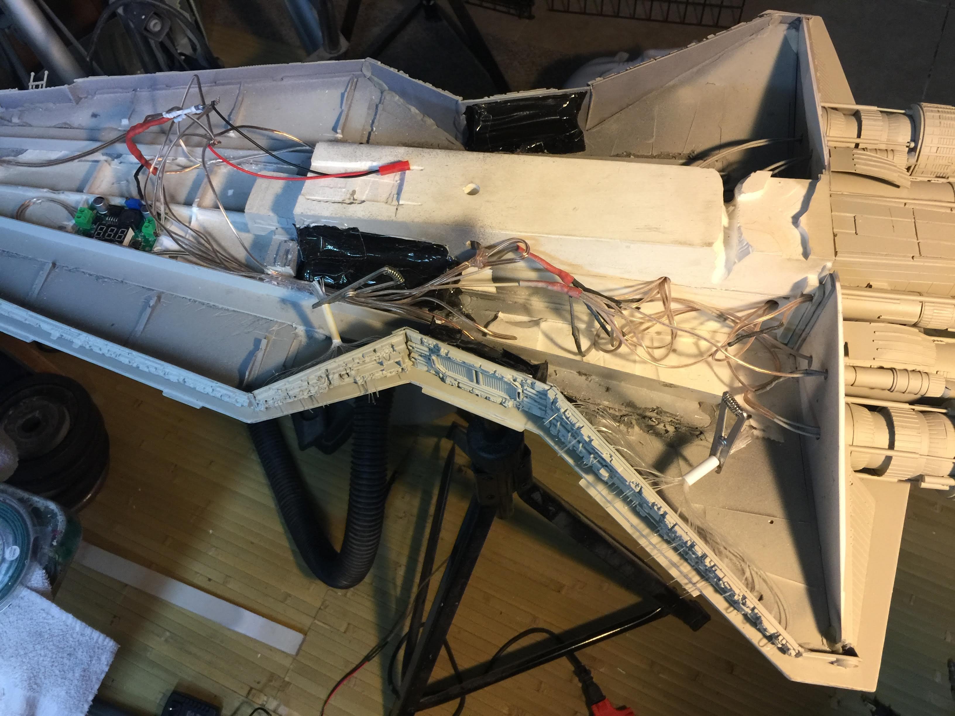 There were many things done to these two kits to make them look like they do. Many modifications to make then each look like what we viewed in the Revenge of the Sith. The kit was patterned after the Revell model, which has been stated as having been created with the digital files. Artist Alfred Wong did a magnificent job making these patterns a much larger version of that kit. That stated, I wanted these to be as movie accurate (from what I viewed) as we could make them at this size (Which when finished measured 40.5 inches… ~1/1000). I state that because we also have a 6 foot Venator in the wings just waiting to be pushed to the bench.