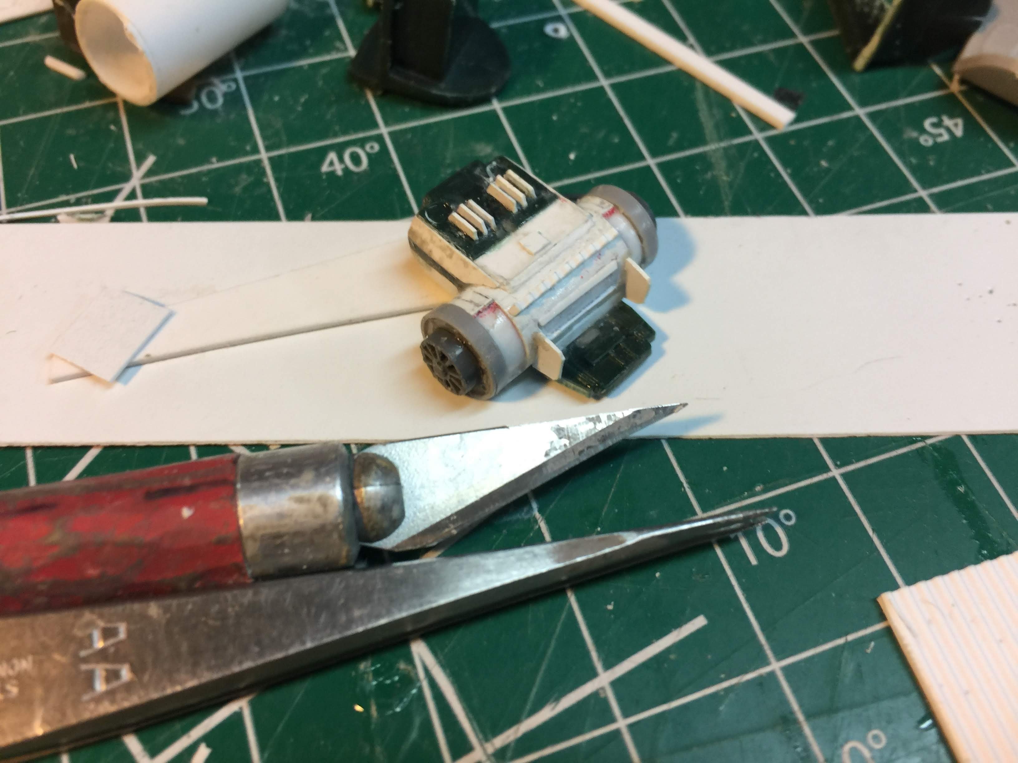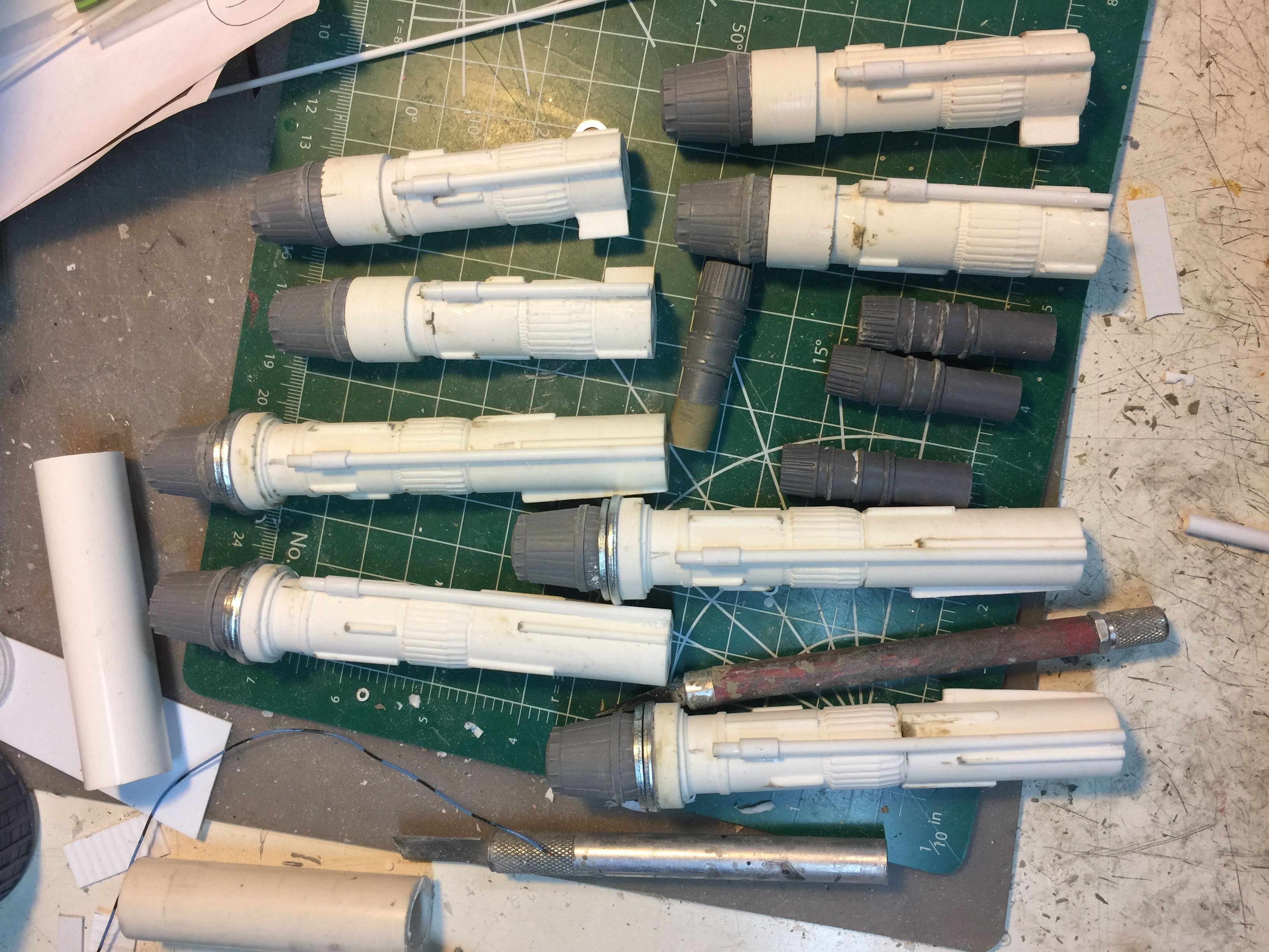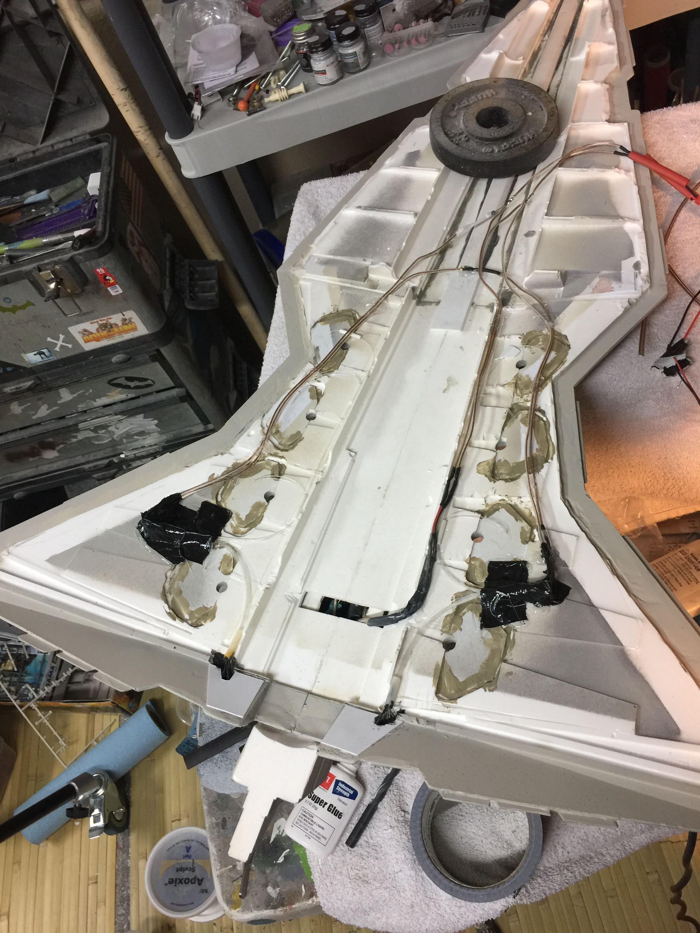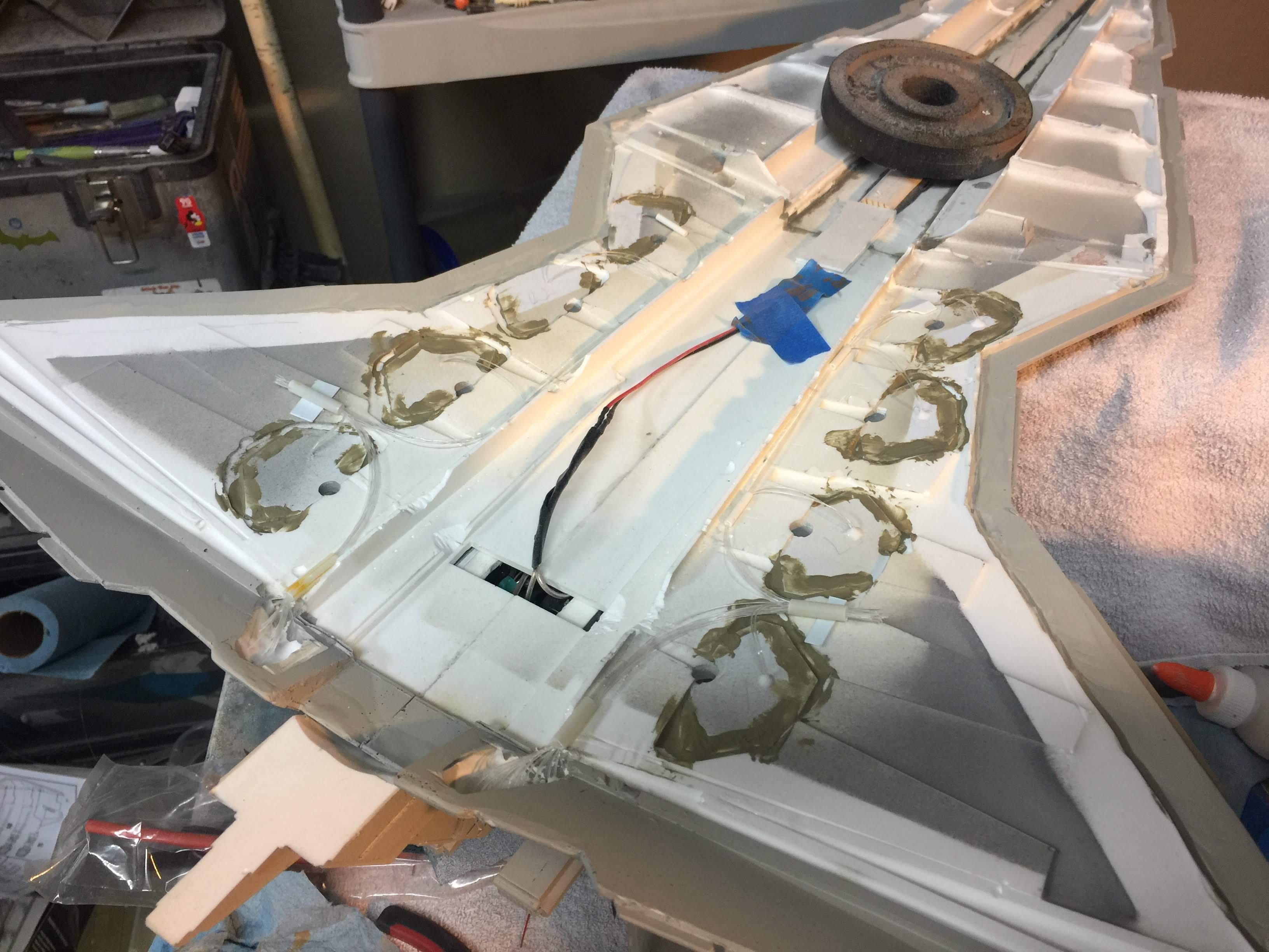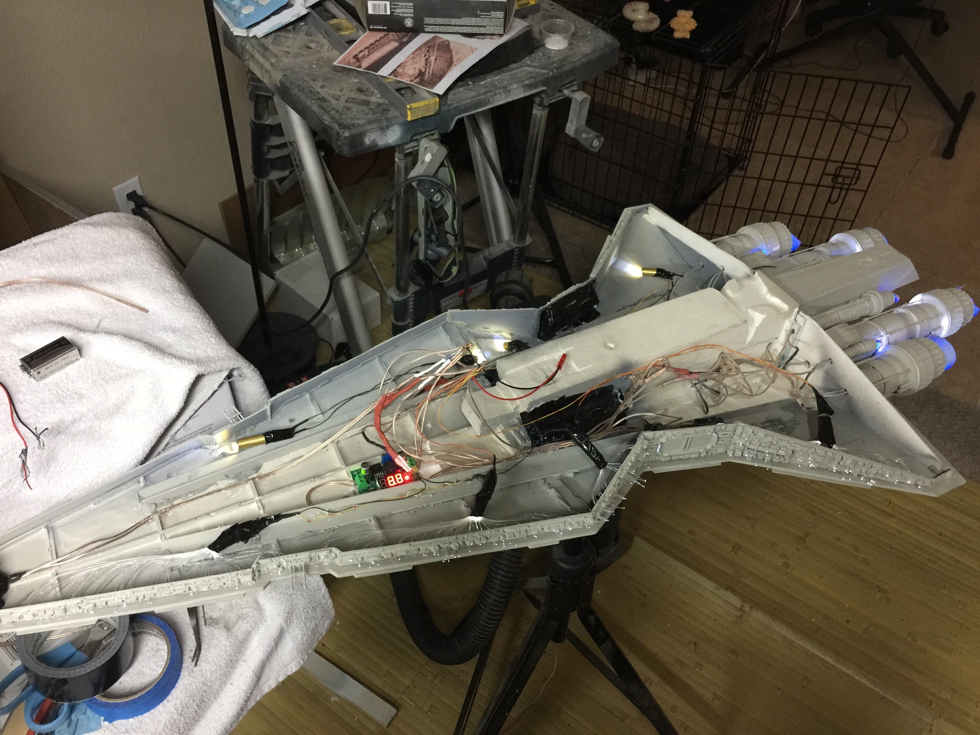 There were many things done to these two kits to make them look like they do. Many modifications to make then each look like what we viewed in the Revenge of the Sith. The kit was patterned after the Revell model, which has been stated as having been created with the digital files. Artist Alfred Wong did a magnificent job making these patterns a much larger version of that kit. That stated, I wanted these to be as movie accurate (from what I viewed) as we could make them at this size (Which when finished measured 40.5 inches… ~1/1000). I state that because we also have a 6 foot Venator in the wings just waiting to be pushed to the bench.