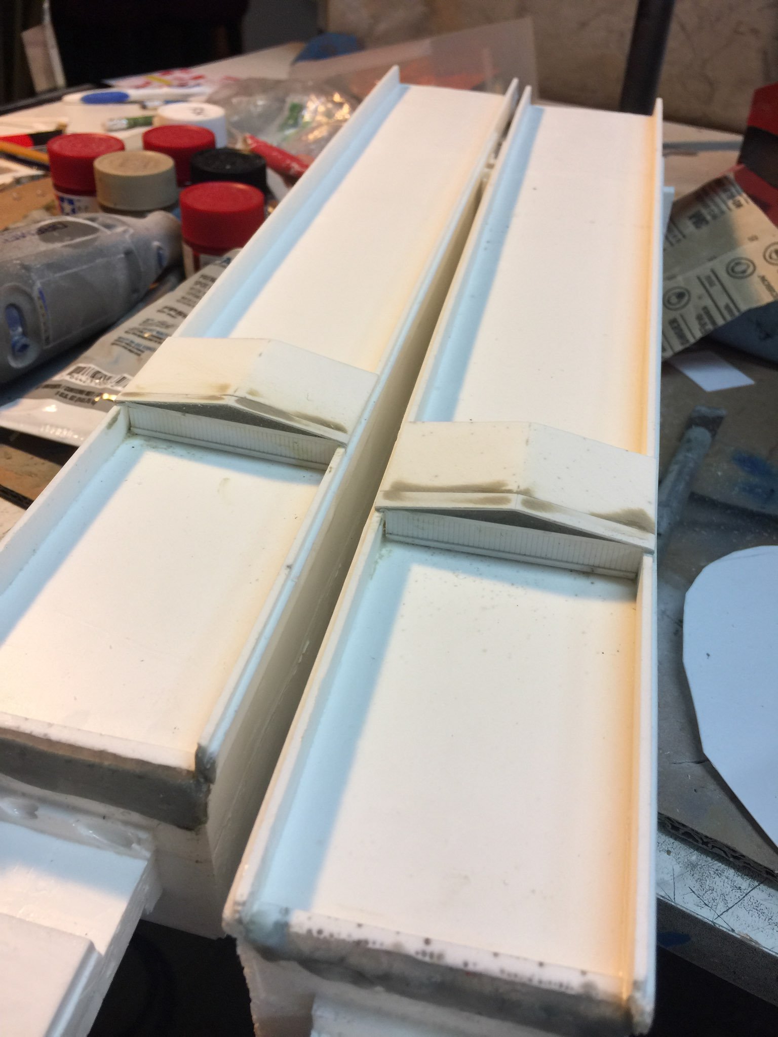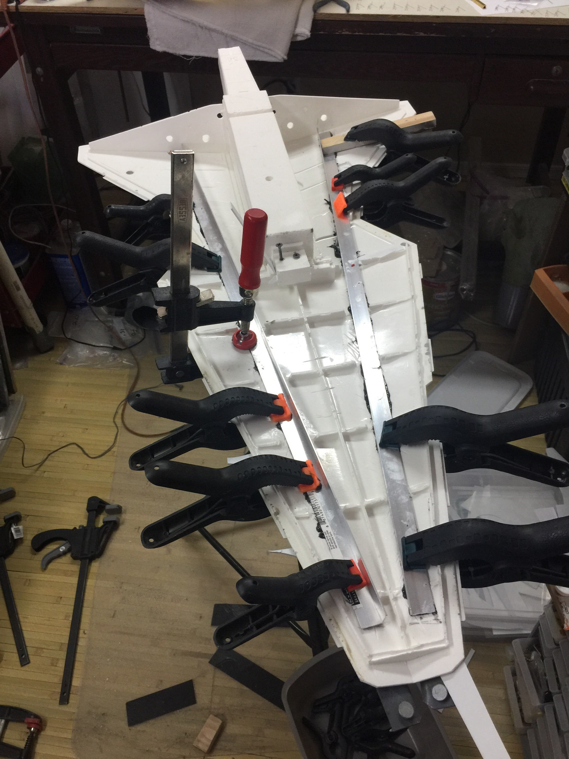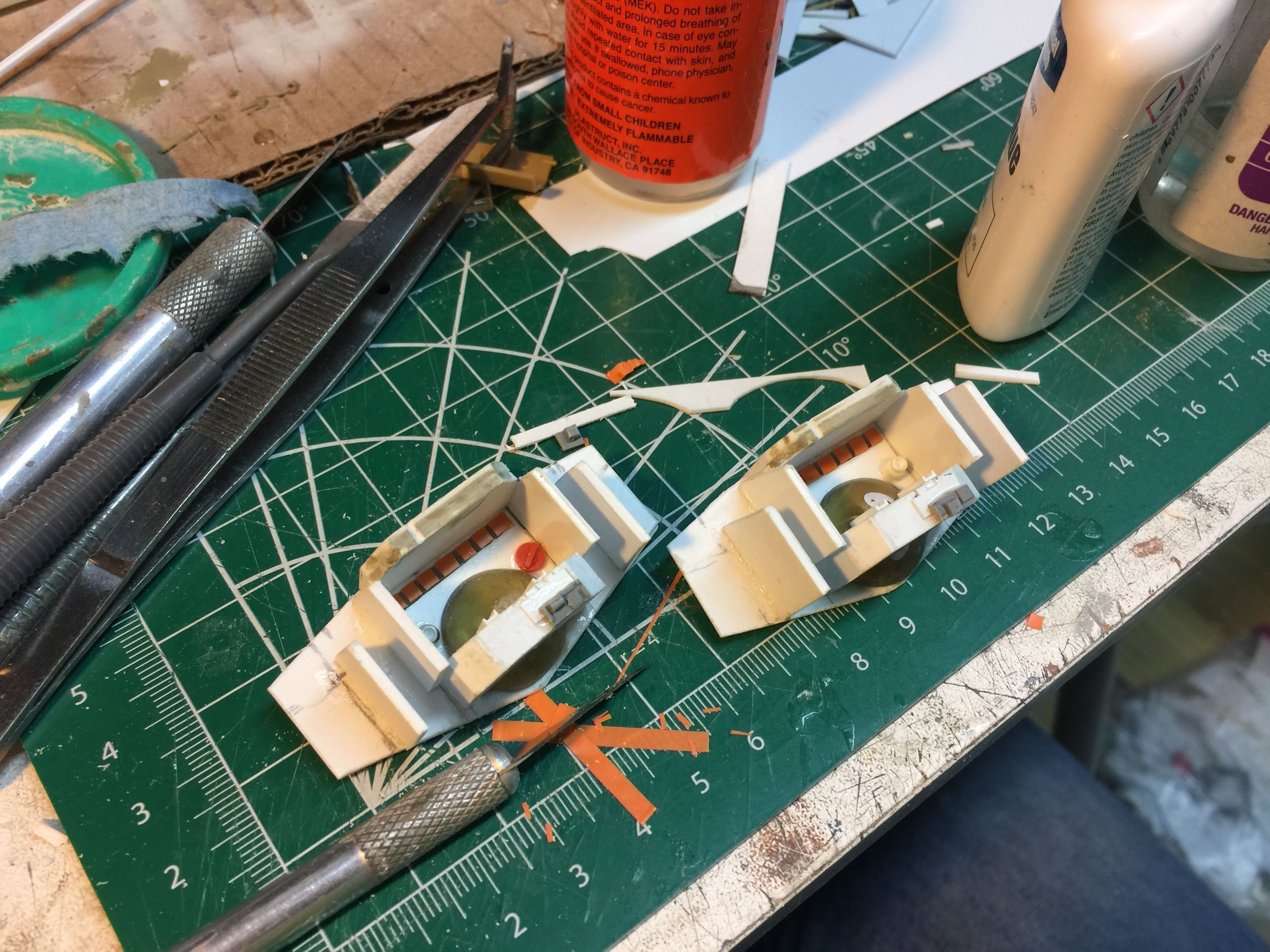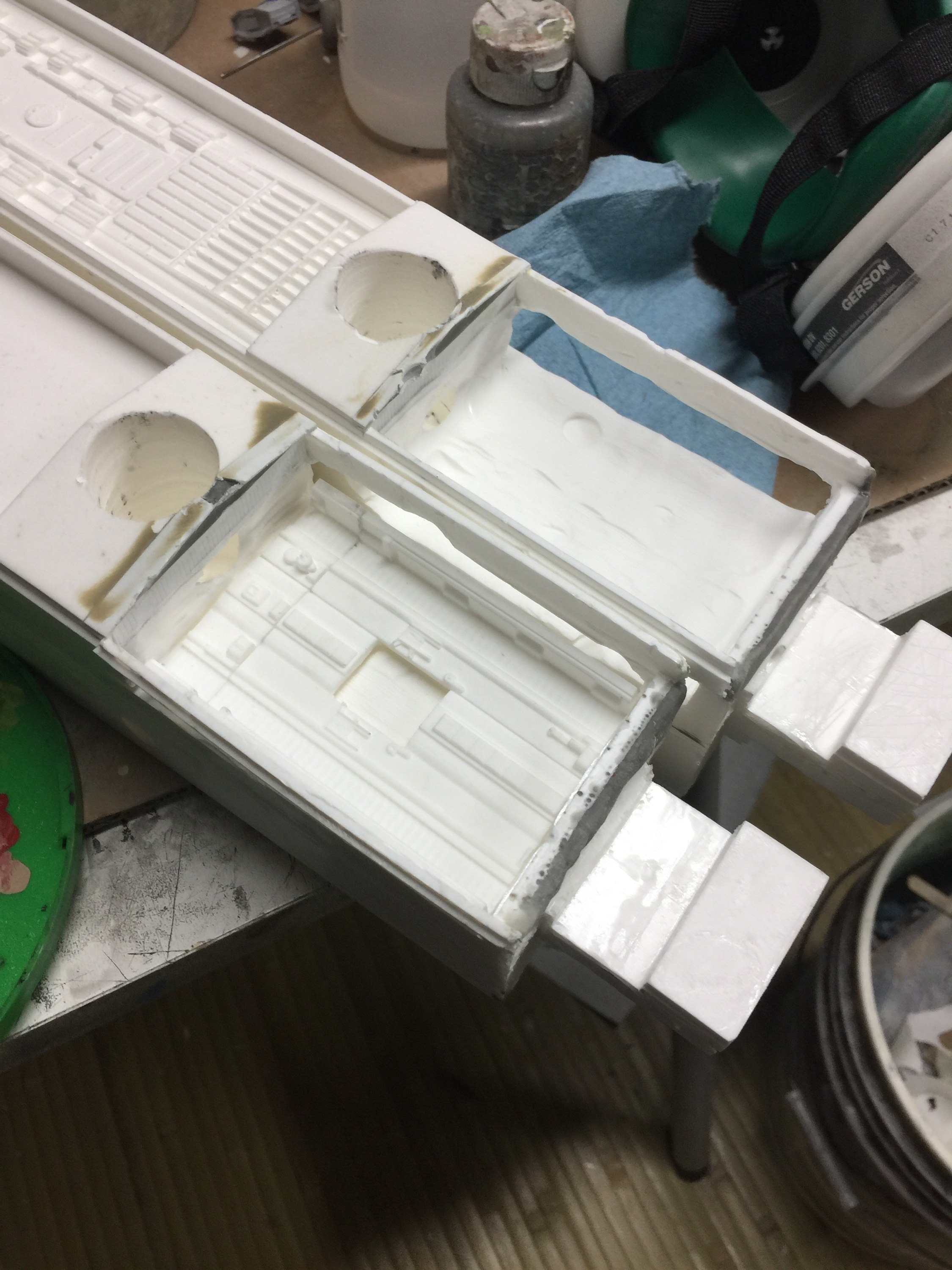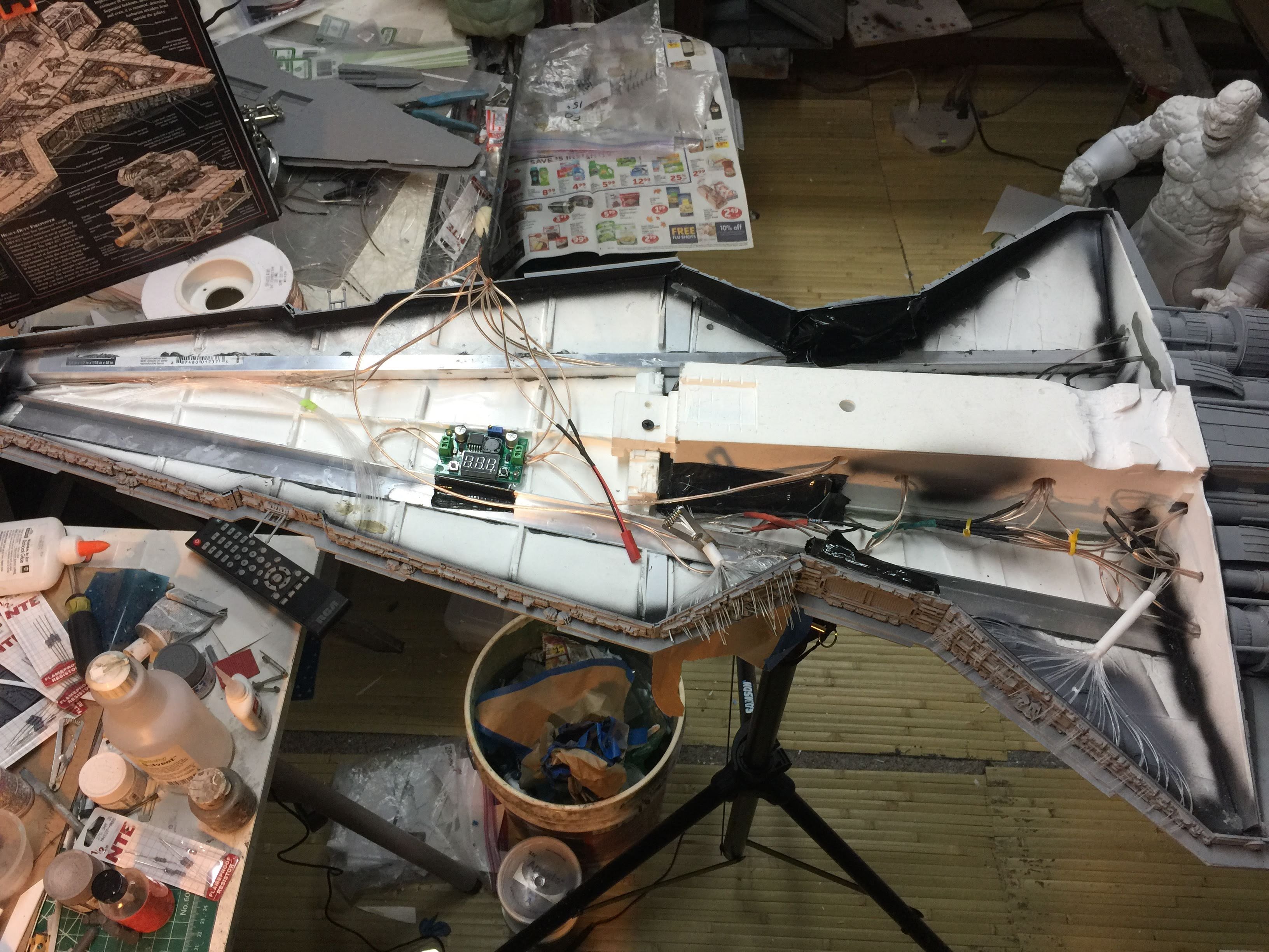 There were many things done to these two kits to make them look like they do. Many modifications to make then each look like what we viewed in the Revenge of the Sith. The kit was patterned after the Revell model, which has been stated as having been created with the digital files. Artist Alfred Wong did a magnificent job making these patterns a much larger version of that kit. That stated, I wanted these to be as movie accurate (from what I viewed) as we could make them at this size (Which when finished measured 40.5 inches… ~1/1000). I state that because we also have a 6 foot Venator in the wings just waiting to be pushed to the bench.