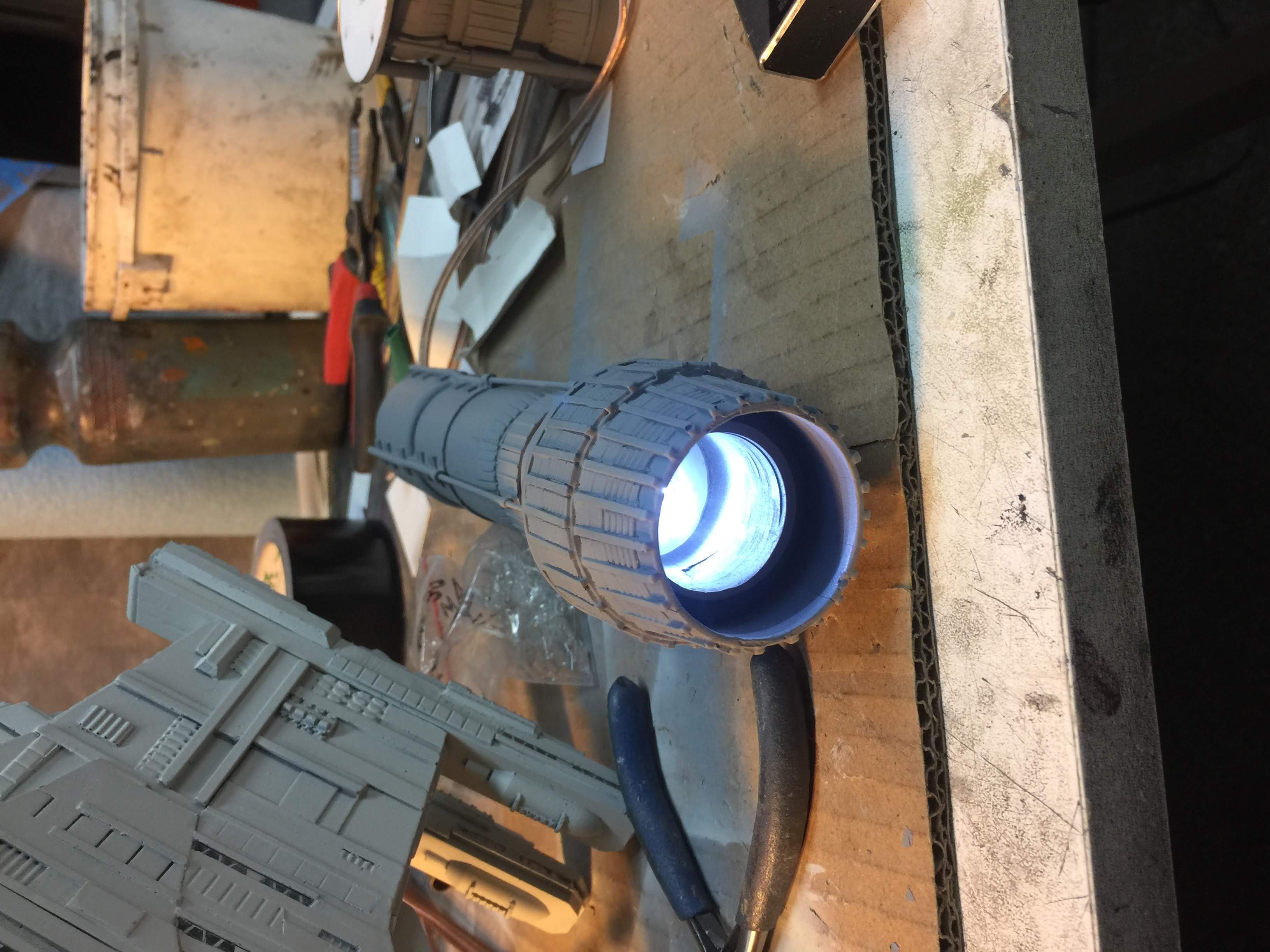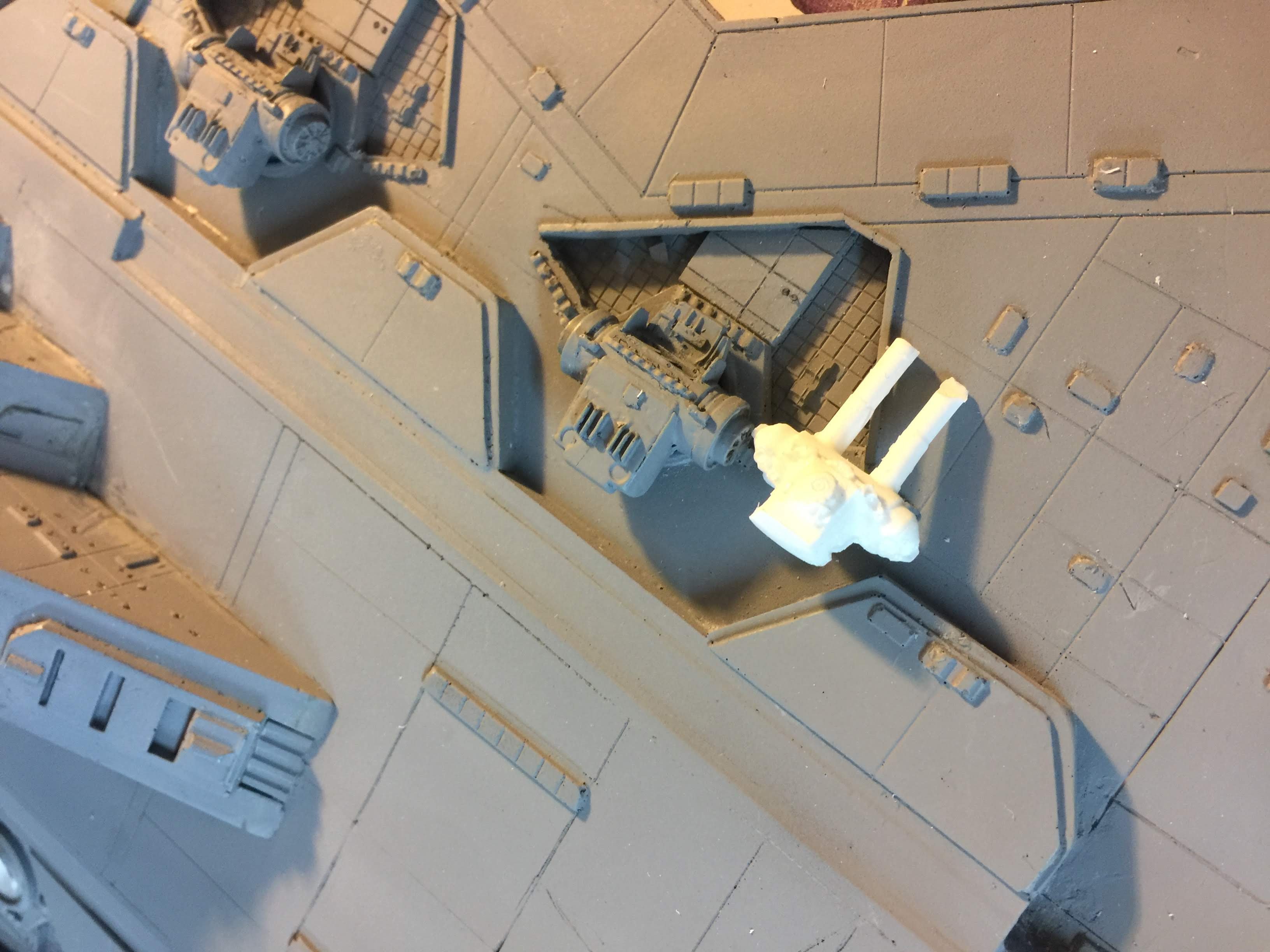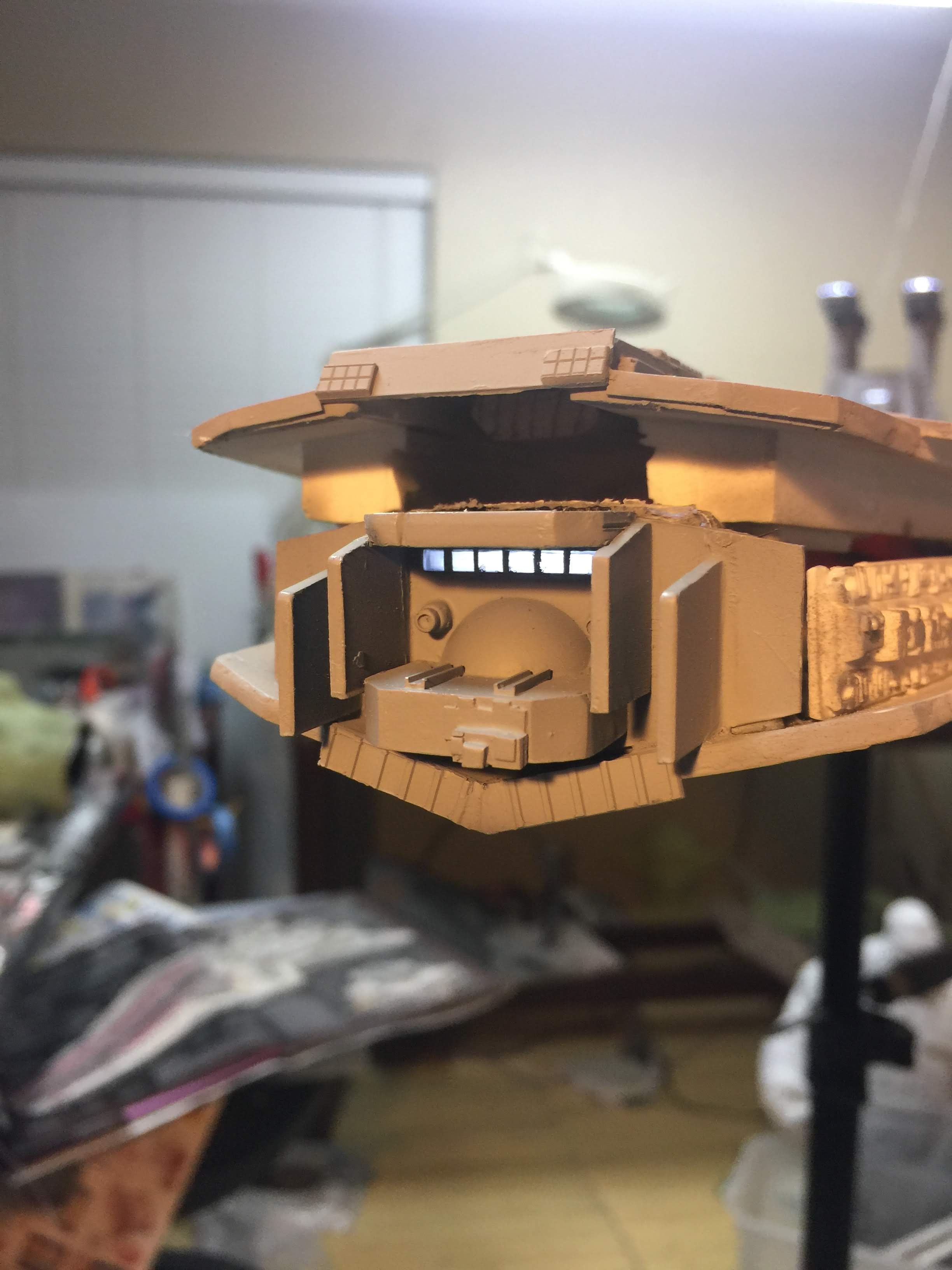 As stated above, much work went into the modifications of the bridge, engine area, the belly docking area, the guns, the front, and much more. Even the tiny gun turrets were added in the trenches. I could go over all the changes, but that would require quite a bit of reading. I leave it to your capable eyes to determine what has been changed, and added. Know that the new KORBANTH kits themselves are quite excellent.