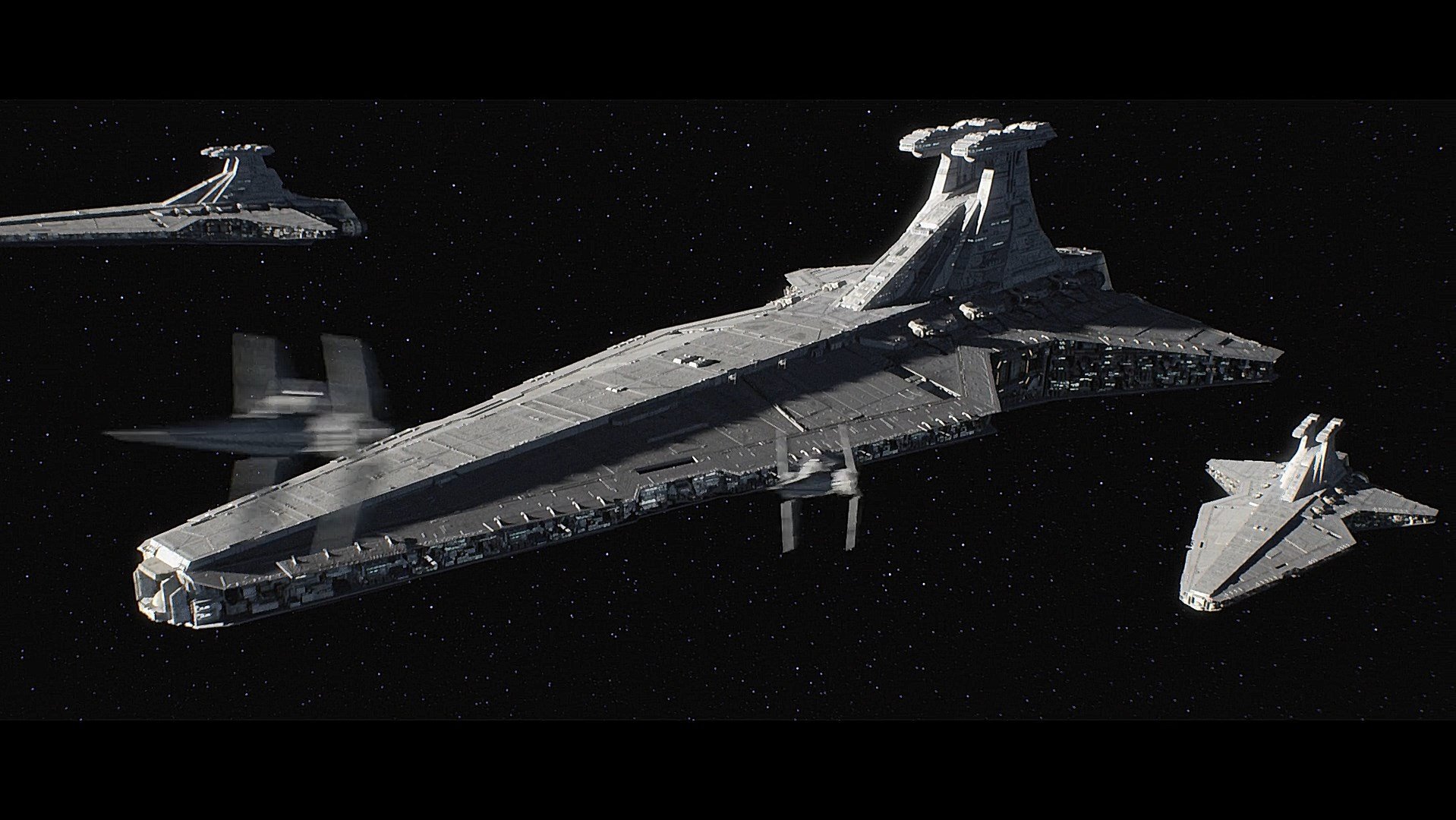 Below: The Republic & Imperial Venator Class Star Destroyers