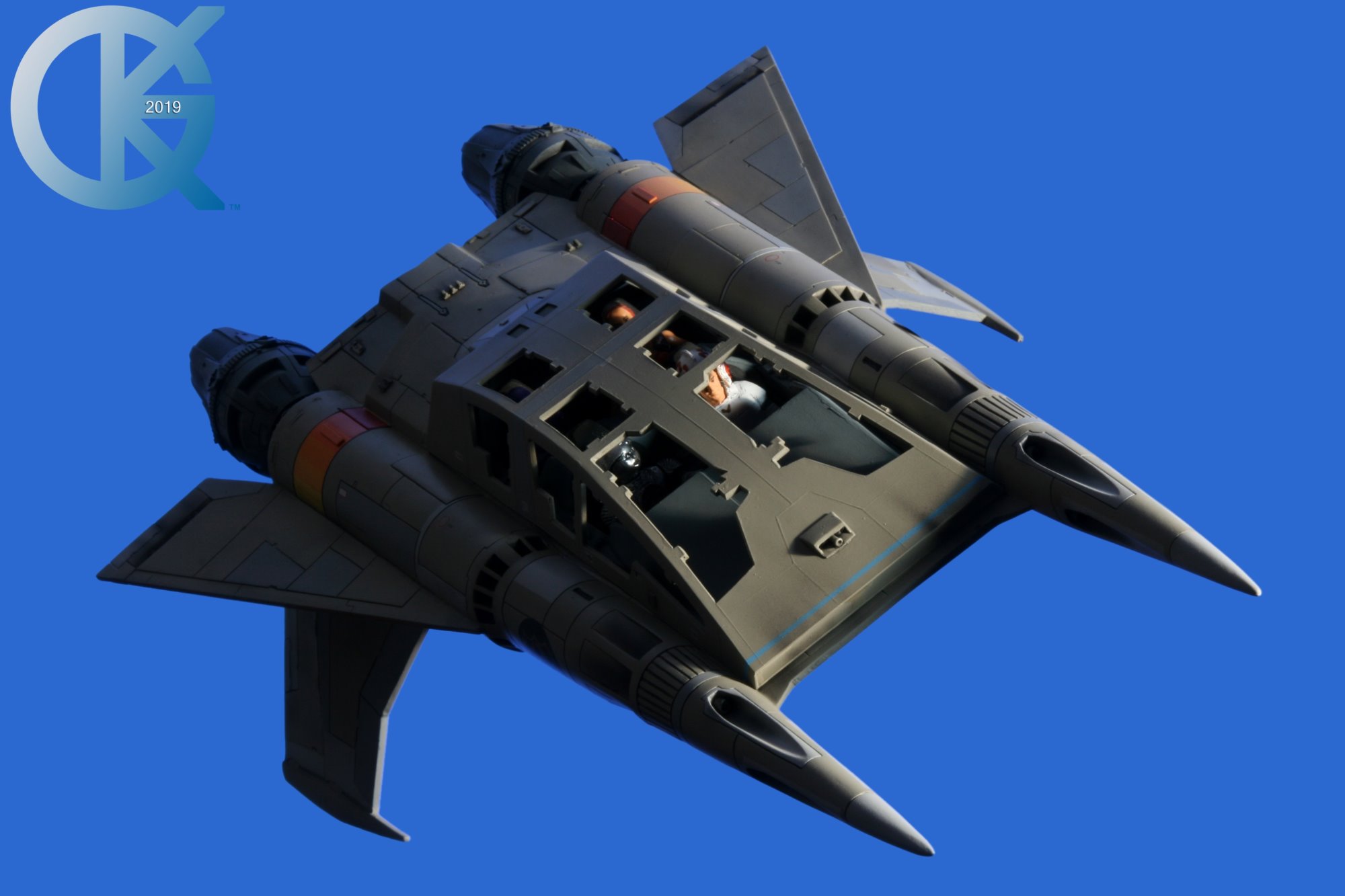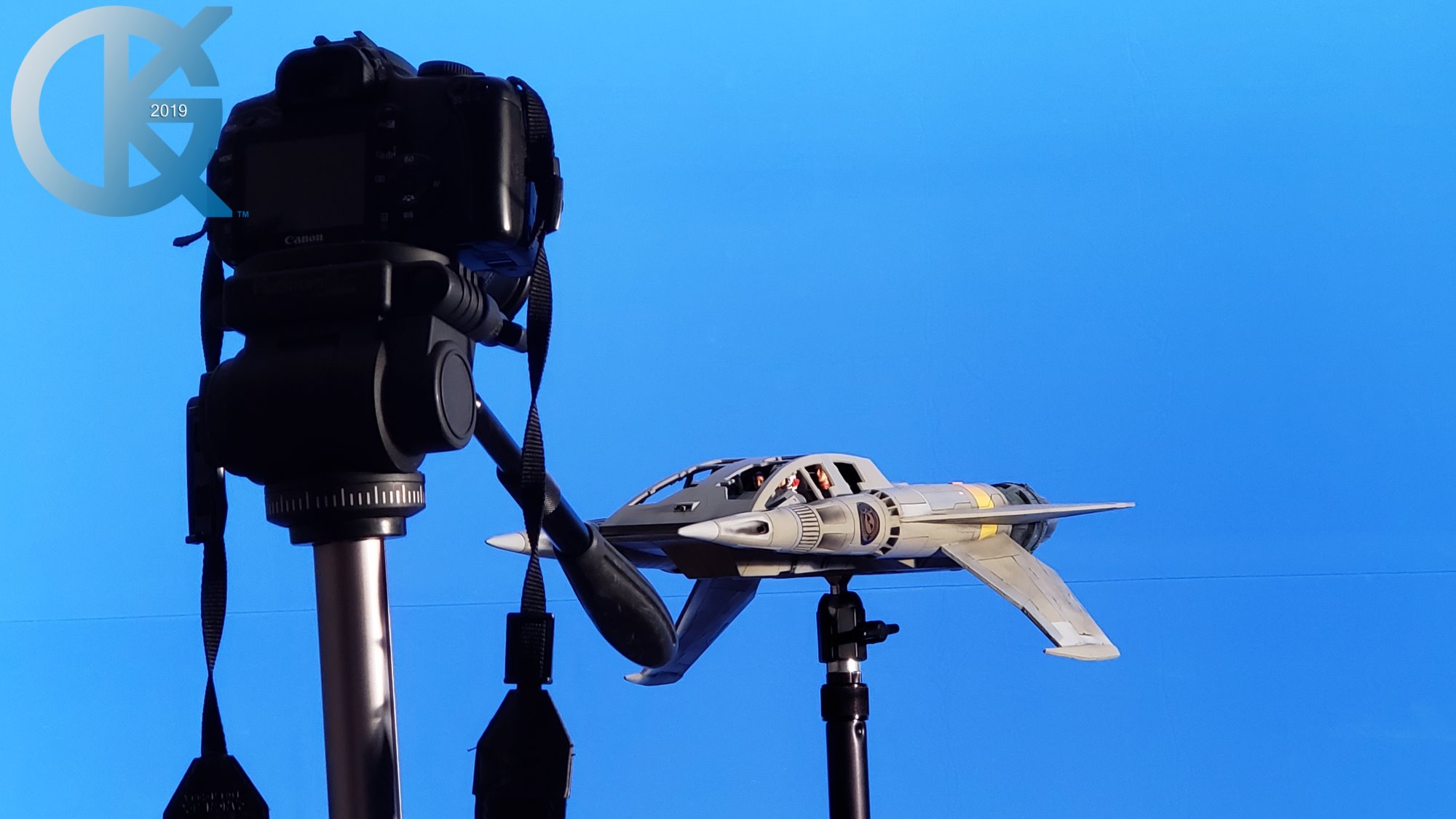 This has been a long time coming. We have had these amazing TimeSlip studio scale Thunder Fighters in our hands for years, and we were finally able to get to them. Dan made this one into the Quad Fighter in 2016 and I am just now able to get the Blue Screen Photography done in 2019. Things take a bit more time with me these days as my abilities become more challenging. I still have a blast doing so!