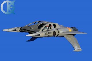 There are not too many of these studio scale Quad Fighters out in the world, as it takes some design and cutting skills to make them. Most do not make the interior for the 4 passengers, but Dan did! We have 1/18 Buck Rogers modified action figures in this miniature, with Buck flying it, Twiki and Dr. Theopolis in the front passenger seat.. and two very 1980’s Buck Rogers styled looking women sitting in the rear passenger seats. I believe one is a modified Amidala figure from Star Wars! LOL. Dan did brilliant work with this… as he always does. The TimeSlip kit was amazing as well. It was nice to work with a hollow hull, and the casts were crisp…thank you George. Thank you all who were involved… wonderful work!