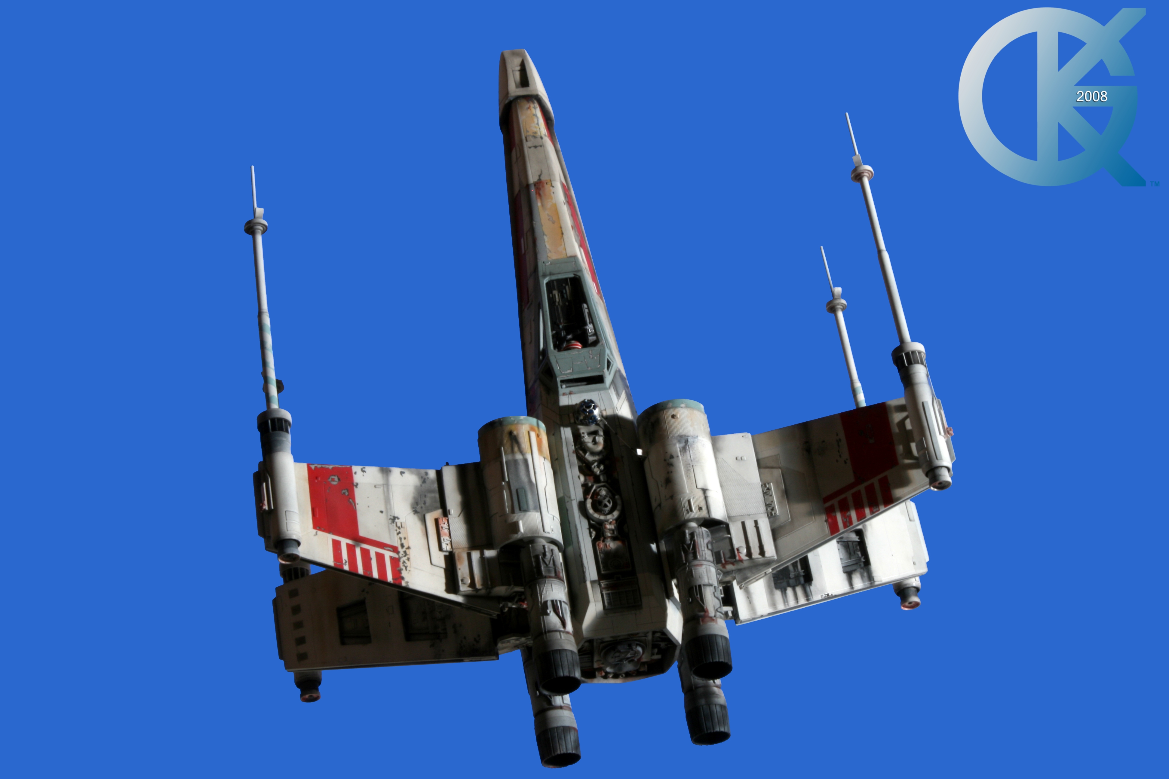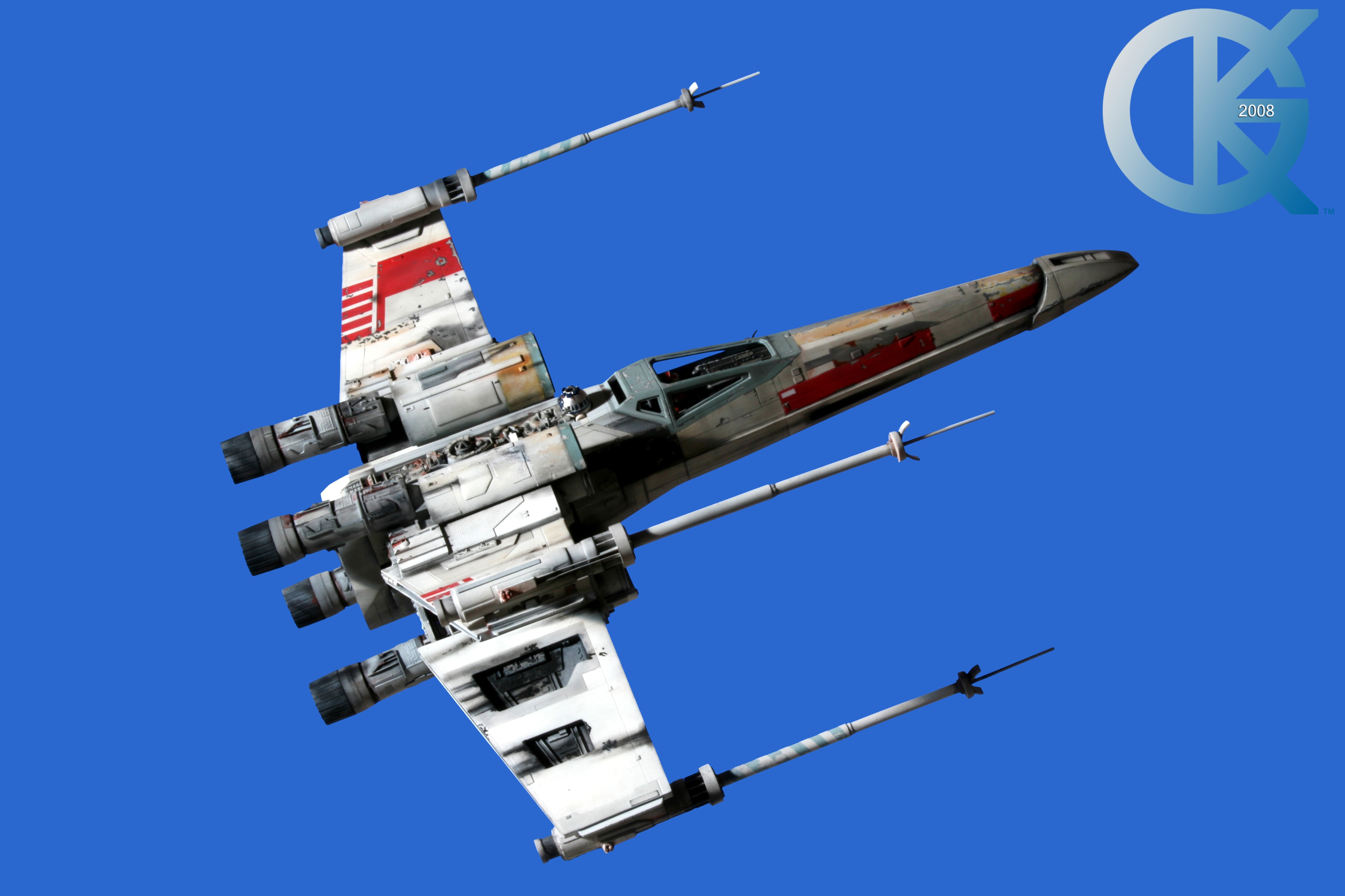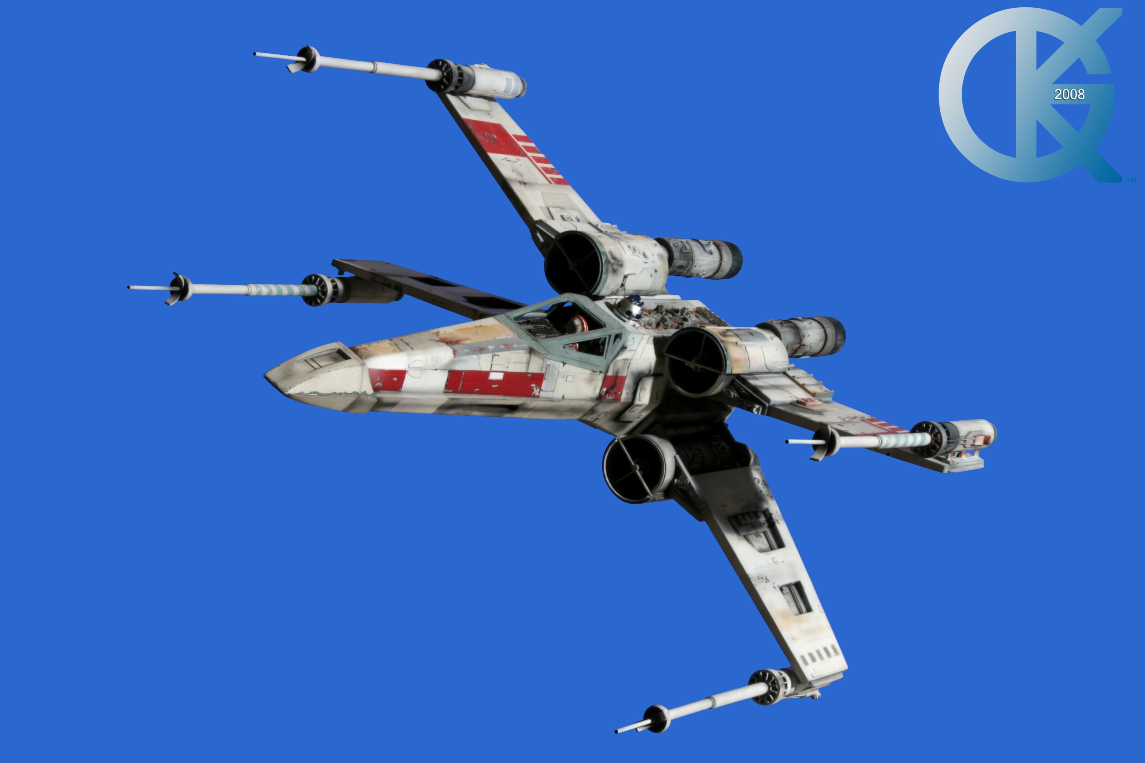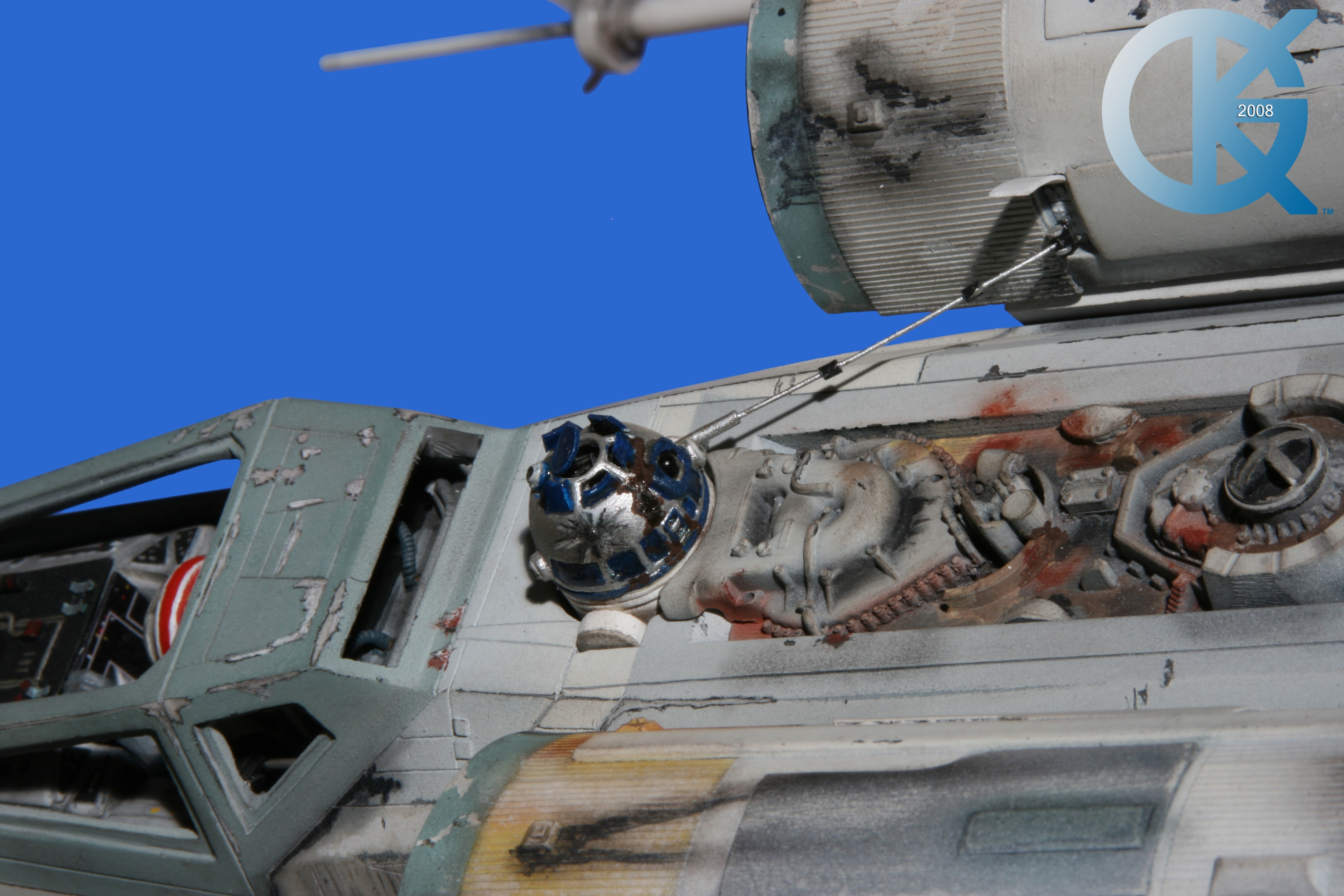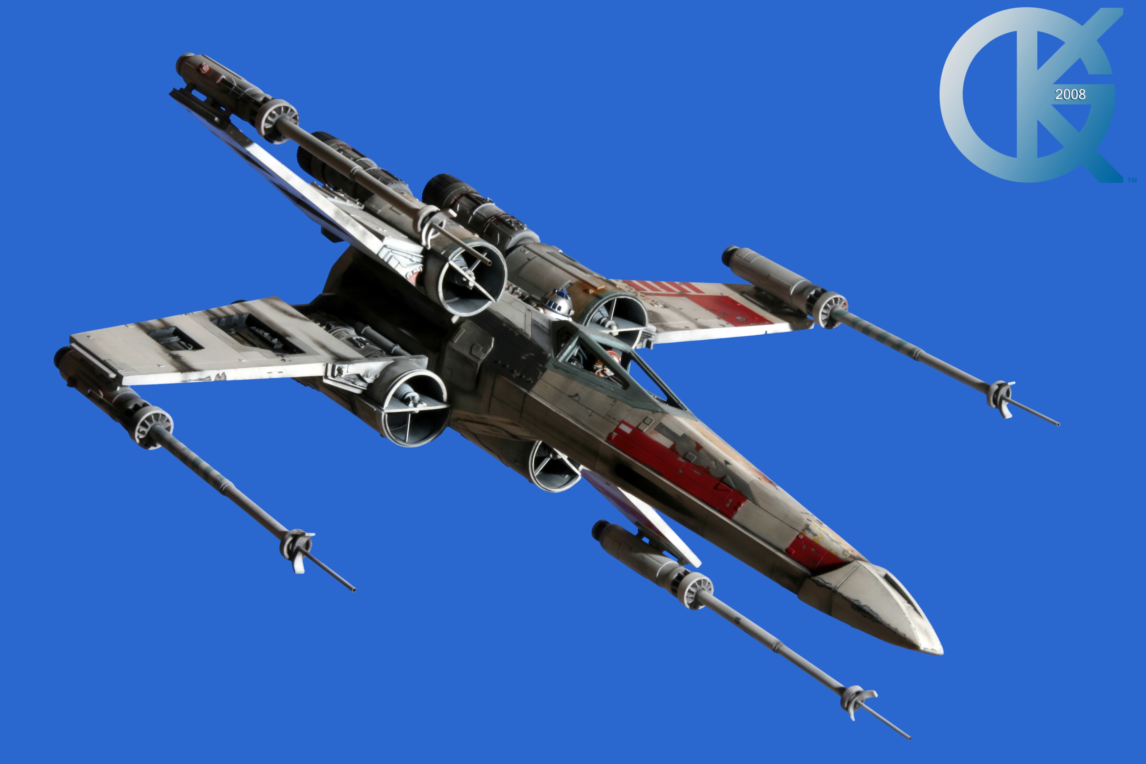 This piece was originally shown here on Modelers Miniatures & Magic back on January 19, 2009 and now updated to today’s showing standard! After purchasing the latest studio scale Hero X-Wing (the V3) from Mike Salzo back in 2008, I brought it to MTM Studio in order to replicate the filming miniature of Luke Skywalker’s RED 5 X-Wing (as seen in the original Star Wars in 1977). In the final piece you see in these photos today, we show Luke looking over his shoulder just after Darth Vader takes out R2-D2 (while R2 is fixing the top starboard engine stabilizer). Of course R2-D2’s panels are all extended with the shock of the hit he just received from Vader. Other than those two changes, this is very close to being a replica of the highest standard. I was thrilled when Mike Salzo purchased the original Captain Cardboard studio scale X-Wing Patterns (which then came to be known as the Salzo V1) well over a decade ago now. Let me see if my memory will serve us here today. Soon after Mike Salzo began selling the V1, he took the Captain Cardboard pattern masters and thickened the hull of the studio scale X-Wing. He added a bit more detail, and that became the V2 release. Soon after that, using the RED 3 photos taken in the Lucasfilm Archives, Mike scratch built an entirely new hero studio scale X-Wing in 2007. What was made of that kit is what you see before you today with these Blue Screen photos taken by me (Kurt Kuhn) in 2008. Since that time, Mike made even more refinements to match the different studio models used in the filming of Star Wars in 1976. He made several versions after this V3. There were versions 3.1 .. all the way up to version 5.1 I believe. Mike did such an amazing job making this X-Wing with the help of some very noted artists of this art form. That stated, it is a shame that these are no longer available to the public, yet understandable that it was time to move forward with other items Mike had going on. I can tell you this X-Wing still adorns the Collection here today, and is valued quite high being one of the 6 replicas of the 1977 original film on display here. Worthy of note is that of all the X-Wings on display here, they were all photographed just as they were filmed back in 1977… without canopy glass. Since the photos were taken, and to be displayed here in the way I wish to show them, they all have their canopy glass installed now. They are all remarkable, and I shall always keep a place in my heart for RED 5. It was a pleasure to photograph it back in 2008, and continues to shine with everyone who views it.