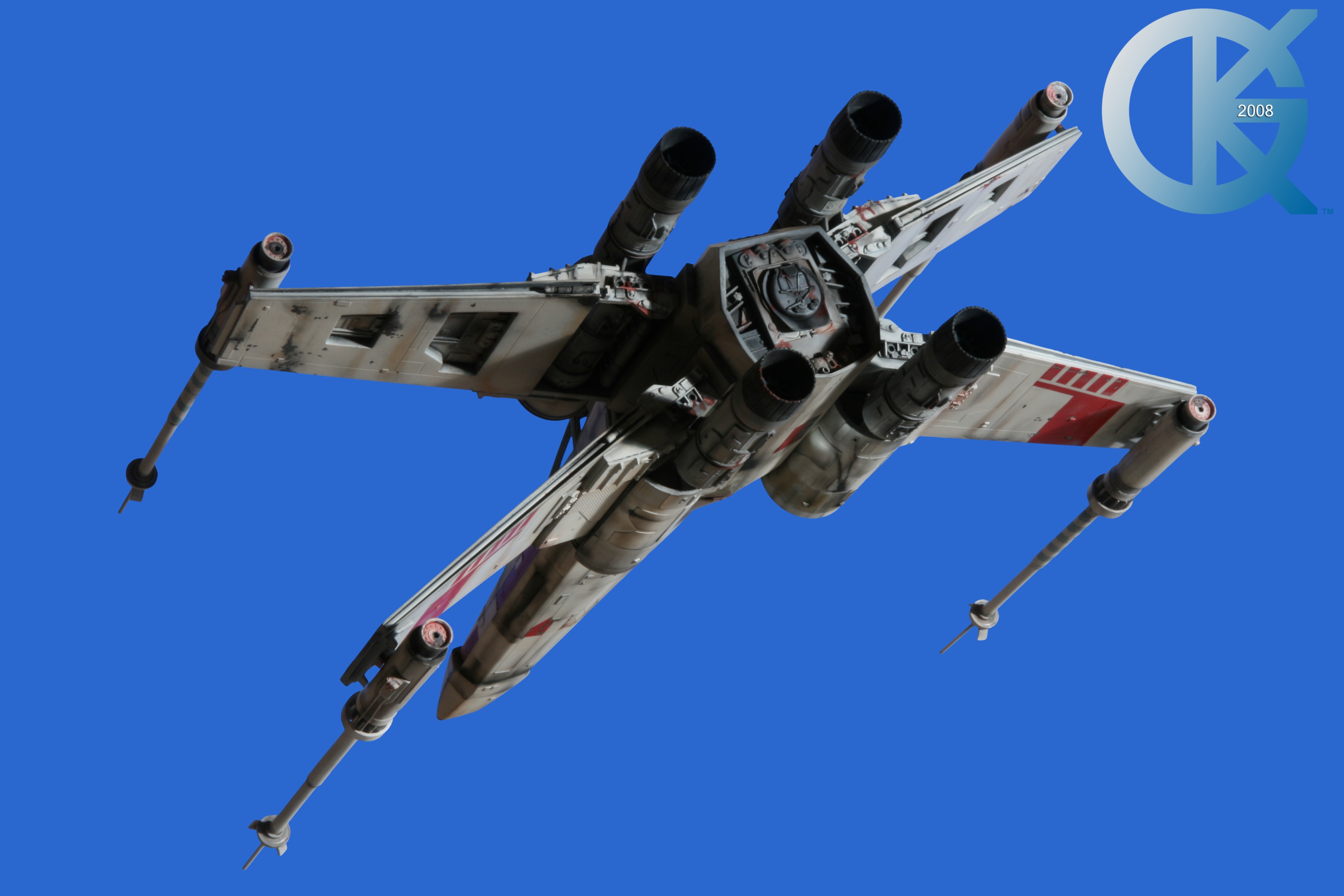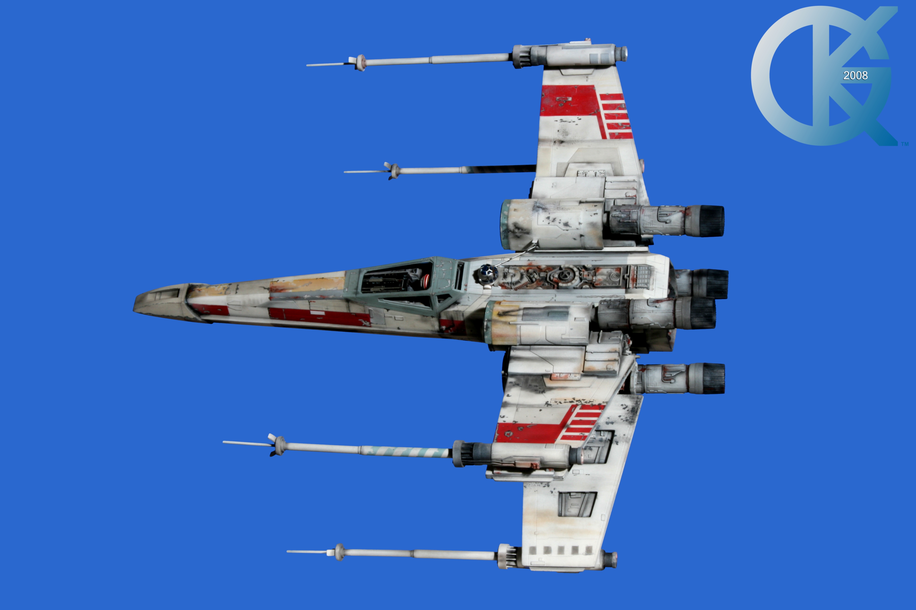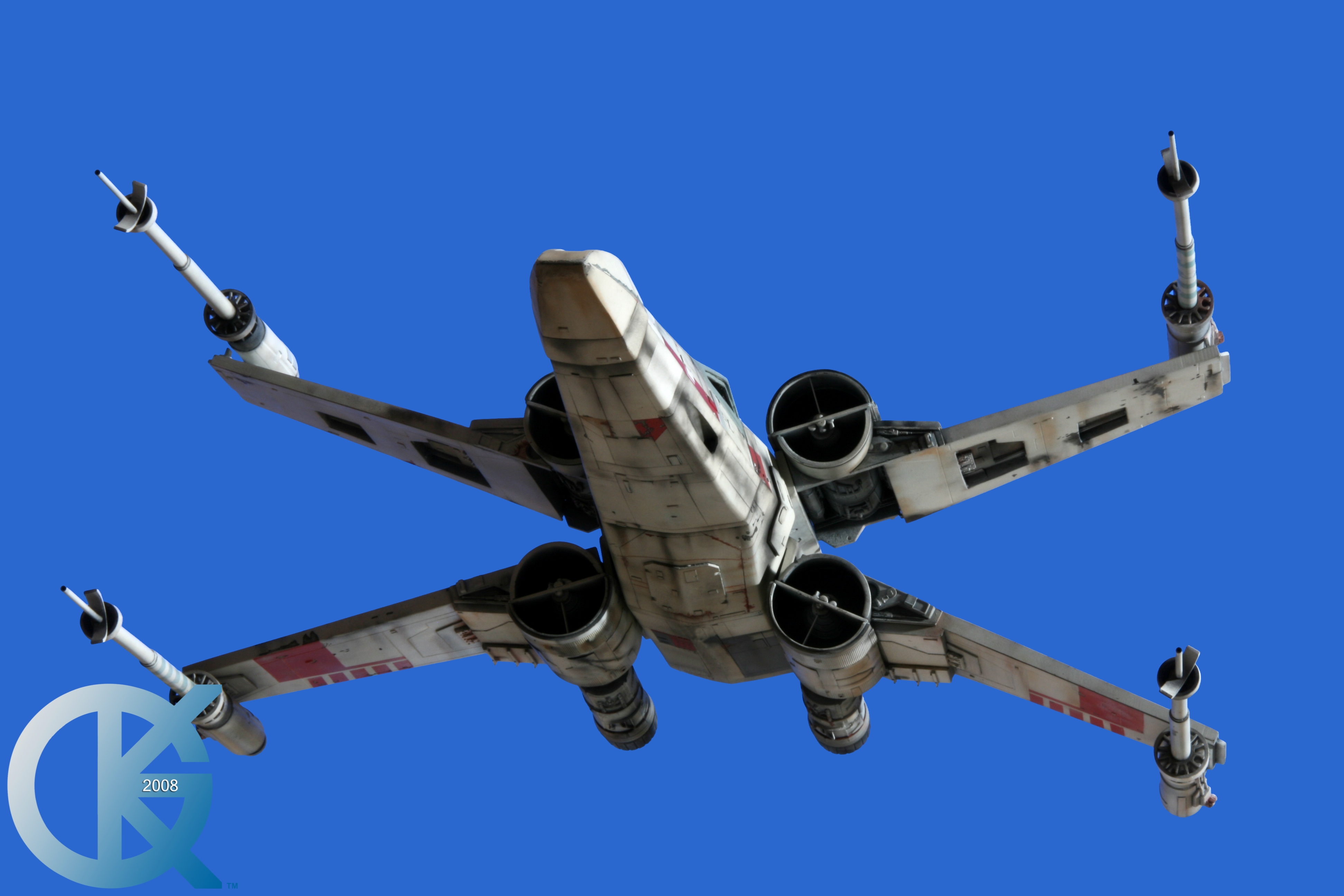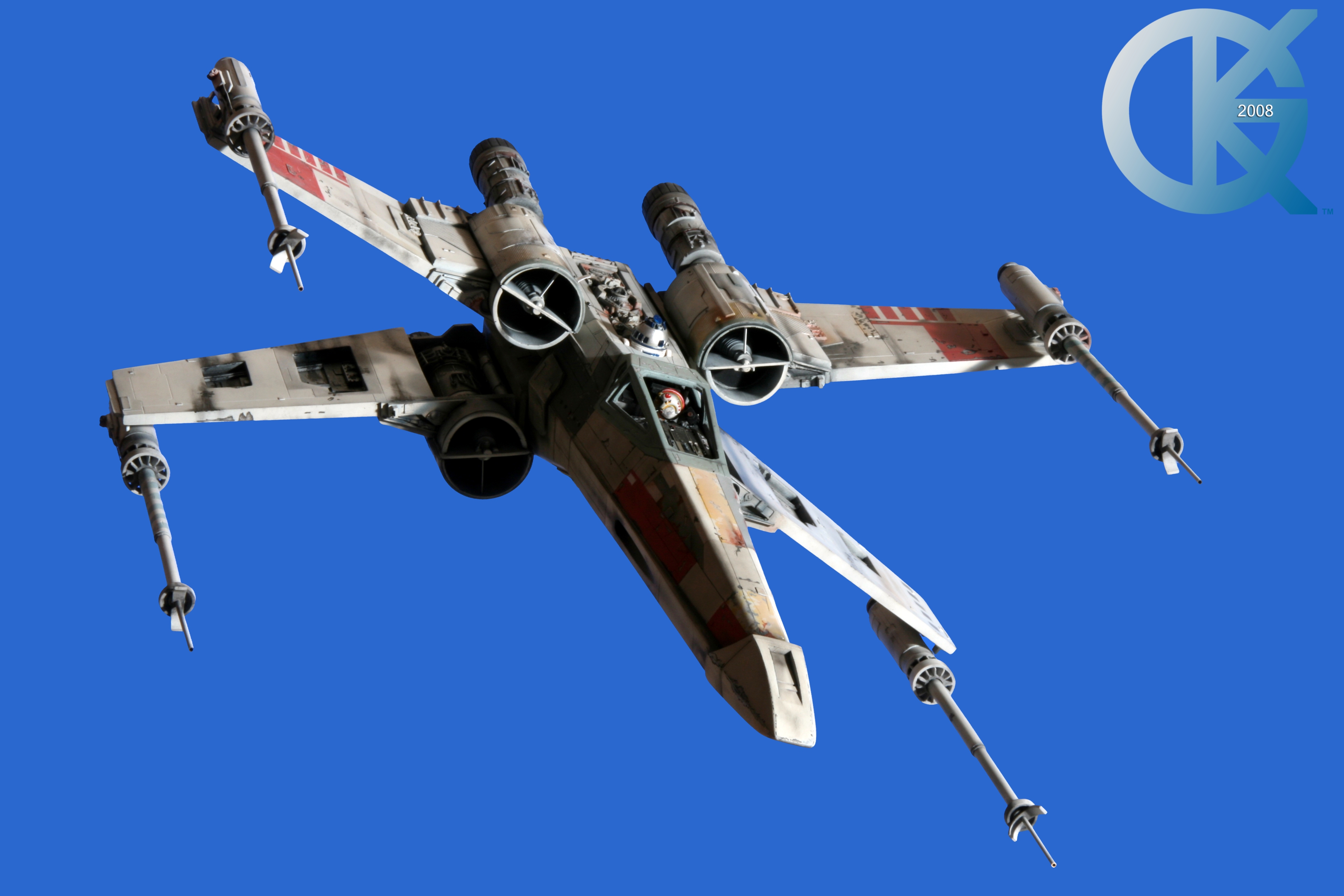 This piece was originally shown here on Modelers Miniatures & Magic back on January 19, 2009 and now updated to today’s showing standard! After purchasing the latest studio scale Hero X-Wing (the V3) from Mike Salzo back in 2008, I brought it to MTM Studio in order to replicate the filming miniature of Luke Skywalker’s RED 5 X-Wing (as seen in the original Star Wars in 1977). In the final piece you see in these photos today, we show Luke looking over his shoulder just after Darth Vader takes out R2-D2 (while R2 is fixing the top starboard engine stabilizer). Of course R2-D2’s panels are all extended with the shock of the hit he just received from Vader. Other than those two changes, this is very close to being a replica of the highest standard. I was thrilled when Mike Salzo purchased the original Captain Cardboard studio scale X-Wing Patterns (which then came to be known as the Salzo V1) well over a decade ago now. Let me see if my memory will serve us here today. Soon after Mike Salzo began selling the V1, he took the Captain Cardboard pattern masters and thickened the hull of the studio scale X-Wing. He added a bit more detail, and that became the V2 release. Soon after that, using the RED 3 photos taken in the Lucasfilm Archives, Mike scratch built an entirely new hero studio scale X-Wing in 2007. What was made of that kit is what you see before you today with these Blue Screen photos taken by me (Kurt Kuhn) in 2008. Since that time, Mike made even more refinements to match the different studio models used in the filming of Star Wars in 1976. He made several versions after this V3. There were versions 3.1 .. all the way up to version 5.1 I believe. Mike did such an amazing job making this X-Wing with the help of some very noted artists of this art form. That stated, it is a shame that these are no longer available to the public, yet understandable that it was time to move forward with other items Mike had going on. I can tell you this X-Wing still adorns the Collection here today, and is valued quite high being one of the 6 replicas of the 1977 original film on display here. Worthy of note is that of all the X-Wings on display here, they were all photographed just as they were filmed back in 1977… without canopy glass. Since the photos were taken, and to be displayed here in the way I wish to show them, they all have their canopy glass installed now. They are all remarkable, and I shall always keep a place in my heart for RED 5. It was a pleasure to photograph it back in 2008, and continues to shine with everyone who views it.