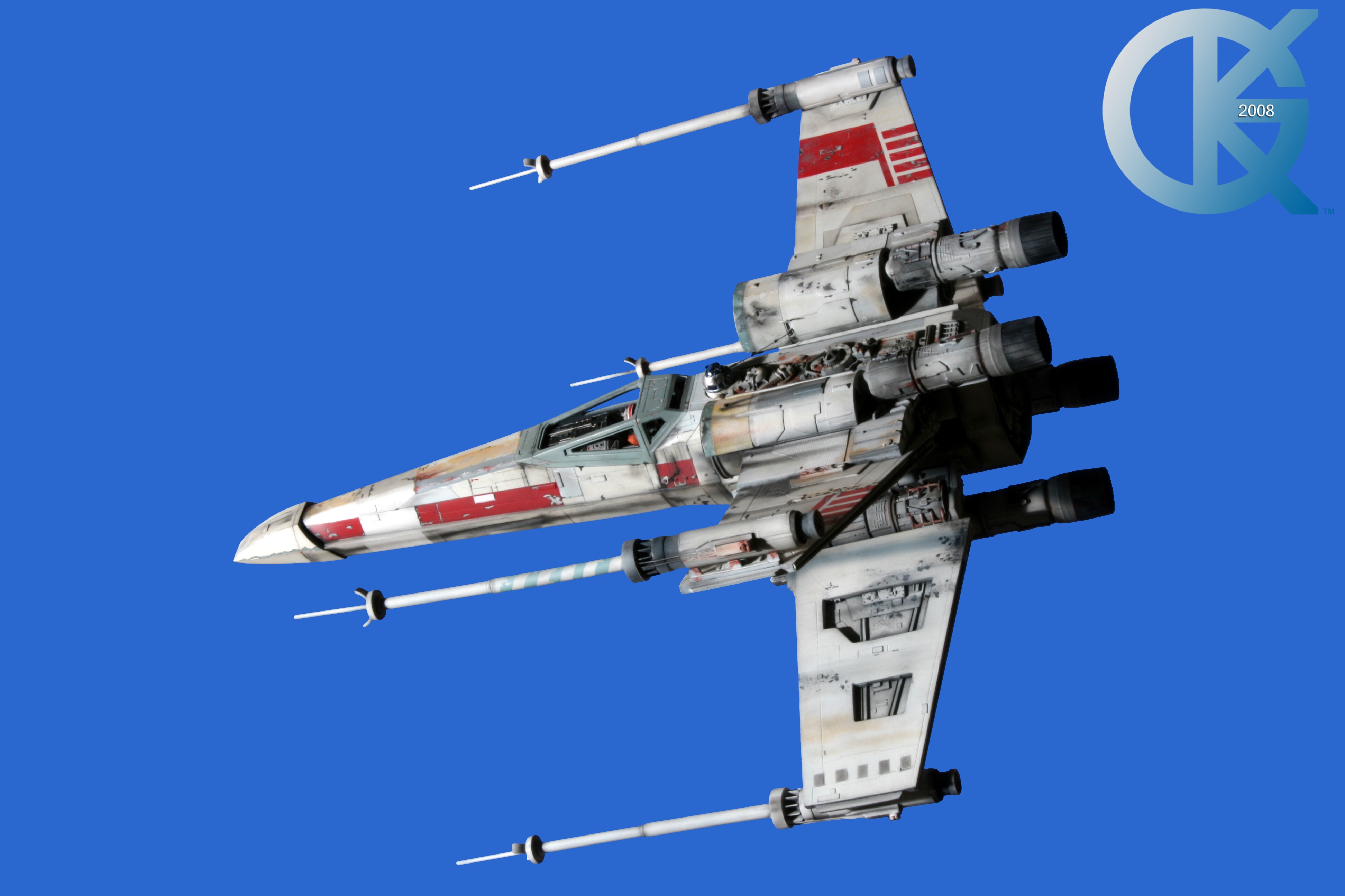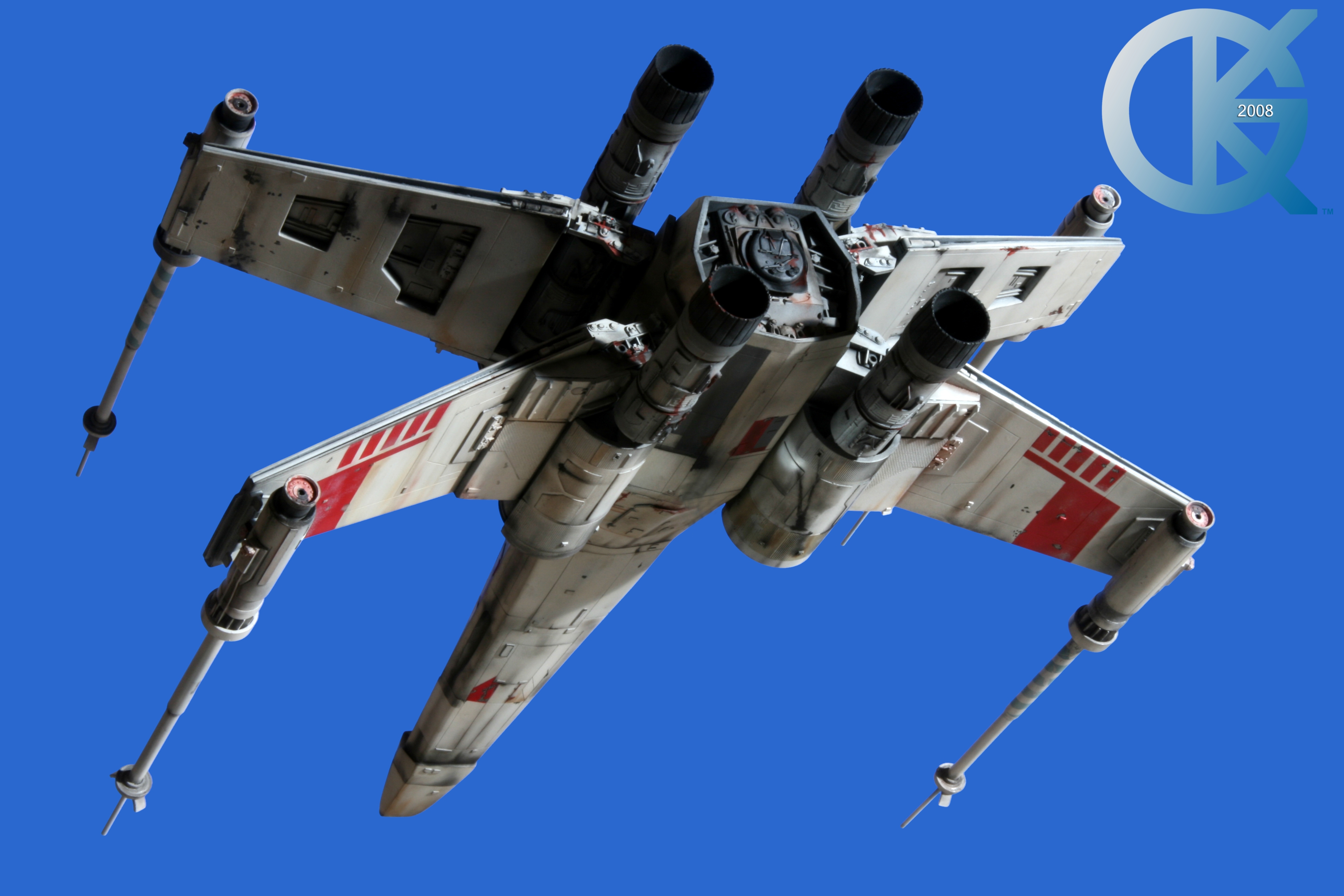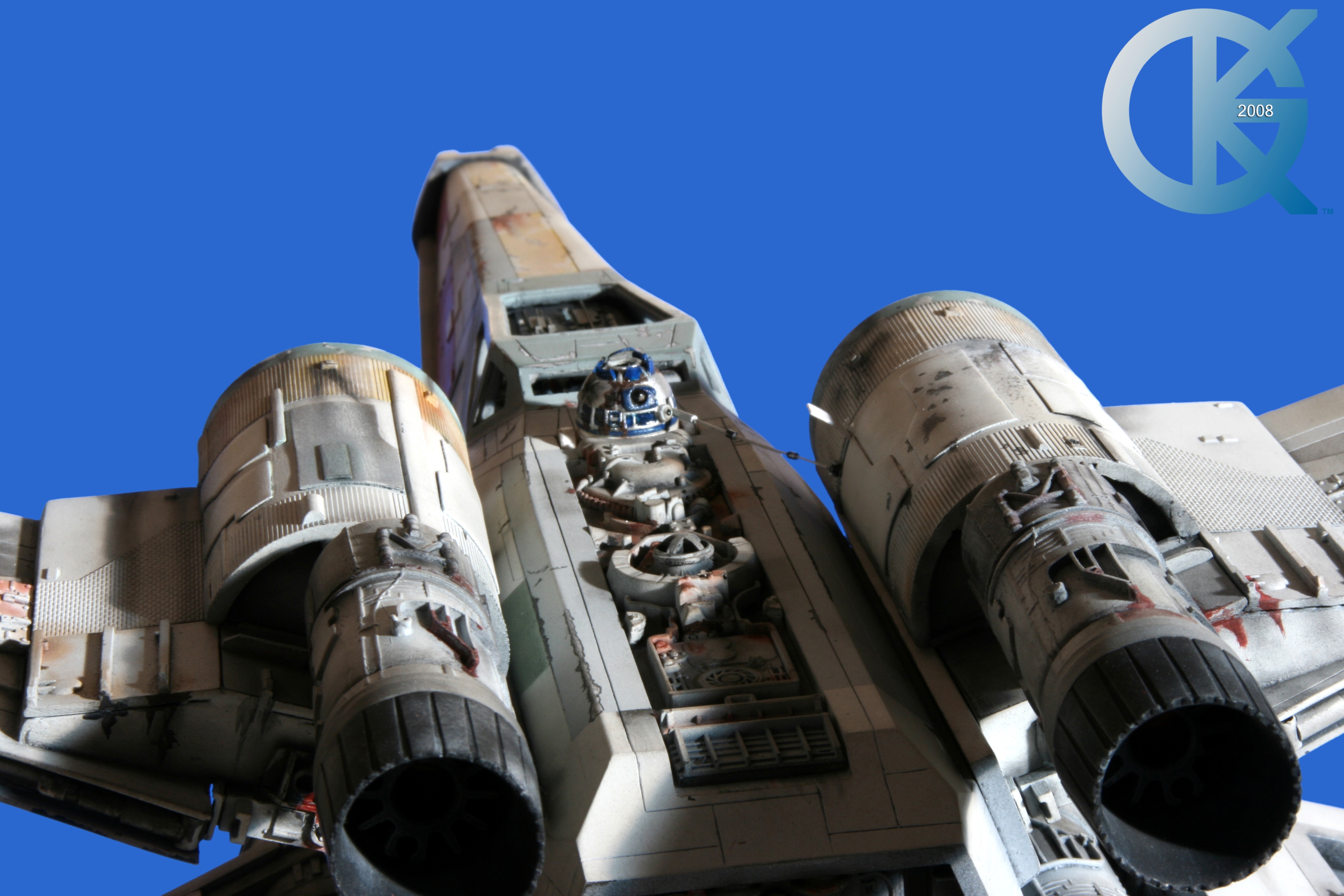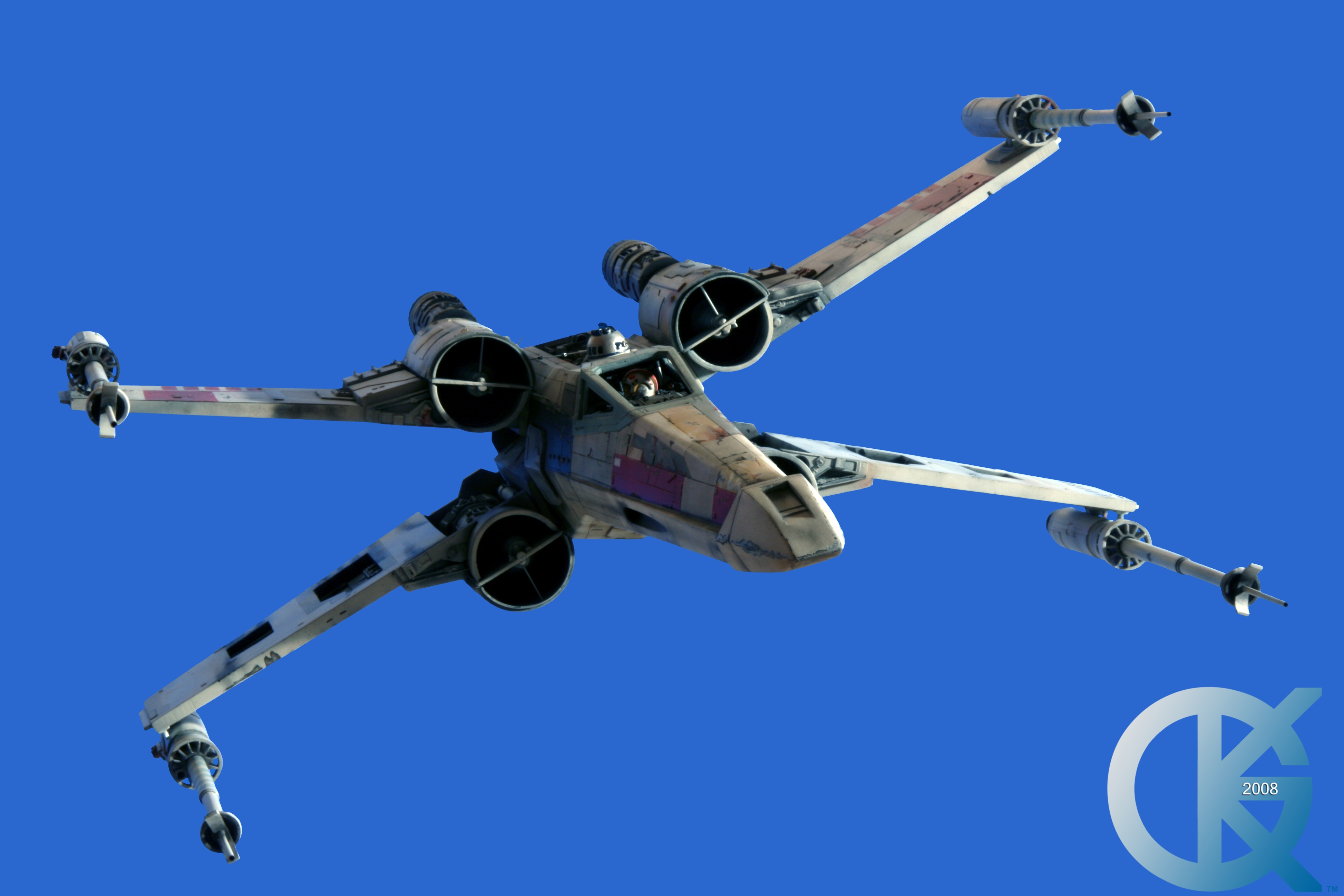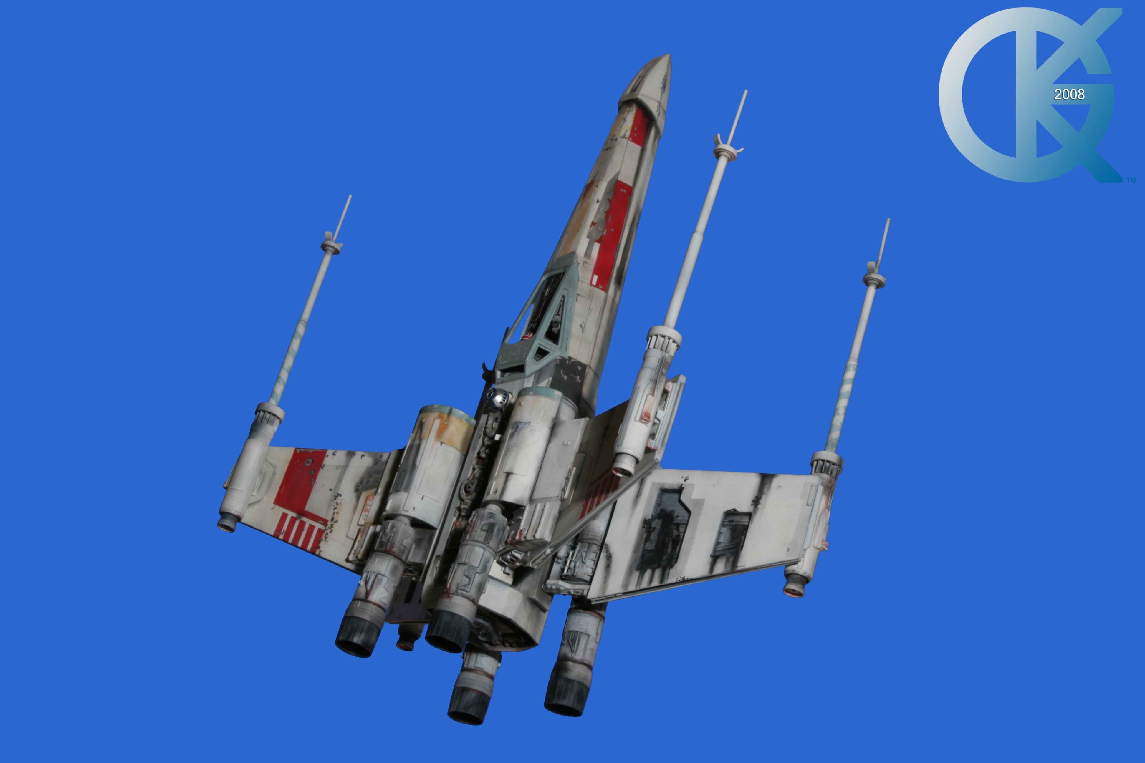 This piece was originally shown here on Modelers Miniatures & Magic back on January 19, 2009 and now updated to today’s showing standard! After purchasing the latest studio scale Hero X-Wing (the V3) from Mike Salzo back in 2008, I brought it to MTM Studio in order to replicate the filming miniature of Luke Skywalker’s RED 5 X-Wing (as seen in the original Star Wars in 1977). In the final piece you see in these photos today, we show Luke looking over his shoulder just after Darth Vader takes out R2-D2 (while R2 is fixing the top starboard engine stabilizer). Of course R2-D2’s panels are all extended with the shock of the hit he just received from Vader. Other than those two changes, this is very close to being a replica of the highest standard. I was thrilled when Mike Salzo purchased the original Captain Cardboard studio scale X-Wing Patterns (which then came to be known as the Salzo V1) well over a decade ago now. Let me see if my memory will serve us here today. Soon after Mike Salzo began selling the V1, he took the Captain Cardboard pattern masters and thickened the hull of the studio scale X-Wing. He added a bit more detail, and that became the V2 release. Soon after that, using the RED 3 photos taken in the Lucasfilm Archives, Mike scratch built an entirely new hero studio scale X-Wing in 2007. What was made of that kit is what you see before you today with these Blue Screen photos taken by me (Kurt Kuhn) in 2008. Since that time, Mike made even more refinements to match the different studio models used in the filming of Star Wars in 1976. He made several versions after this V3. There were versions 3.1 .. all the way up to version 5.1 I believe. Mike did such an amazing job making this X-Wing with the help of some very noted artists of this art form. That stated, it is a shame that these are no longer available to the public, yet understandable that it was time to move forward with other items Mike had going on. I can tell you this X-Wing still adorns the Collection here today, and is valued quite high being one of the 6 replicas of the 1977 original film on display here. Worthy of note is that of all the X-Wings on display here, they were all photographed just as they were filmed back in 1977… without canopy glass. Since the photos were taken, and to be displayed here in the way I wish to show them, they all have their canopy glass installed now. They are all remarkable, and I shall always keep a place in my heart for RED 5. It was a pleasure to photograph it back in 2008, and continues to shine with everyone who views it.