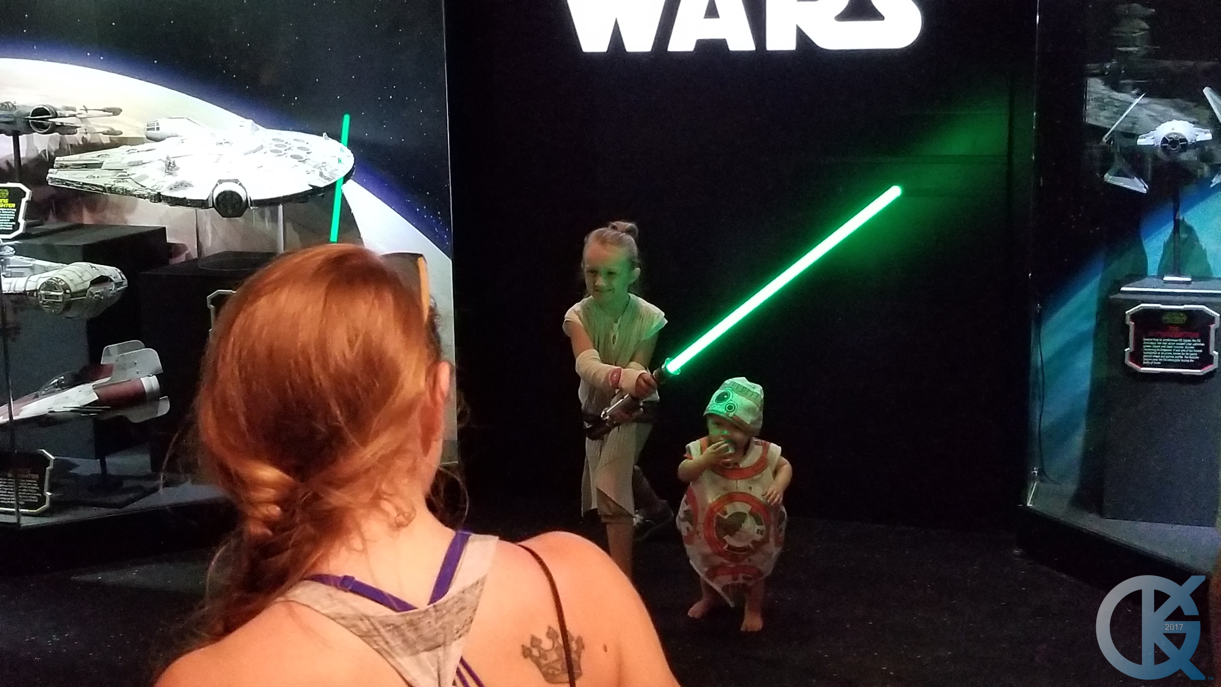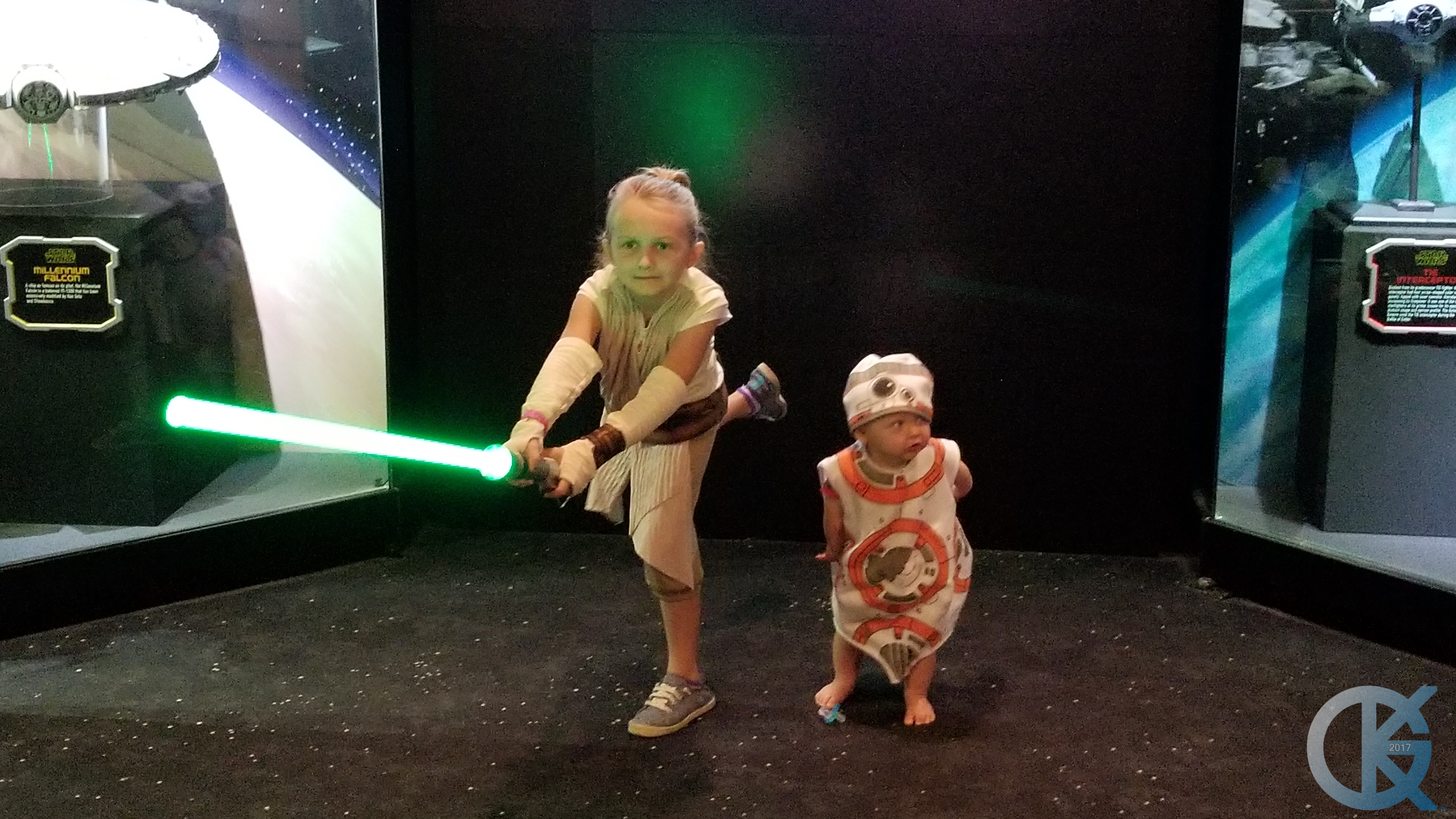 You may have noticed a few weeks have gone by since I have updated Modeler Magic. I was in Florida, enjoying time with Family, and very much enjoying it all at Walt Disney World. One of the great features that Disney now has is Star Wars….. and like it’s younger sibling, Disneyland in California, Disney World Hollywood Studios also has a Launch Bay featuring all kinds of Star Wars Replica Goodies. Built by many of the artists shown on this site, they are always a pleasure to view. There are even some differences between the models shown at each location, and which models are shown at all. Not to mention life sized props. While there I witnessed a young family, with their daughter and son dressed up for the Mickey Halloween party that Disney puts on through the month of October in it’s USA locations. The Smith Family! They are amazing people, and kind enough to allow me to photograph them to show here on Modeler Magic. I could not resist… a tiny Rey and BB-8…. fantastic! Thank you Smith Family!