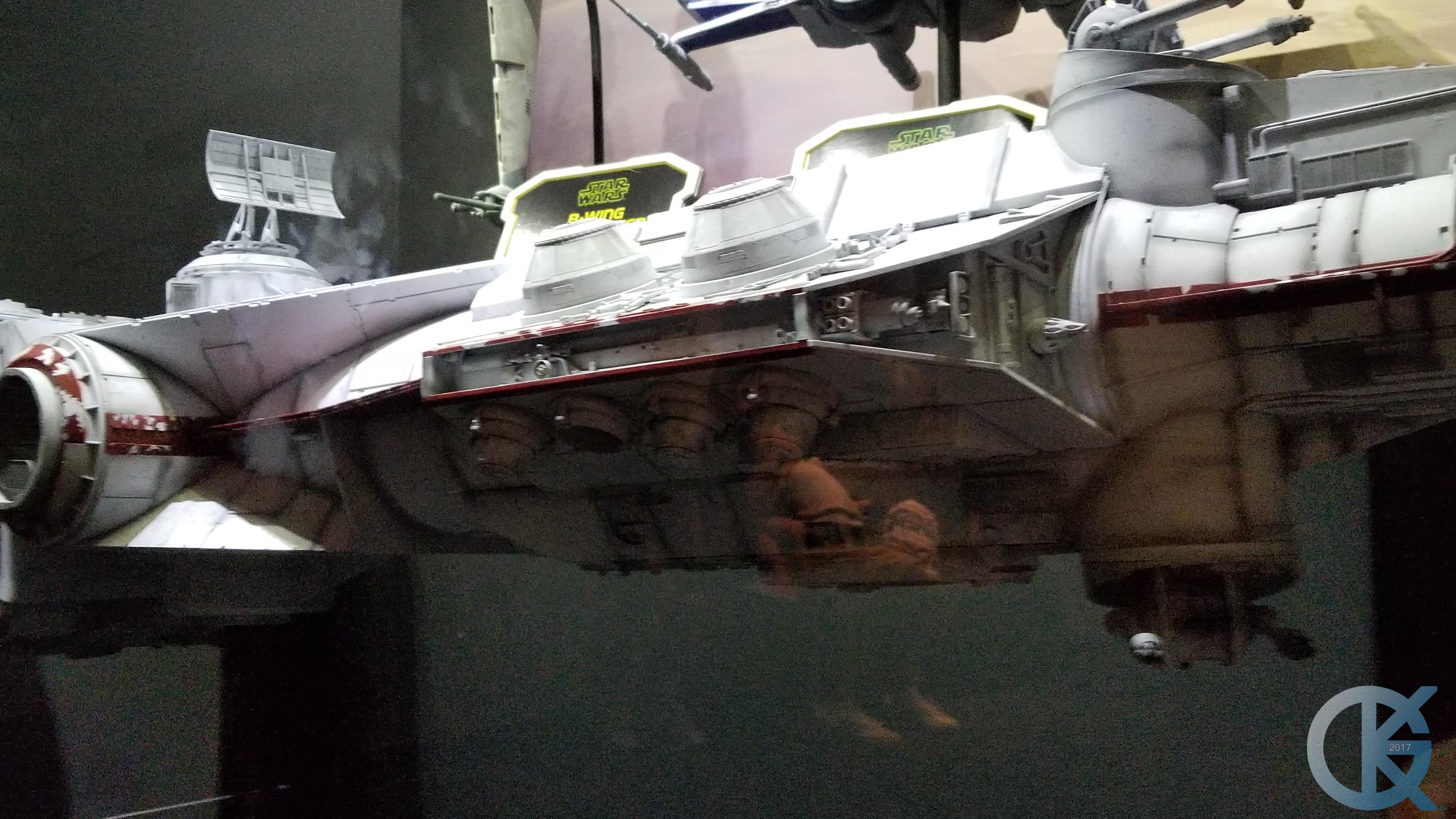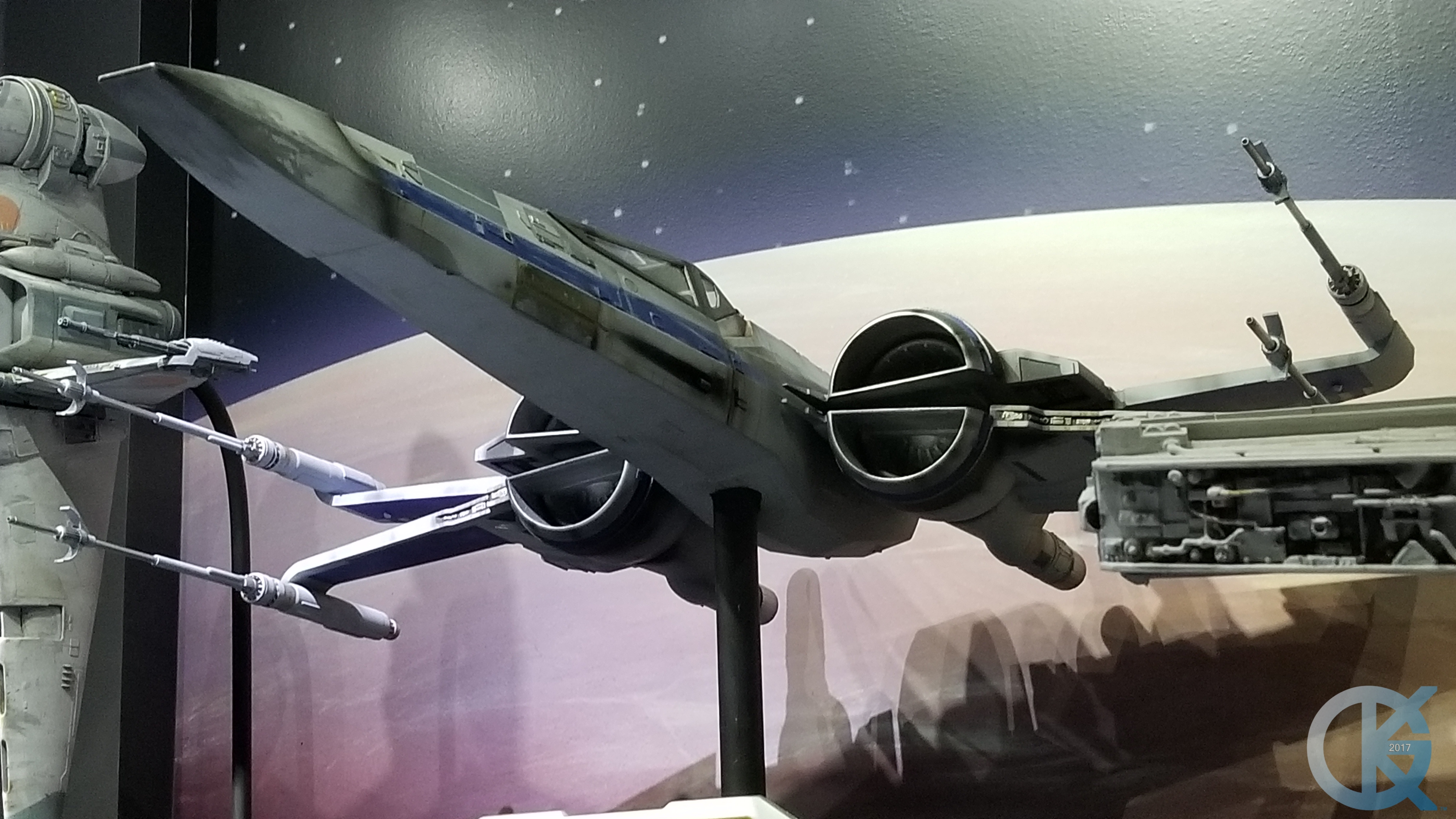Here are a few photographs quickly taken. My apology for the lighting, reflections, and lack of detail in the photos. I used my Galaxy 8+ and the rooms were darkened to show the models in a gallery setting. There are some reflections, however, that are kind of cool looking! LOL.