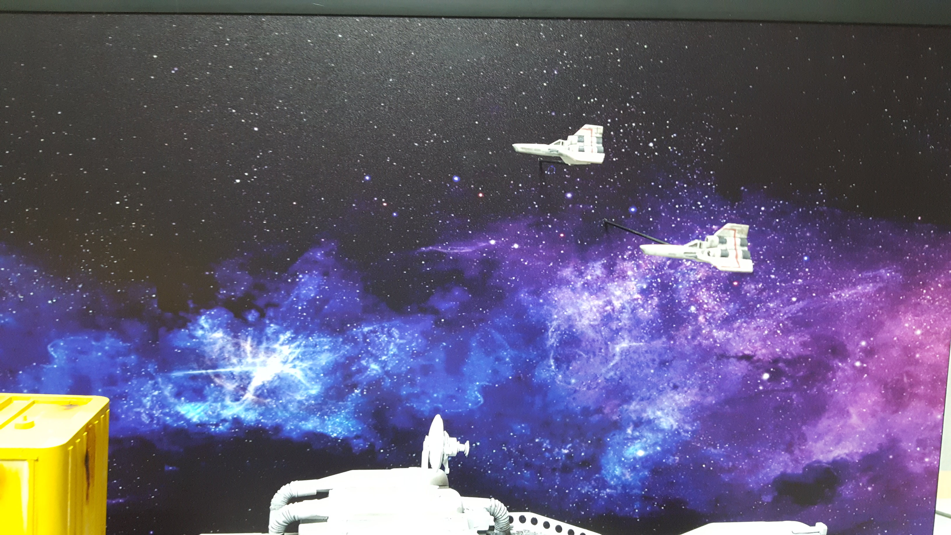 The next step was building a pedestal with a wooden frame to fix a 2mm polysterolplate with the dread print of the space background.