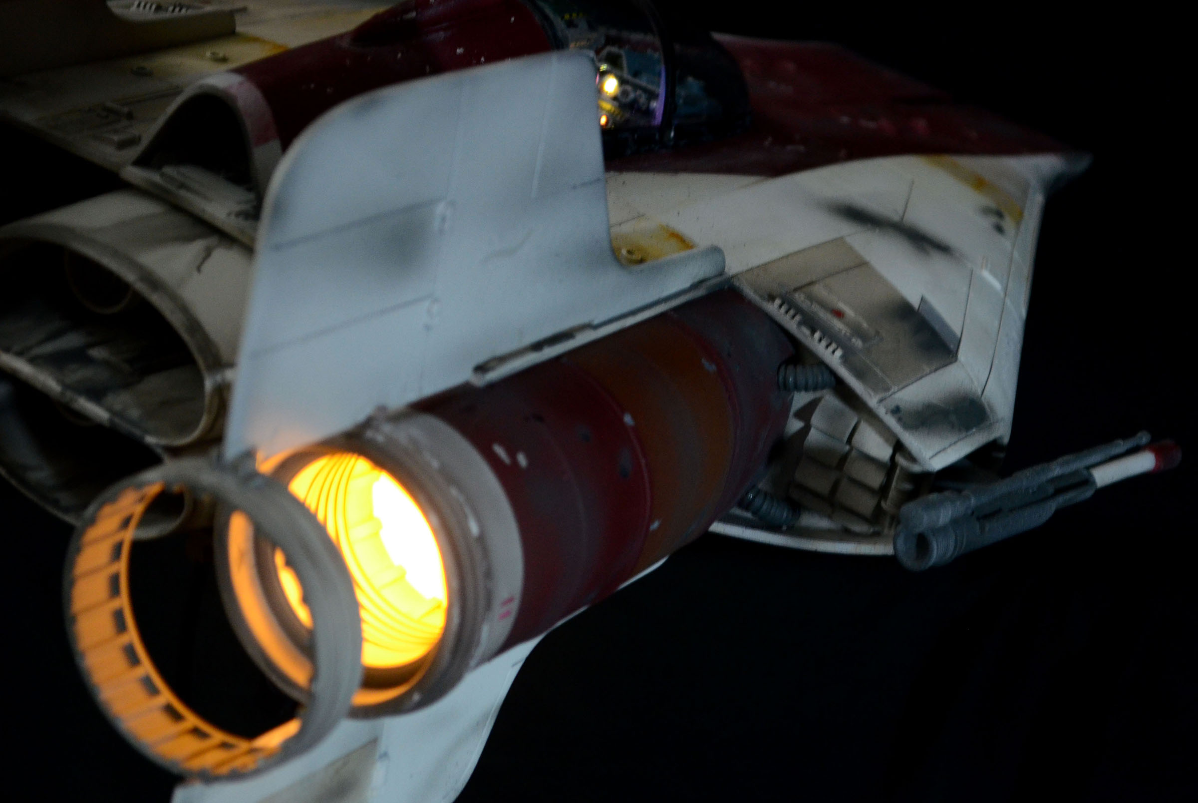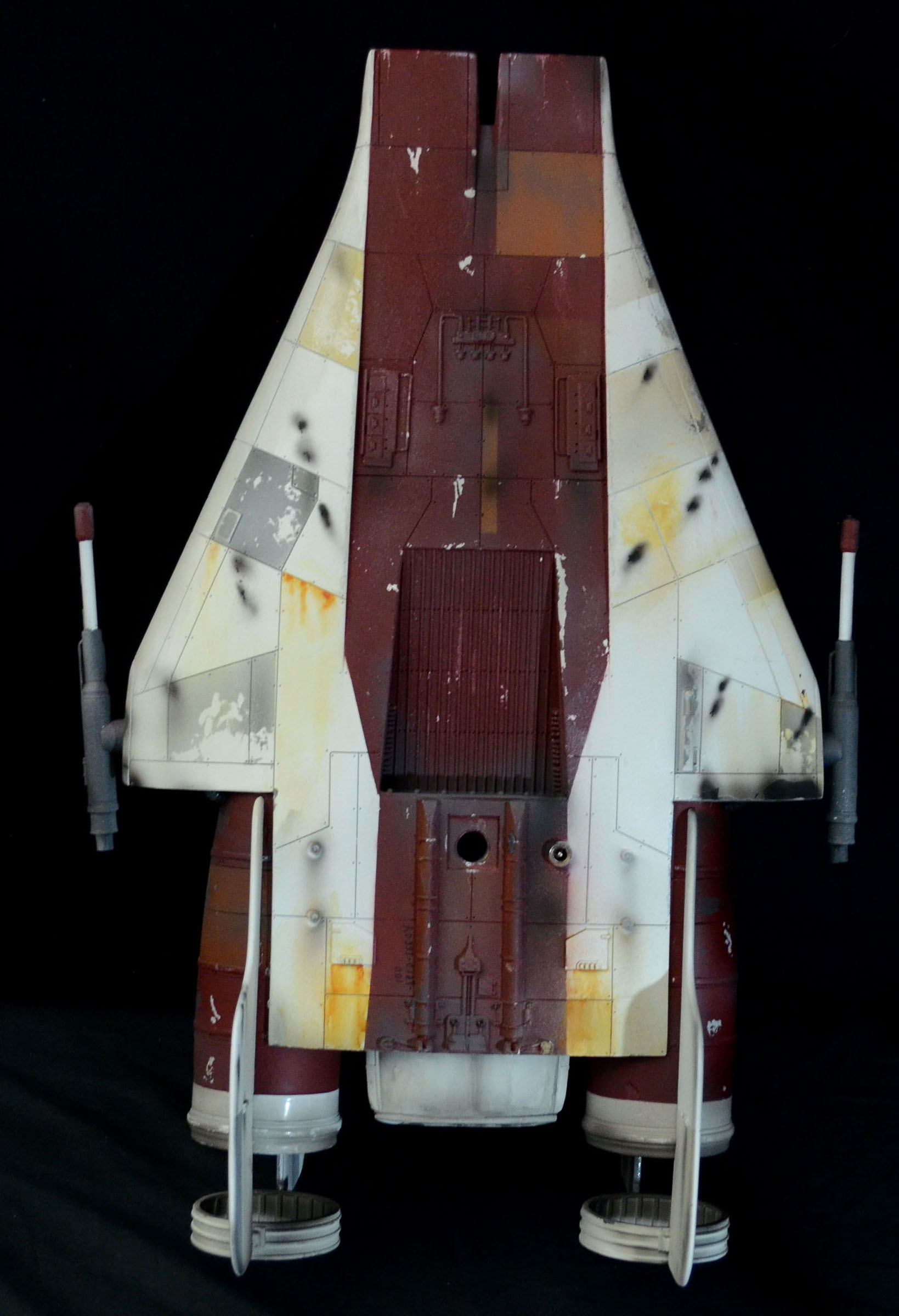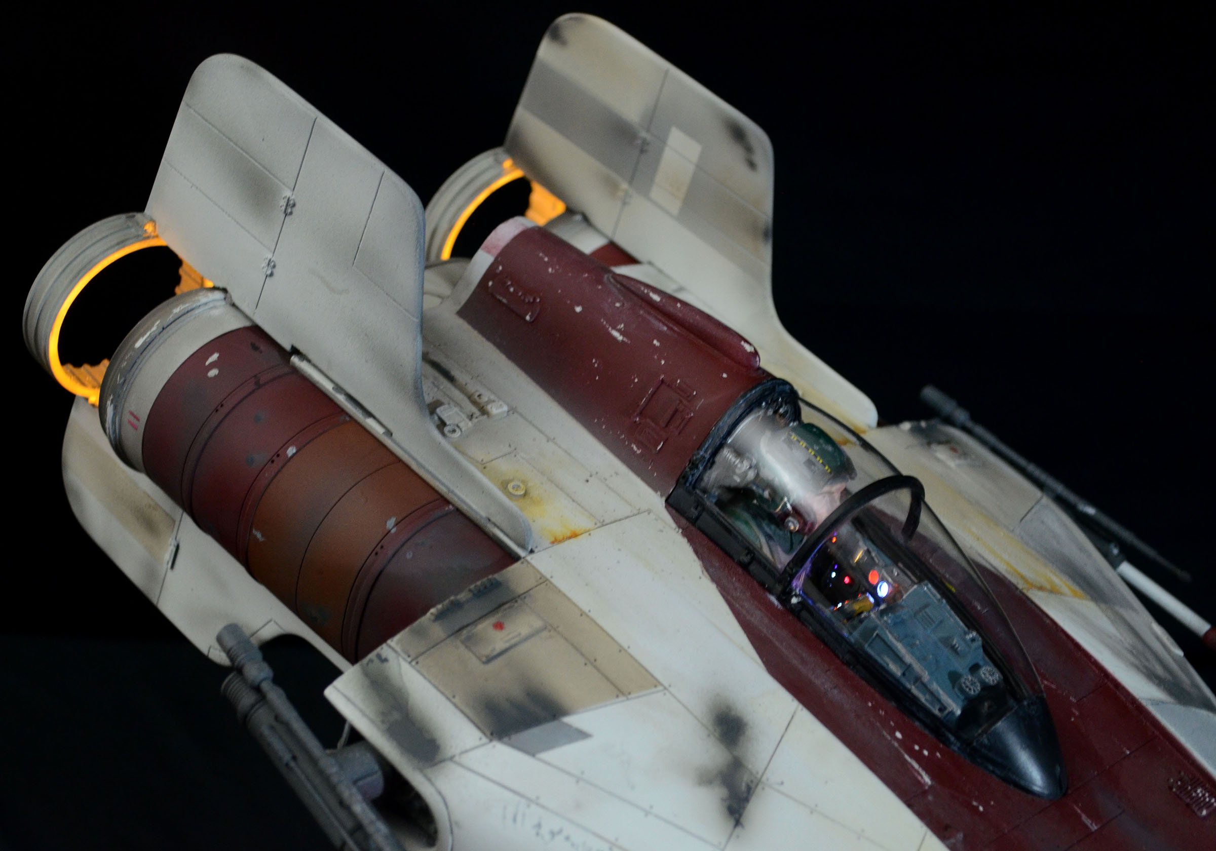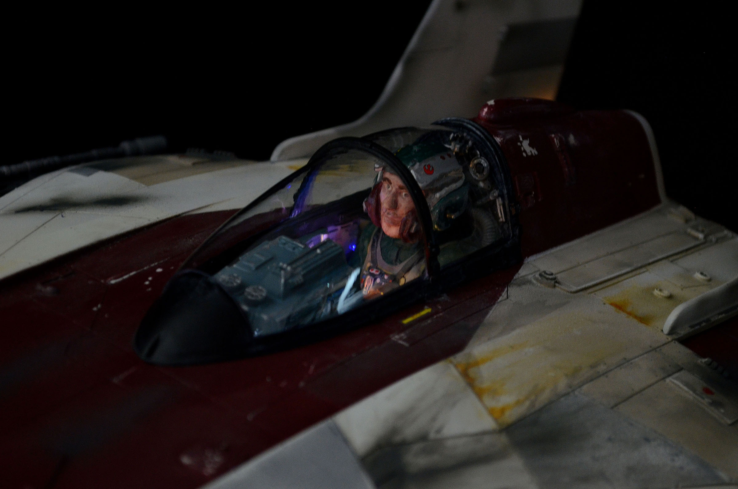 This is a Lasse Henning A-Wing resin kit that I recently completed. I’m not 100% sure if this is studio-scale, but the model measures 19” long, 13” wide, and about 8” high. All of the paint I used was Archive-X acrylics. All lighting is custom.