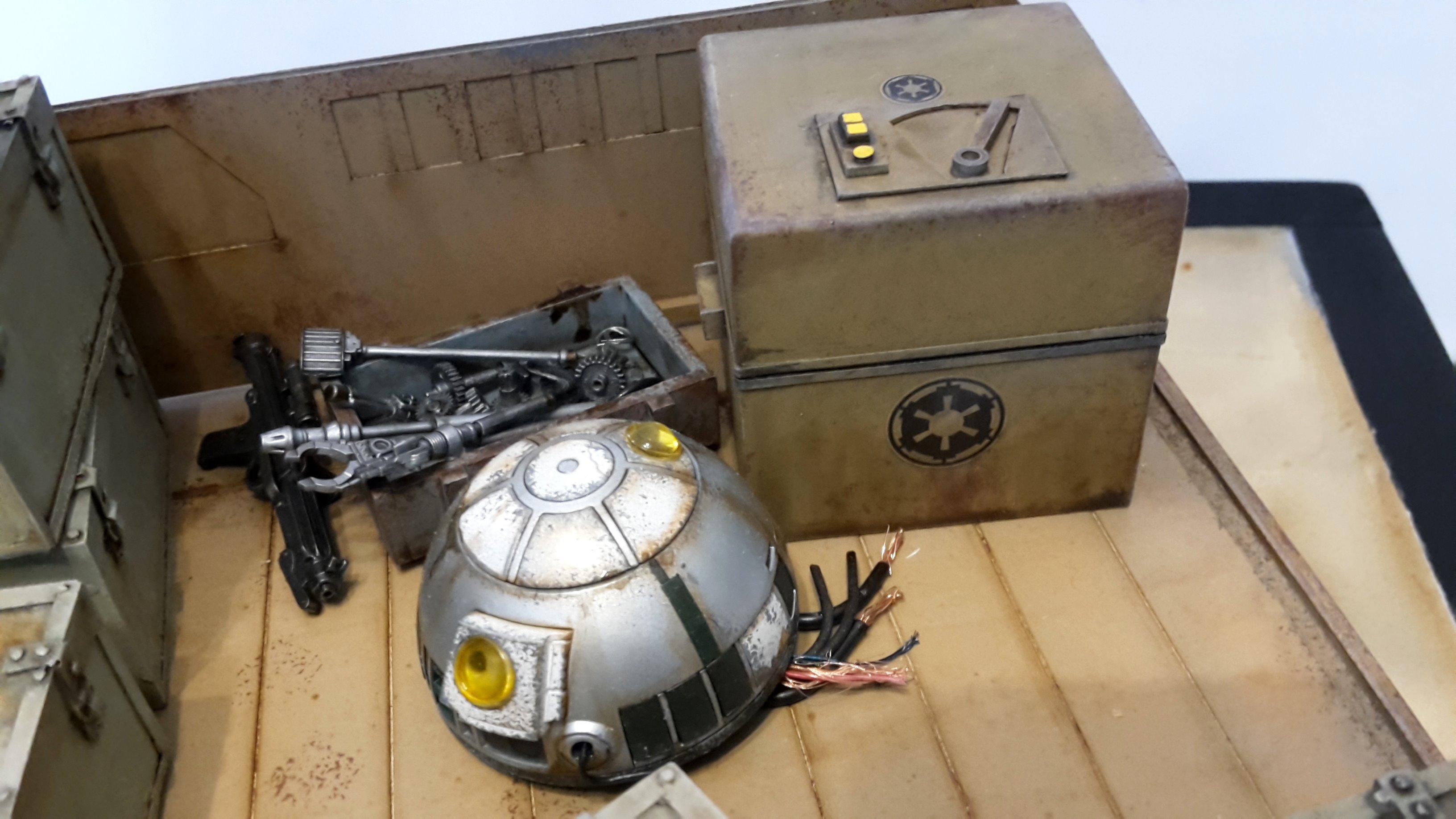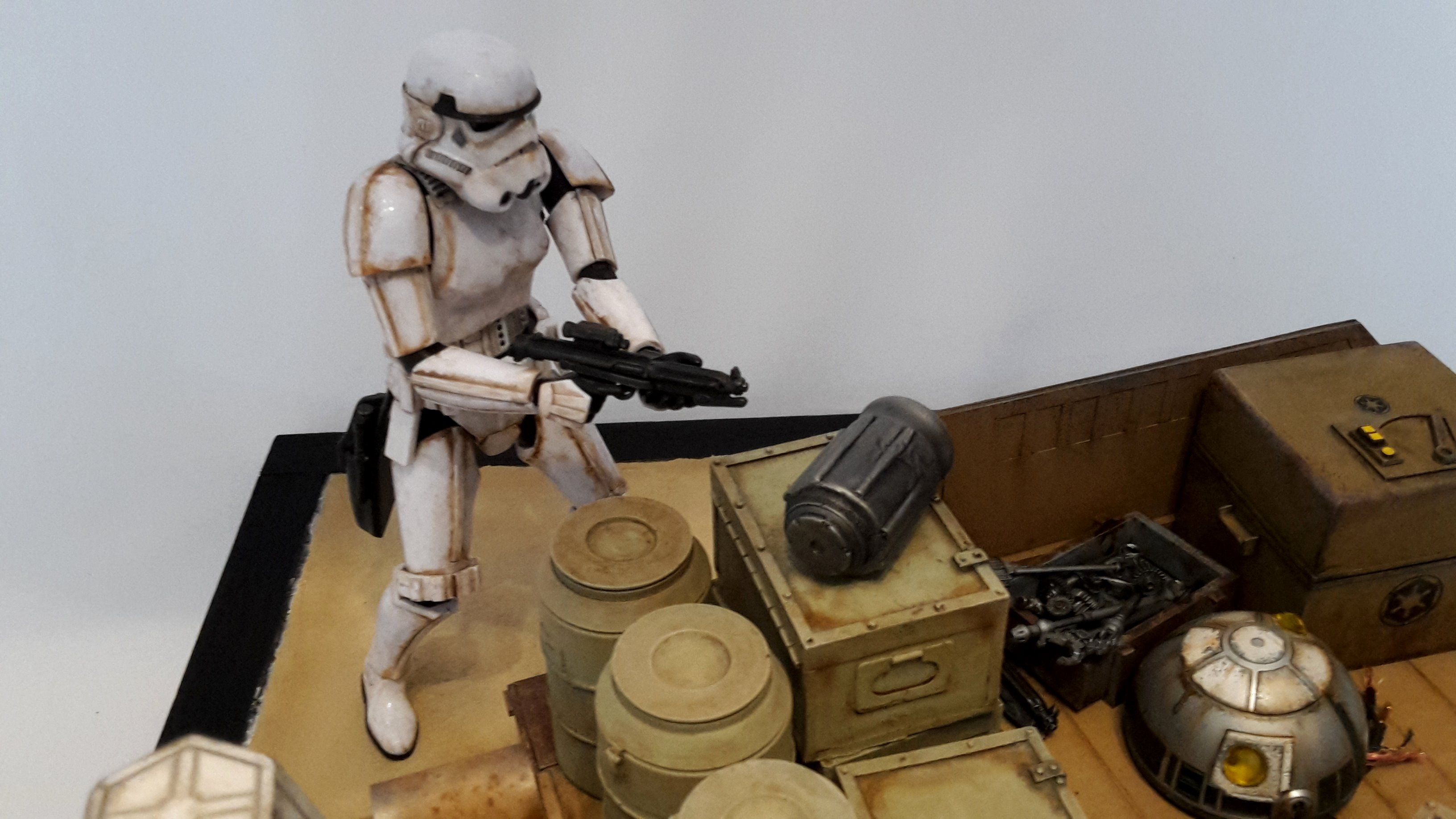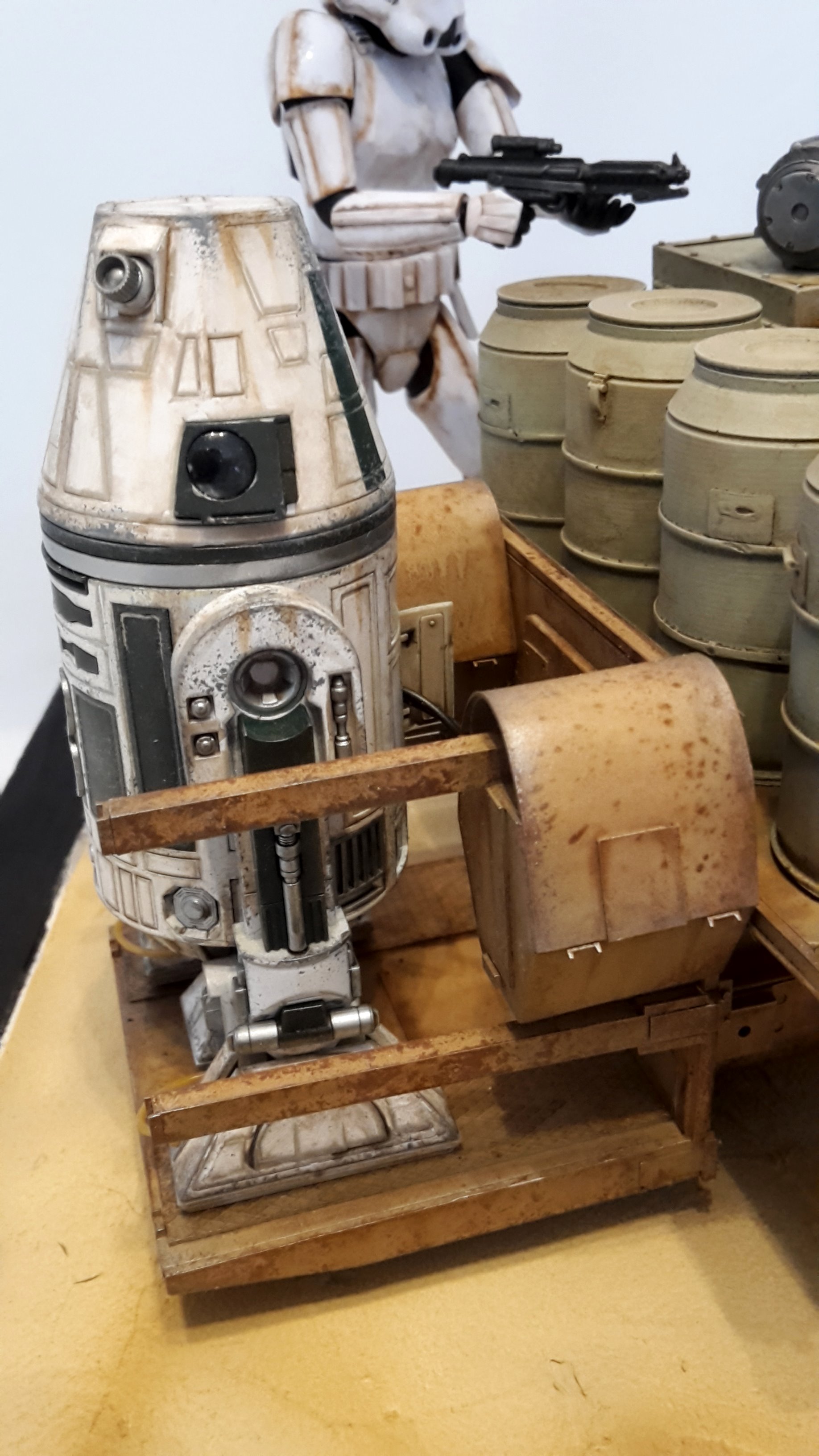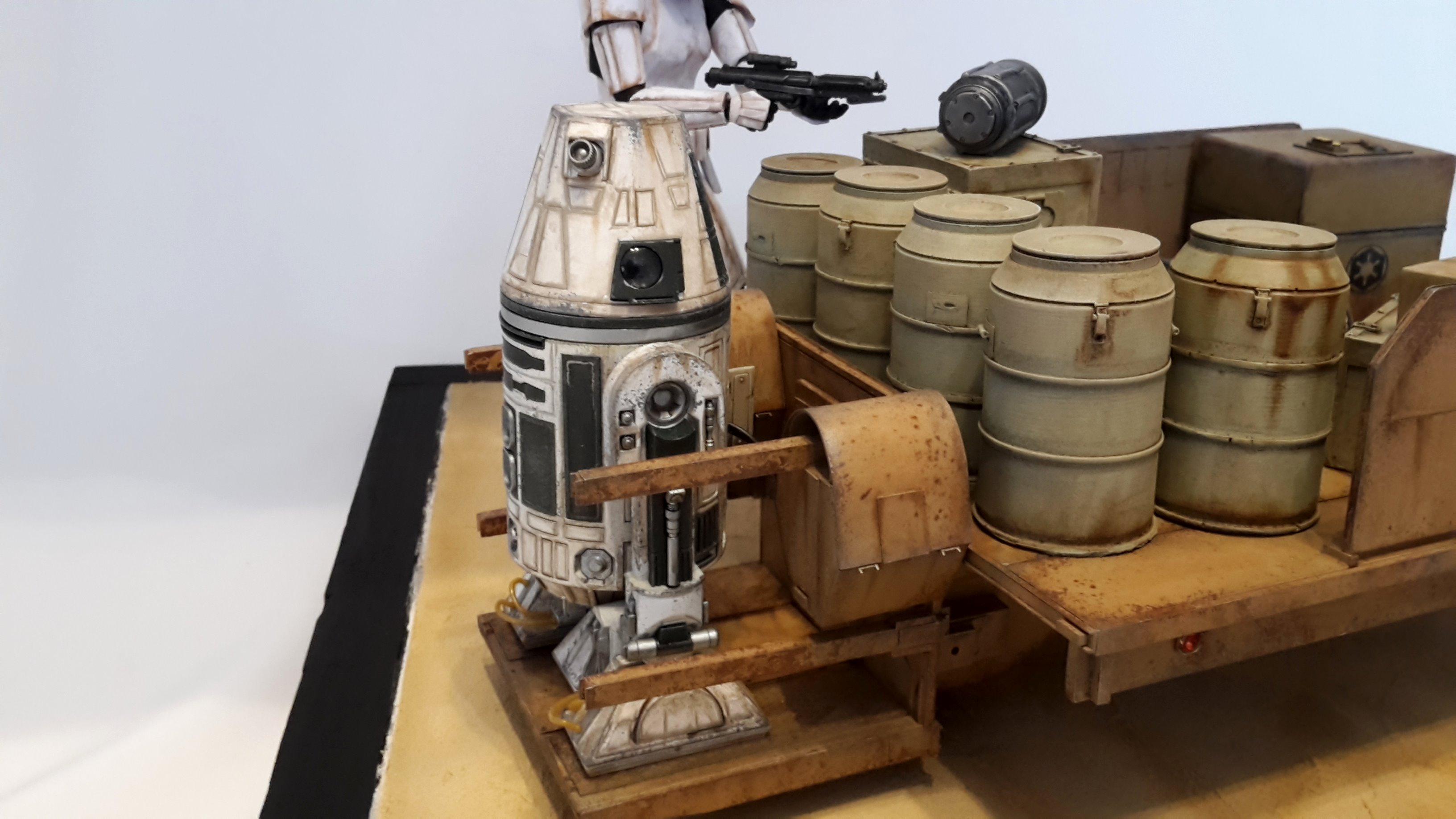 Here is my new model creation, a small transporter that you can seen in the Mandalorian series on Disney+! It’s a scratch built model, with the Droid and Stormtrooper being from the 1/12 BanDai models.