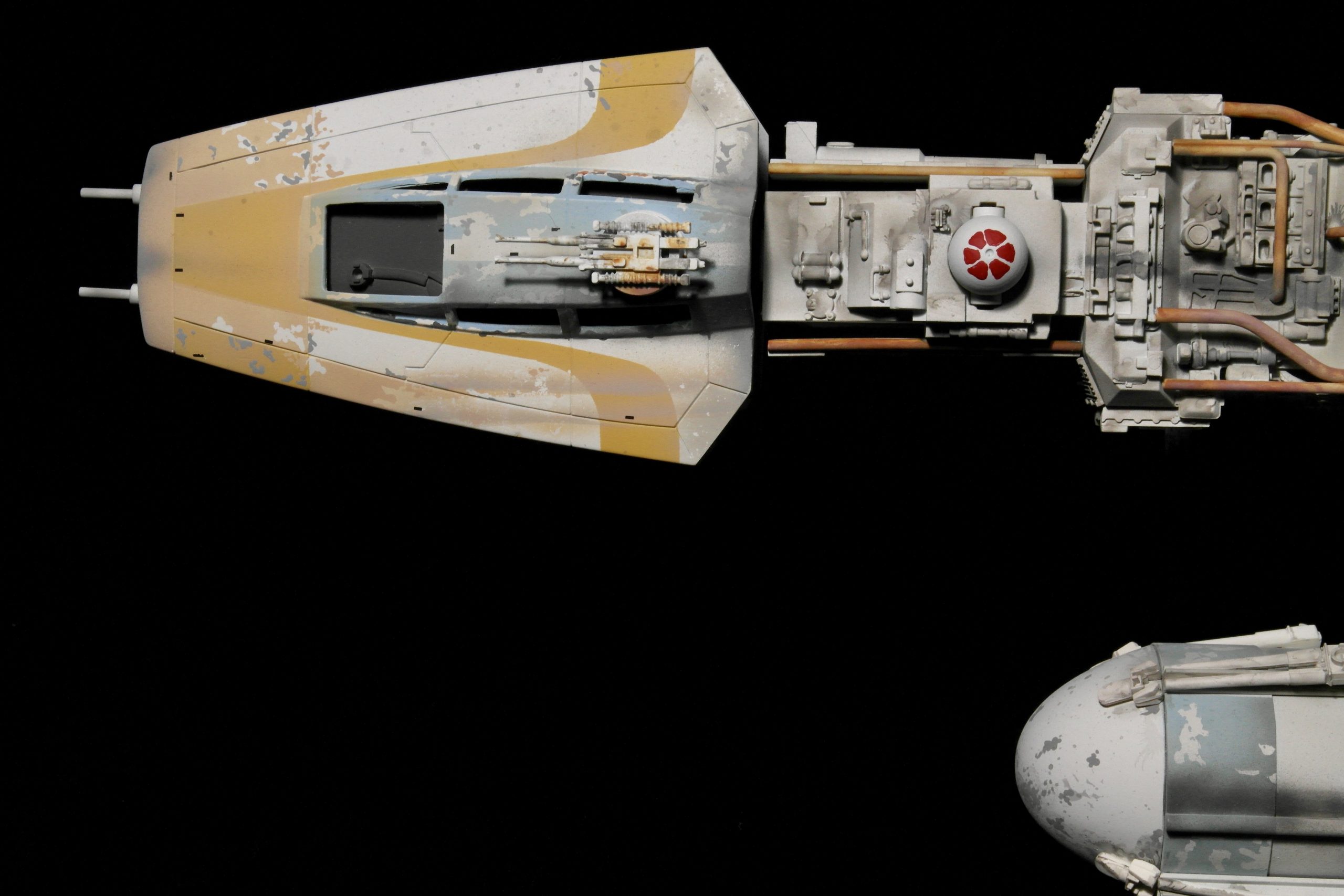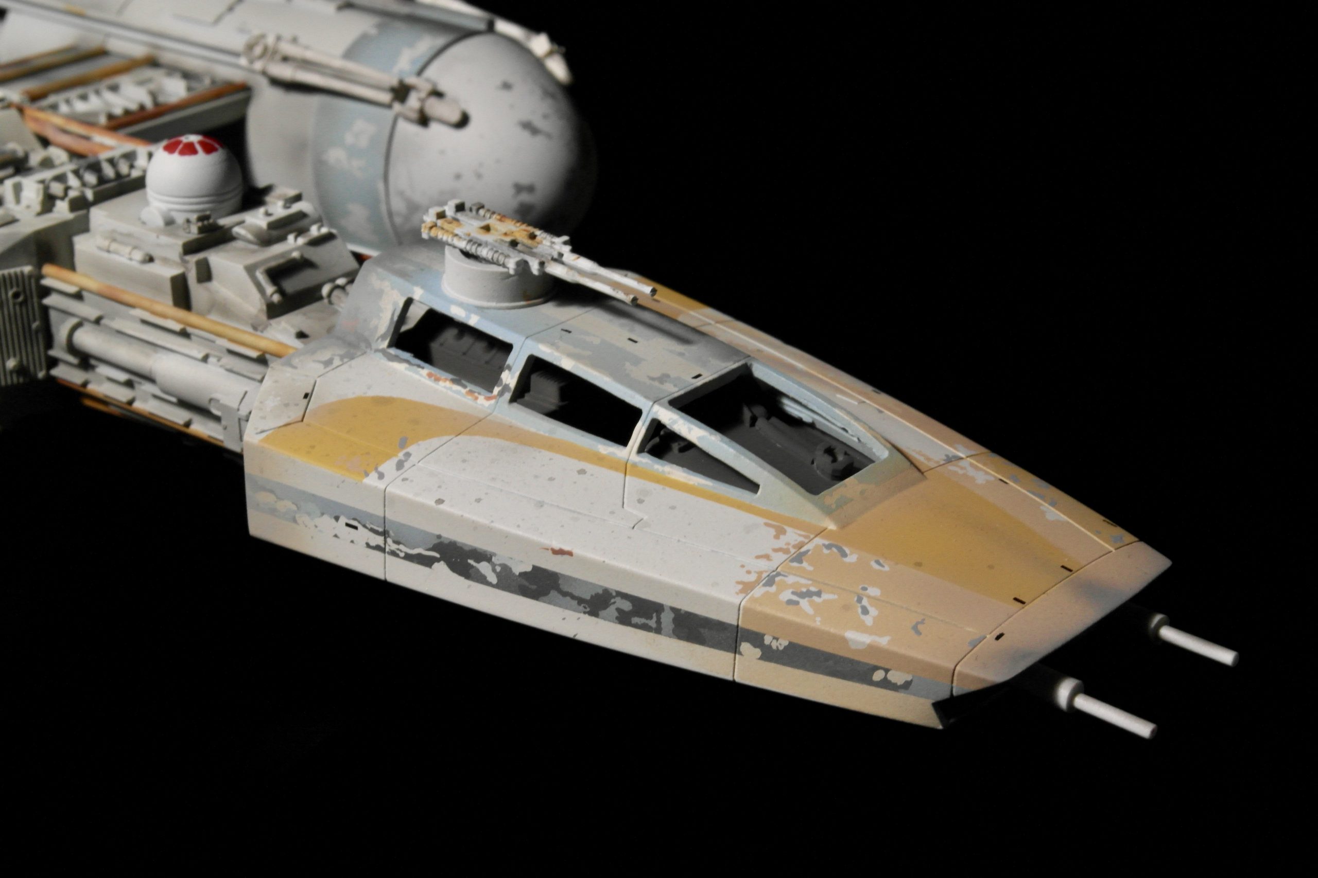 This model was purely something that happened by way of my error and I thought it would be fun to swap out a few details on the hull and the canopy guns, and paint it, as if it were the much larger Star Wars Hero model.