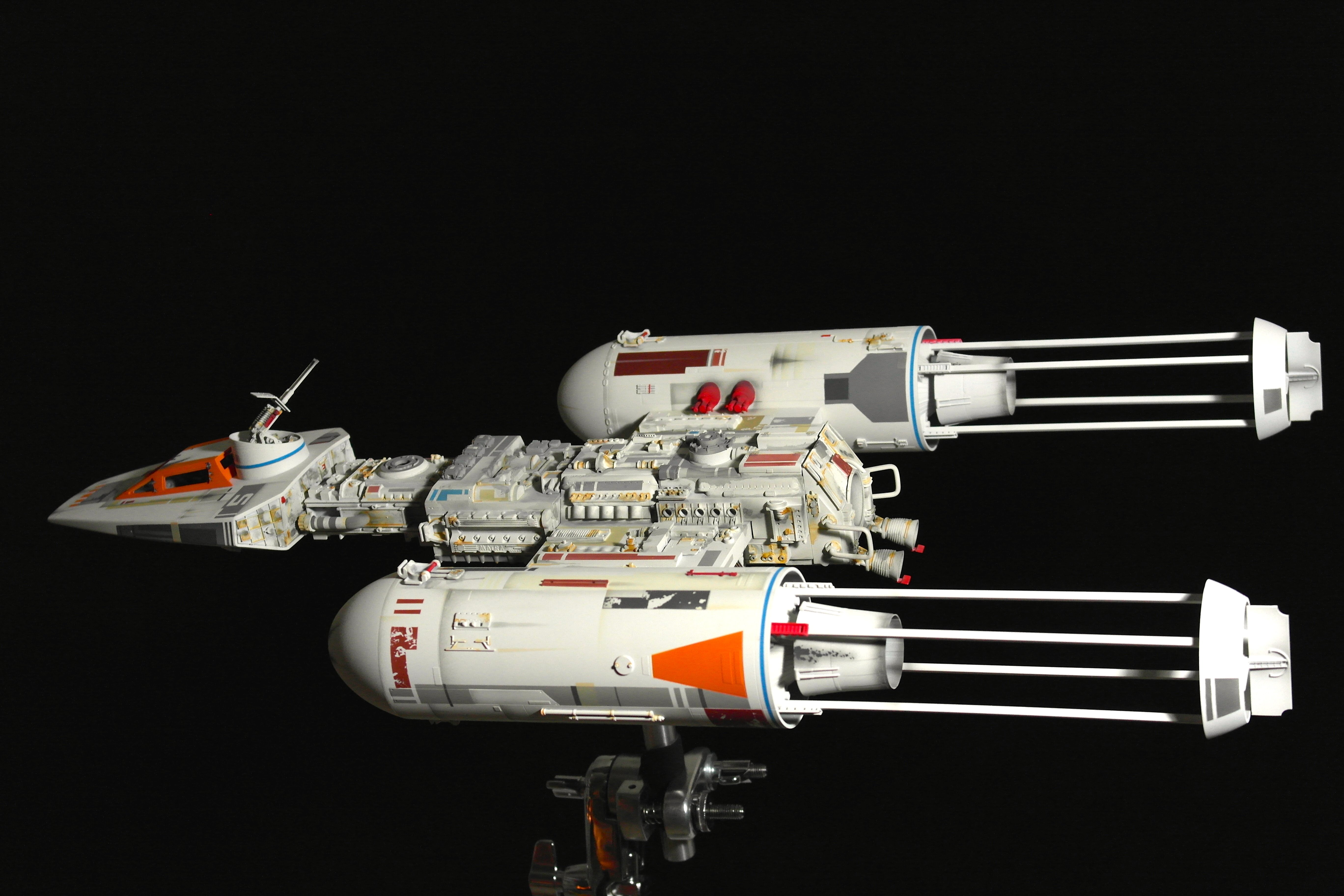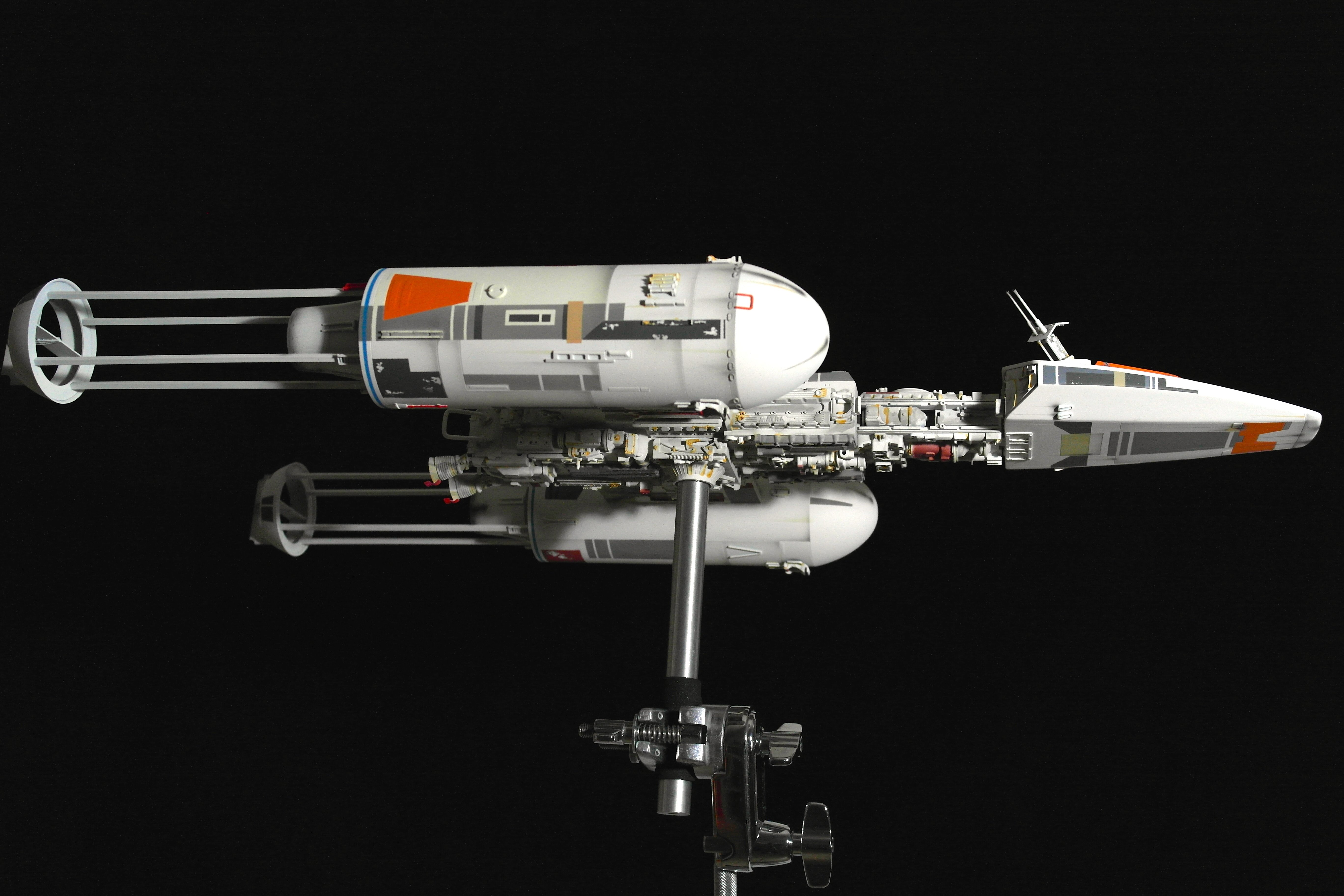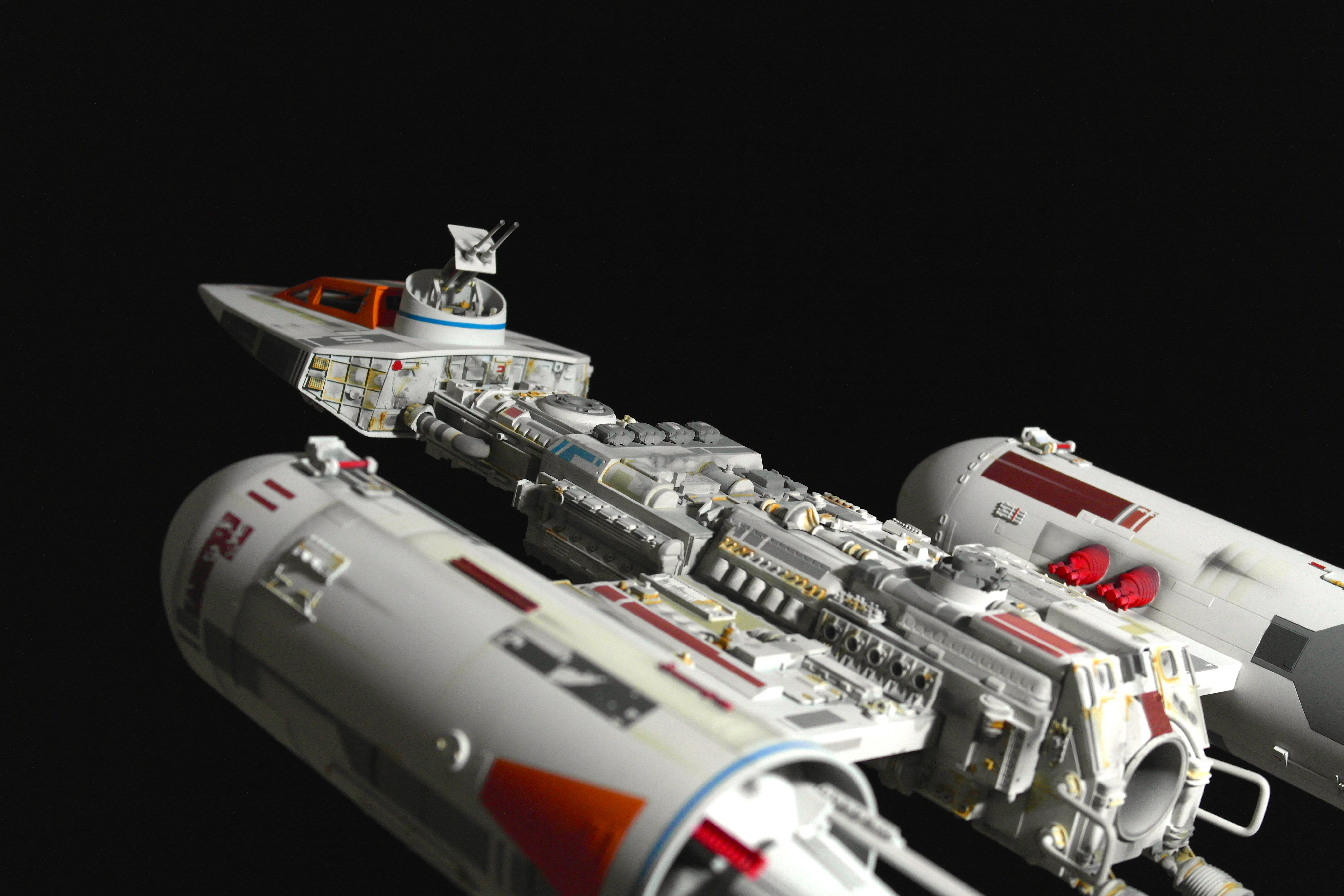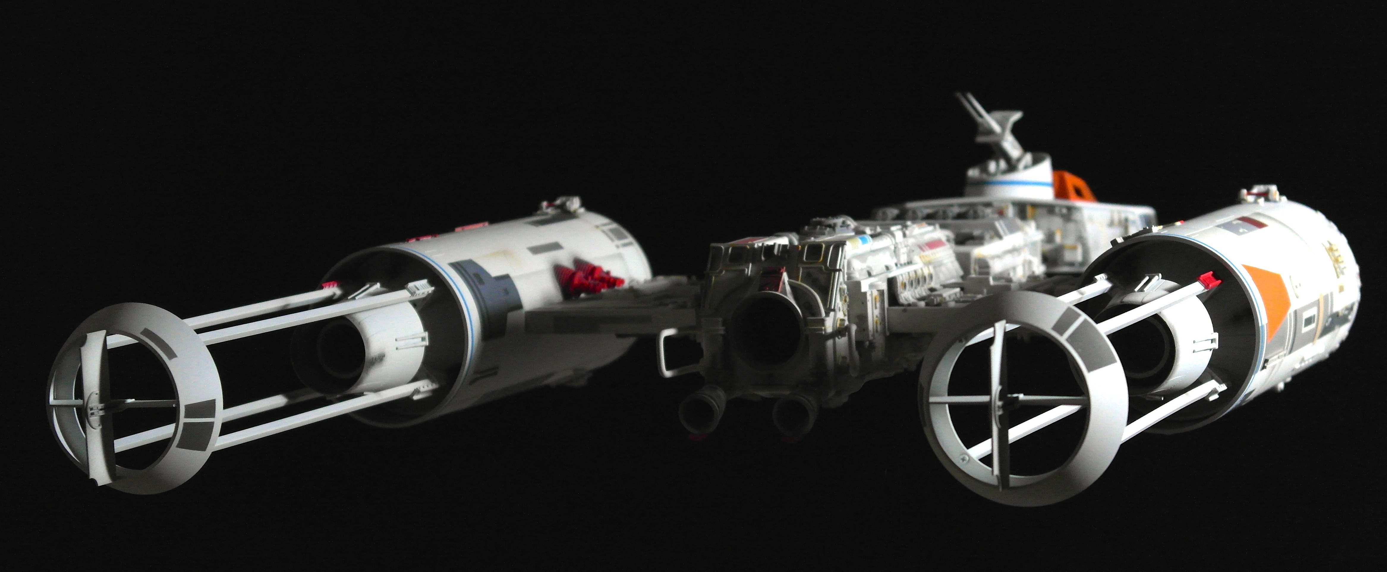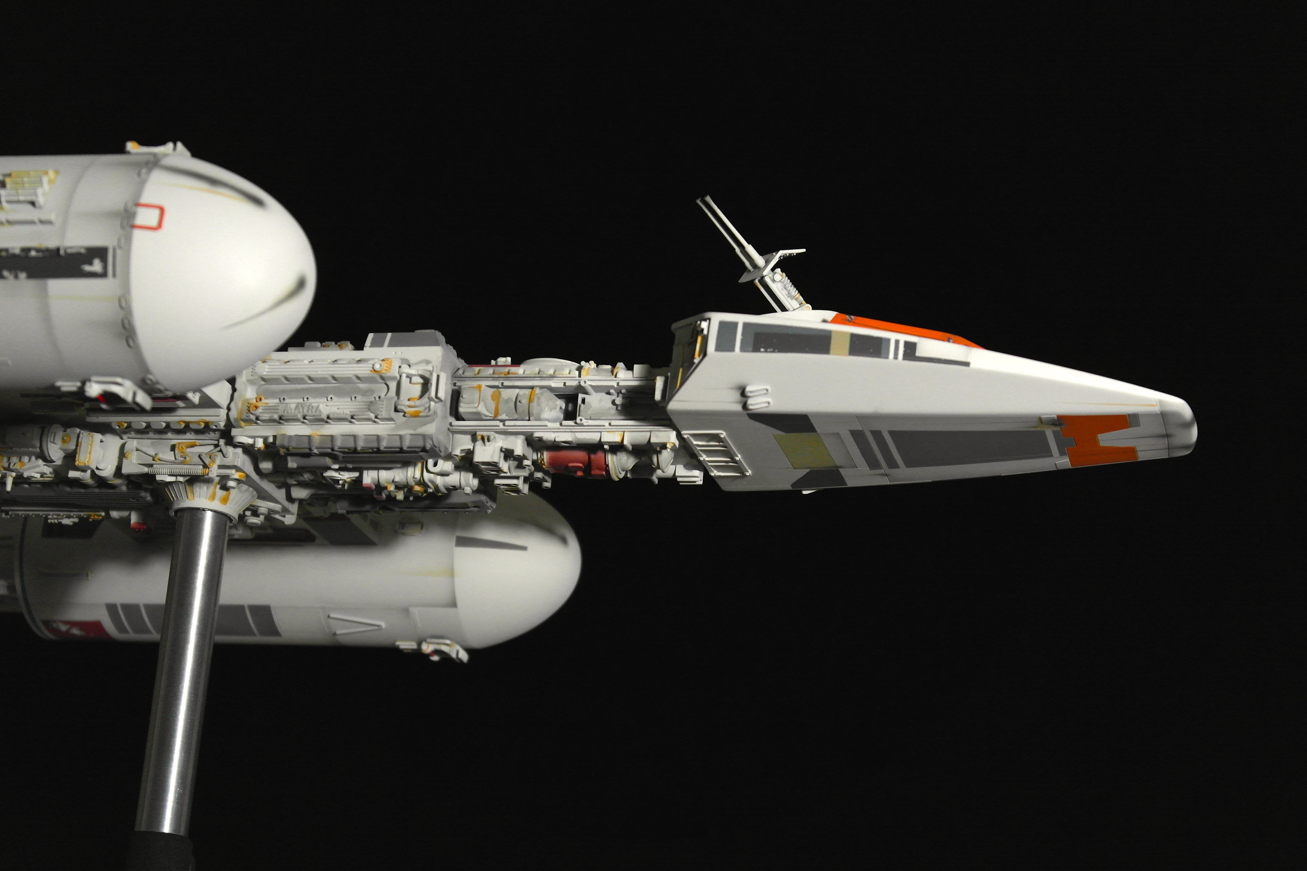 The only answer, was to weather the hull, in a very topical way, using extremely thinned SP Dark Lark Grey, in the style ILM used to weather the actual filming miniatures, using the airbrush to spatter and wash this thin mix around, but just enough, as not to darken its very white tones too much. Some details were very boldly painted with Caboose Red, a very big nod to the works of Colin Cantwell.