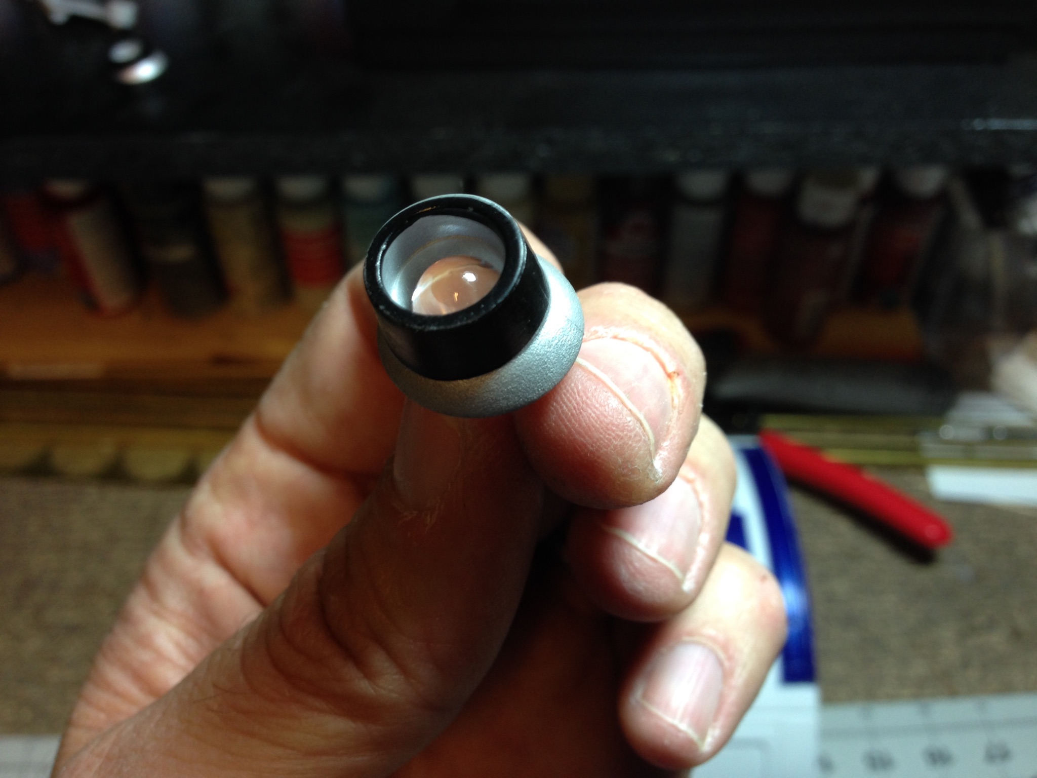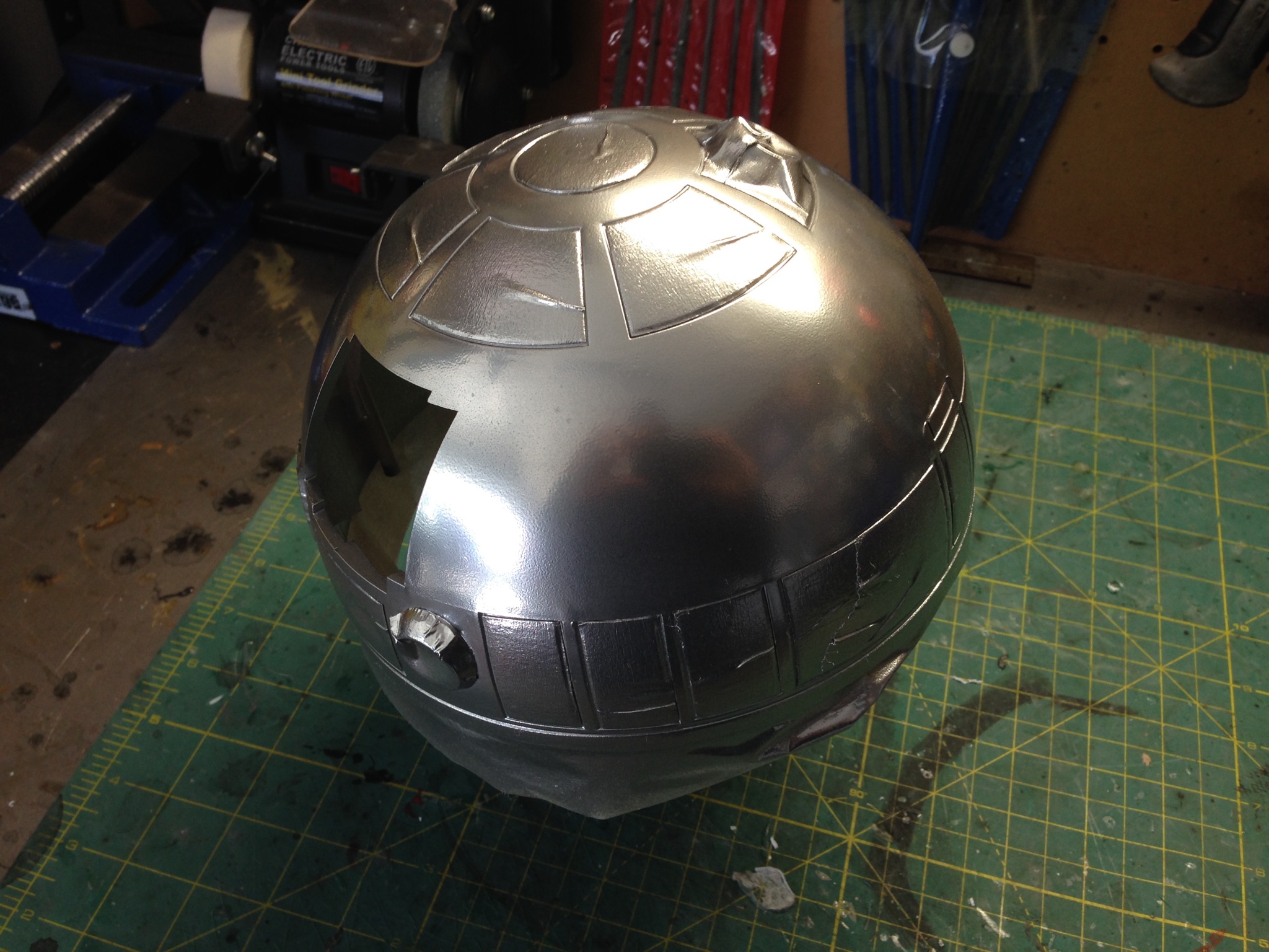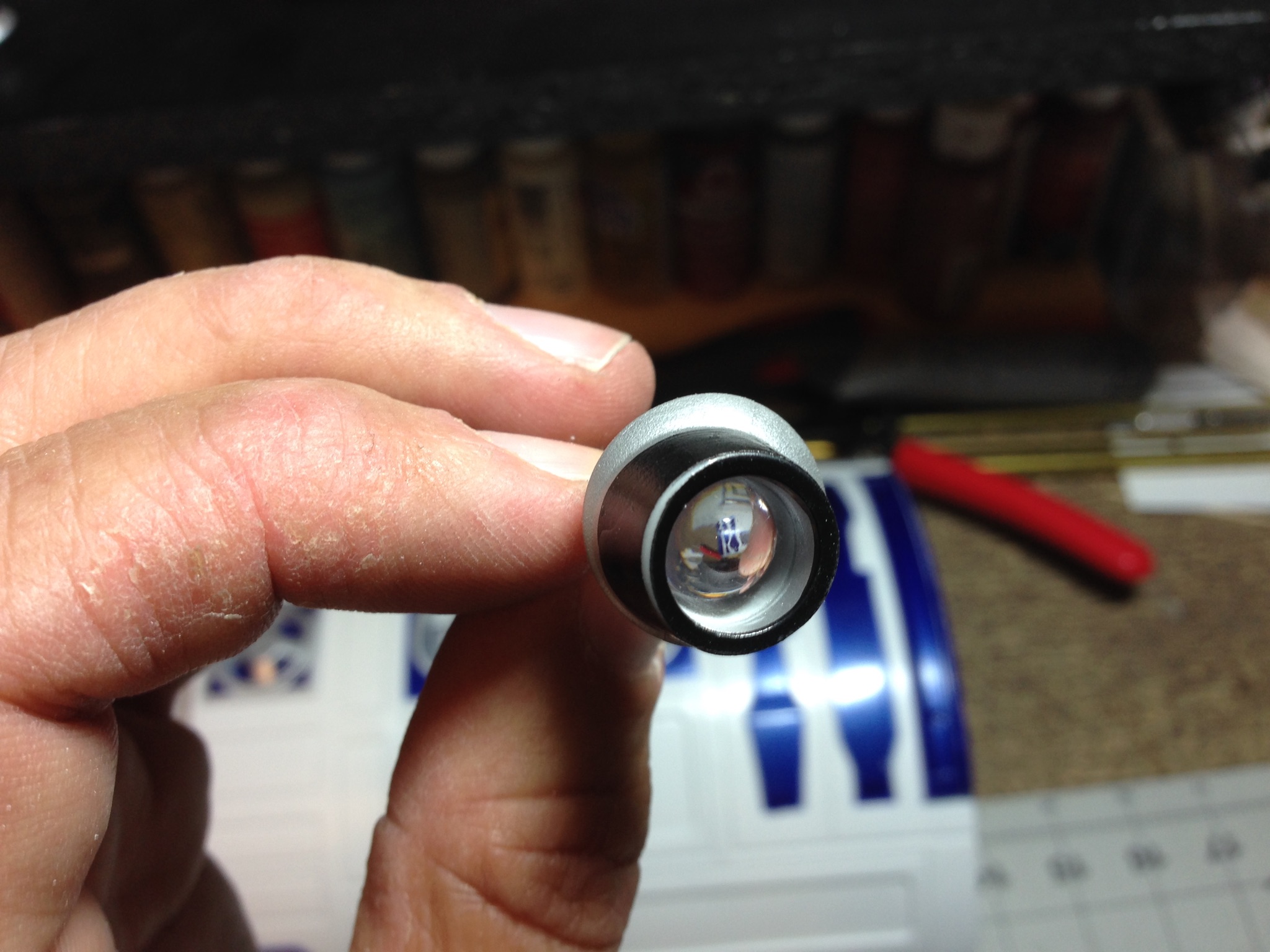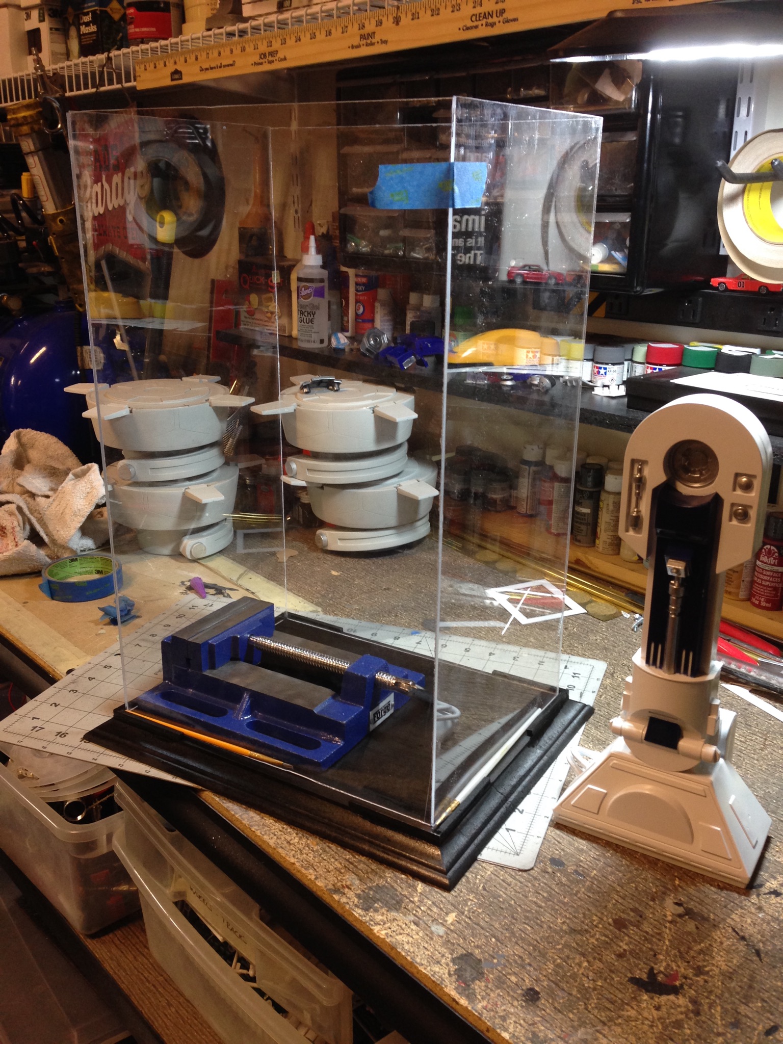 Artist Marc Elkins is not new to his improving of toy, model and prop releases! If you ever get the chance to visit his shop, you will know what I mean…. it is like science fiction AWESOMENESS! Like this re-do of the newest R2-D2 HUGE toy! Note the photo of the older toy that has electronics in it compared to the new toy that does not have electronics, but is much larger! Marc did a great job updating this to be a fantastic showpiece! Even his custom made acrylic case is magnificent!