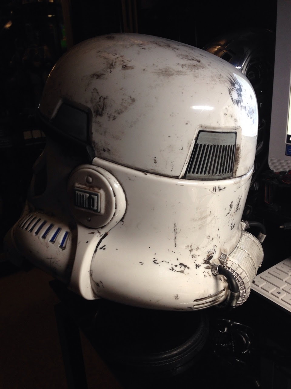 This is beautiful! The Black Series TOY Stormtrooper Helmets are fantastic enough on their own, but that isn’t enough for artist Marc Elkins. He always converts these toys into the much more desired replica that everyone wants. Marc even added his own take on what Sandtroopers may have eventually had on their helmets… a filtration system for the harsh environment they opperate in. Fantastic work Marc!