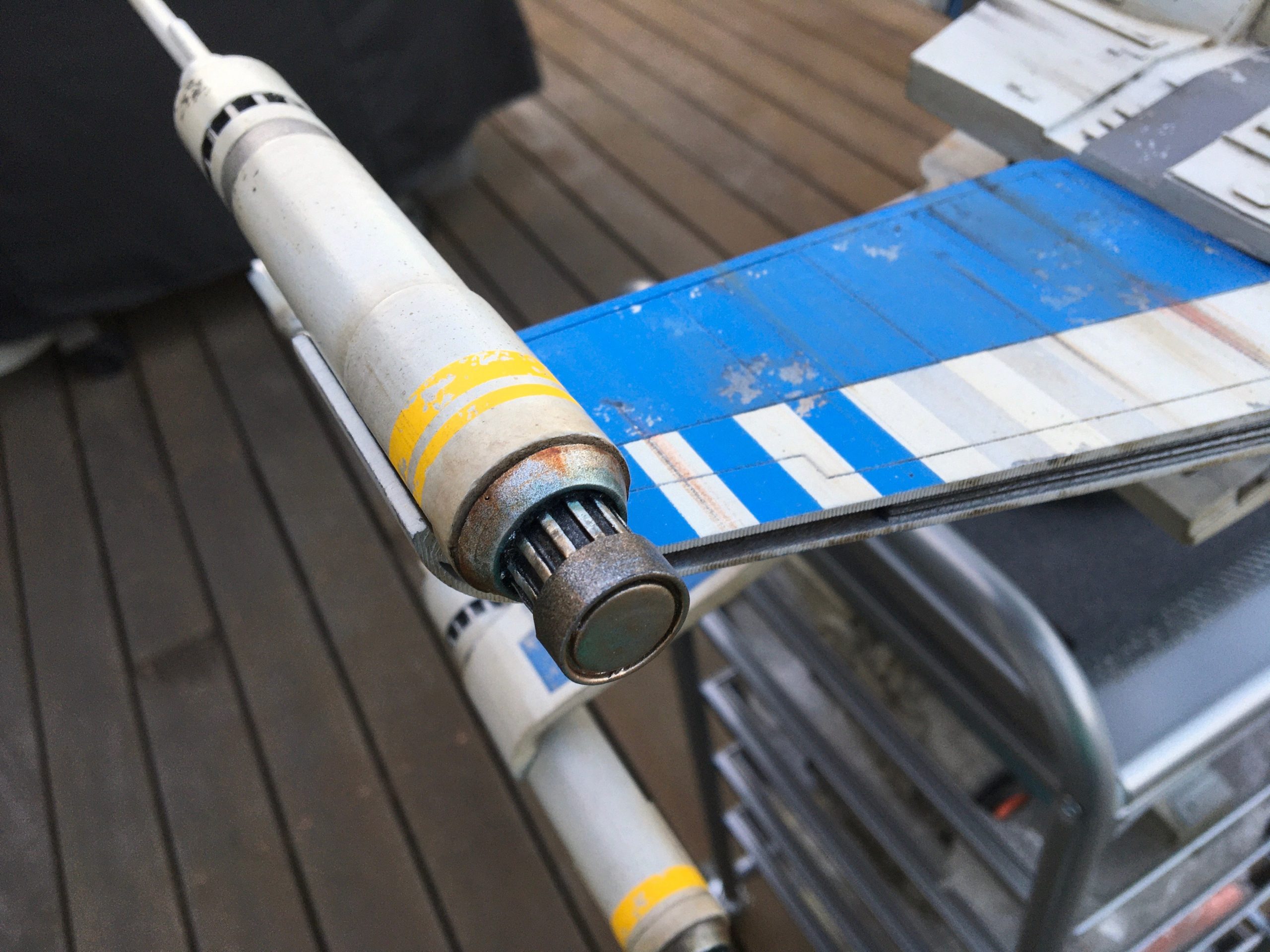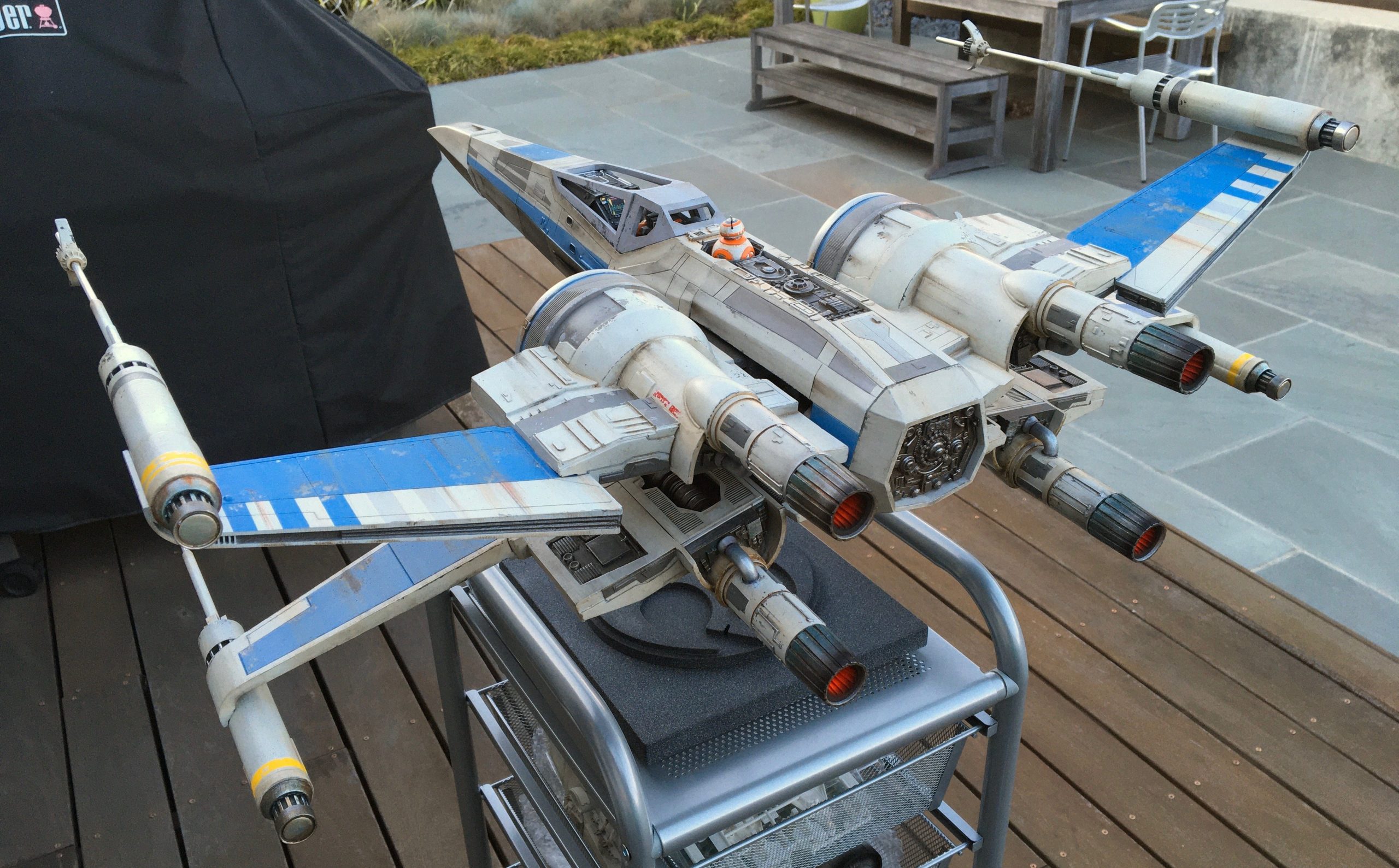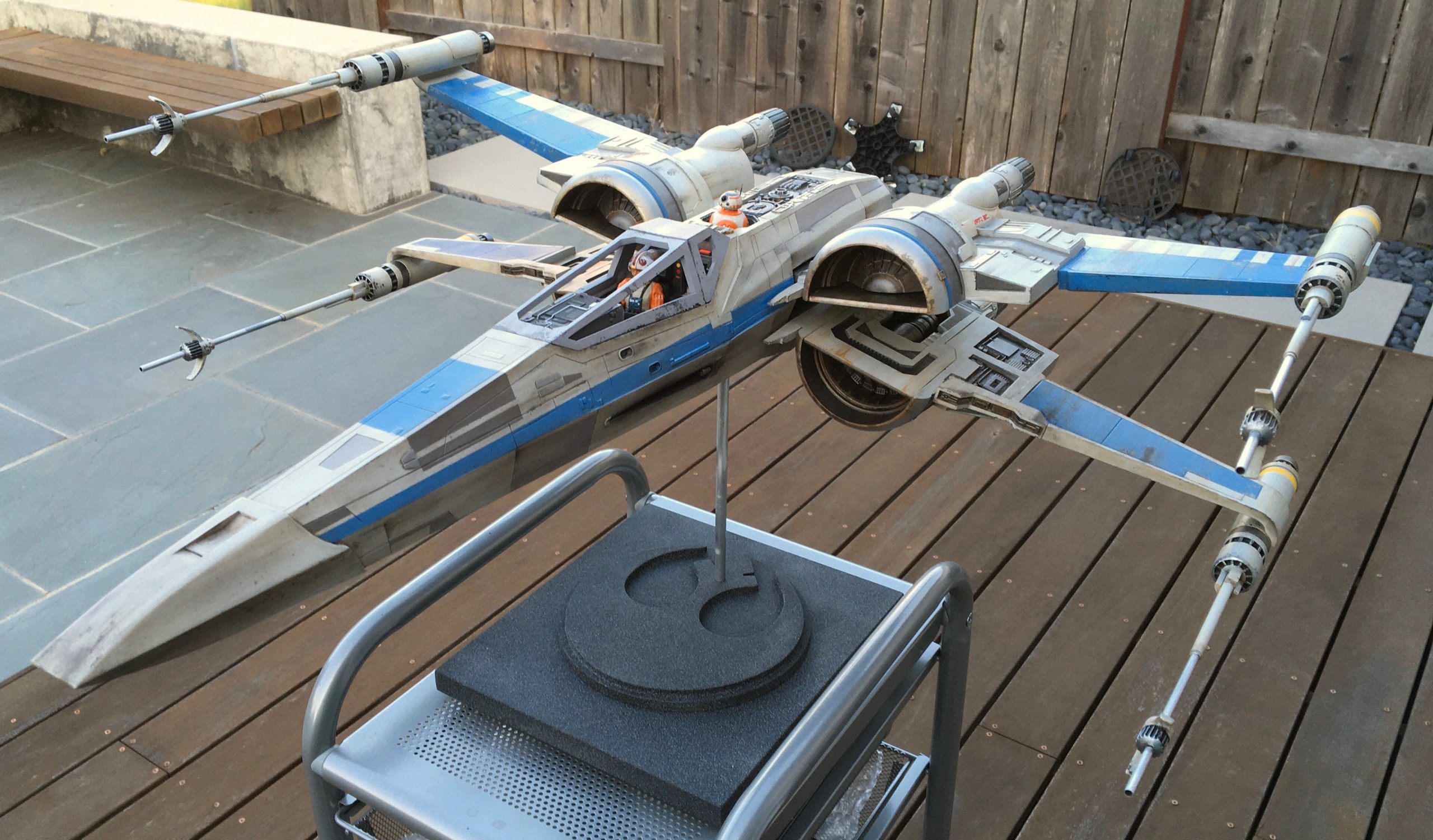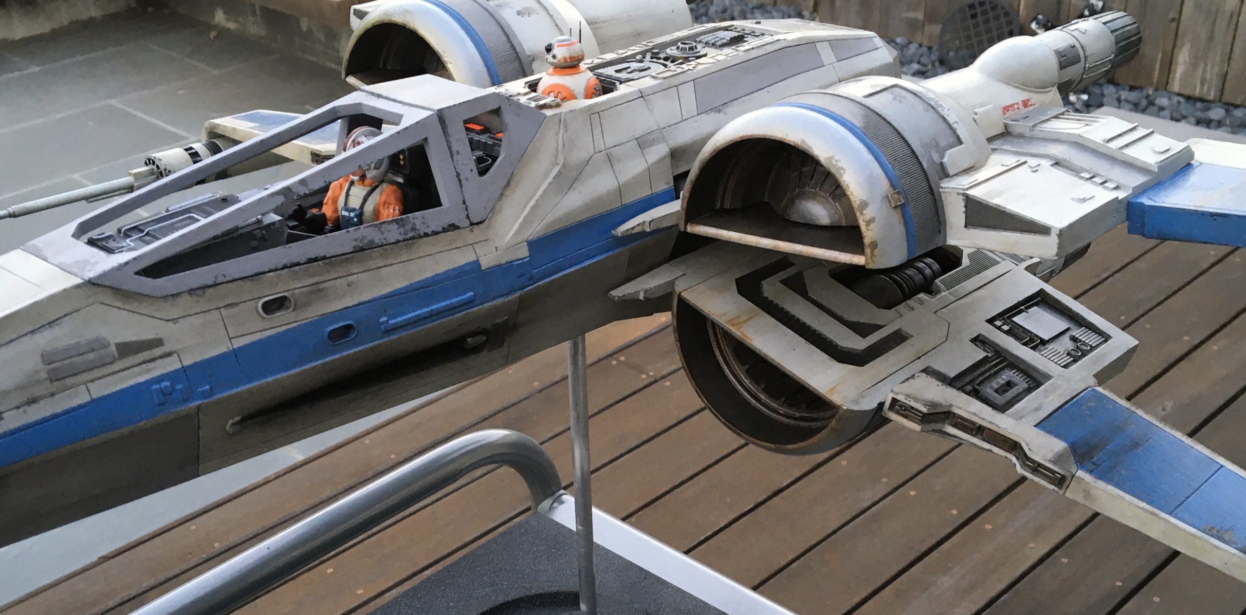This is a Tony Celliers Dynamic Digital Creations 1/17 T-70 X-Wing kit. My initial reaction reviewing the build doc was that it was going to be a tough build, but once I started the build, it turned out to be the opposite. Fact is, there aren’t really that many parts to the kit and the build is quite fun and not complicated. Kit has resin castings as well as 3D printed parts. The wings and interior wing mechanism is 3D printed. The fuselage section was made from two parts top and two bottoms, and I wanted everything to blend in so filler was used. I didn’t like the nose “cone” detail because it seem too large so I used the disc sander to shave it down closer to the fuselage profile. The Hobby stores were closed due to the virus so I went to Home Depot to buy off the shelf spray can primer and paints. While I followed the paint scheme from the movie, I didn’t bother to follow the colors exactly to the movie, especially in the case of the pilot which was something I purchased from Falcon 3D. The Small paint details were airbrushed with Tamiya and the bulk of the weathering was done with budget oil paints. Prismacolor pencils were also used to “paint” weather streaks. I didn’t want X WING FIGHTER on the base so I filled it. Also, I find the base too small a footprint to support the ship which is heavy, so I went to the plastic store scrap bin to buy a larger base. This doubled the thickness allowing the aluminum rod to have more depth to insert into. Overall, it was a fun kit to build and highly recommended.