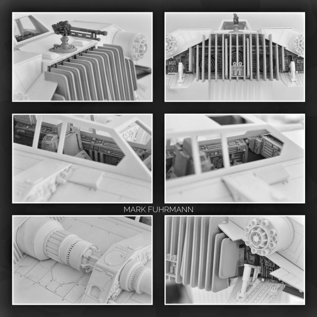 I wanted to have a big 1:10 studio scale model, like what they have used in the film. The model is about 55 cm (about 22 Inches) long, completely scratchbuild from styrene parts and I am building it for 6 month now (only building time) but started 14 month ago. Meanwhile I took an 8 month break from the build as I couldn’t see it anymore. 😉 Many parts needed to build twice because I made mistakes.