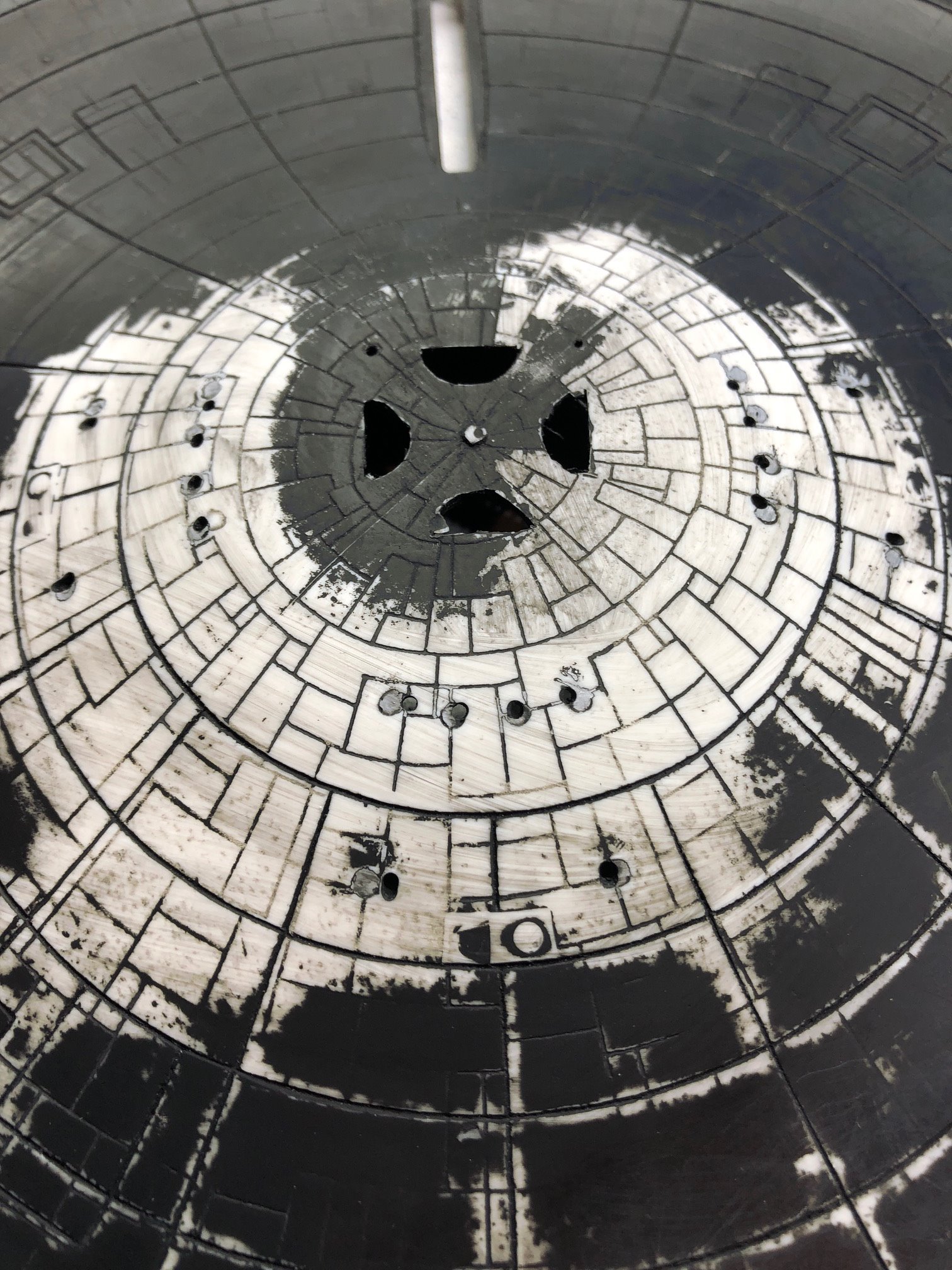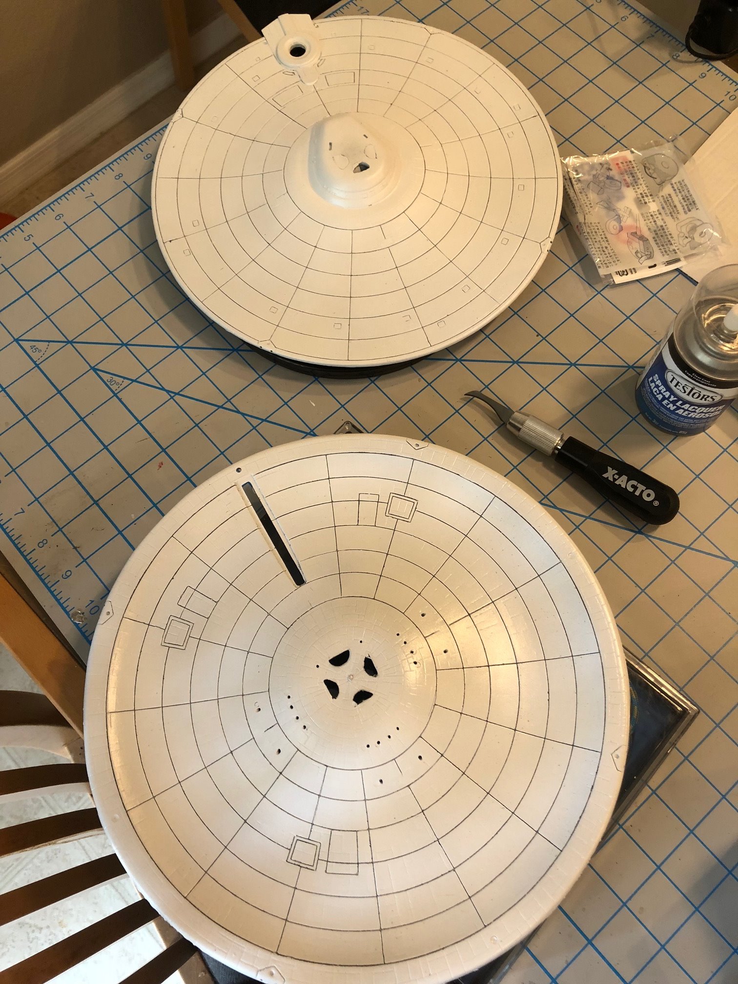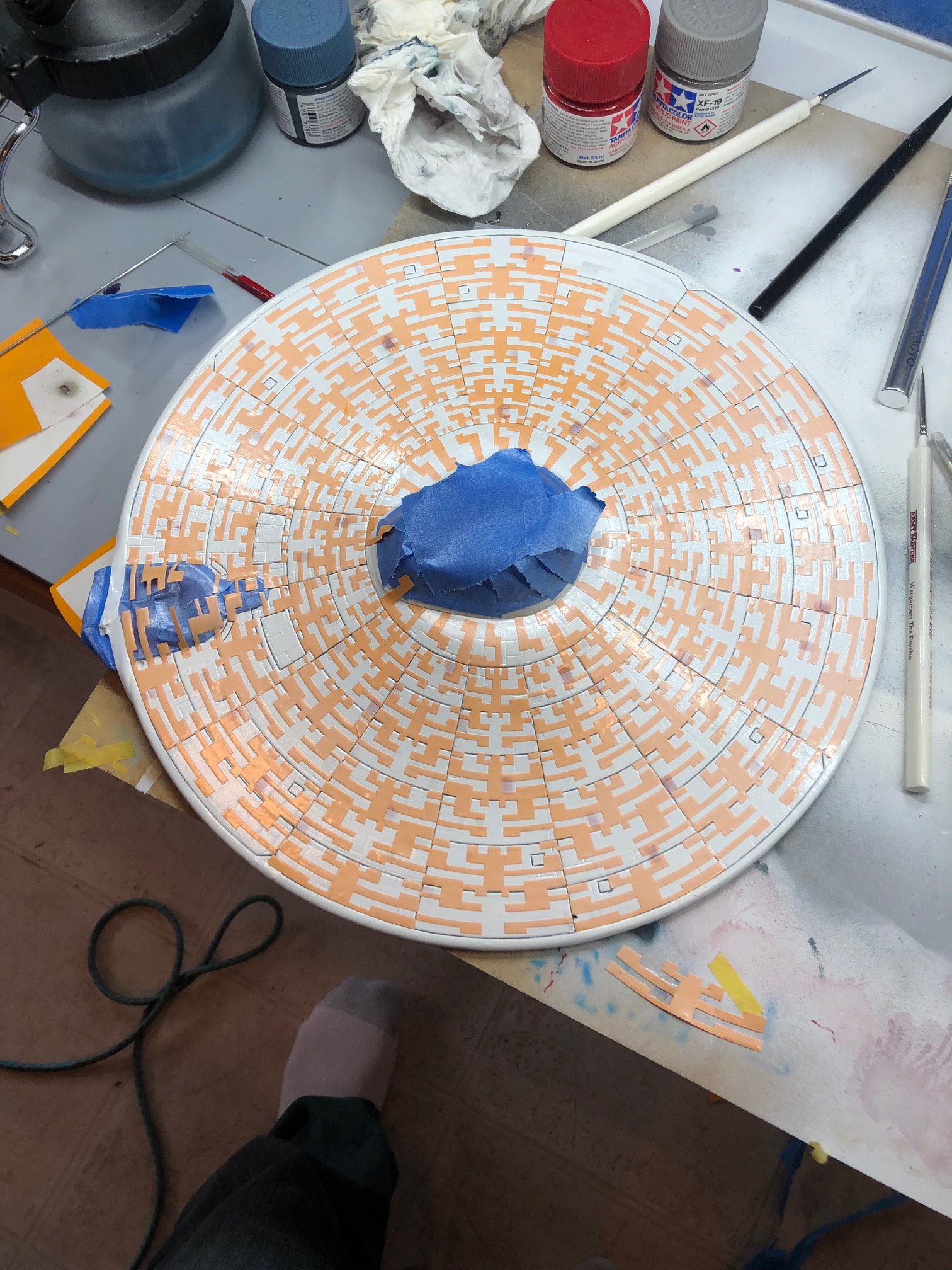 Artist Mark Tanner shows his Work In Progress (WIP) of the 1/537 AMT Starship Enterprise from The Motion Picture. Here he shows us the fill of the deep original panel lines, and the panel sheen difference in what is regularly referred to as AZTEC hull paneling for this miniature.