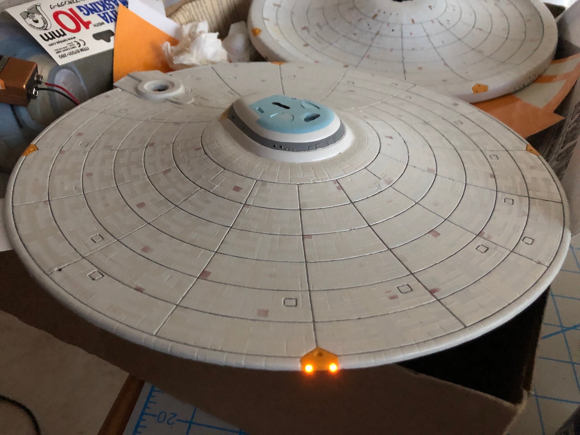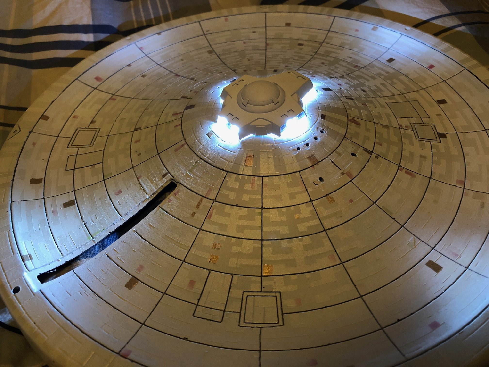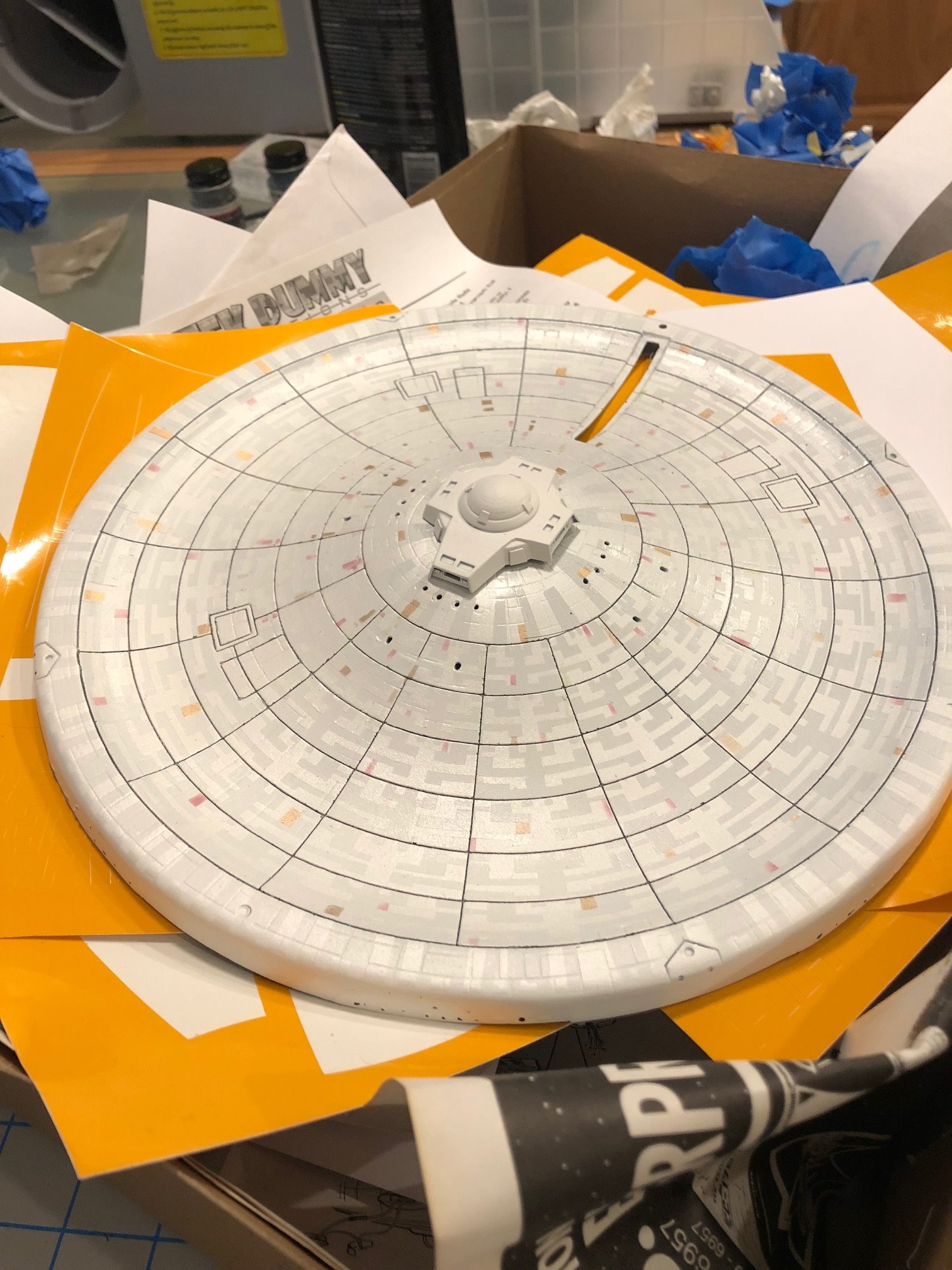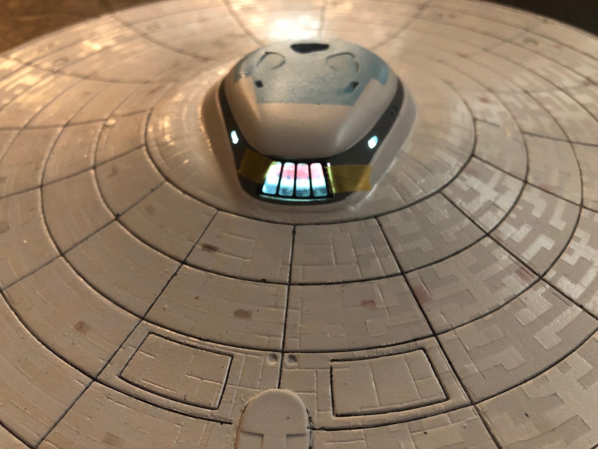 Artist Mark Tanner continues his fantastic progress on the AMT 1/537 USS Enterprise REFIT from Star Trek The Motion Picture! Look at the detail he is placing in with his aztec panel painting! I am looking forward to showing this finished piece.
