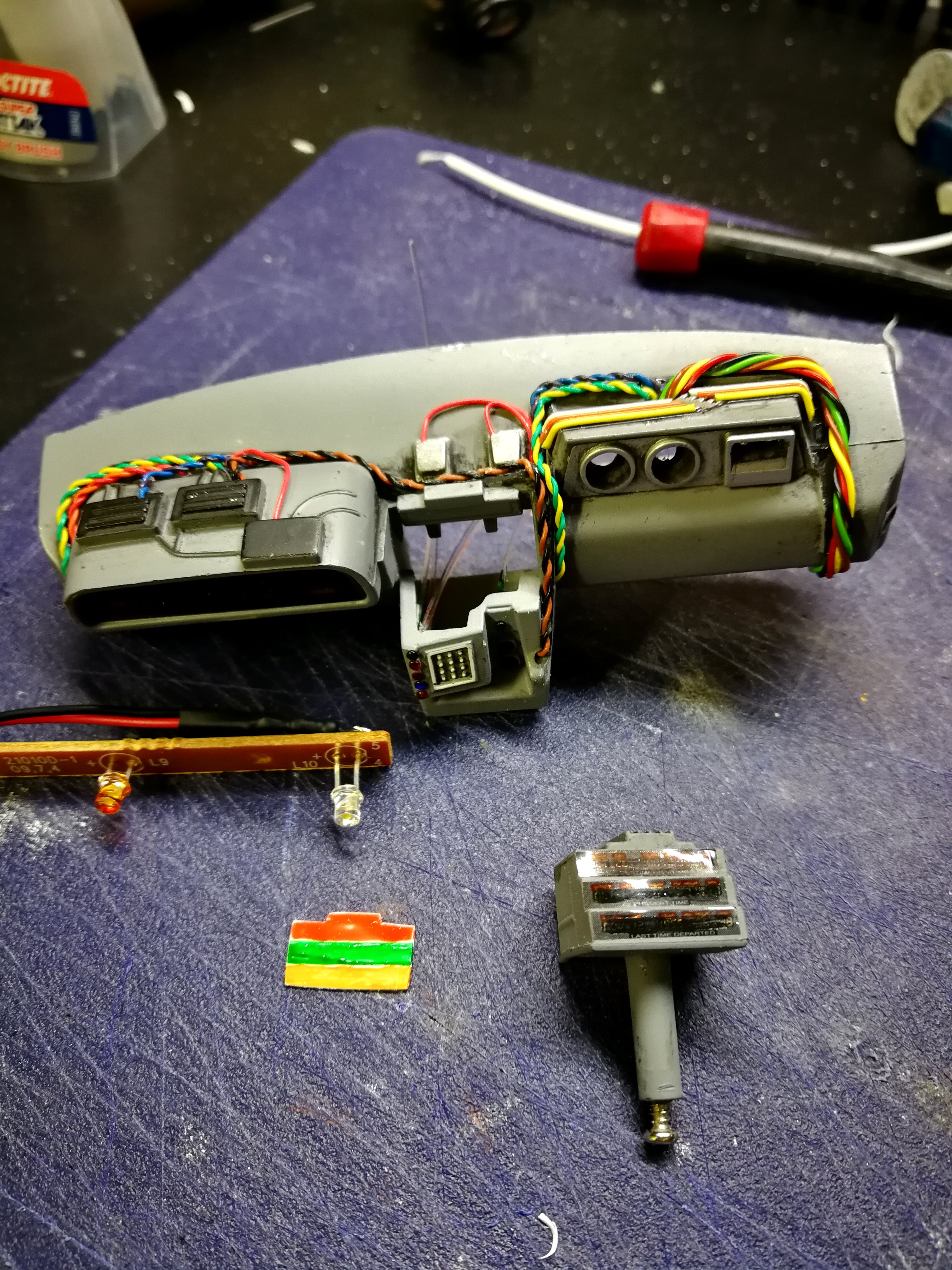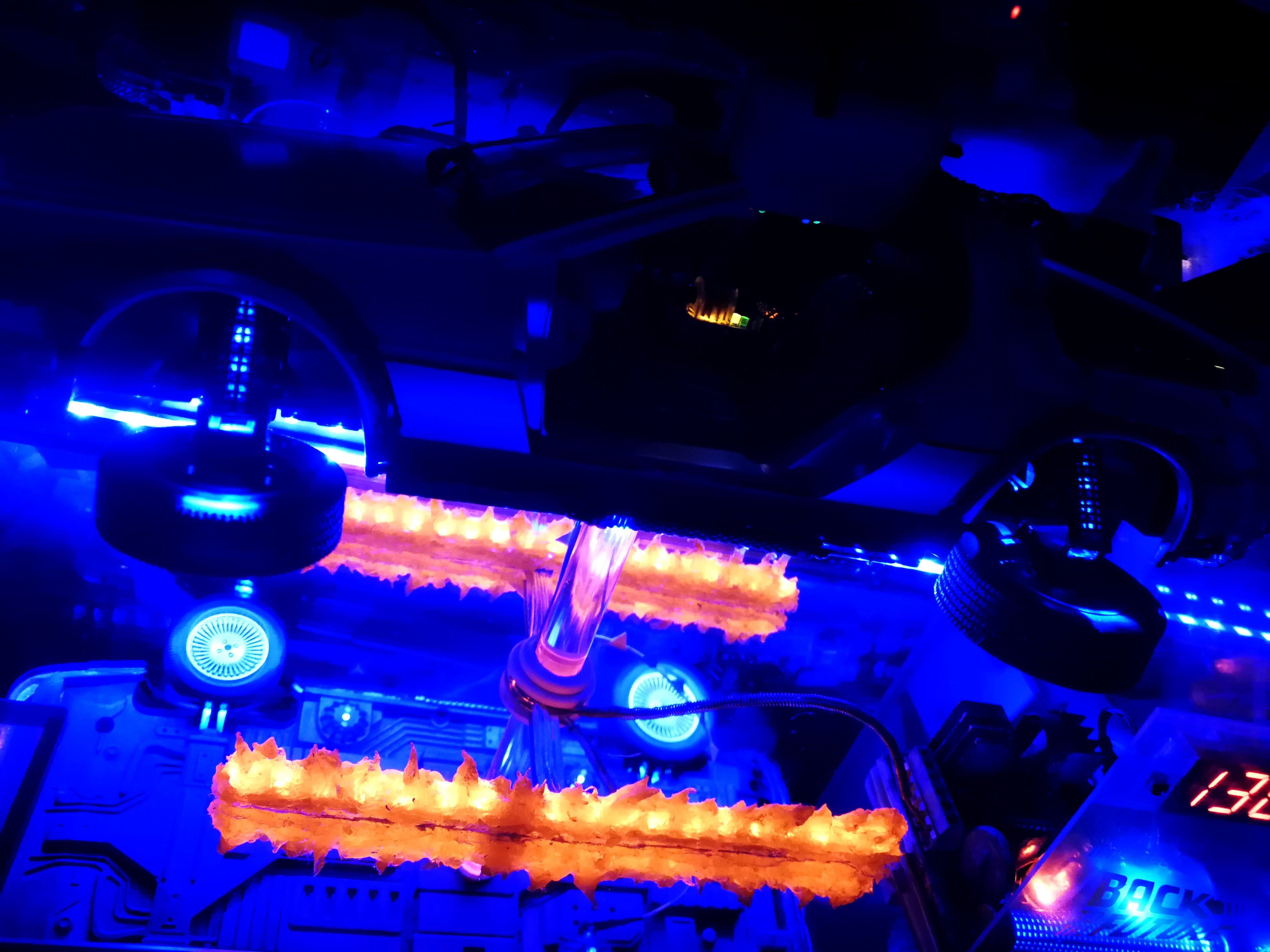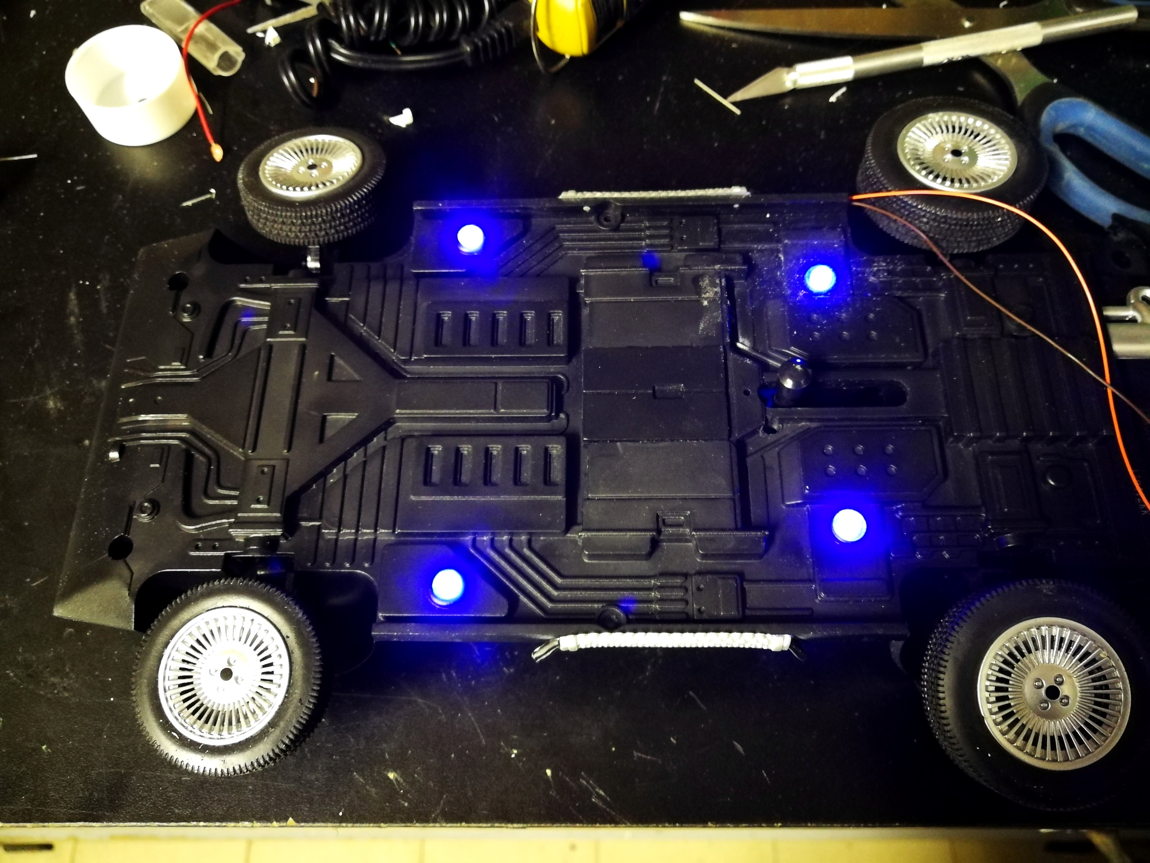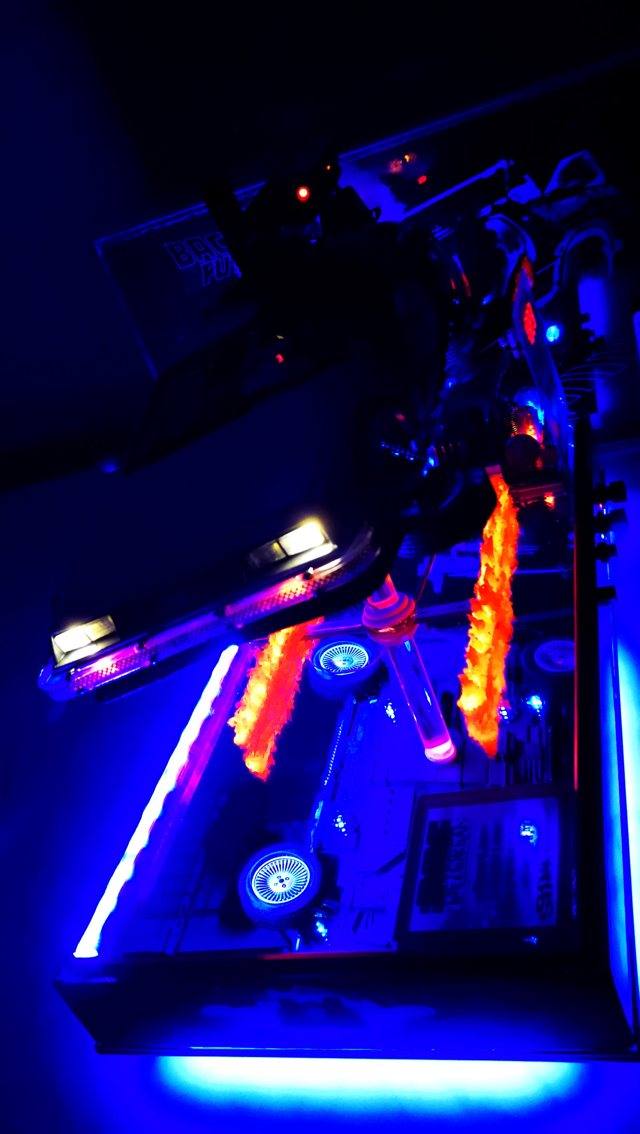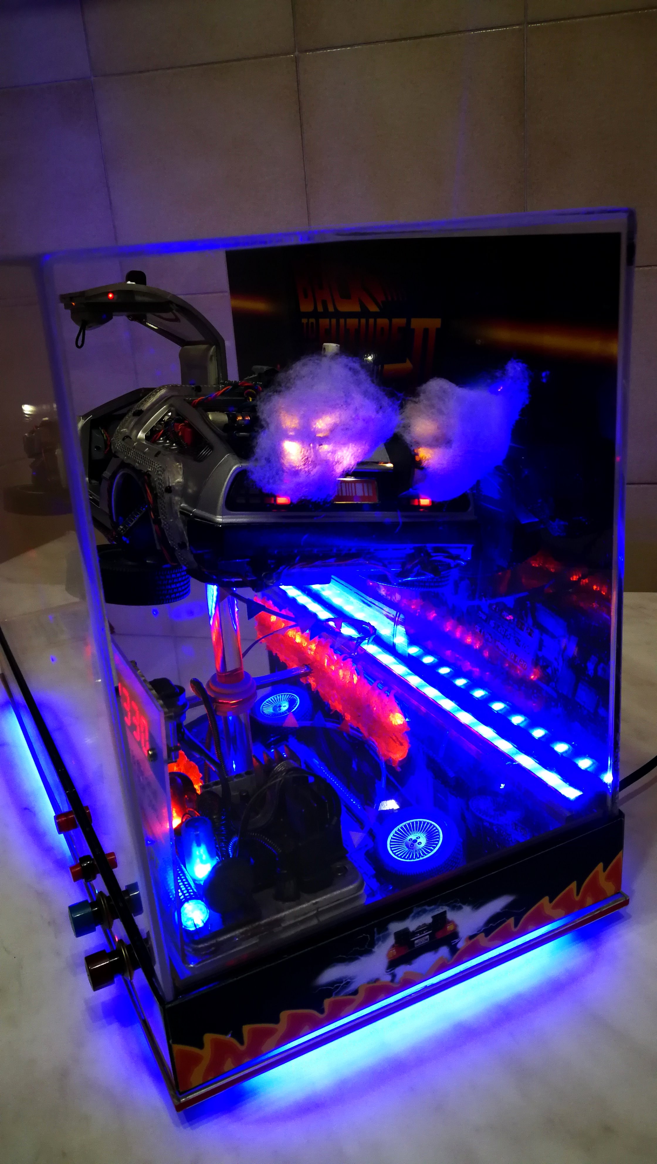 Diamond Select DeLorean model 1:15 modified with new lights and a dedicated stand. In the stand there is a working clock, lights and a memory card with multiple songs taken from the films back to the future. There are also some dialogues from the first film (in Italian). The original functions of the model (lights and sounds and flight / road configuration) are unchanged and the model also works with batteries. The stand and the stand graphics were designed and created by myself.