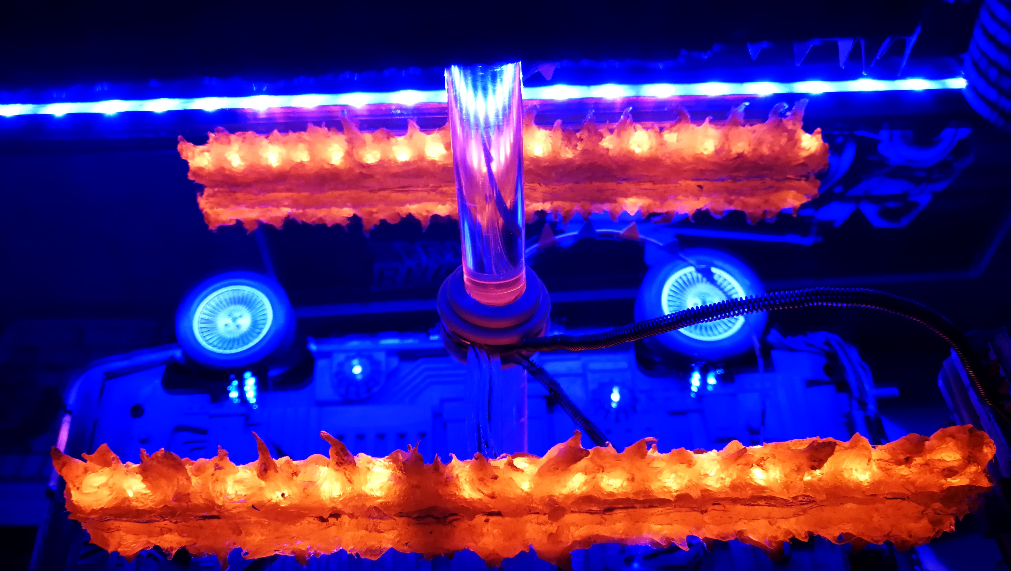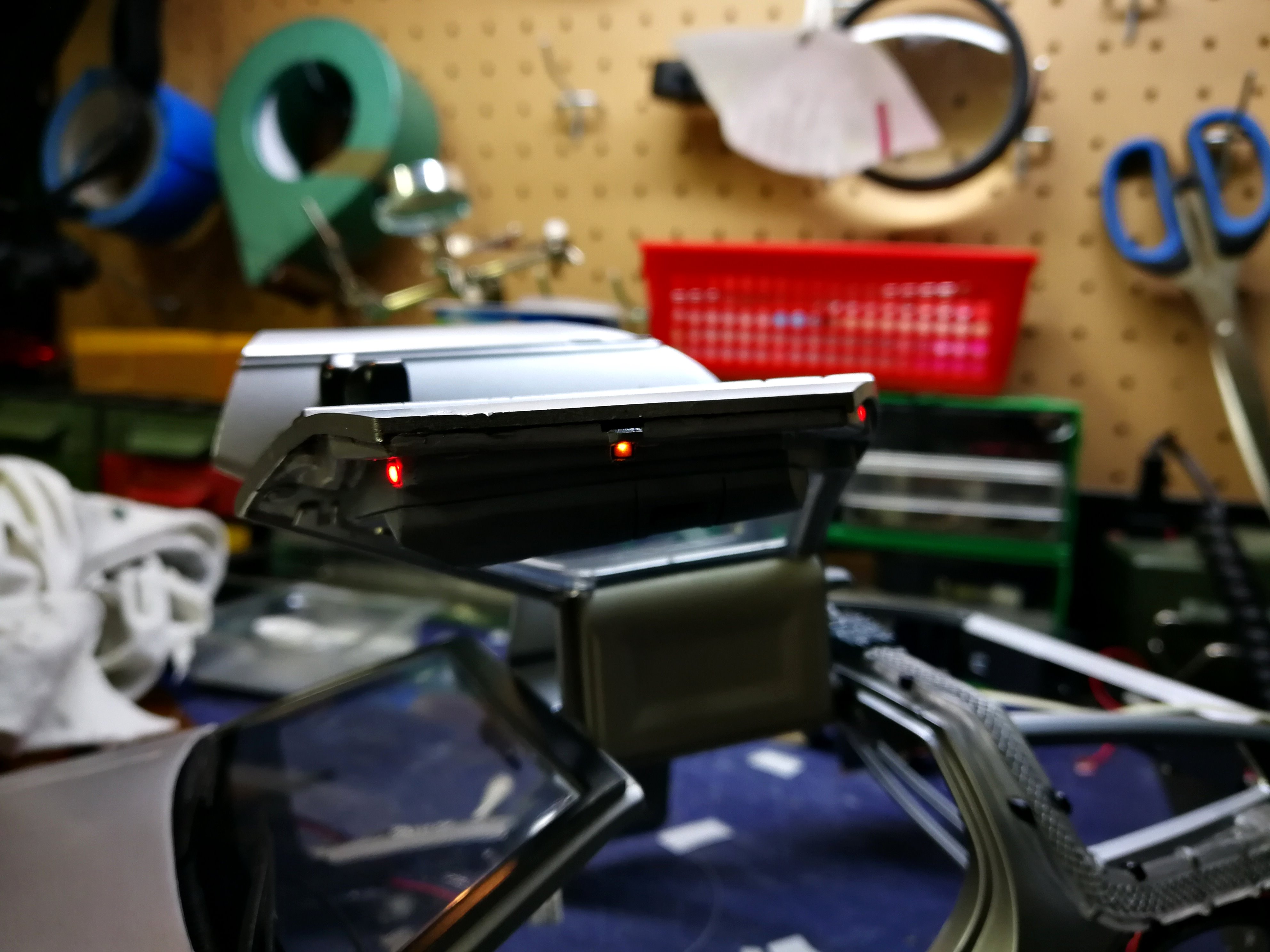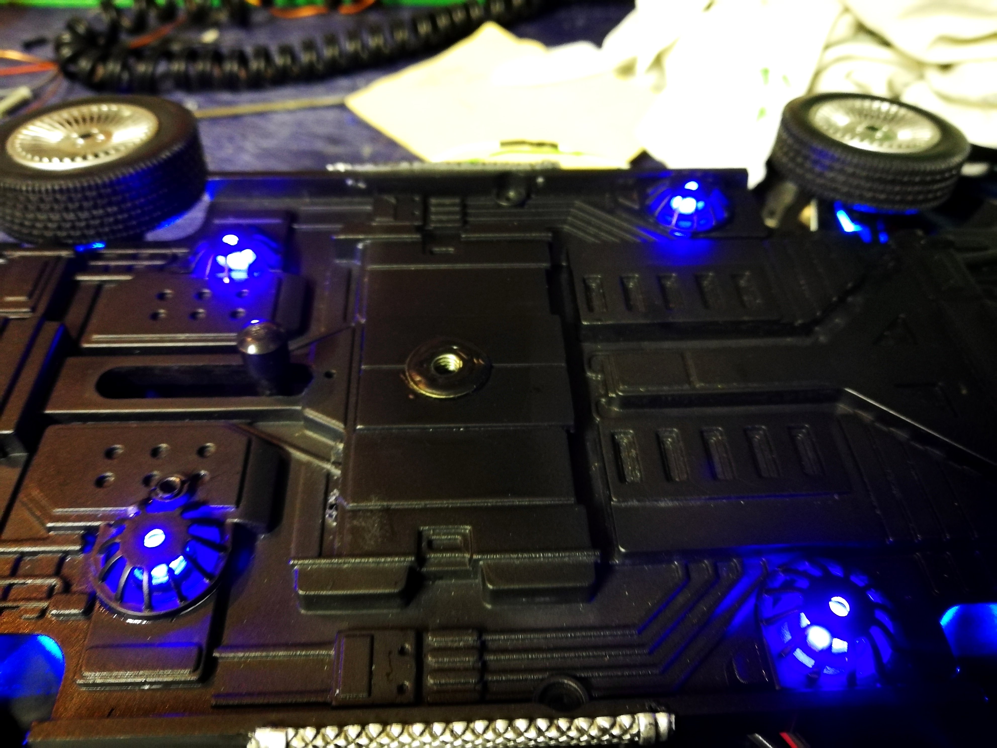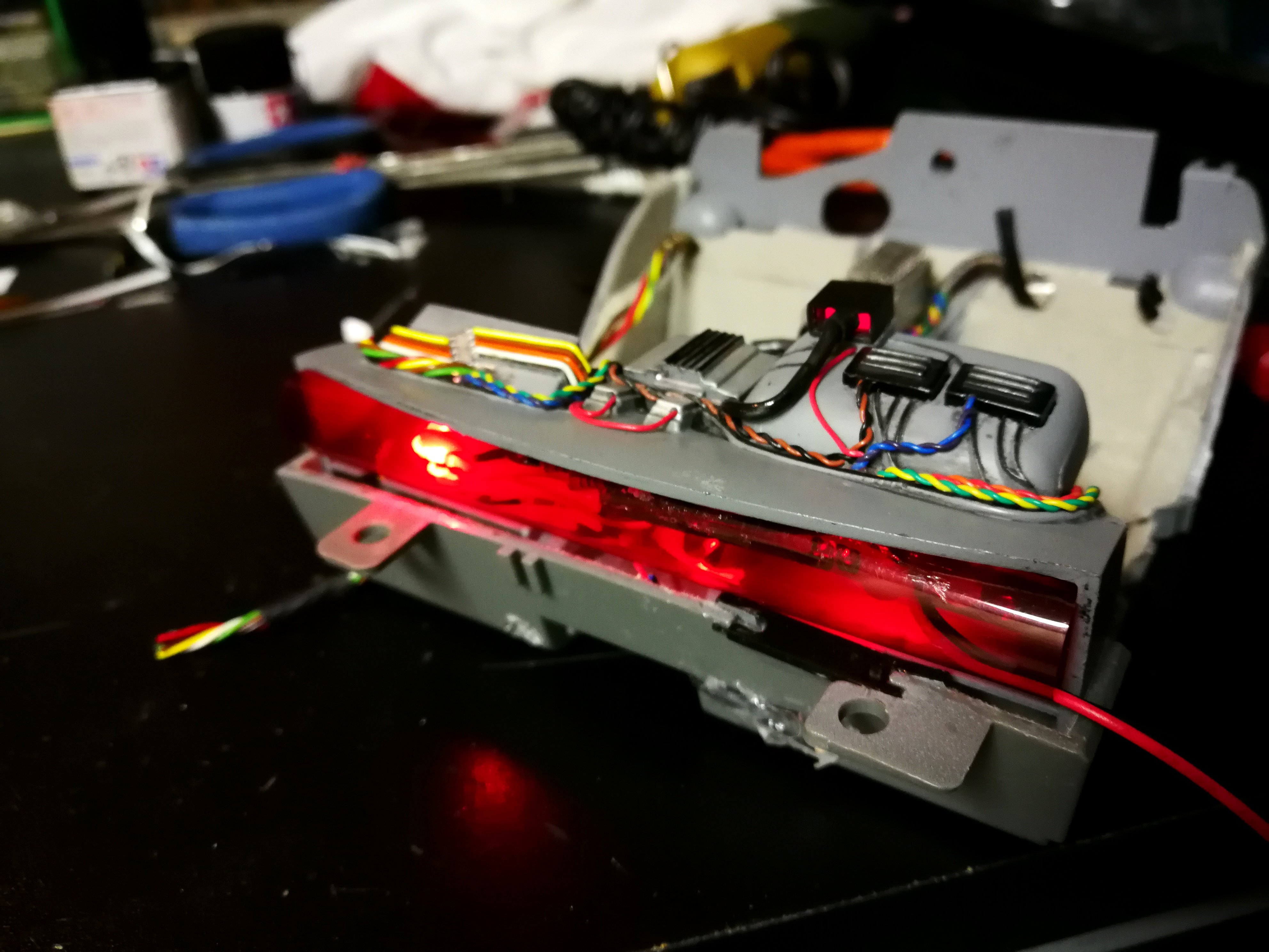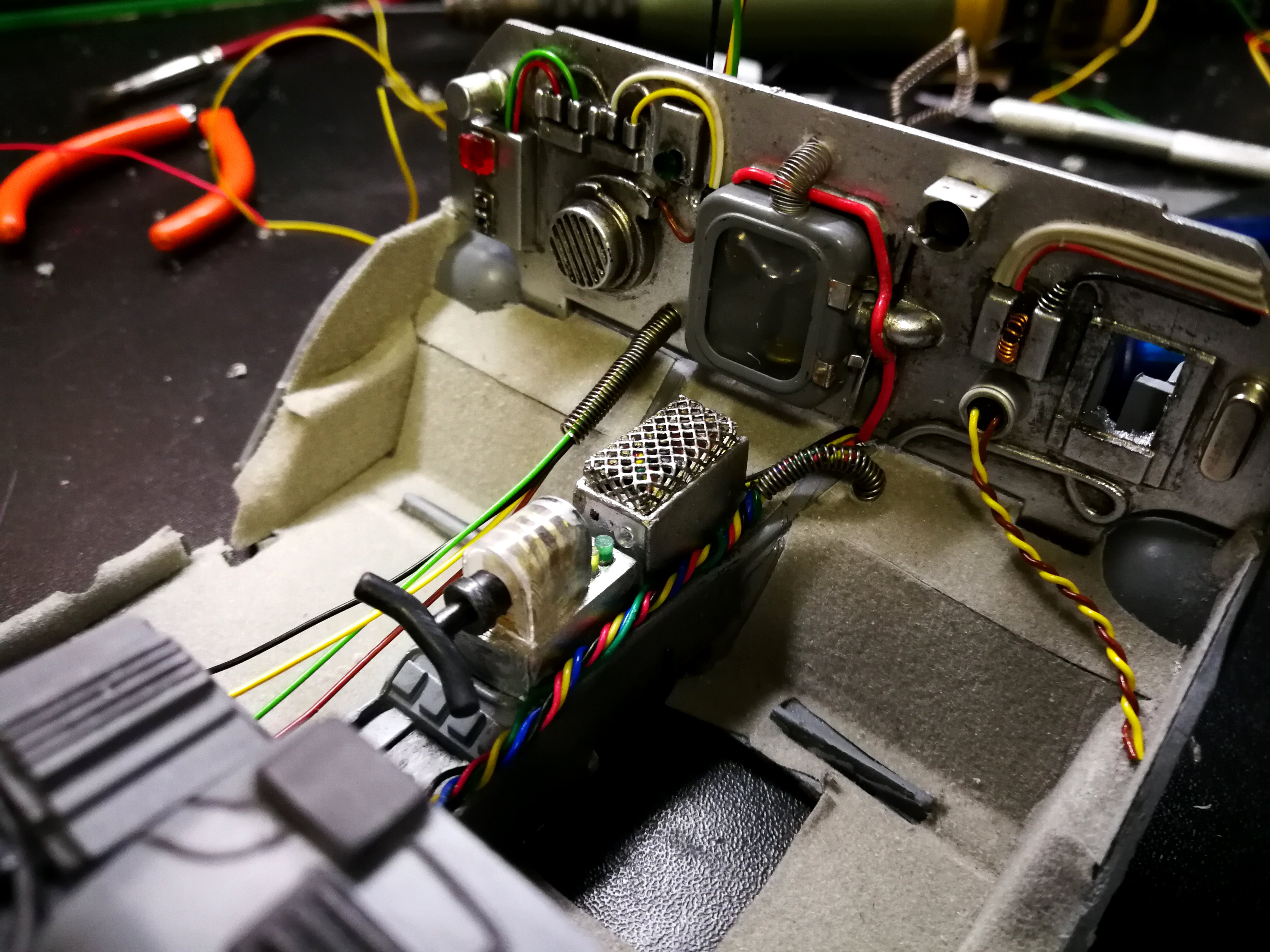 Diamond Select DeLorean model 1:15 modified with new lights and a dedicated stand. In the stand there is a working clock, lights and a memory card with multiple songs taken from the films back to the future. There are also some dialogues from the first film (in Italian). The original functions of the model (lights and sounds and flight / road configuration) are unchanged and the model also works with batteries. The stand and the stand graphics were designed and created by myself.