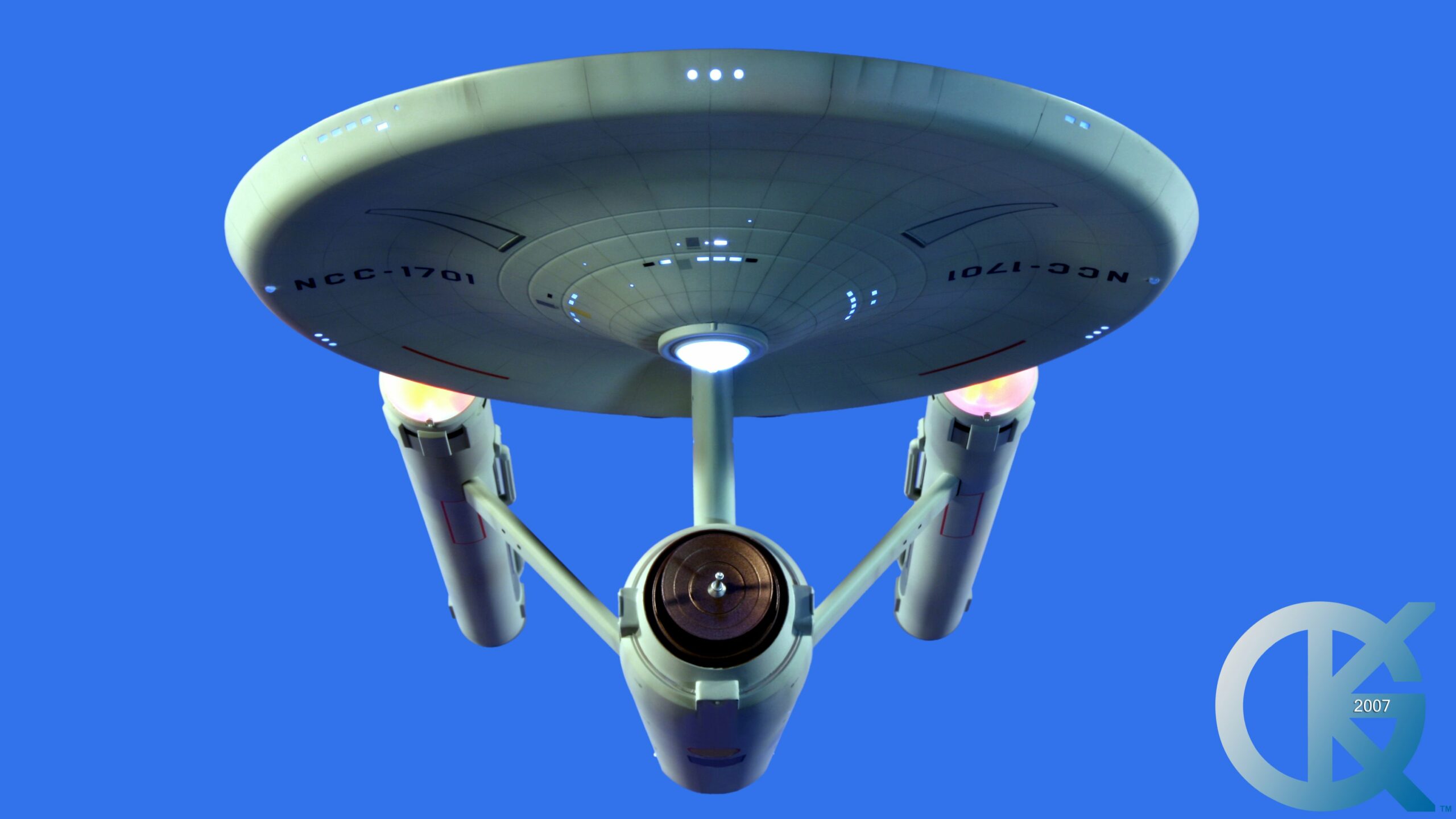 Originally shown here on Modeler Magic back on December 16, 2008, this Master Replicas studio scale USS Enterprise is shown exactly how it came out of the box. These photos are among the very first I had shot back in 2007 utilizing my new (as of back then) blue screen from EEFX. What is wonderful is that you can clearly see the penciled in lines MR placed on it to replicate the original model used in the 1966 series. Because of the lighting I used at that time, the nacelle bussard collectors (with the spin feature) did not show correctly, more showing the opaqueness of the caps themselves instead of the beautiful lighting within. That stated, this is truly a great replica. I believe I remember artist John Eaves working on it’s development. I am grateful of Master Replicas in their creation of this. And with the new group that has emerged of the same name, maybe we might see more of these wonderful pieces? Only time will tell. Of these photos, I really didn’t see any reason to re-take these shots, so I left them as they were. I was very fortunate to get the model that I received from Master Replicas. These have certainly gone up in value! It is quite the Studio piece! It is perfect! Enjoy!