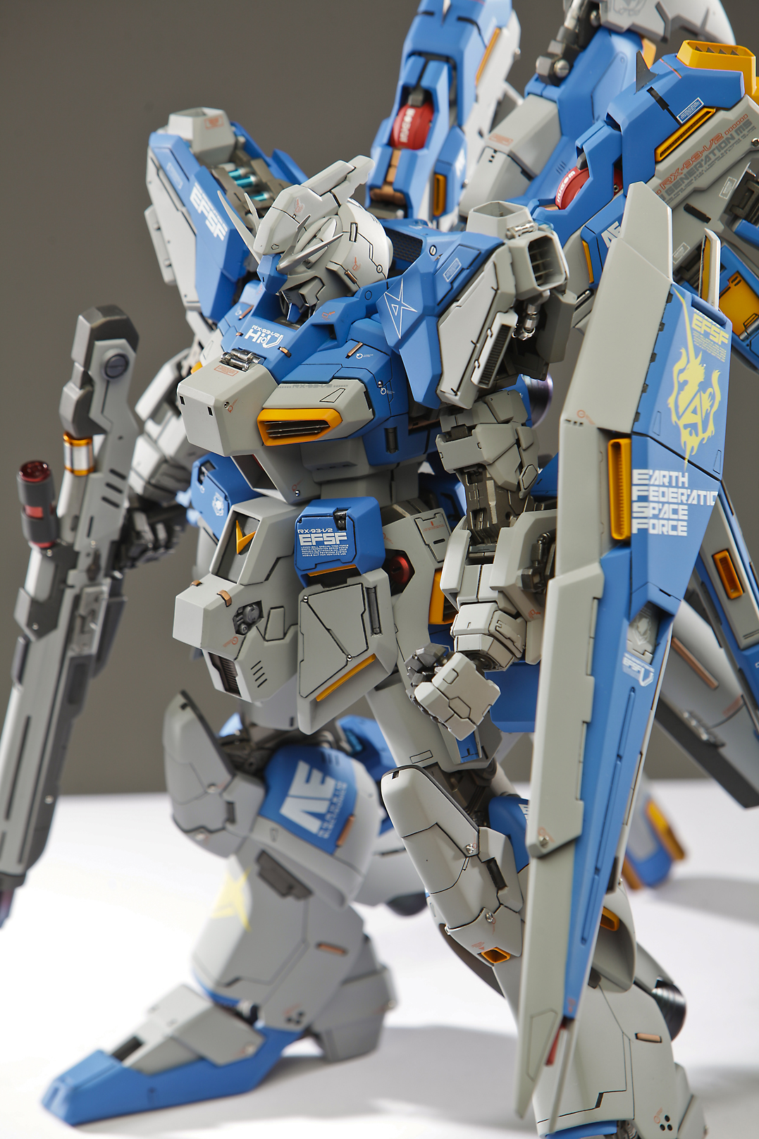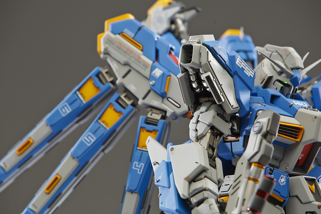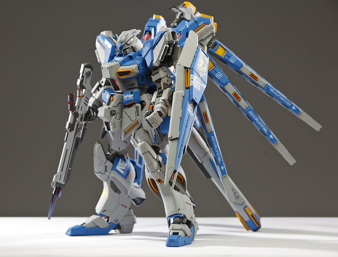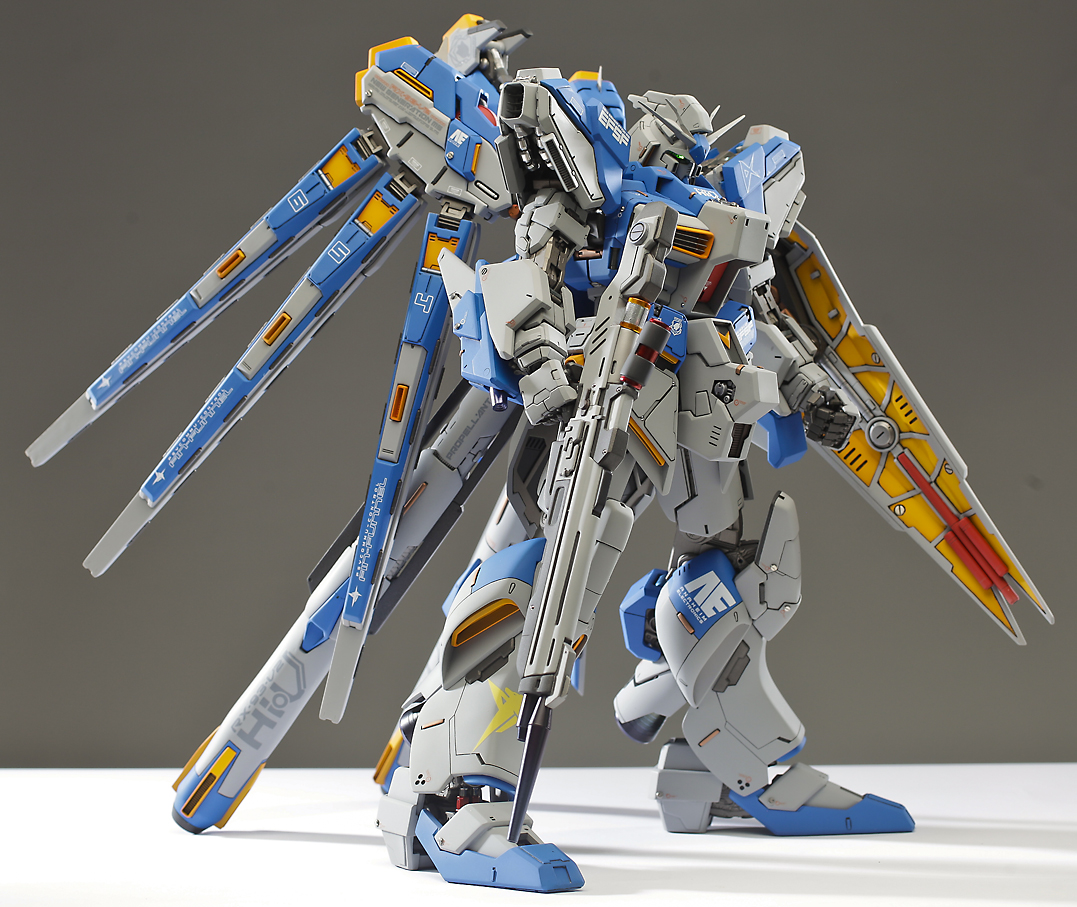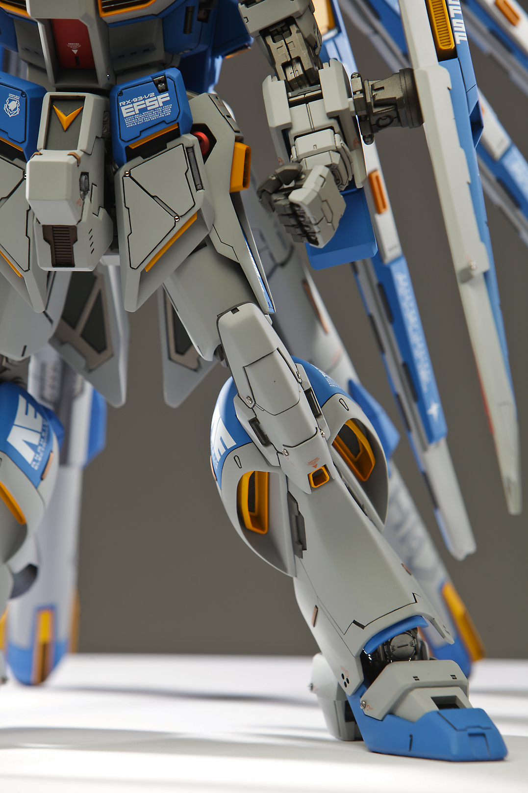 This is my 1/72 Hi-Nu Conversion kit from G-System Shop. This kit takes the Bandai Perfect Grade Strike and converts it to a 1/72 Hi-Nu. 95% of what you see is resin. The conversion kit uses the plastic inner frame from the PG kit and the resin armor attaches to it. Everything except the fin funnels are resin. This took me roughly 300 hours over a 2 1/2 month period. It was a marathon build for Wonder Fest 2015.