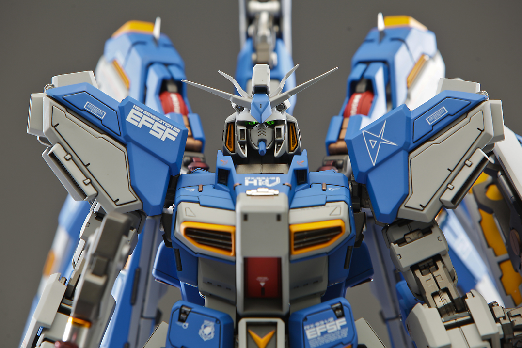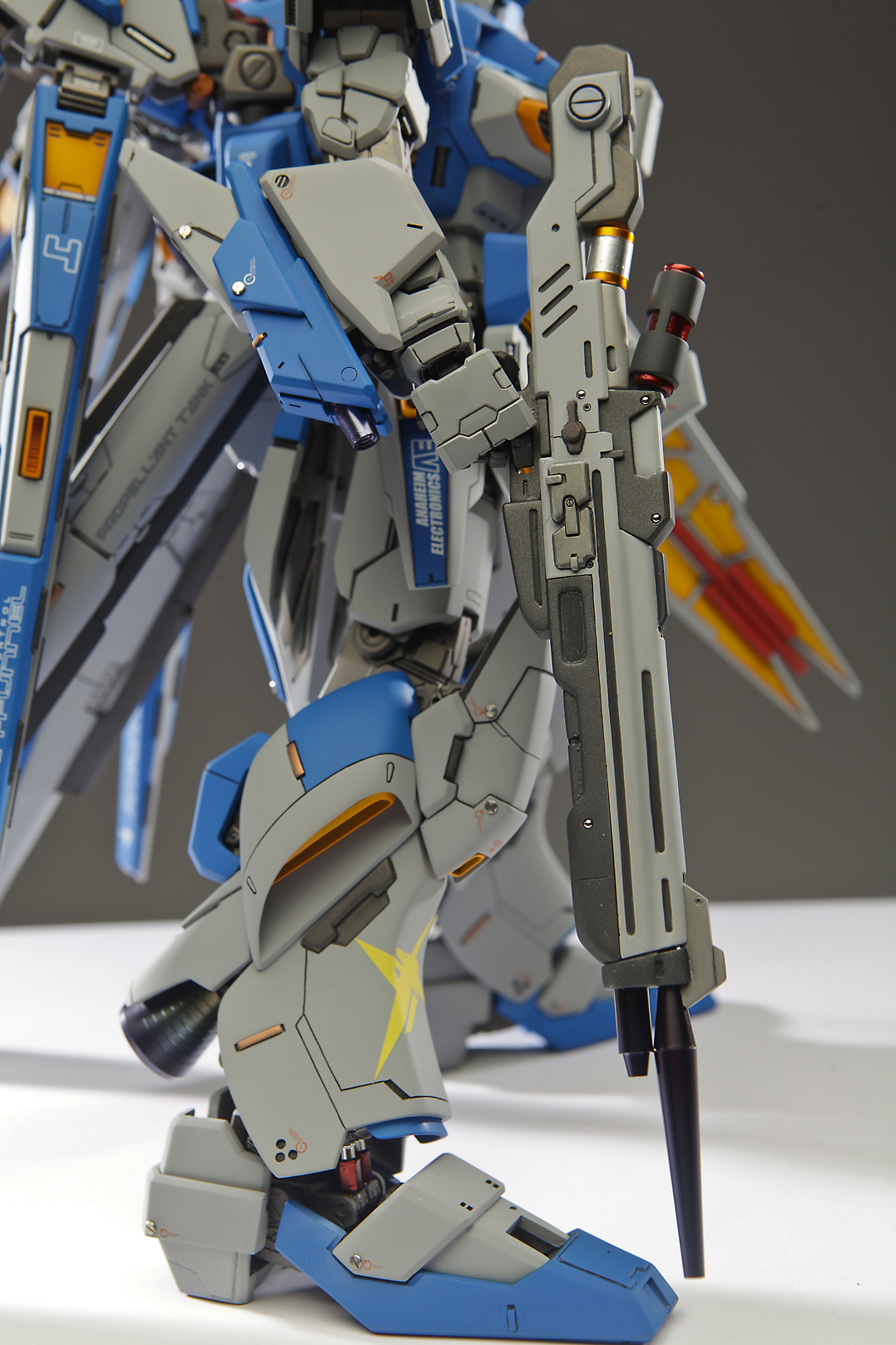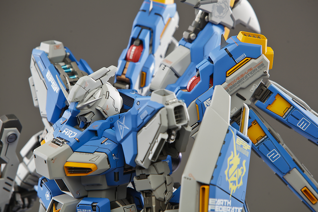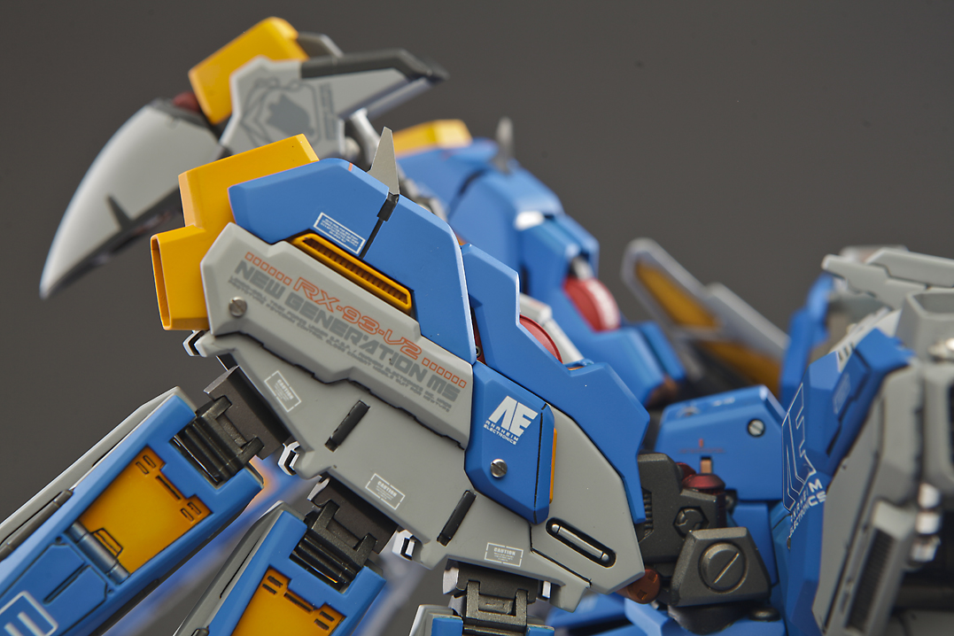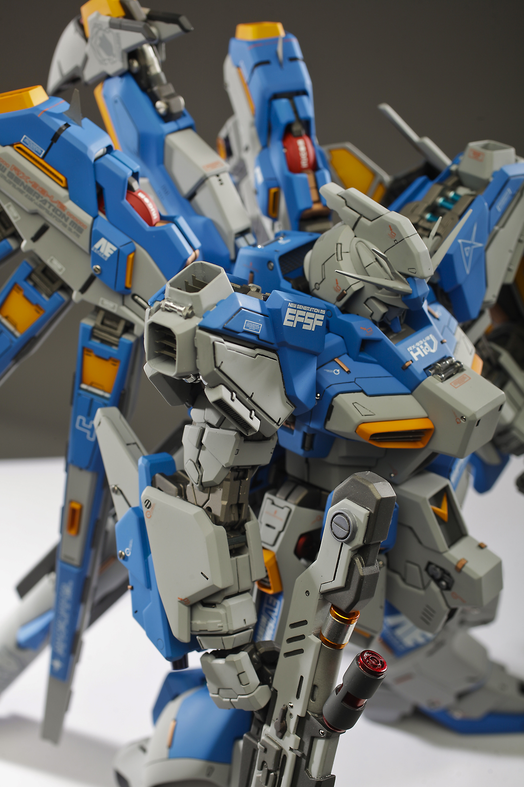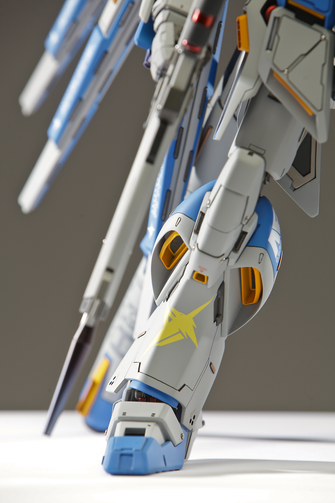 This is my 1/72 Hi-Nu Conversion kit from G-System Shop. This kit takes the Bandai Perfect Grade Strike and converts it to a 1/72 Hi-Nu. 95% of what you see is resin. The conversion kit uses the plastic inner frame from the PG kit and the resin armor attaches to it. Everything except the fin funnels are resin. This took me roughly 300 hours over a 2 1/2 month period. It was a marathon build for Wonder Fest 2015.