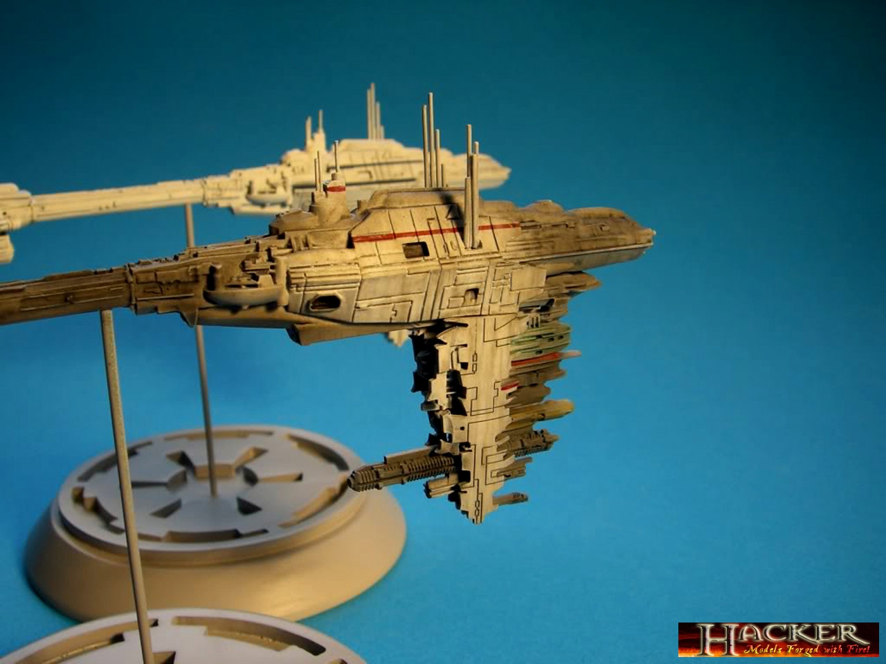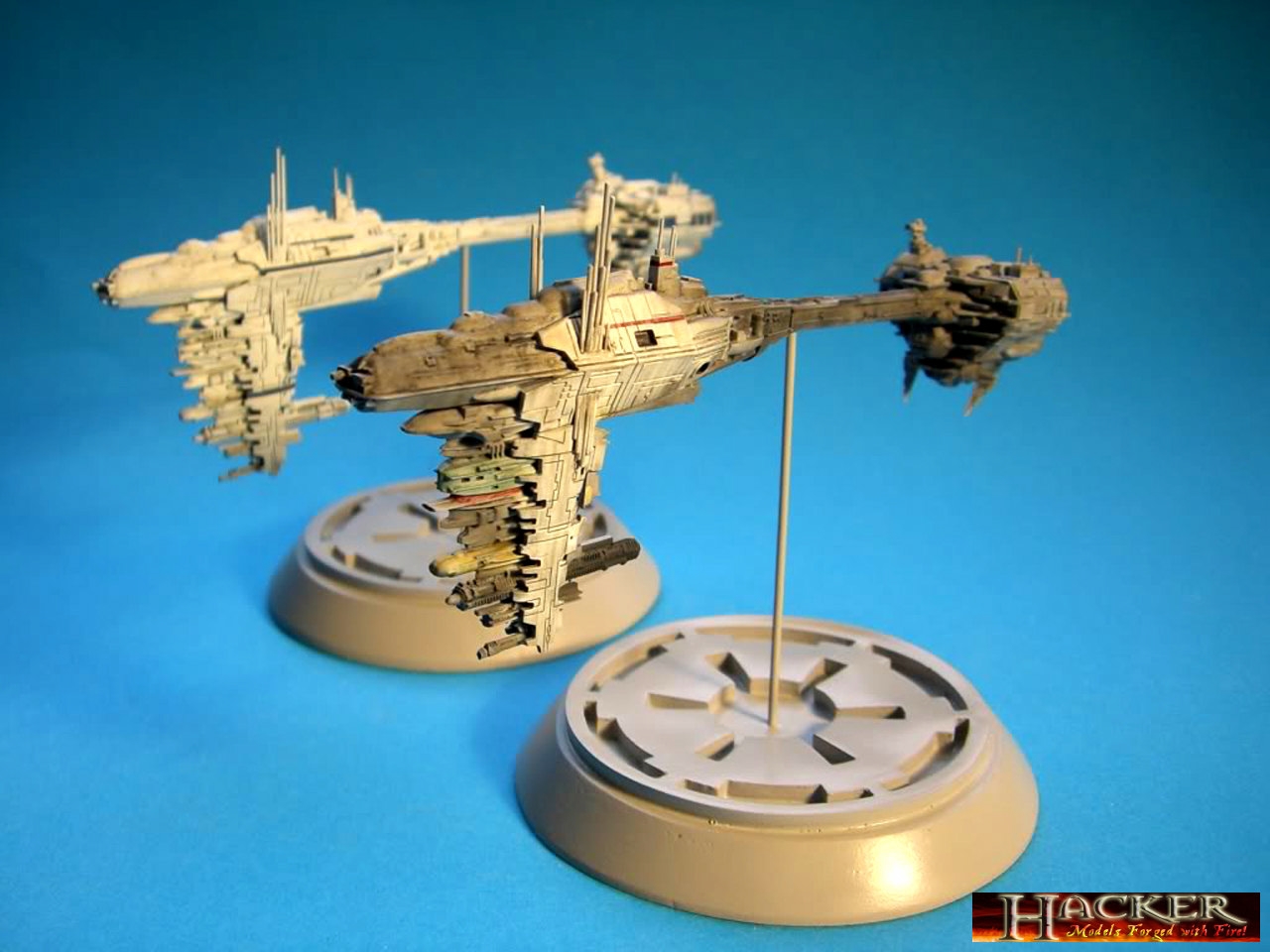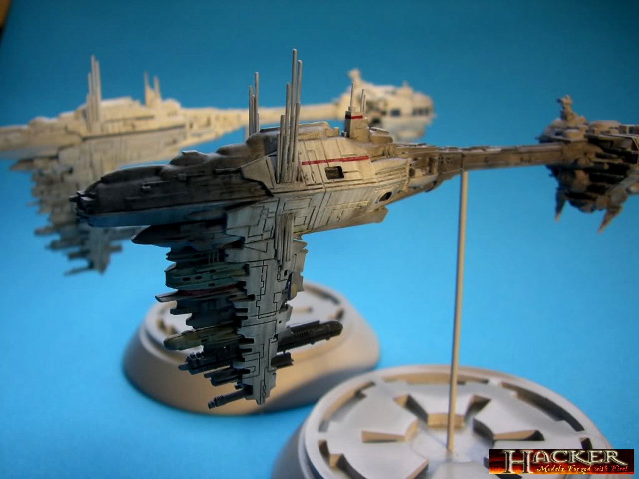 Built from the now defunct Sci-Fi Dynamics Kits of Anigrand, professional modeler Stefan Hacker does his usual excellence of quality in bringing these pieces to life! His paint technique shows us detail as illusion of what was on the massive studio model, yet in the small model you see here! True talent as always from model master Stefan Hacker!