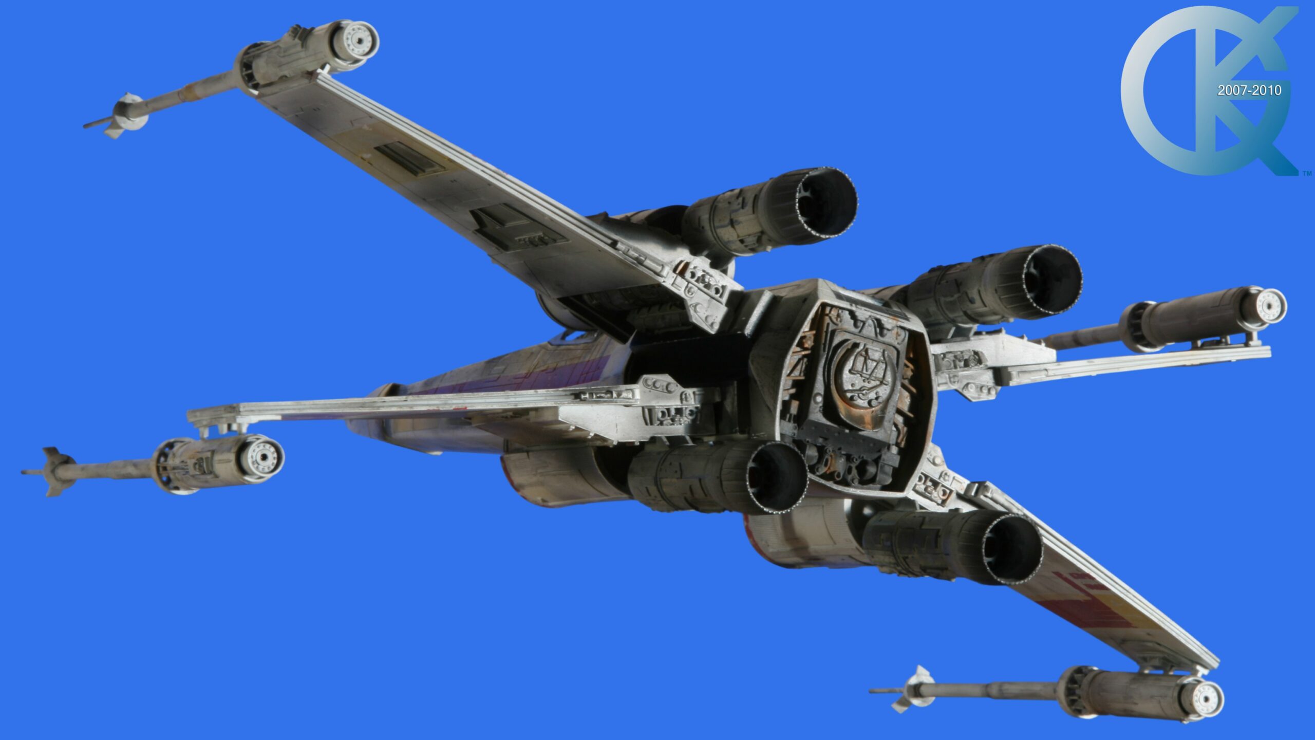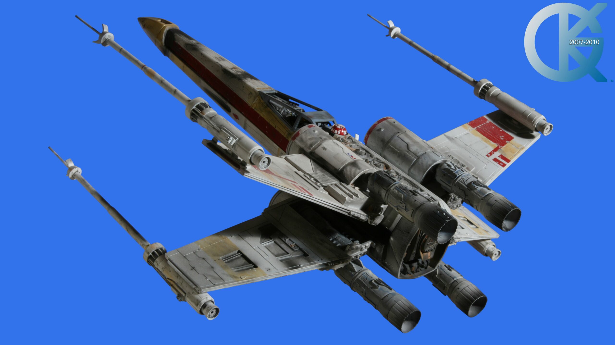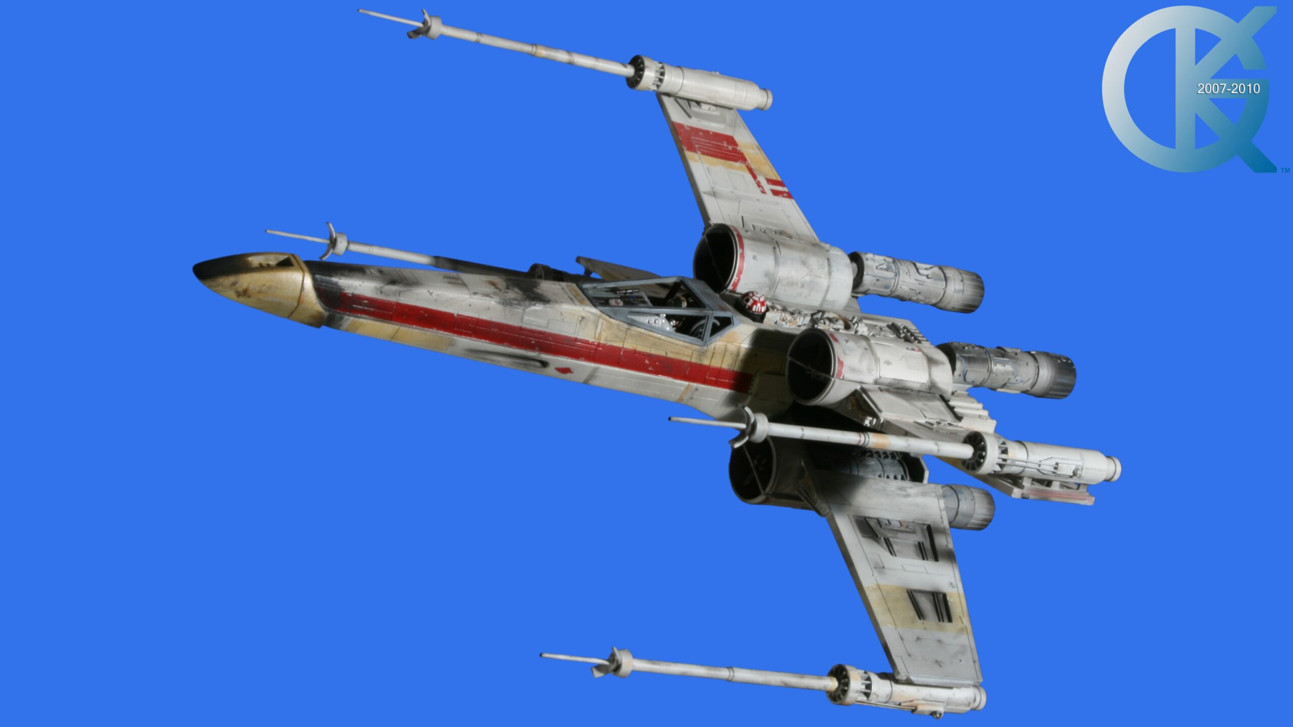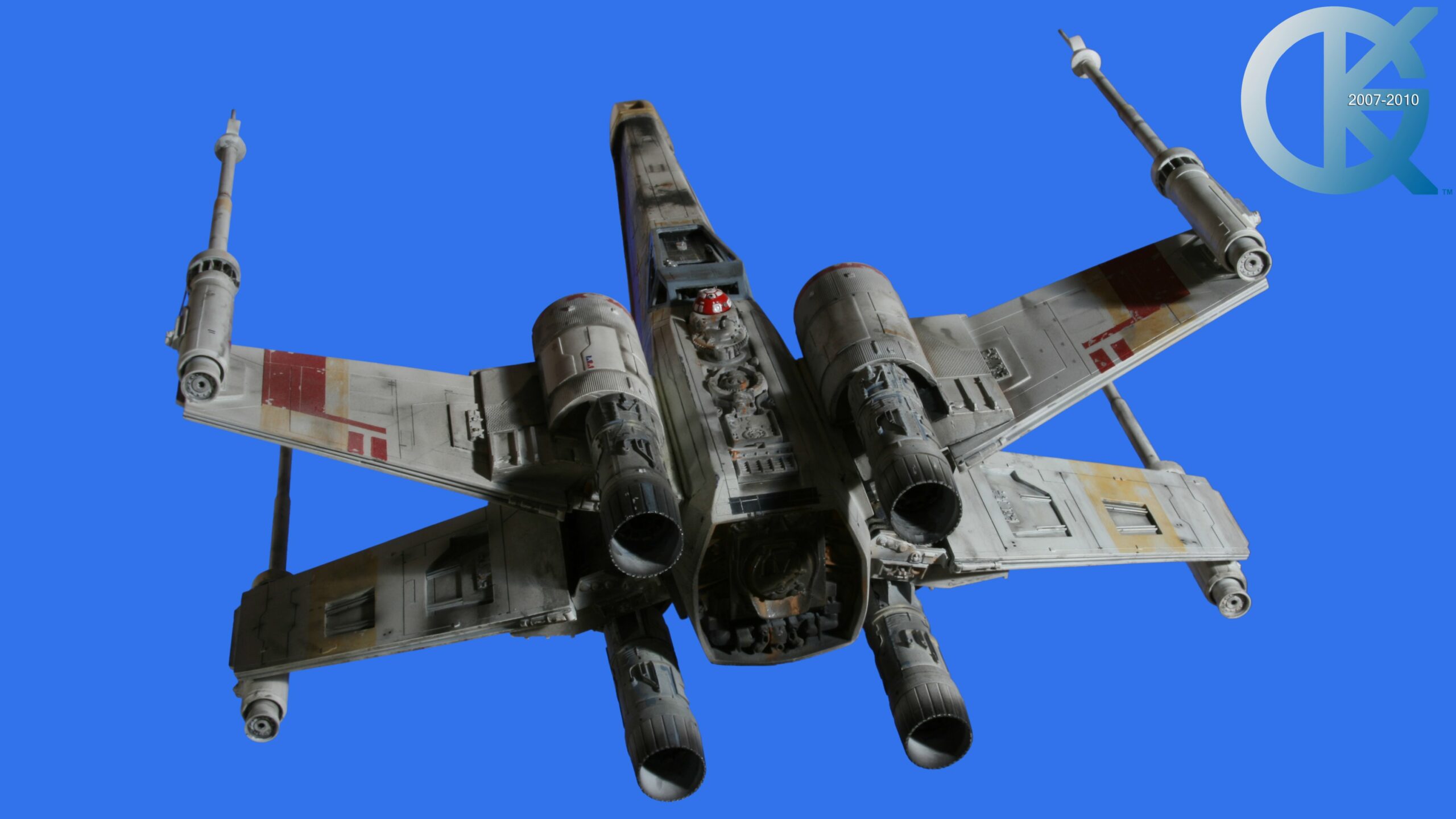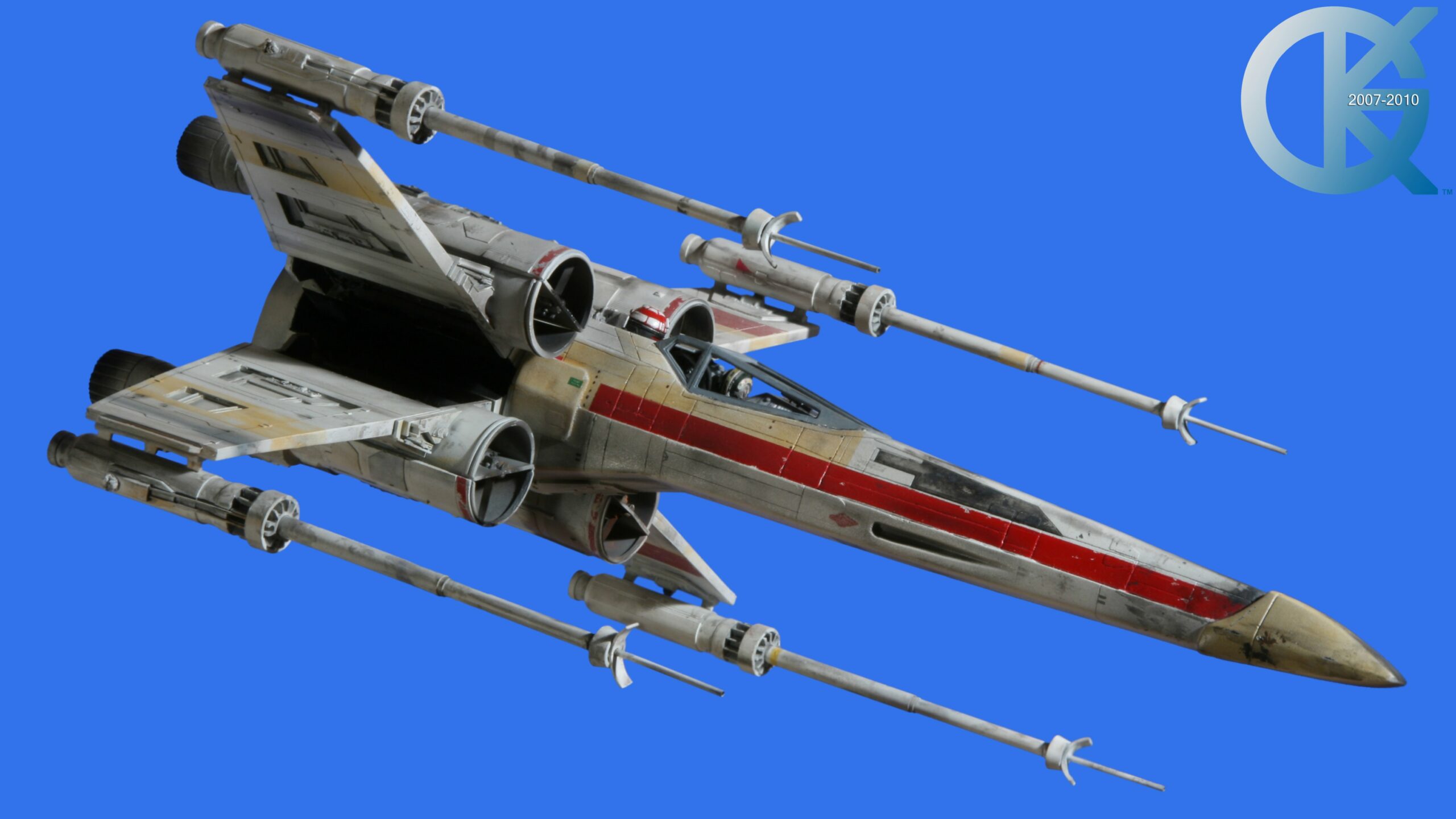 When Mike Salzo released the V-2 Studio Scale X-Wing, I was so completely excited that I purchased 3 sets of parts from him immediately! I envisioned a trench scene large enough to have all three studio scale X-Wings within it. This diorama was also to have Vader (with his two Wing-men) in pursuit, and it was to be about 50 feet long, embedded into the floor of the display area that people may walk over it’s heavy glass top. At that time, Modeler Magic was to be opened in Las Vegas. Alas… 2008 was a tragic year on many levels for everyone… and this placed the Modeler Magic Gallery on hold. At that time, Model Maker R.L. Bleecker was doing many amazing works for me, and he took on this beautiful V2 X-Wing. Robert made it the Wedge Antilles’ RED 2 X-Wing, replicating Wedge himself, and the droid that sat behind the actor in the full sized prop. When Mike Salzo released the V3 X-Wing, and I went crazy again… purchasing 6 sets of parts to replicate the entire 1977 X-Wing lineup that resides here on display today. As Modeler Magic went into a holding pattern, I decided to end my vision of a floor entrenched TRENCH scene. Michael Kuehner contacted me in 2010 about wanting all three V2 studio scale X-Wings (what I call the TRENCH TRIO, and of which comprised of Red 2 (Wedge), Red 3 (Biggs) and Luke’s Red 5). I sold them to him on September 3, 2010. All three were supremely packed by a ‘white-glove’ shipper and shipped to Germany to go into Michael’s Collection. Disturbingly…. only two of them survived an International Customs Agency that became involved. Allow me to clarify this wrong-doing. One of the V2 Studio Scale X-Wings was unpacked, unwrapped, played with, destroyed (as if someone threw it into the air for it to crash on the ground), then all of the parts and packing materials were thrown back into the original container, taped up and sent on it’s way THREE MONTHS LATER when we finally identified where it was abused through a shipper investigation when it disappeared. I know… I made a run on sentence for sure.. LOL. Moving on… this was a huge disappointment for Michael and myself. Because it happened in the ‘grey’ area known as “Customs”, the shipping company no longer had control of the item and therefore we learned what happened in “Customs” stayed in “Customs”. Apparently the heavy insurance policy I had taken out on them for any issues that could arise no longer applied. Unfortunately International Customs Agencies are not held liable for anything that goes through their hands. A great loss was incurred and was very much felt.