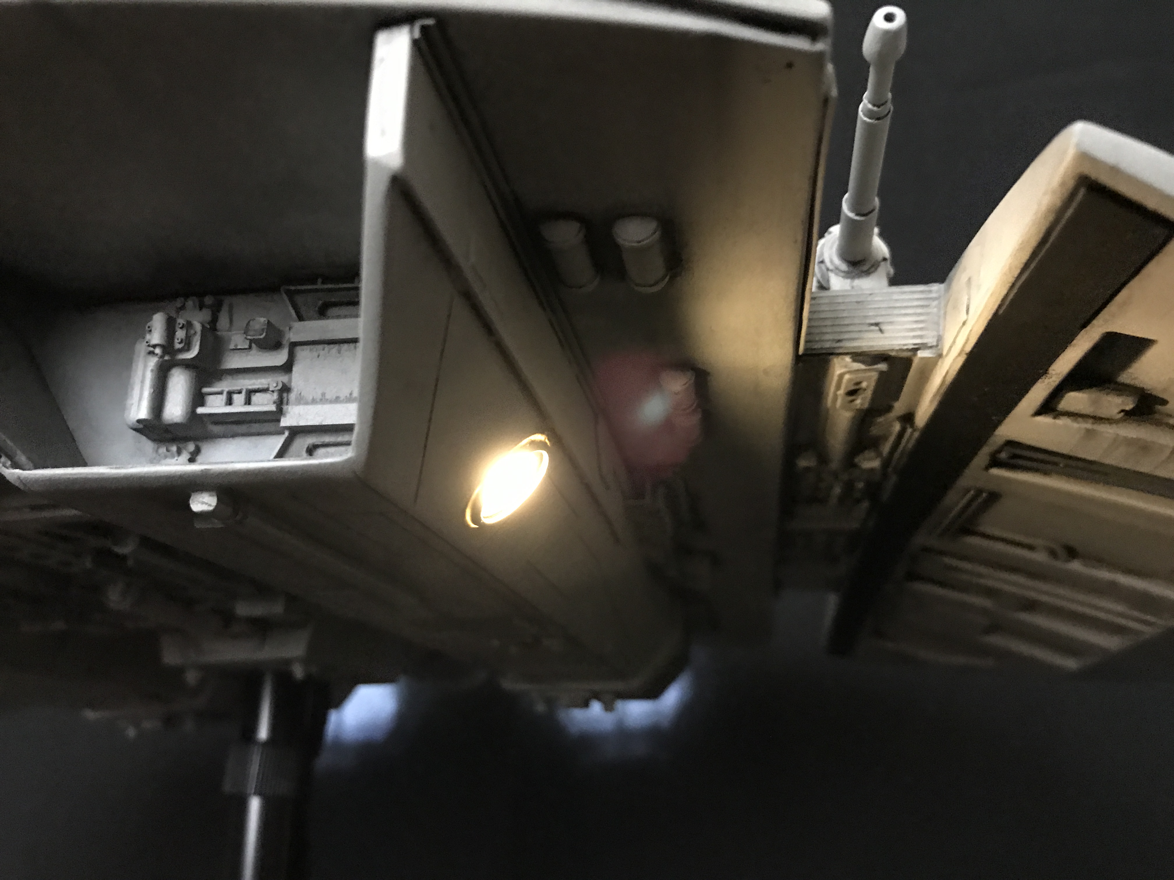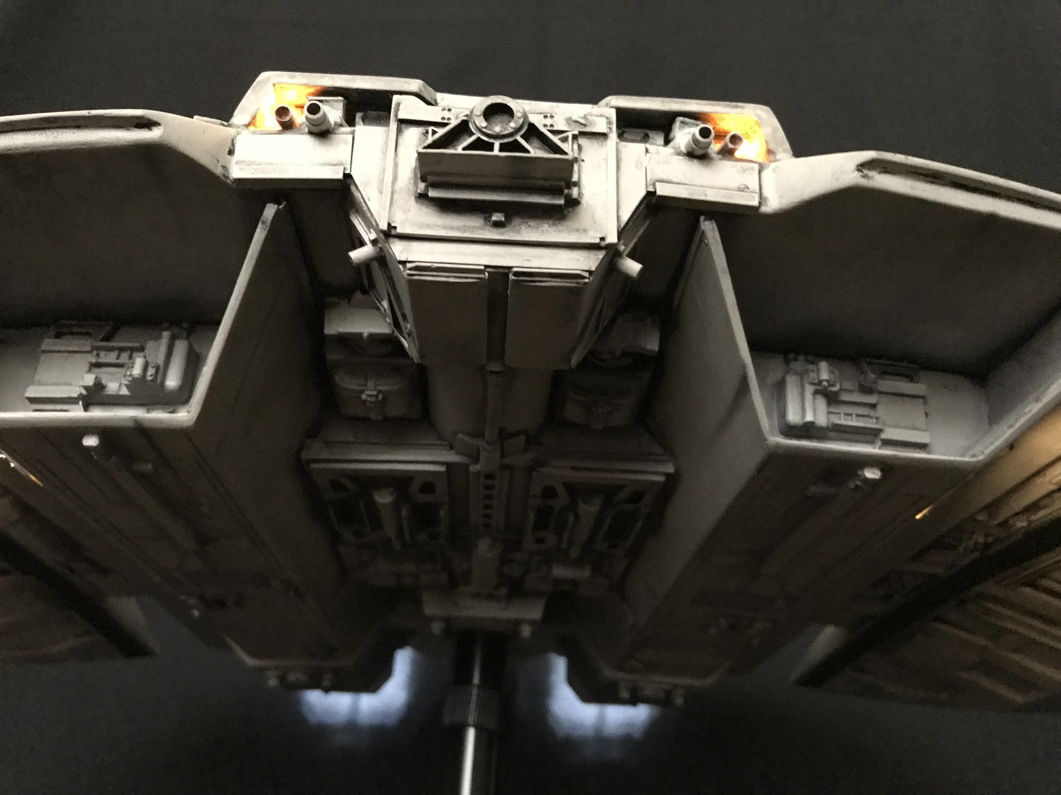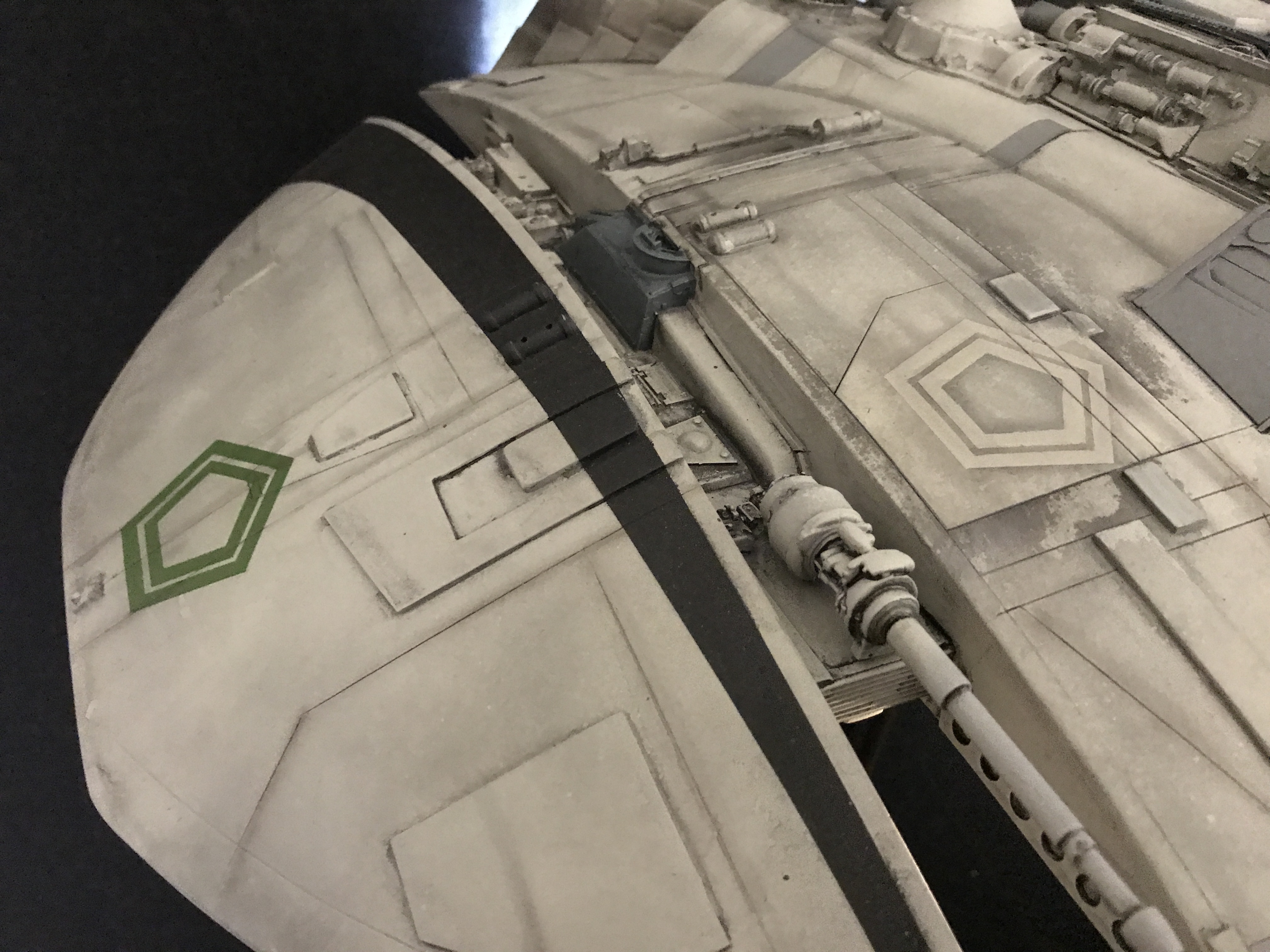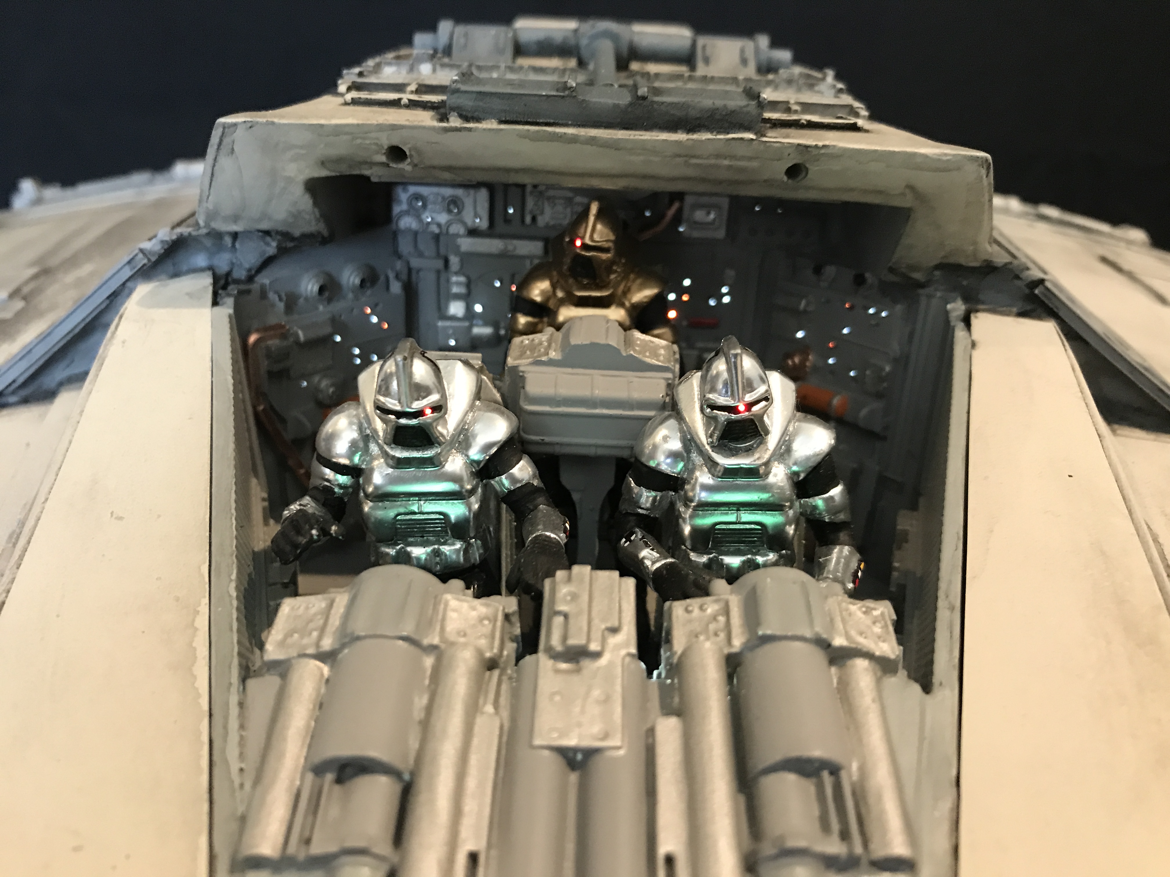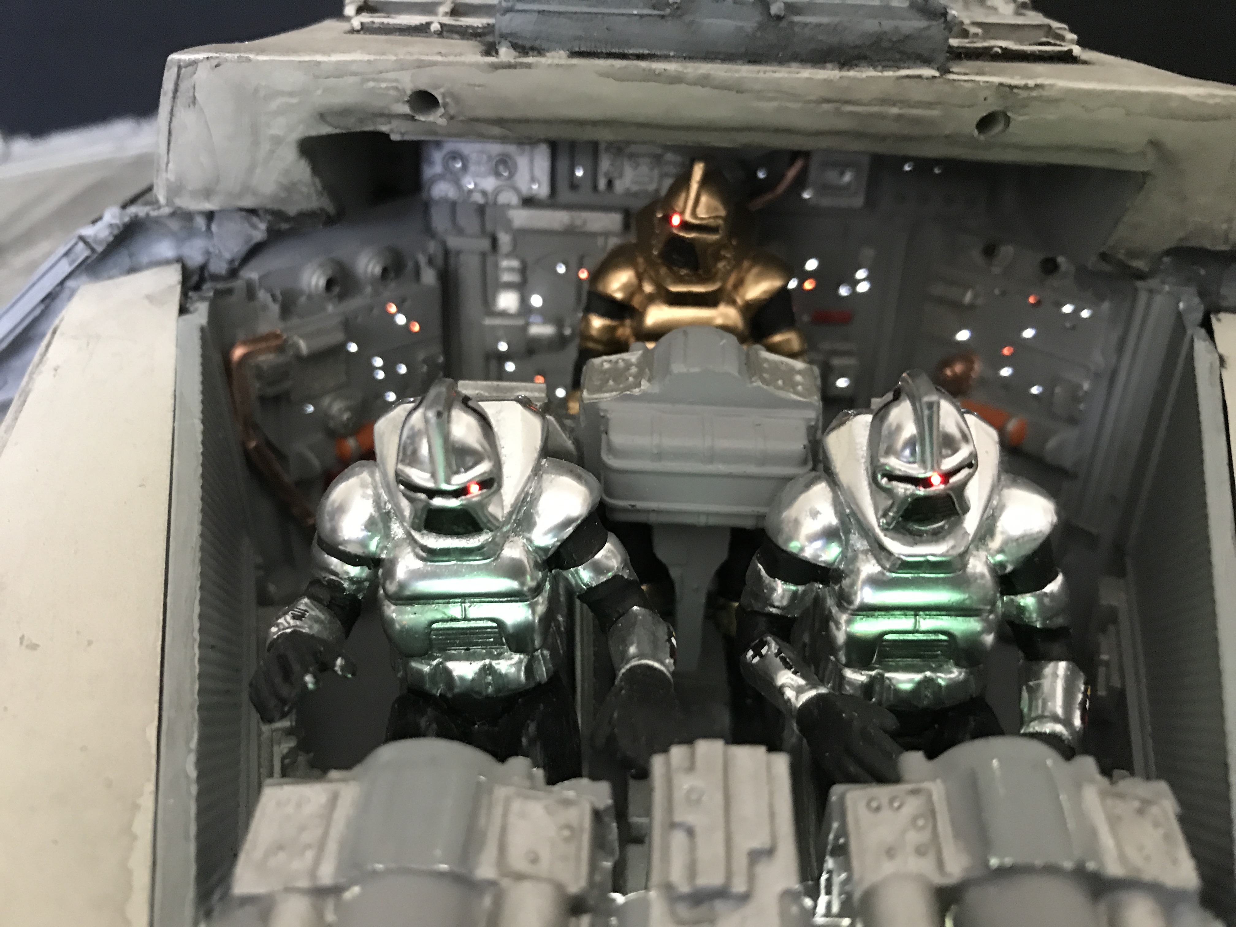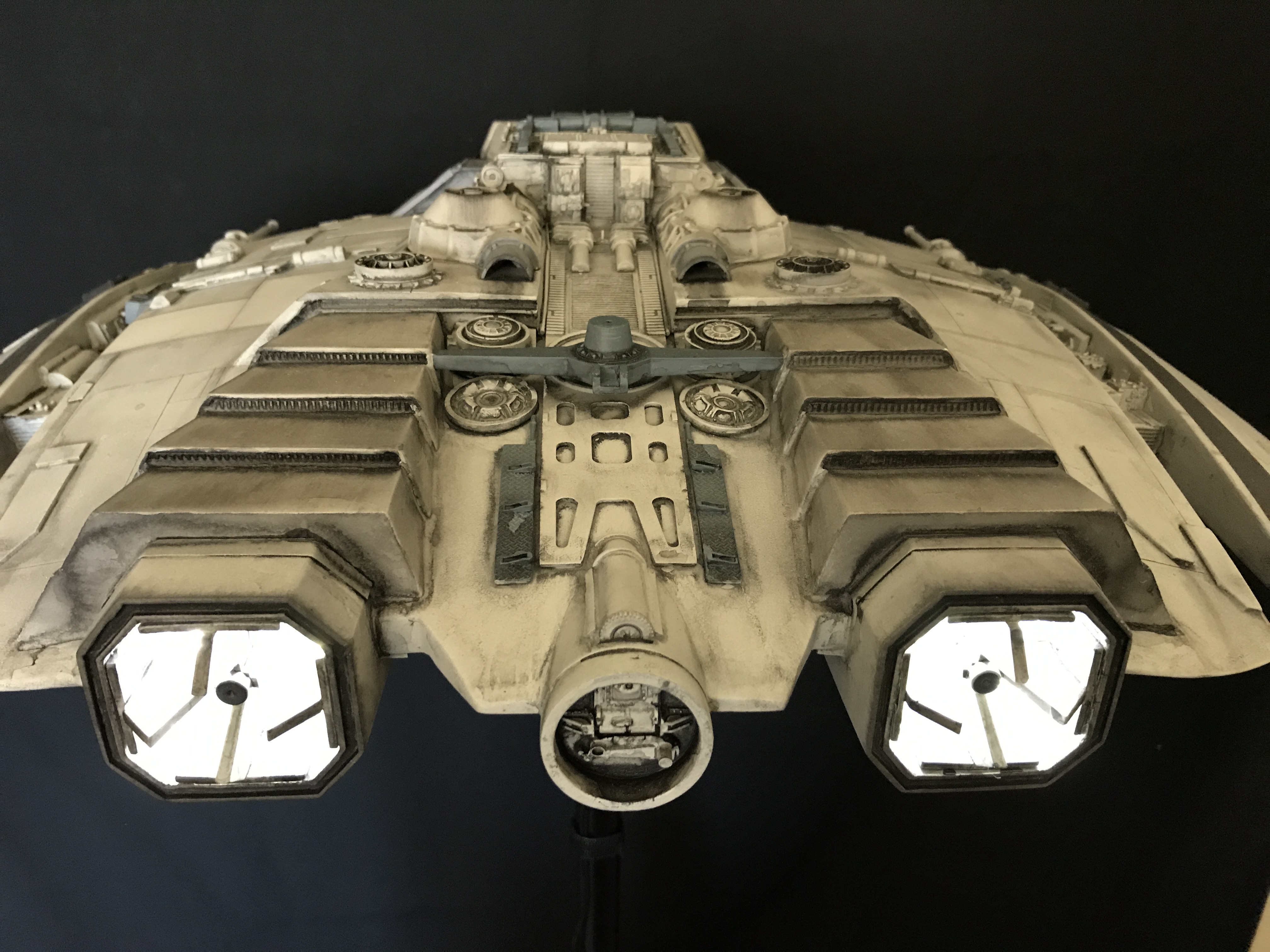 Last week we showed the first shots of the very first Salzo 1:24 Cylon Raider to be finished by Marc Elkins for the Michael Plante Collection. Today, we follow up that showing with even better photos from Michael Plante himself! This amazingly huge model is highly detailed and quite a bit larger than the studio scale Raider that has been offered in a few forms for years,… and now sold by Moebius Models. If you decide to get one of these 1:24 beasts, I understand it to be 2 feet wide! This is massive, and goes with the studio scale Vipers perfectly. Thank you Michael for sharing these photos…. and excellent work once again to artist Marc Elkins… the kit creator Mike Salzo.
