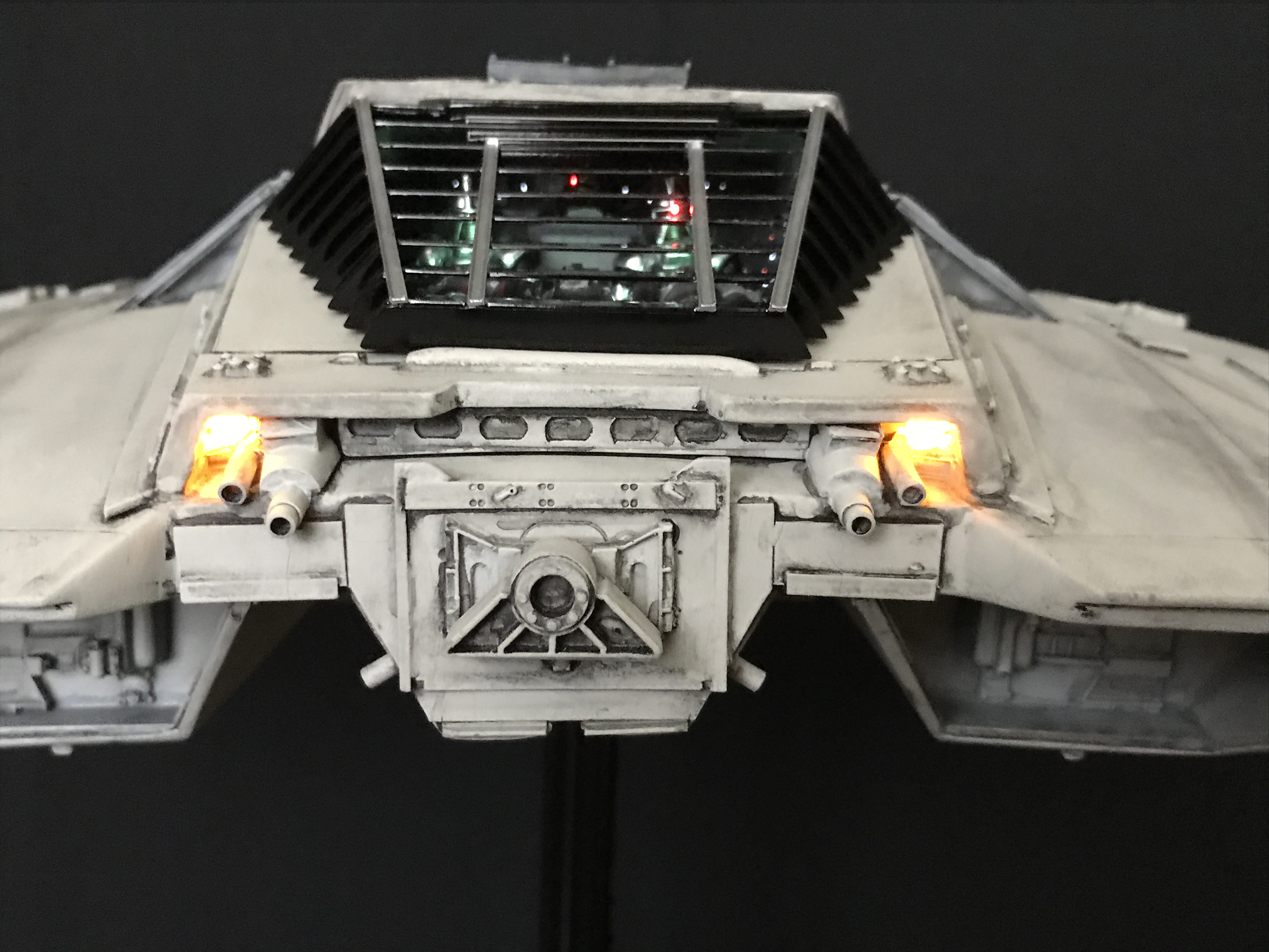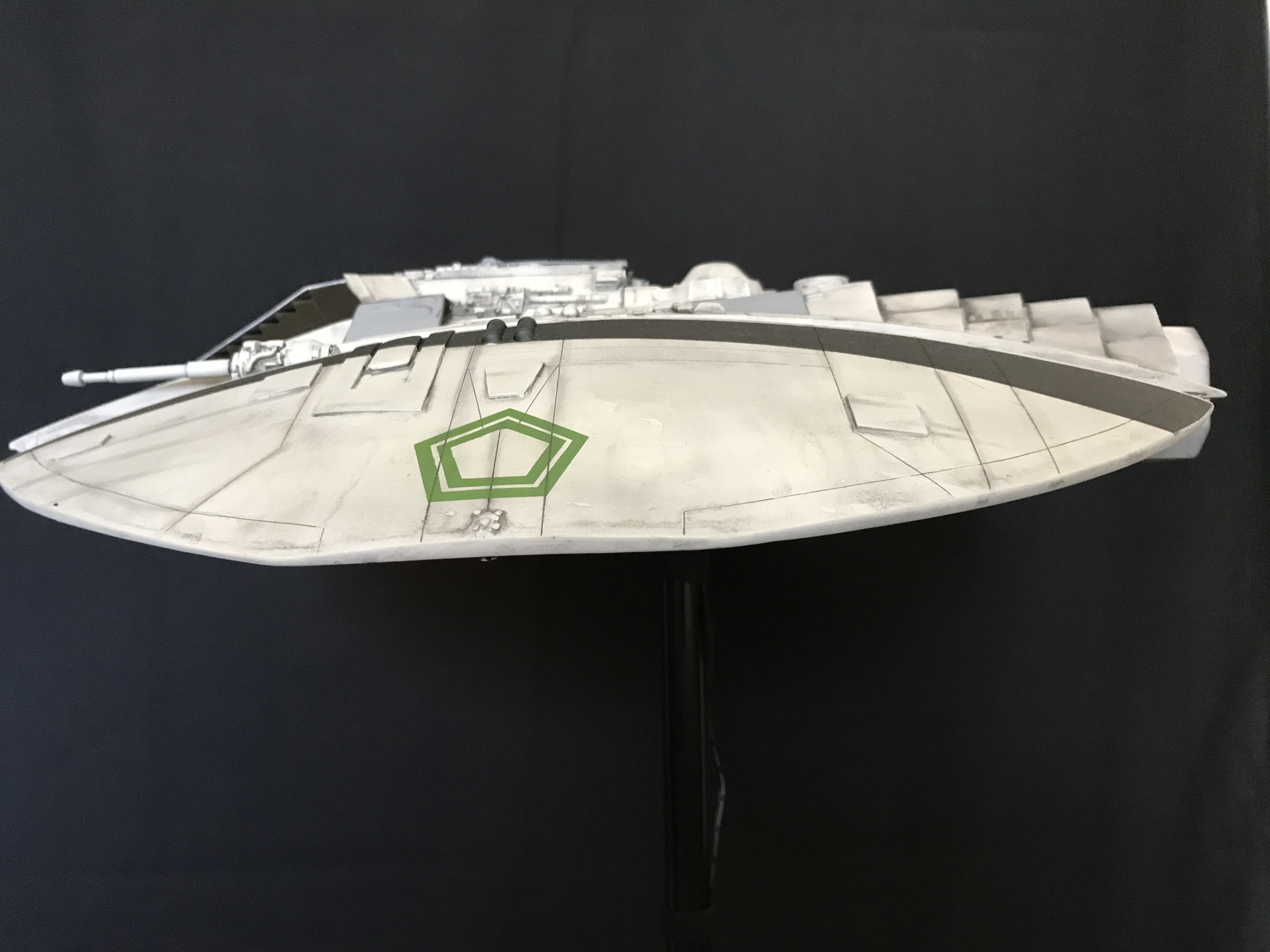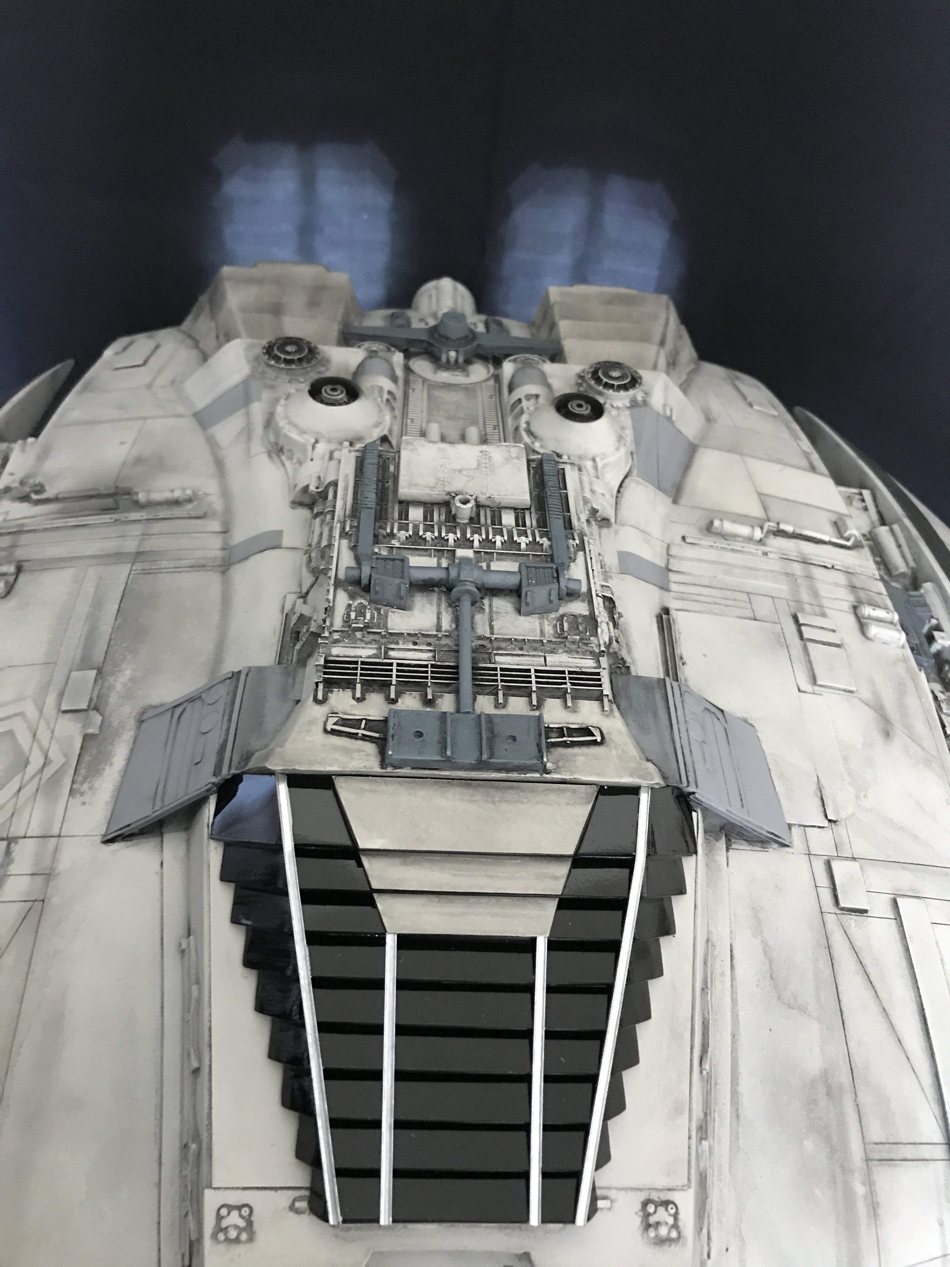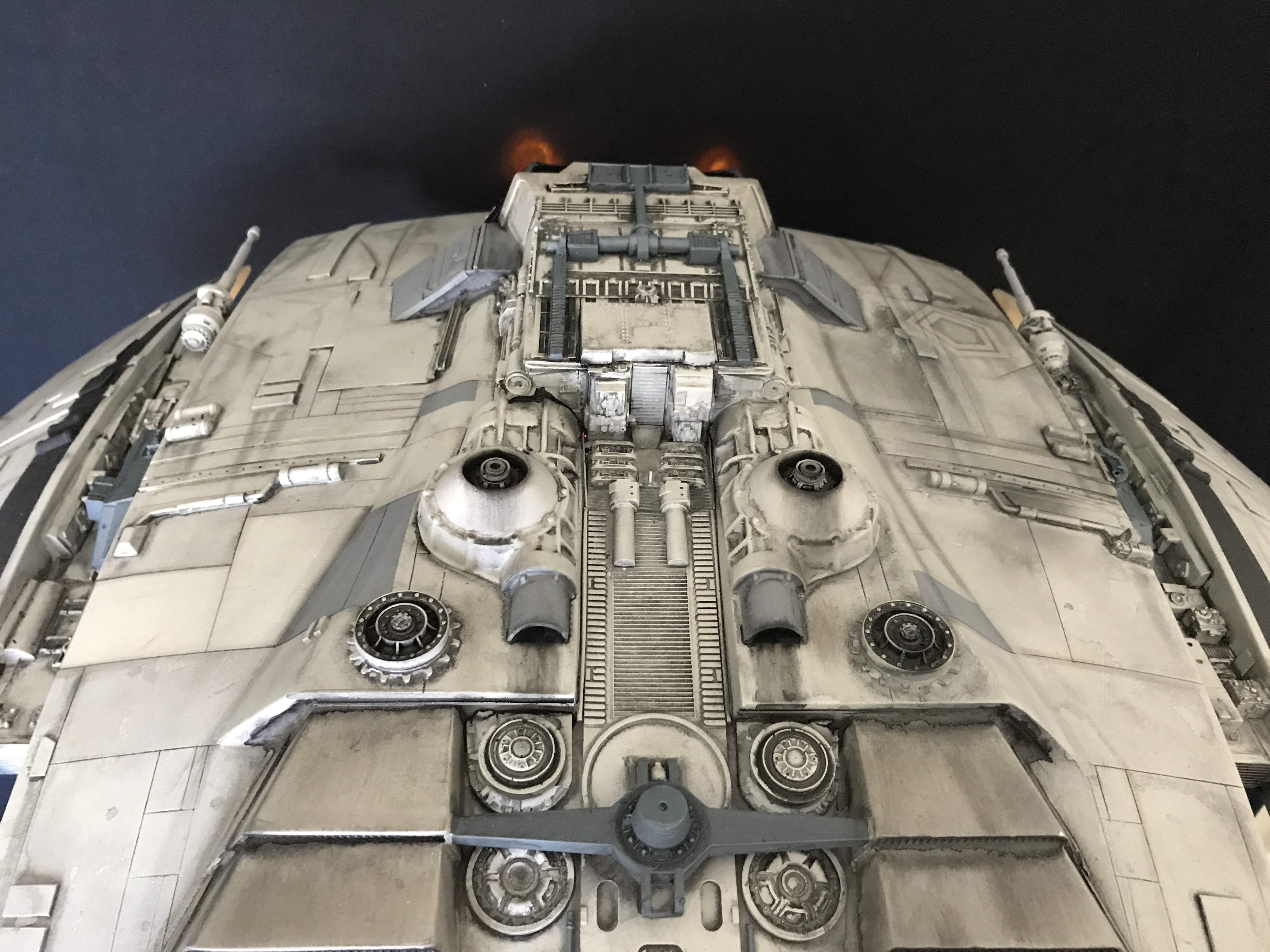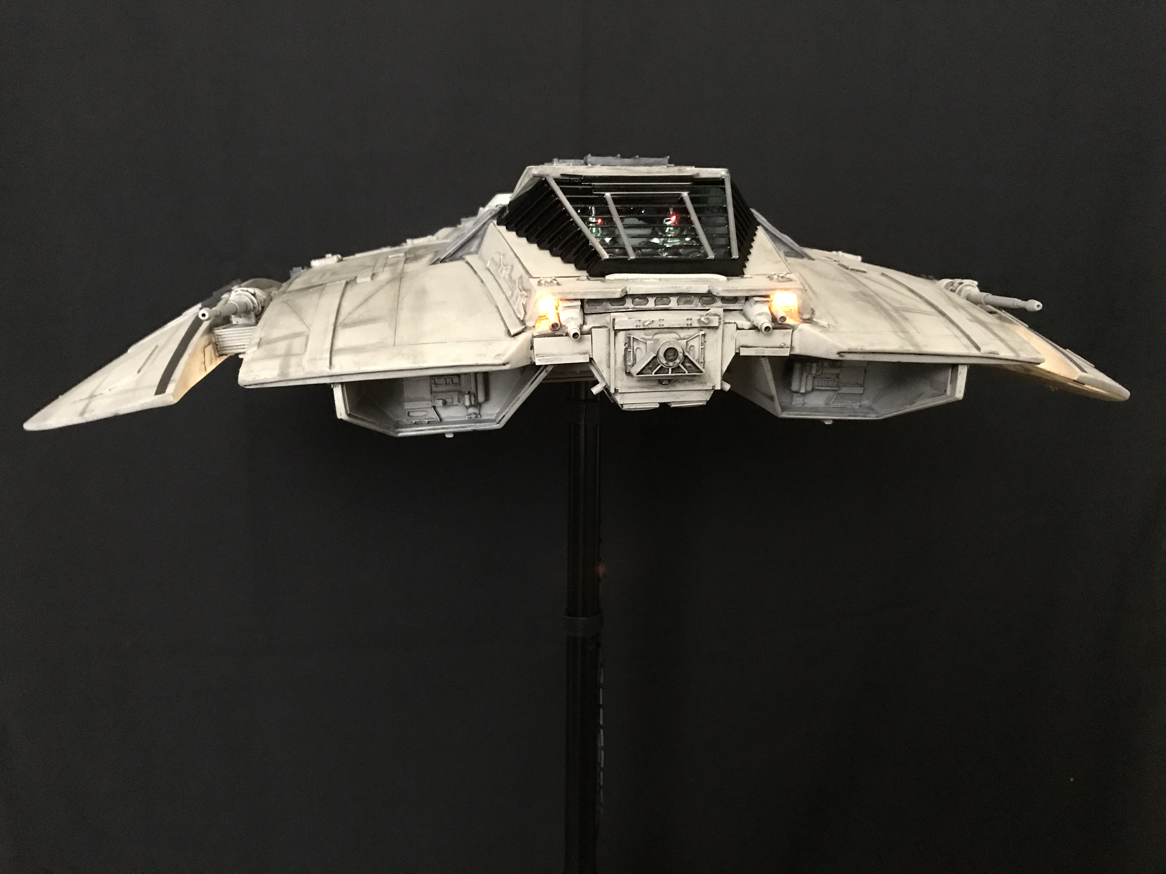 Last week we showed the first shots of the very first Salzo 1:24 Cylon Raider to be finished by Marc Elkins for the Michael Plante Collection. Today, we follow up that showing with even better photos from Michael Plante himself! This amazingly huge model is highly detailed and quite a bit larger than the studio scale Raider that has been offered in a few forms for years,… and now sold by Moebius Models. If you decide to get one of these 1:24 beasts, I understand it to be 2 feet wide! This is massive, and goes with the studio scale Vipers perfectly. Thank you Michael for sharing these photos…. and excellent work once again to artist Marc Elkins… the kit creator Mike Salzo.