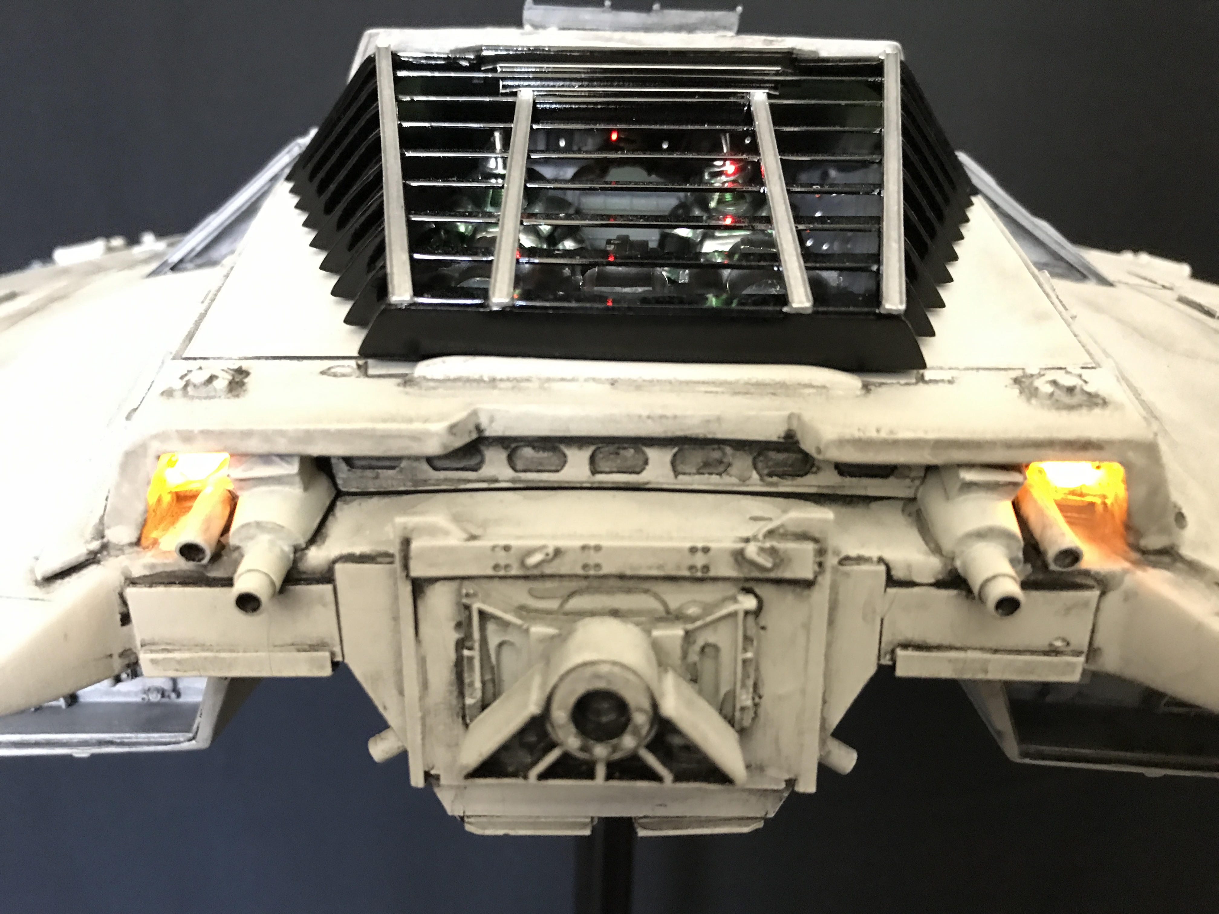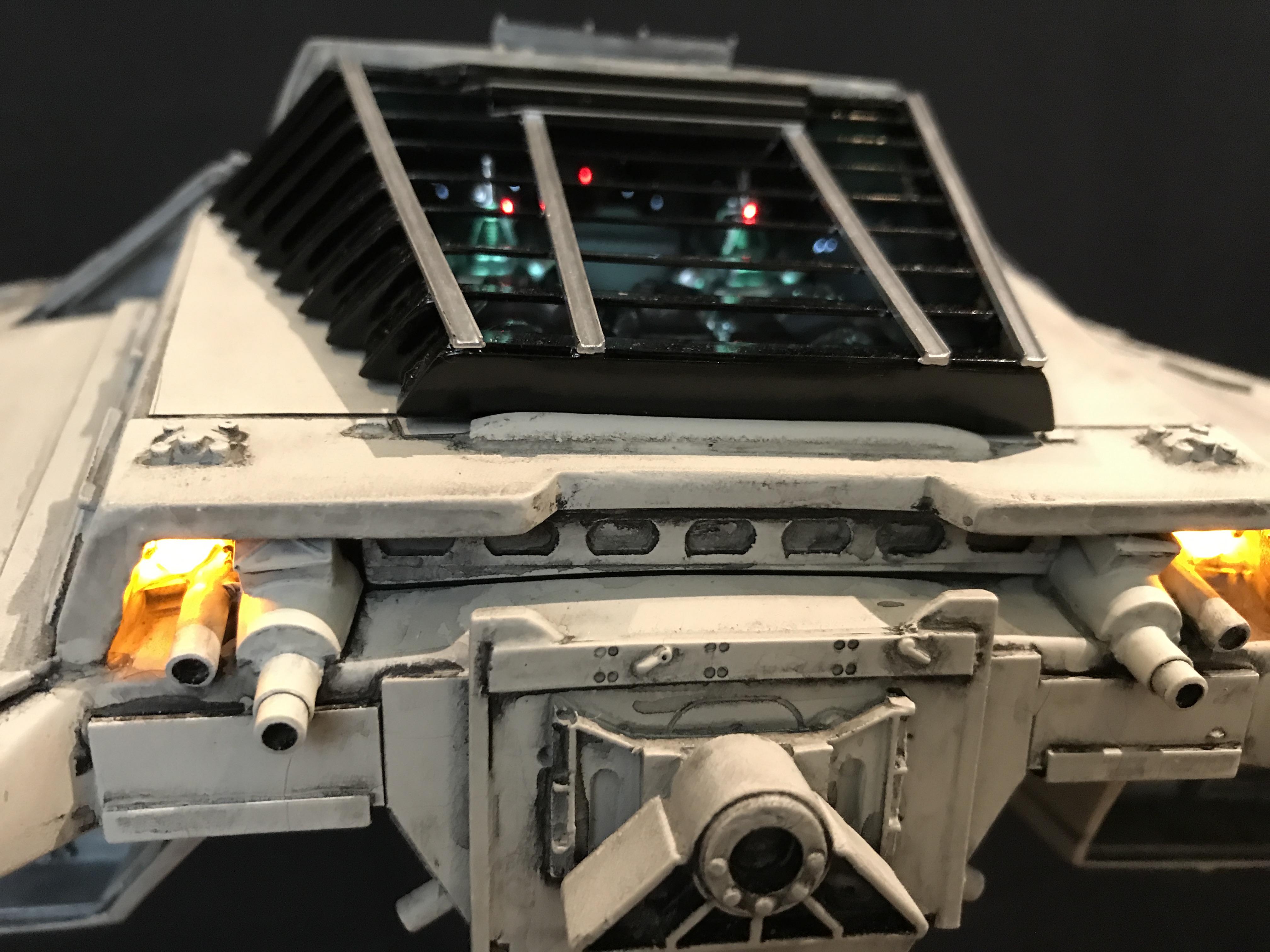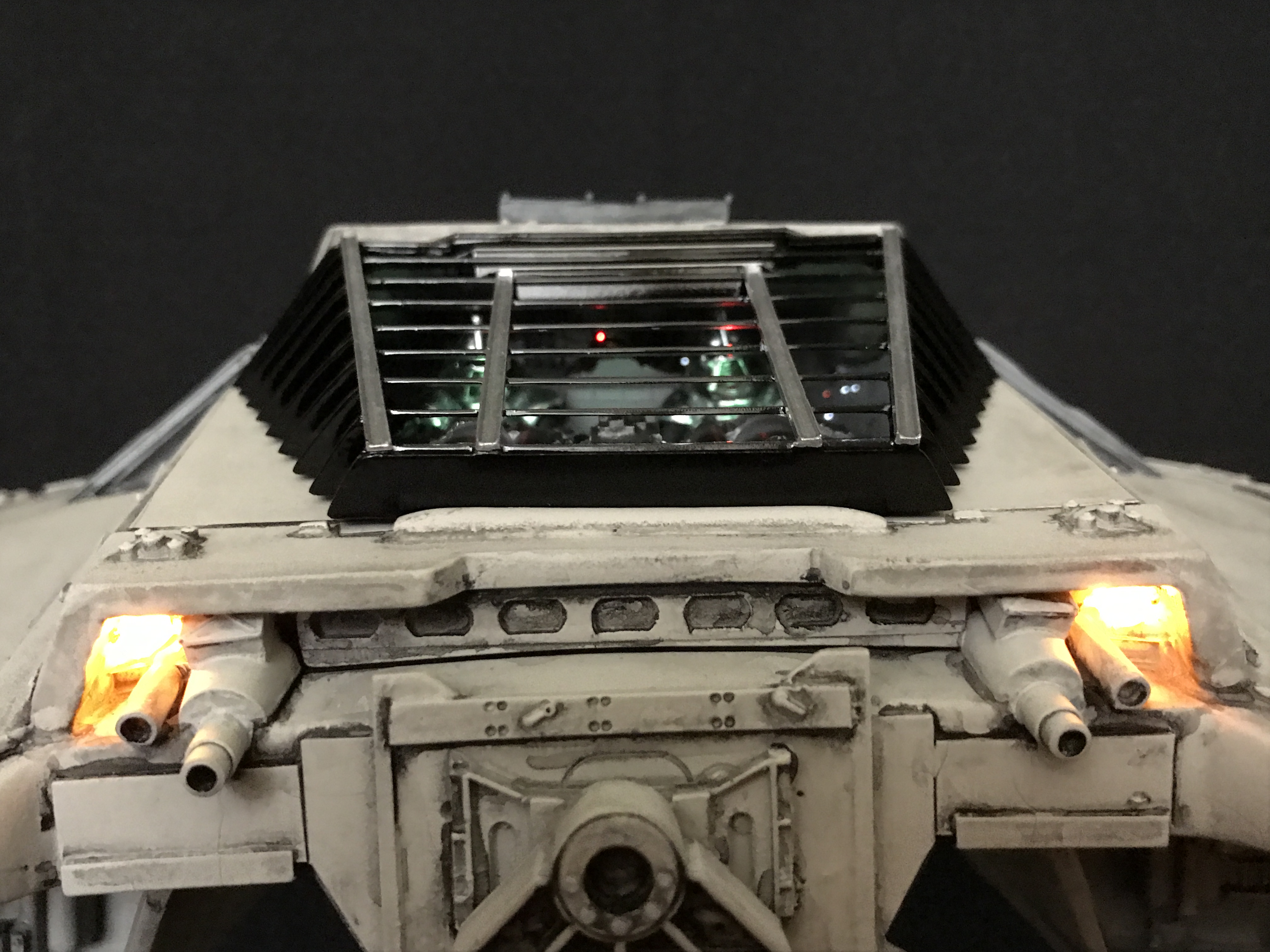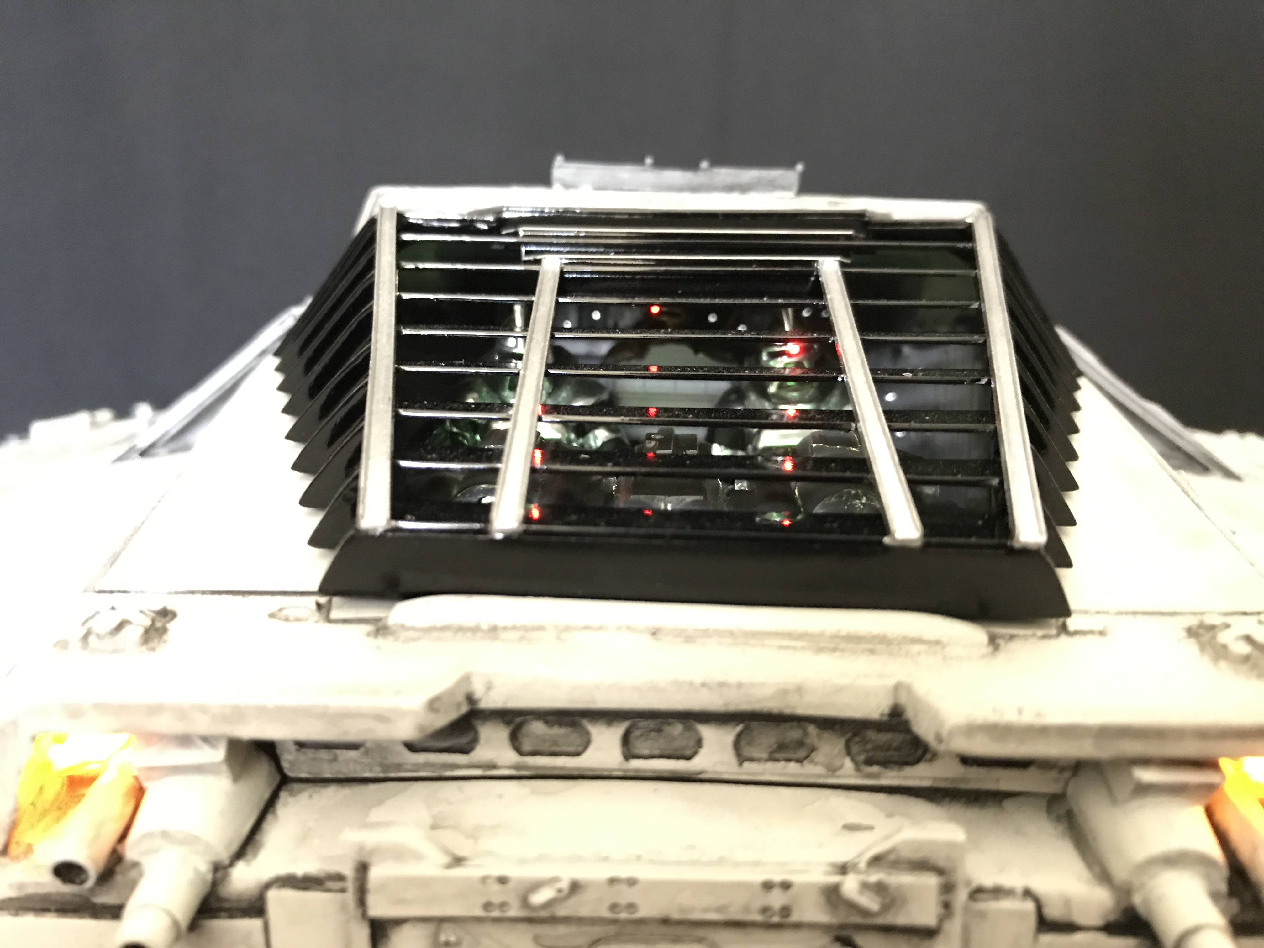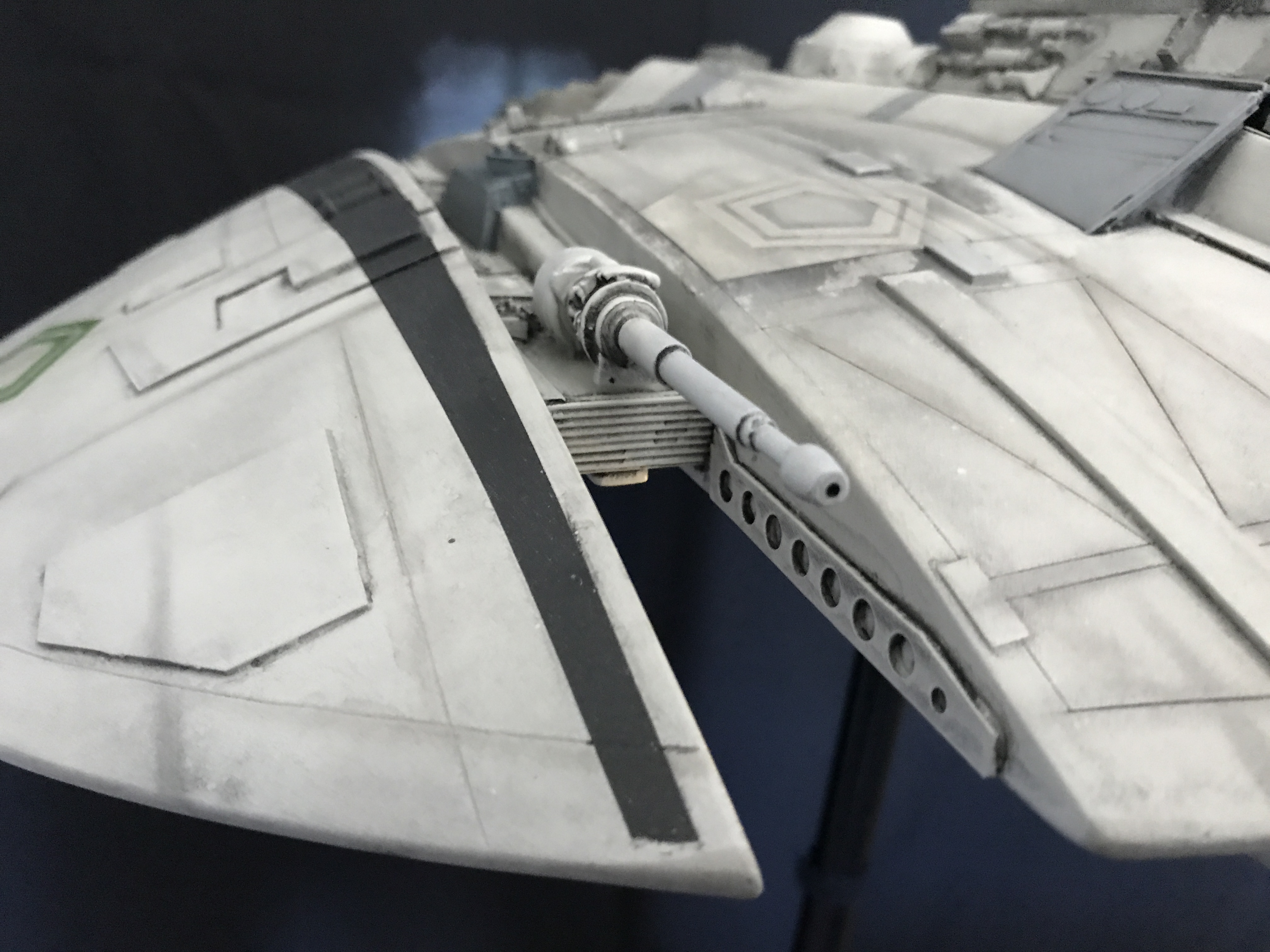 Last week we showed the first shots of the very first Salzo 1:24 Cylon Raider to be finished by Marc Elkins for the Michael Plante Collection. Today, we follow up that showing with even better photos from Michael Plante himself! This amazingly huge model is highly detailed and quite a bit larger than the studio scale Raider that has been offered in a few forms for years,… and now sold by Moebius Models. If you decide to get one of these 1:24 beasts, I understand it to be 2 feet wide! This is massive, and goes with the studio scale Vipers perfectly. Thank you Michael for sharing these photos…. and excellent work once again to artist Marc Elkins… the kit creator Mike Salzo.