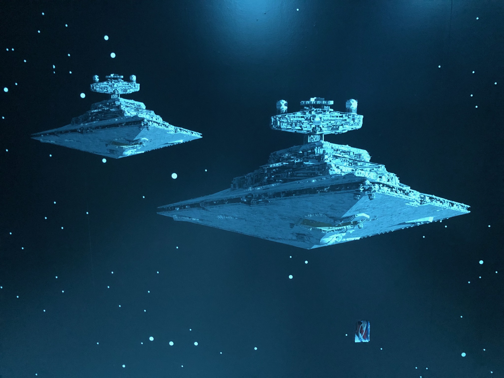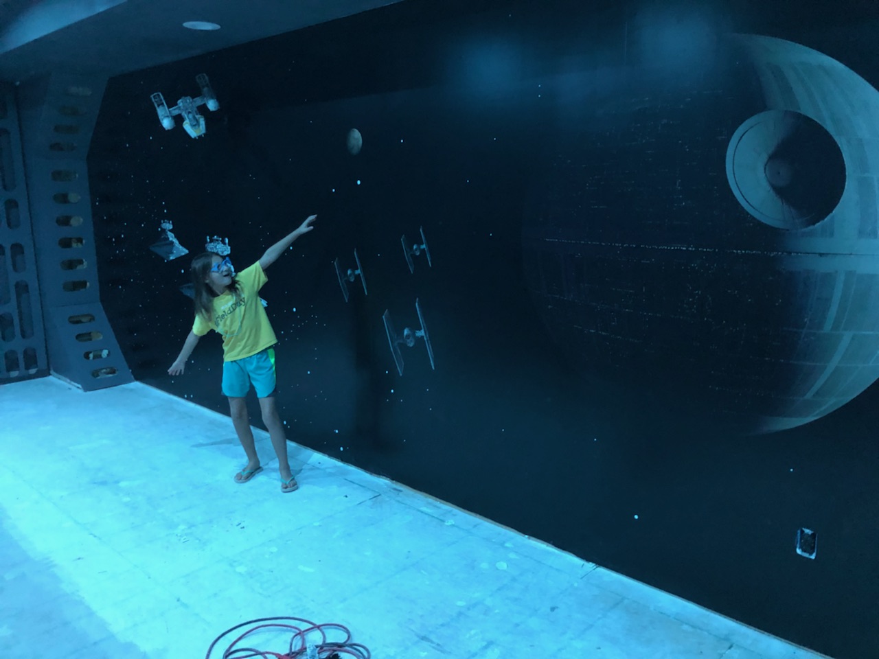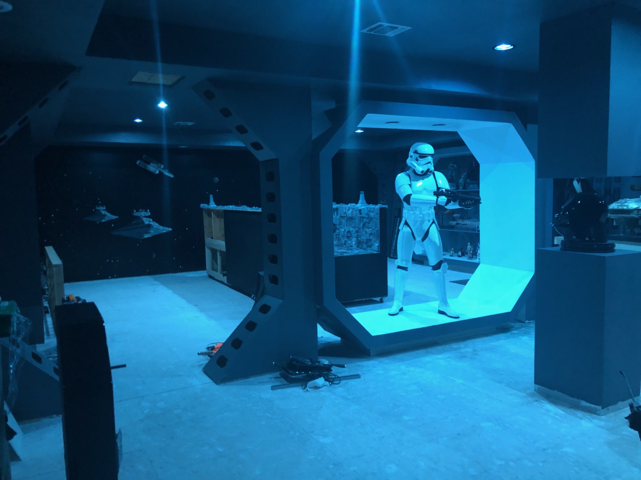 This is such an amazing area…1,800 square feet…. with panels cut to resemble the interior of the Death Star, and the lighting effects as well.
