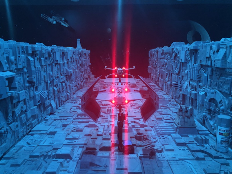 Behind Mike’s daughter you will notice a huge backdrop of which all photos were pulled from Modeler Magic. The Star Destroyer on the wall is 4 feet wide. I am told Mike utilized my photography of the Star Destroyer to create it. I am thrilled and honored that Mike utilized them.