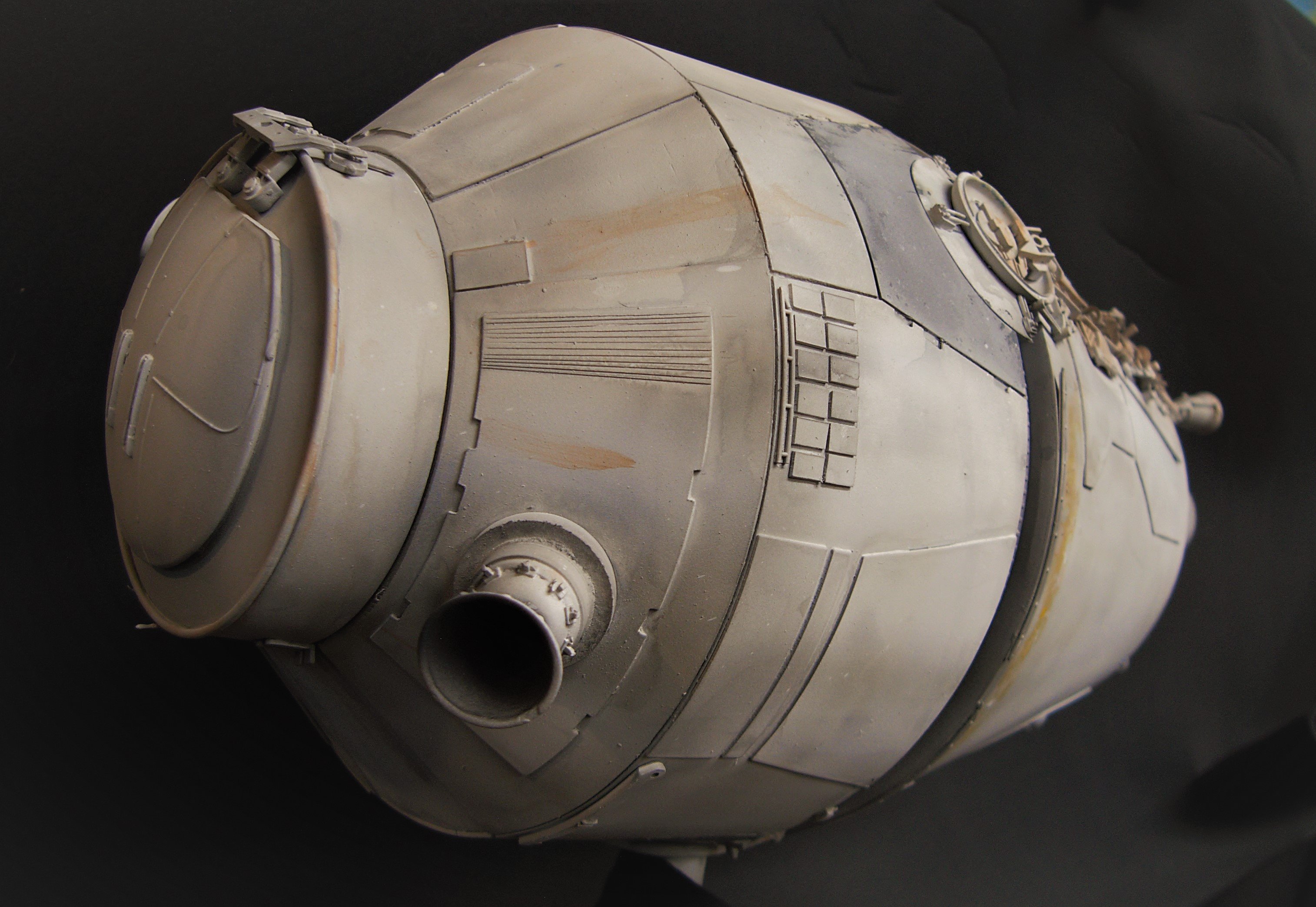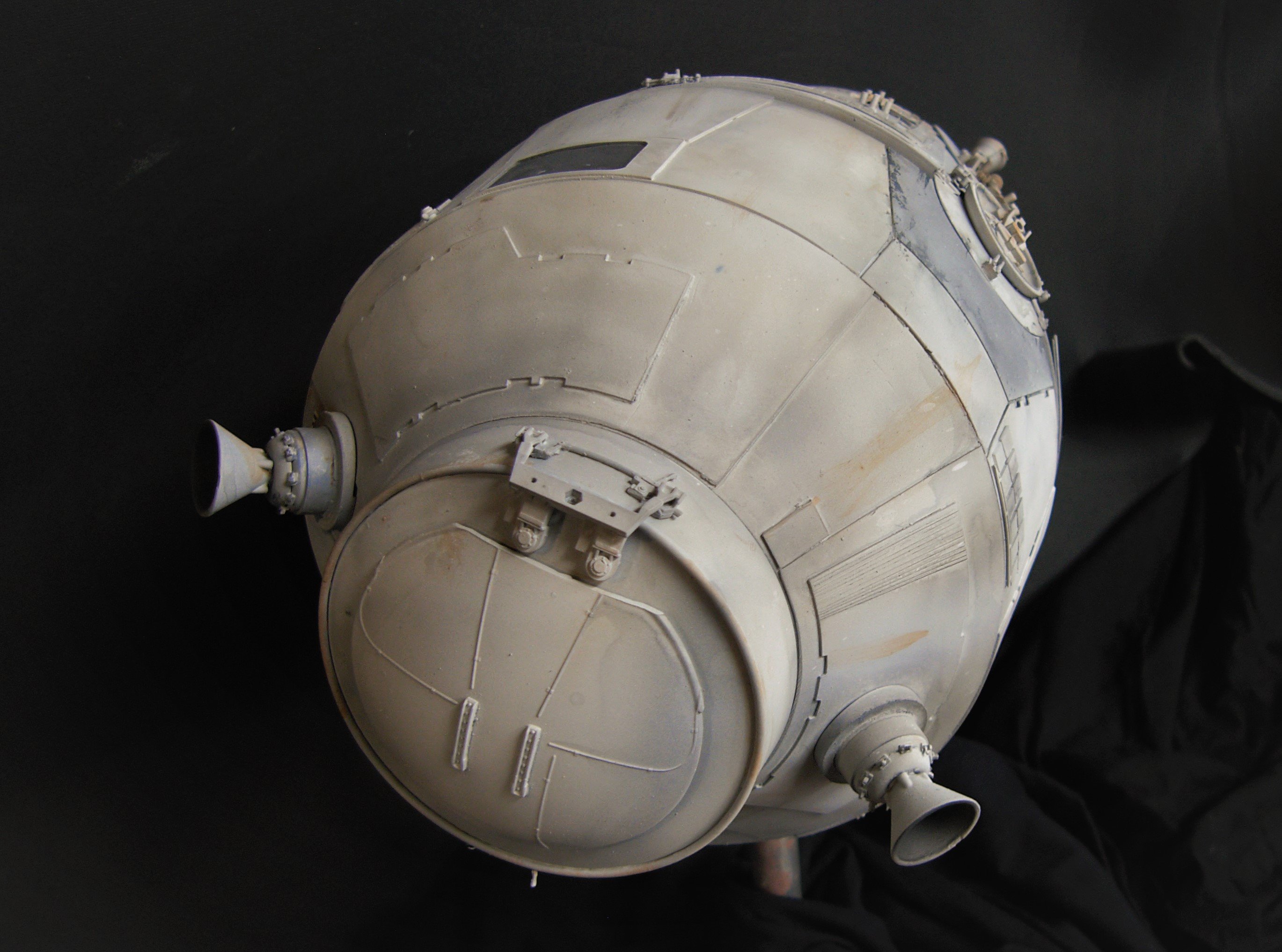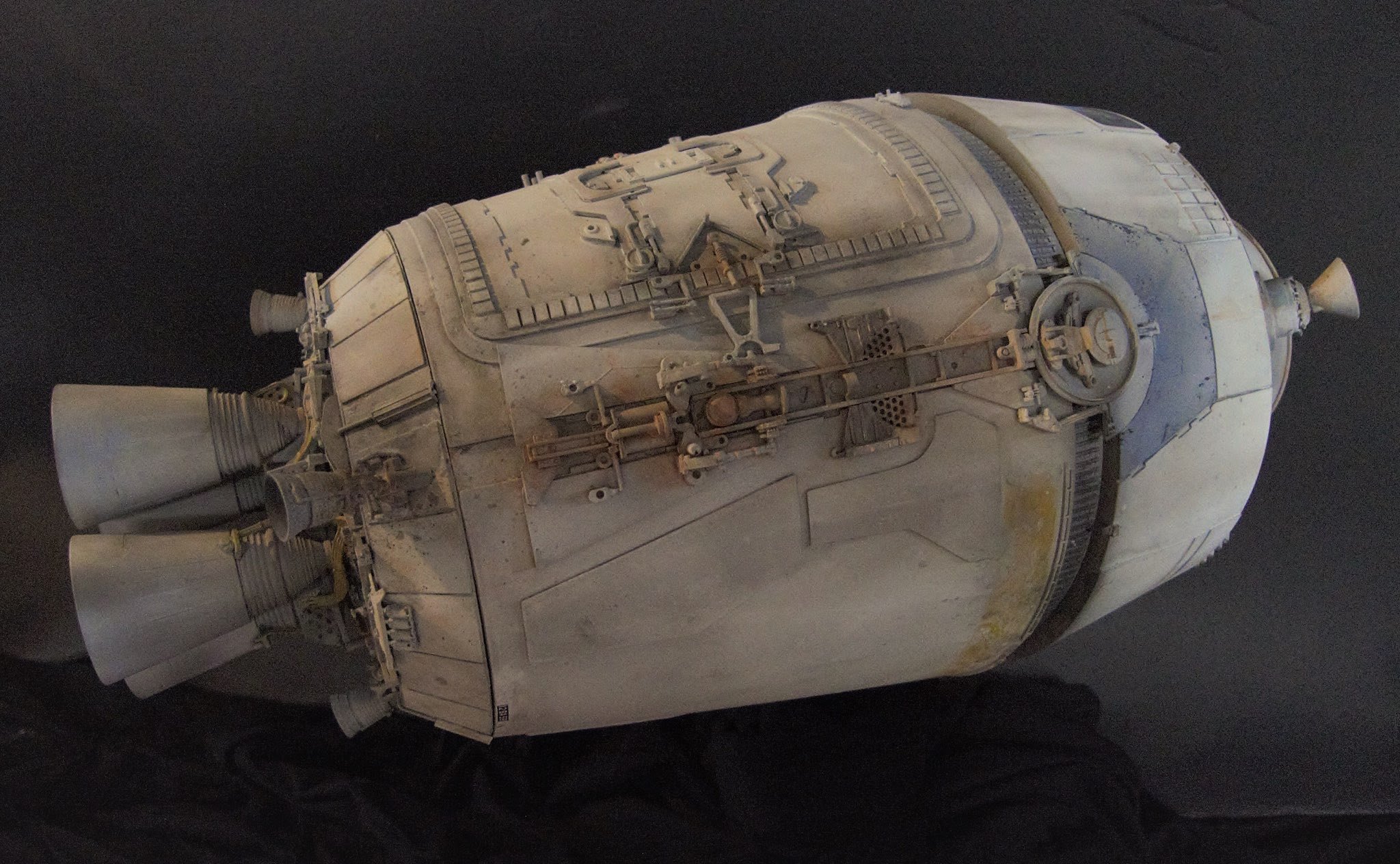 The Nice-N Model Designs studio scale Escape Pod is already fantastic as a Kit from the Frogman, and when placed into the hands of an artist with the skills of Mike Salzo, the piece comes alive! This beautiful build was commissioned by famed collector/artist Michael Hawes for his personal gallery in Texas, USA, which is the magnificent Death Star interior-based Gallery that Hawes himself built!! Beautiful work!