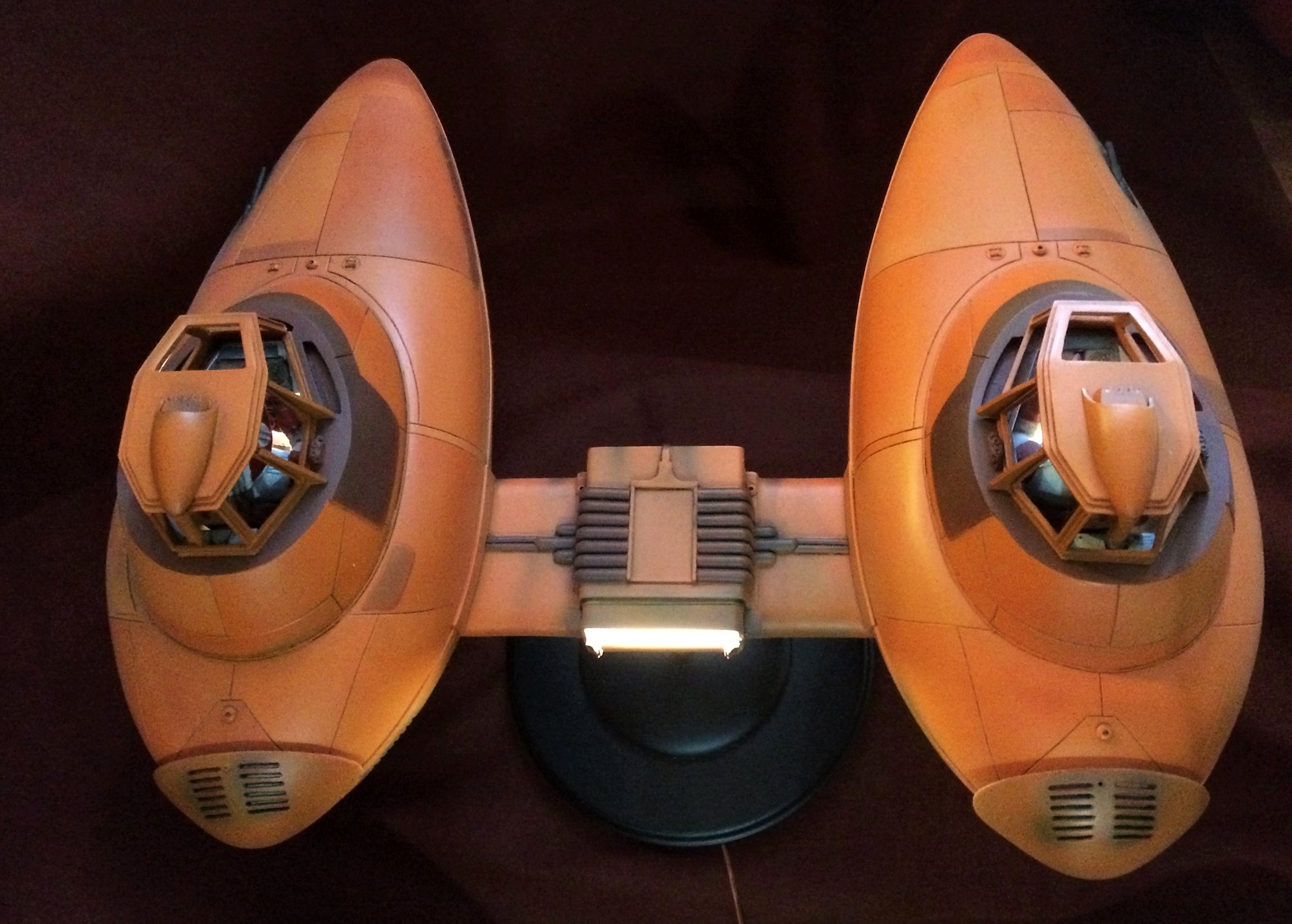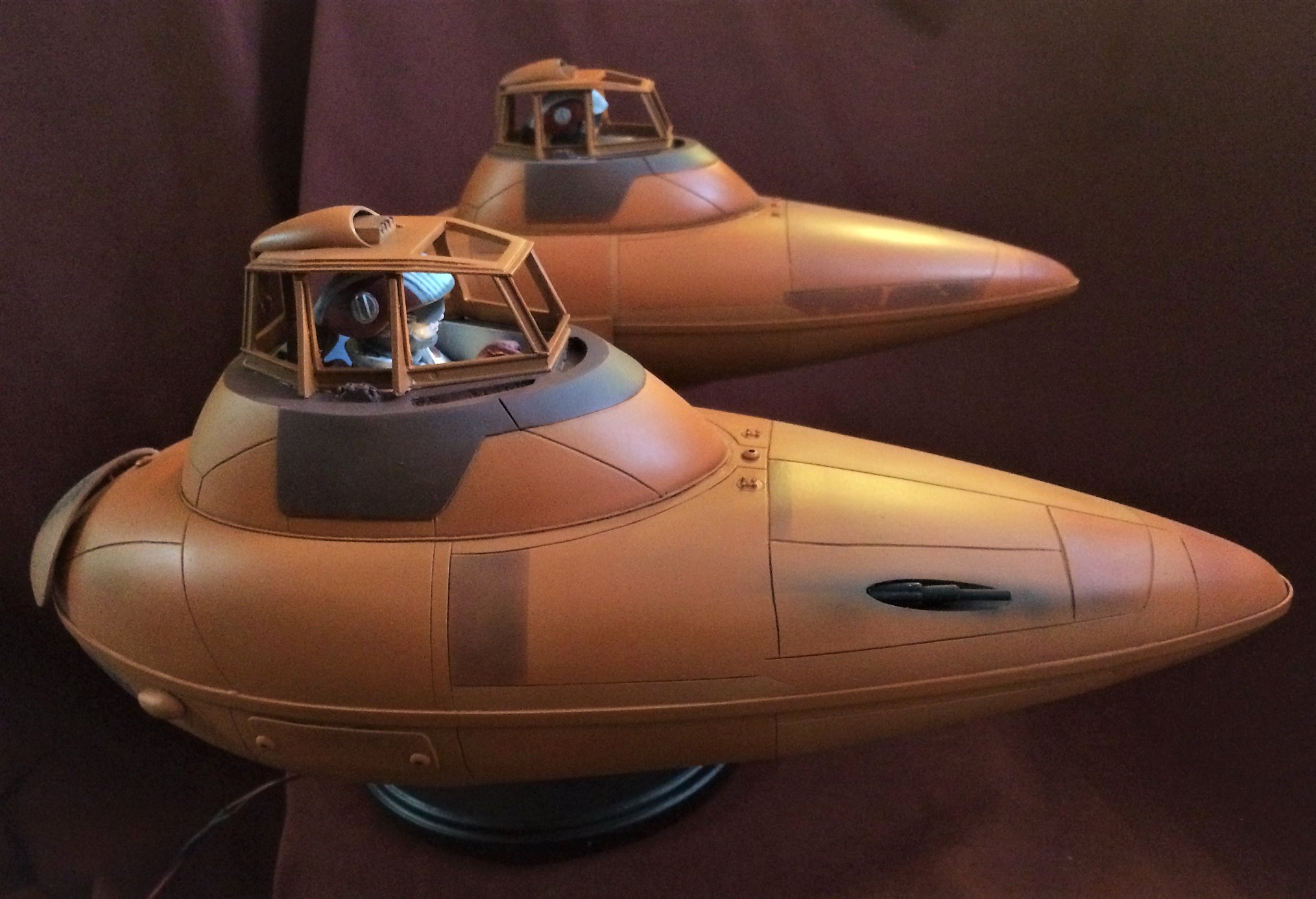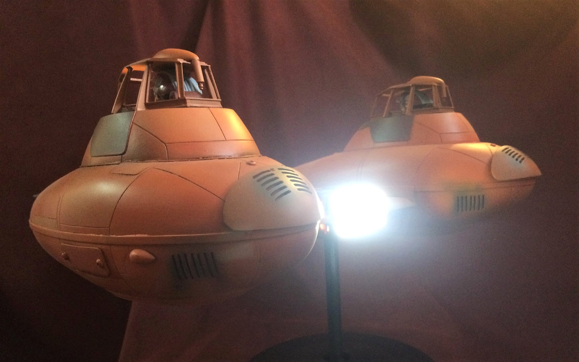 Being one of the most recognizable models ever made, the Cloud Car from Star Wars: The Empire Strikes Back has been made as a kit in a few different scales… including Studio Scale.. which you see here today. There had been some discussion early on of the first made studio scale replicas of the pods not being the correct lengths. That looks to have been solved with the fantastic NICE-N Model Designs Kit that famed artist Mike Salzo has just completed for his client.