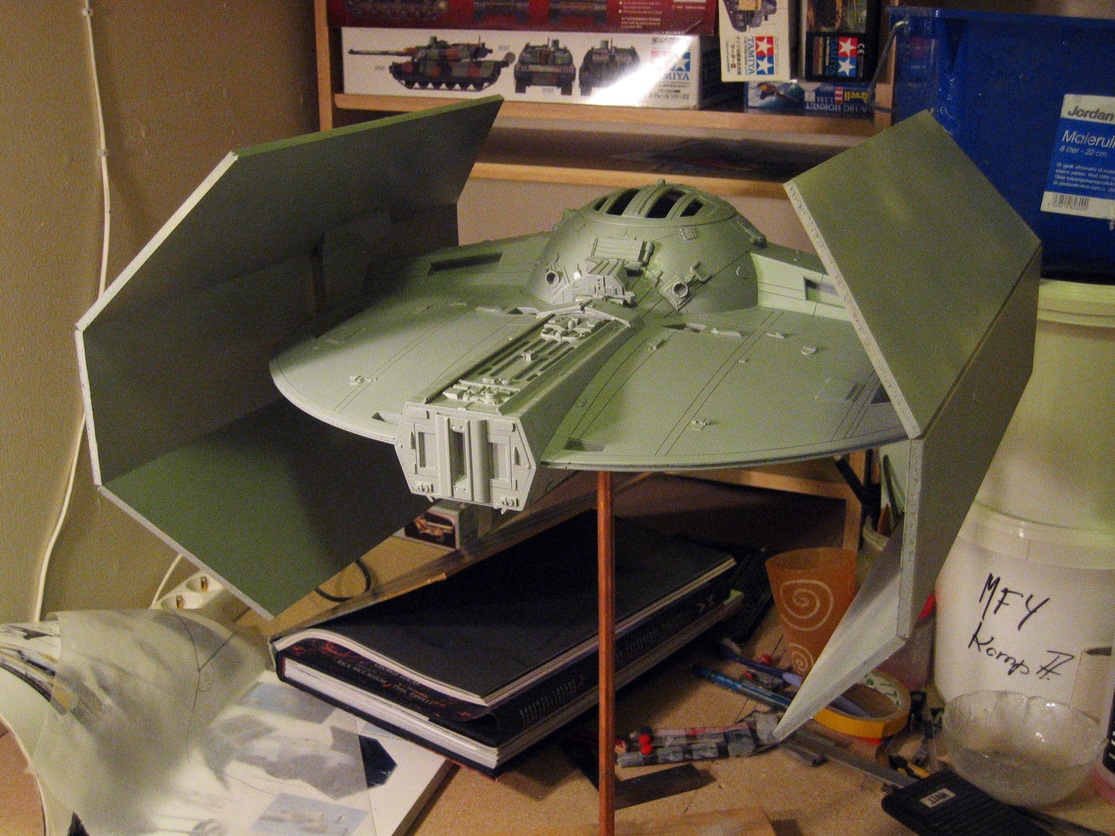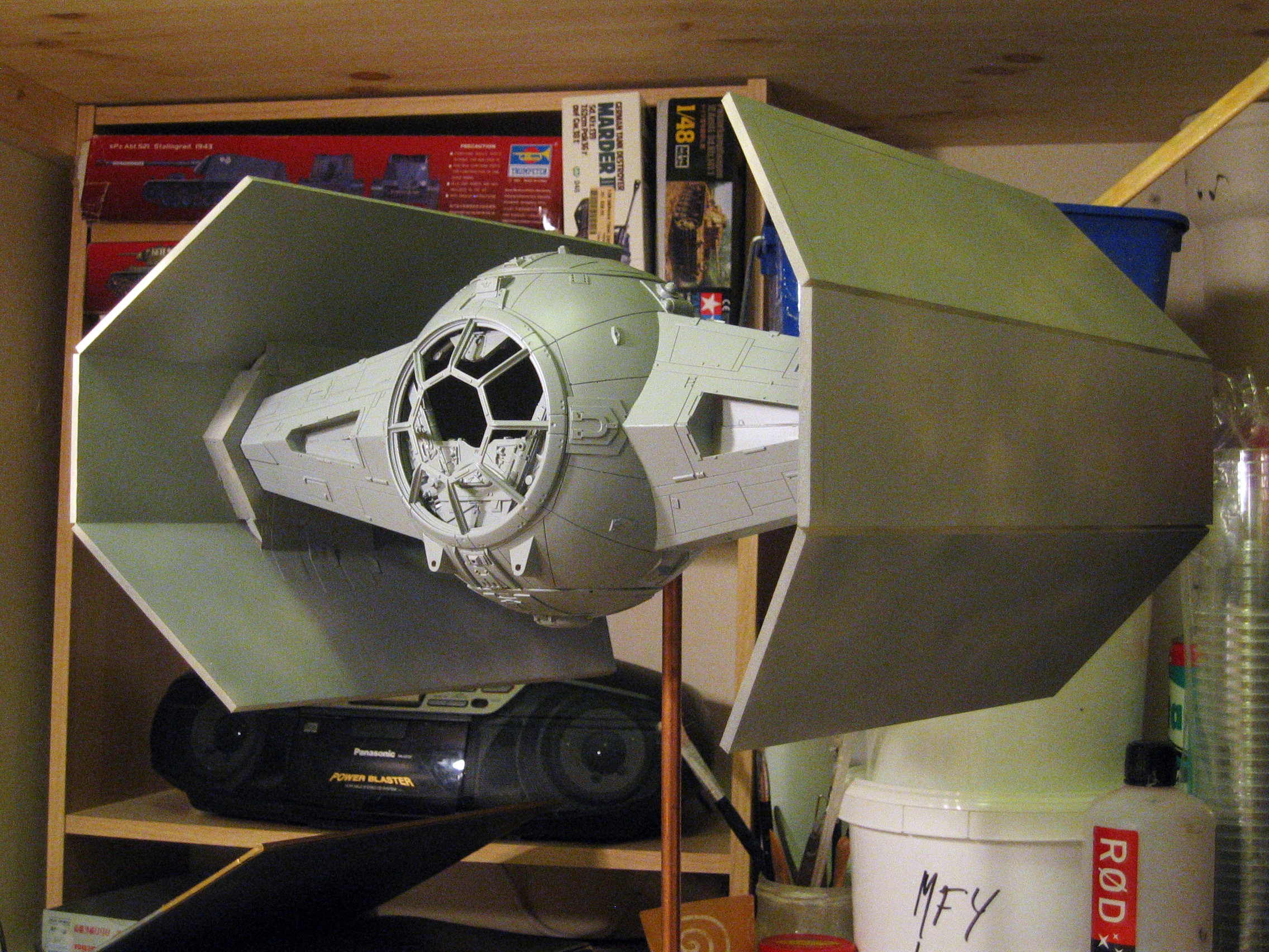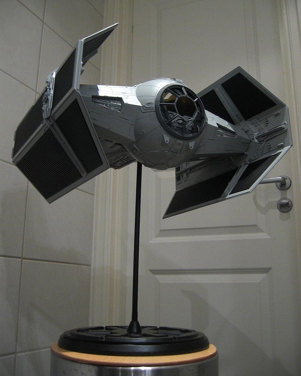 Ten years ago artist Lasse Henning decided to make a Darth Vader TIE X-1… and he did it his way! This 1/18 behemoth astounded many, including myself with the one that Lasse built for the collection here. Lasse took it to a Convention near him that actor David Prowse (whom portrayed Darth Vader in Episodes 4, 5 and 6) was at, and he loved it as well! This model continues to be very rare today, and still is amazing to view in it’s completed form. We are grateful of Lasse Henning for producing it.