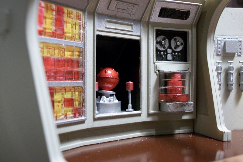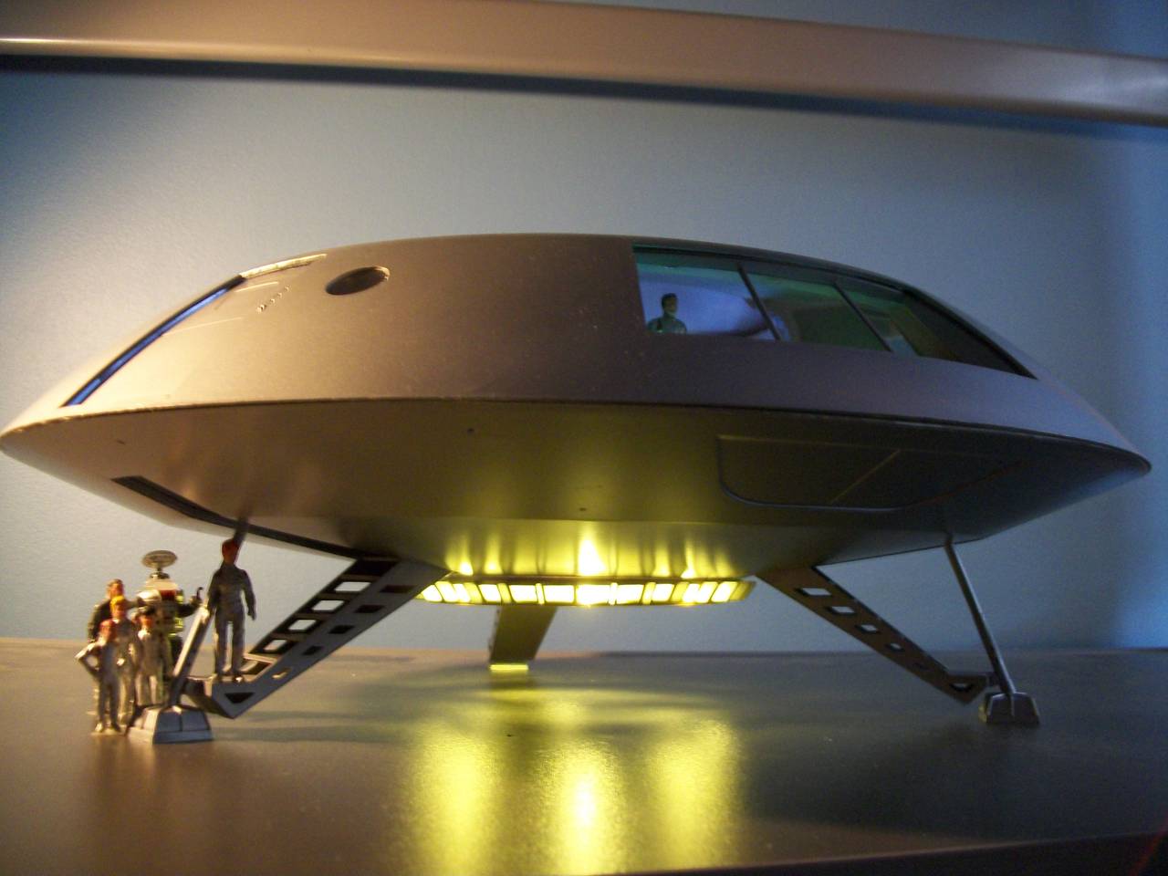 Here is my Highly modified Moebius Season 1 1/35 Jupiter 2. It features extensive scratch built details…All the hatches can be Manually slid open, The central single pilot’s seat comes out and snaps closed when it is stowed. The weapons locker opens to reveal both first and second season laser pistols, Robinson figures in the freezing tubes, Custom first season paint scheme, the landing gear can be snapped into place for a landed look, or replaced with the closed doors to represent an In Flight mode.Photo etched parts and decals from paragrafx, the Internal lighting is my own, the engine lights rotate……
