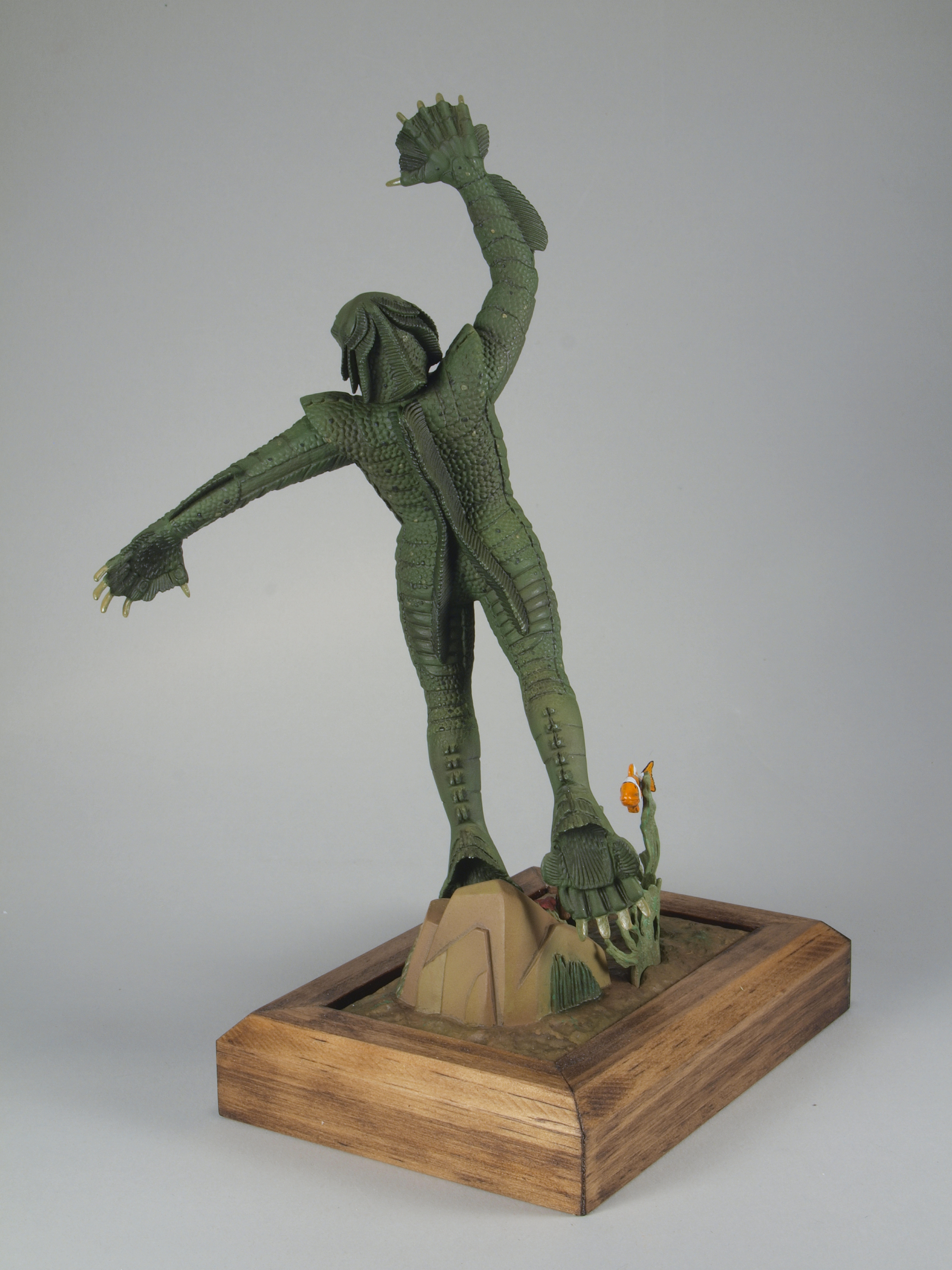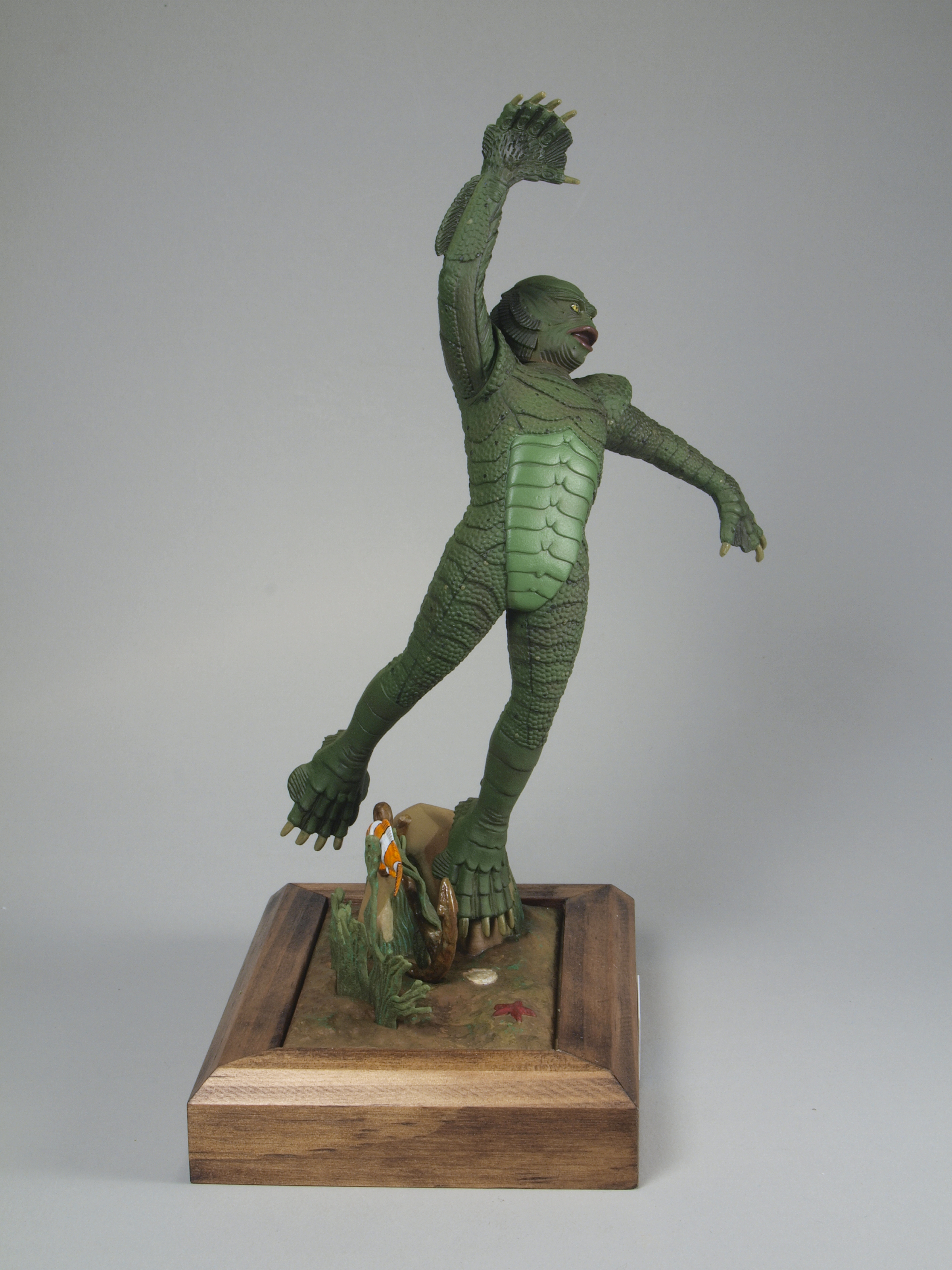 This is the “Creature From The Black Lagoon” from Moebius. Also built stock out of the box.Painted with Tamiya Acrylics and mounted on a wood base of my own design. A fun build of one of my favorite Monsters!