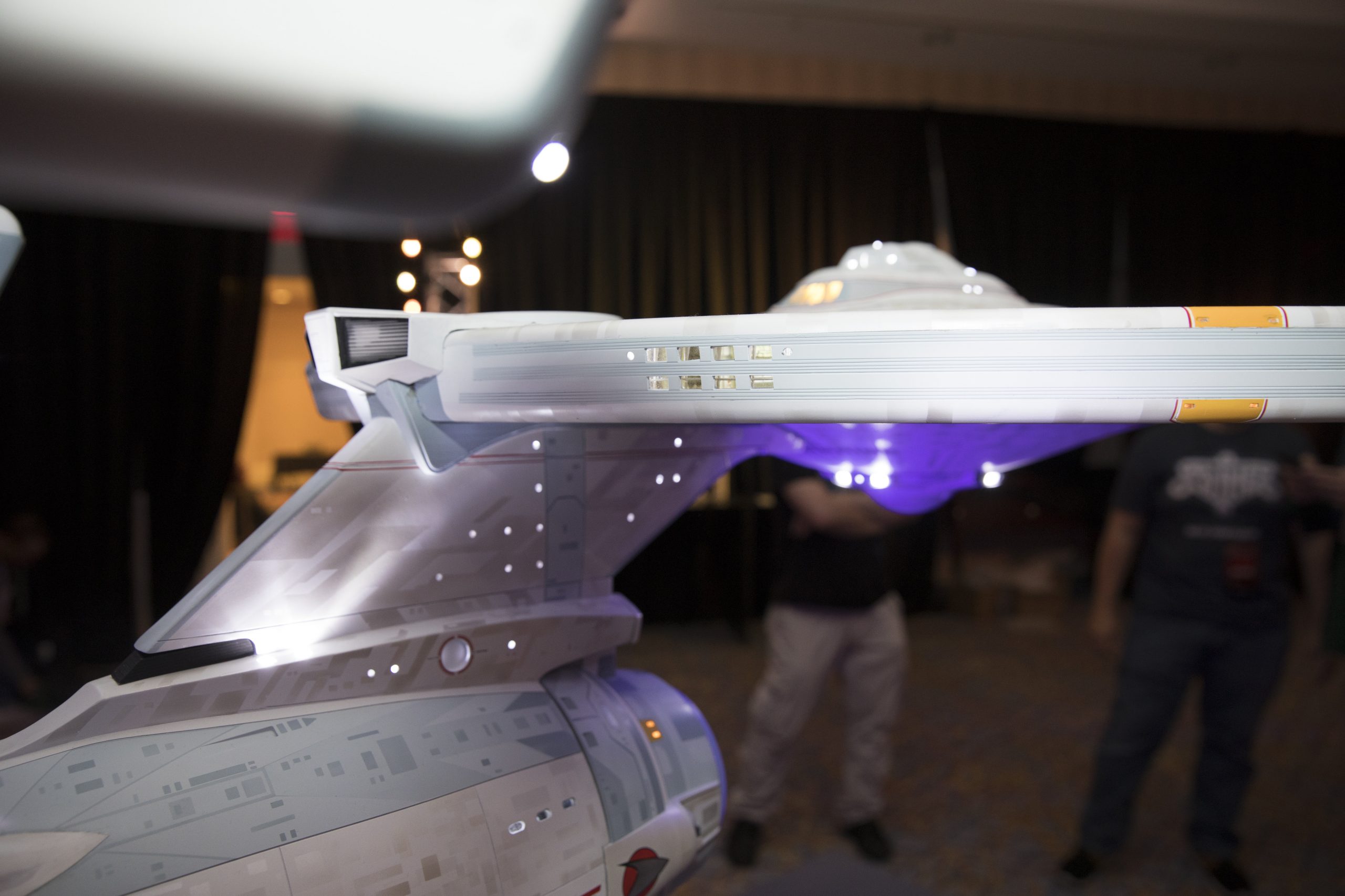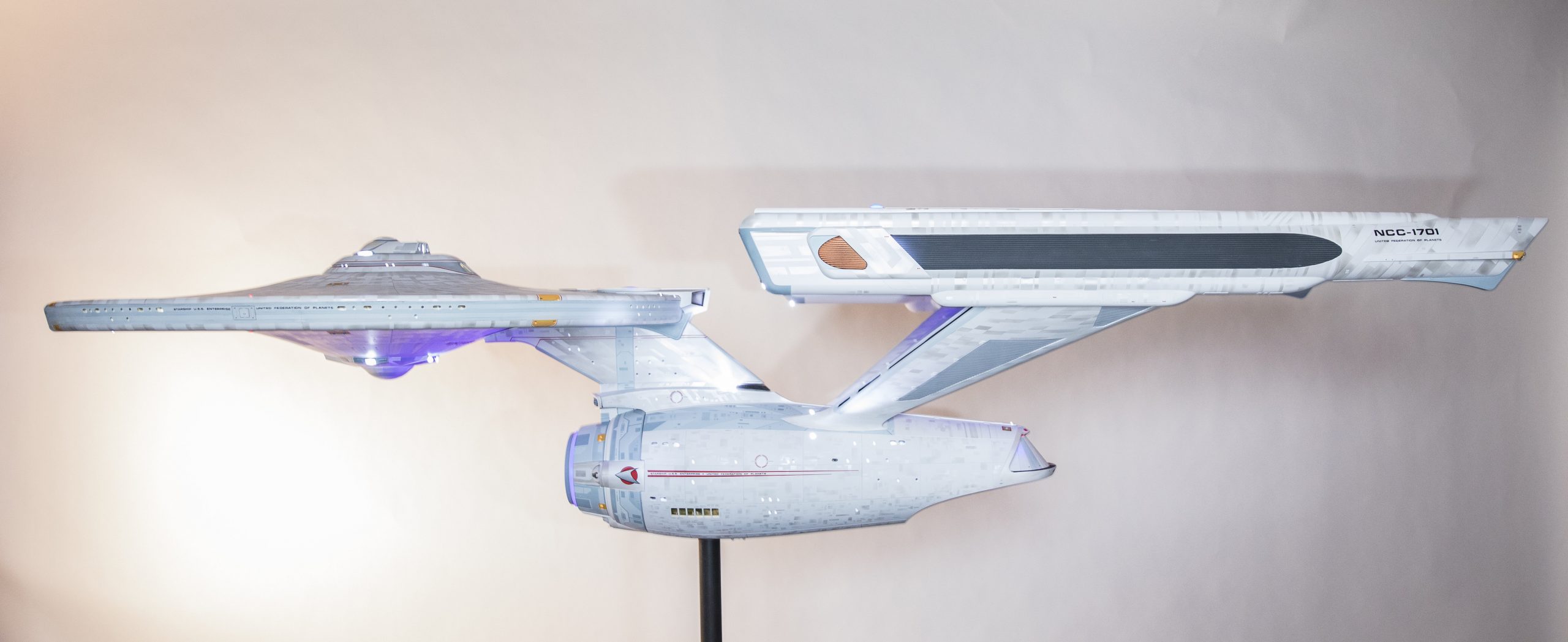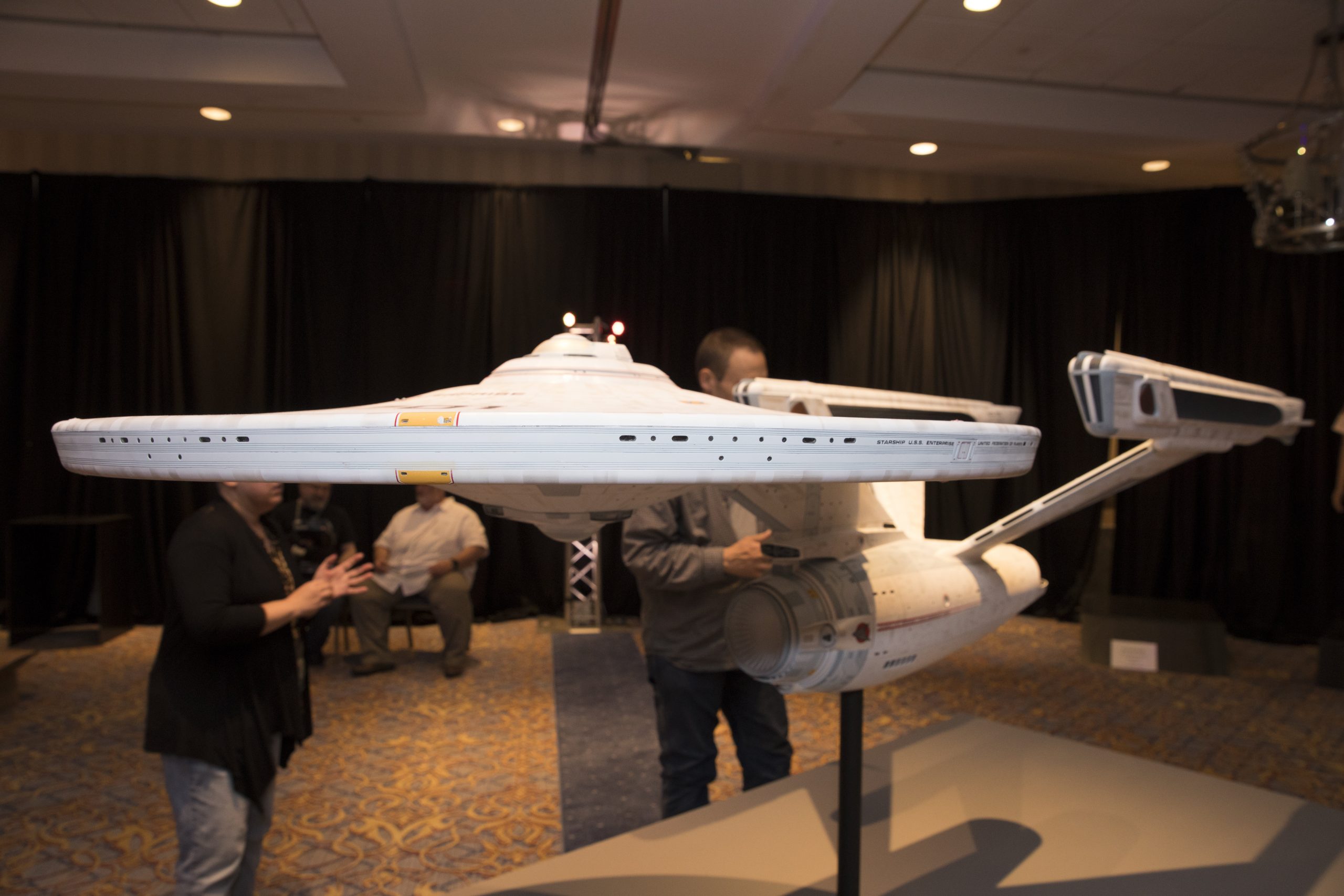 During this very date one year ago I had the great pleasure of showing a studio scale model replica that had eluded the world for decades due to it’s size and complexity to make. Using parts from the fantastic TimeSlip Creations (George Takacs) kit that is still in development today, along with making our own parts that were unavailable back then,… we brought to life the world’s first studio scale replica of the USS Enterprise REFIT as seen in the 1979 film Star Trek The Motion Picture. There were many artists involved in the making of this fine piece, and while the project was lead and paid for by myself (Kurt Kuhn), it was truly artist Dan Grumeretz who made it larger than life, adding in incredible detail and form. For instance, while many whom would create such a model might have used decals, or dry rub-on markings, I am impressed with how Dan painted every marking on the model, nor matter how large or small. Even the interior hallways and rooms are finely detailed, revealing some rather fantastic “Easter Eggs” we decided to place within the model for all to find. People literally cried with tears of joy when they viewed it on display as it went through it’s Space-Dock activation sequence as seen on the film. I know this because I was one of those who cried! LOL. There were thousands of people who were able to view it that weekend. I cannot tell you how grateful I am of Dan Grumertez, George Takacs, Daniel Beck, Dustin Ashton, Clint Borucki, Marc Elkins, my wife Melanie, and so many others involved in the creation of this fine, and world’s first, studio scale replica of this model. I thank you all.