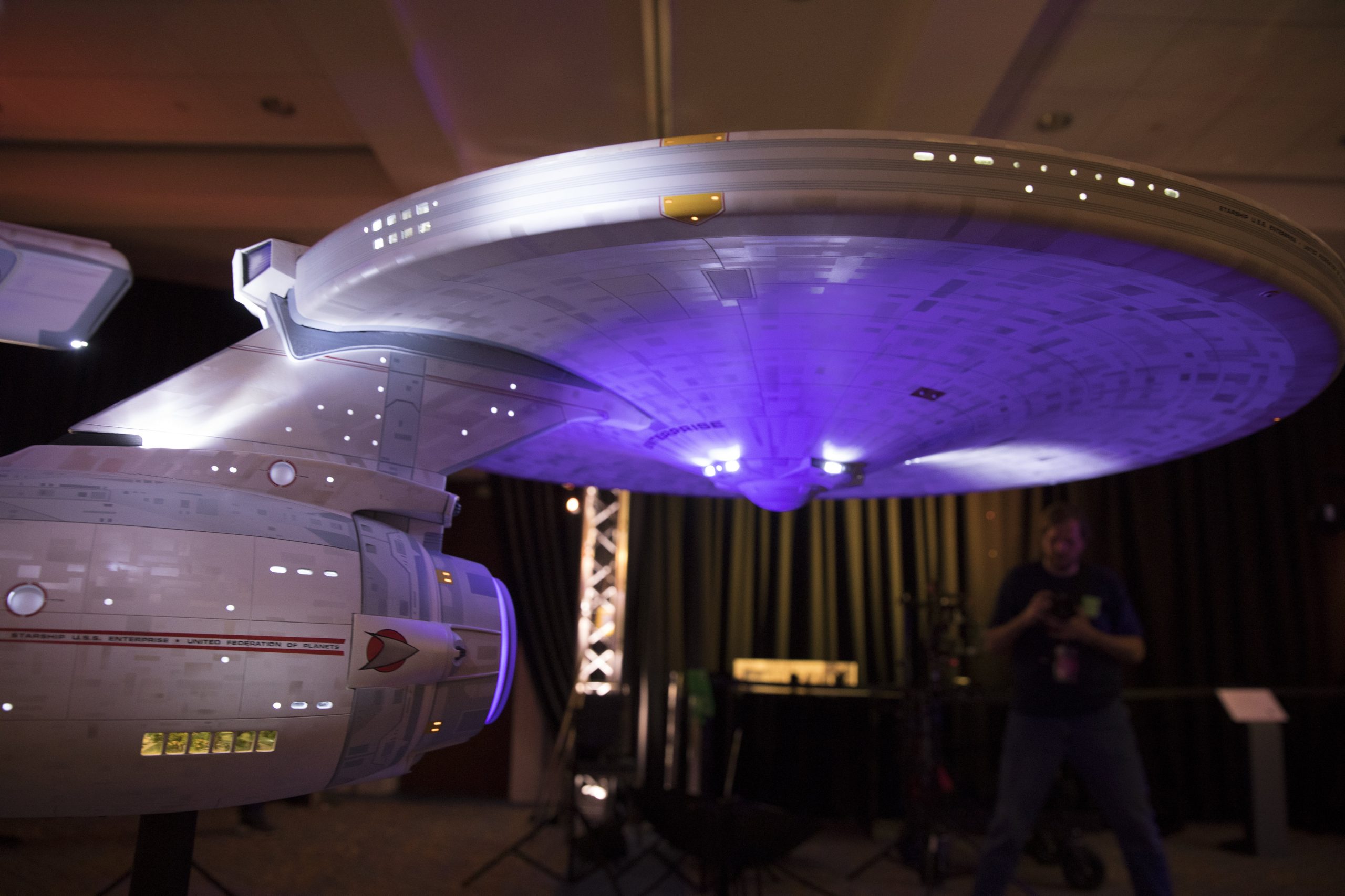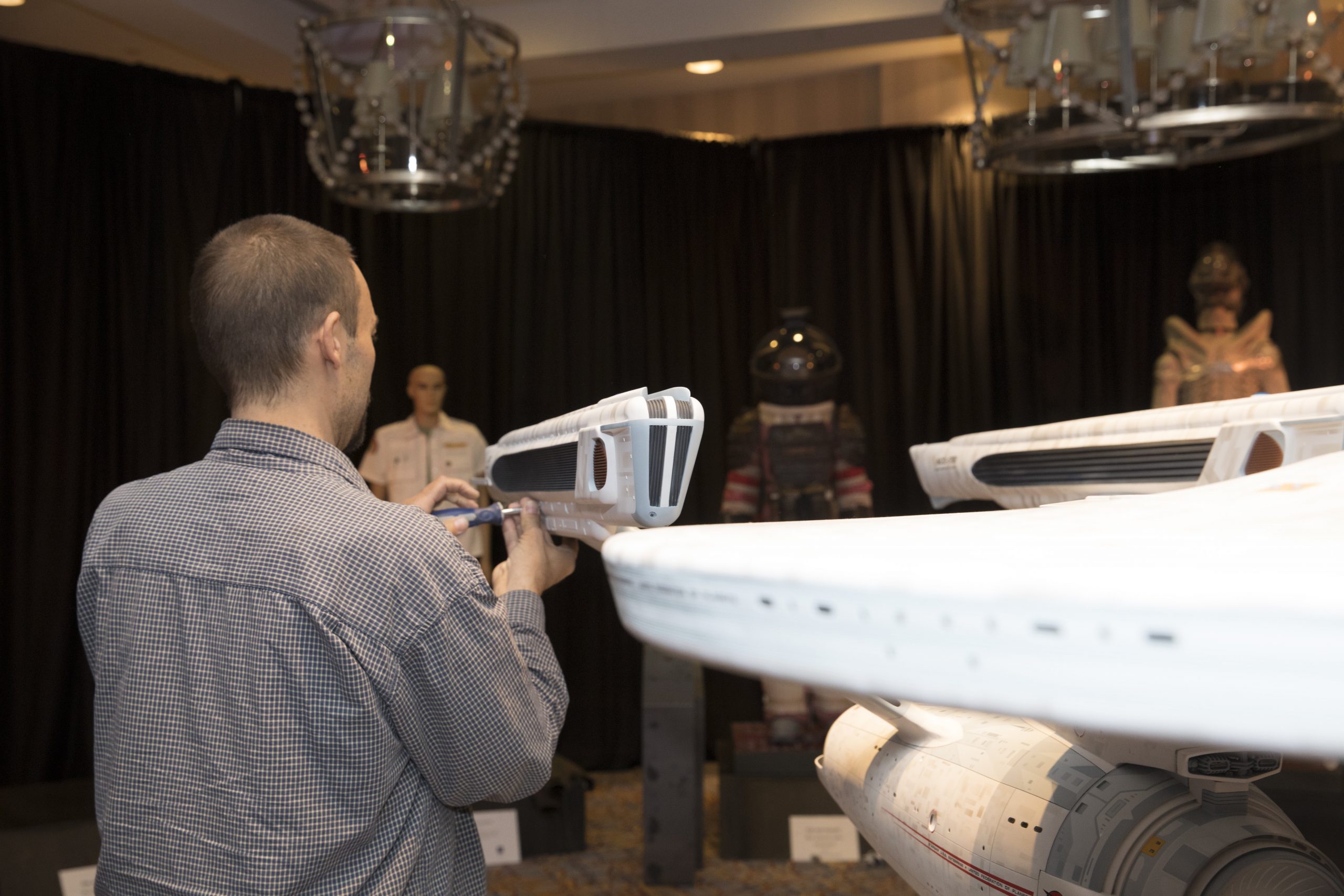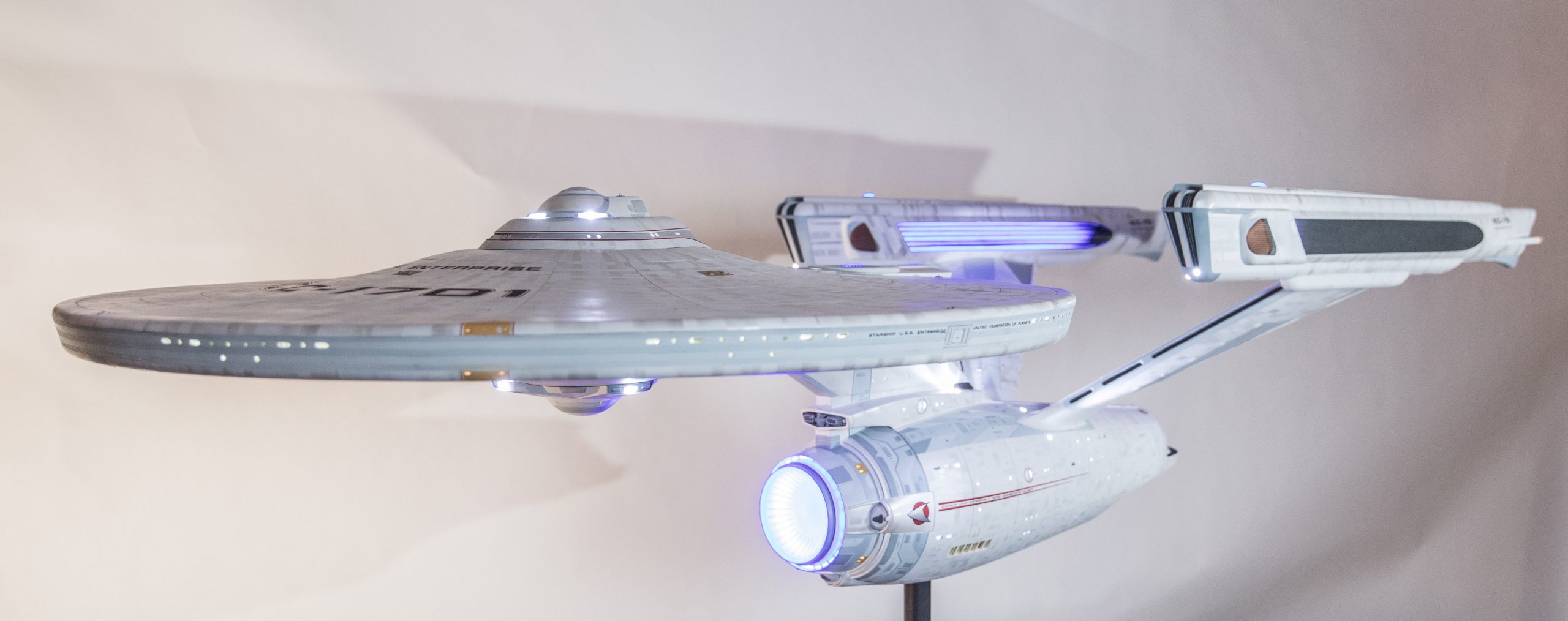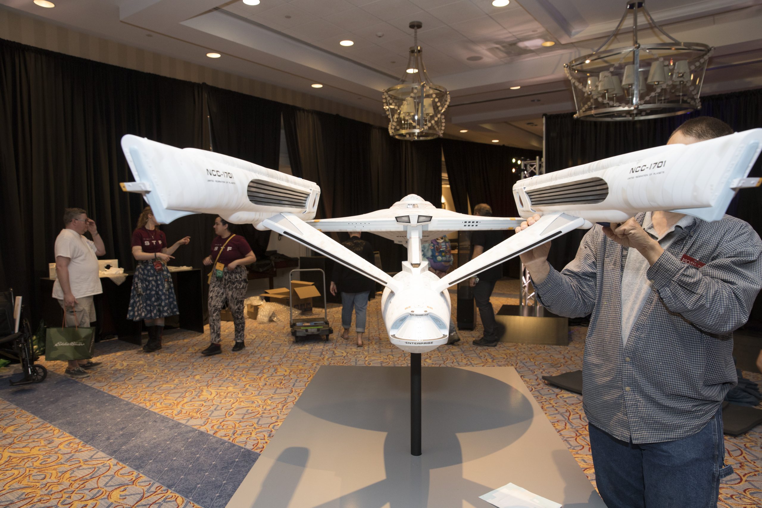 During this very date one year ago I had the great pleasure of showing a studio scale model replica that had eluded the world for decades due to it’s size and complexity to make. Using parts from the fantastic TimeSlip Creations (George Takacs) kit that is still in development today, along with making our own parts that were unavailable back then,… we brought to life the world’s first studio scale replica of the USS Enterprise REFIT as seen in the 1979 film Star Trek The Motion Picture. There were many artists involved in the making of this fine piece, and while the project was lead and paid for by myself (Kurt Kuhn), it was truly artist Dan Grumeretz who made it larger than life, adding in incredible detail and form. For instance, while many whom would create such a model might have used decals, or dry rub-on markings, I am impressed with how Dan painted every marking on the model, nor matter how large or small. Even the interior hallways and rooms are finely detailed, revealing some rather fantastic “Easter Eggs” we decided to place within the model for all to find. People literally cried with tears of joy when they viewed it on display as it went through it’s Space-Dock activation sequence as seen on the film. I know this because I was one of those who cried! LOL. There were thousands of people who were able to view it that weekend. I cannot tell you how grateful I am of Dan Grumertez, George Takacs, Daniel Beck, Dustin Ashton, Clint Borucki, Marc Elkins, my wife Melanie, and so many others involved in the creation of this fine, and world’s first, studio scale replica of this model. I thank you all.