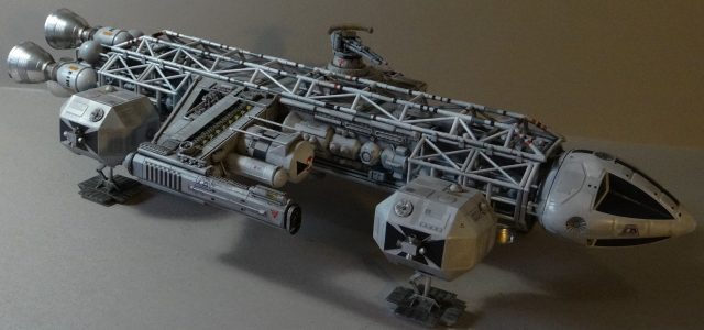 This is the MPC/Round-2 Eagle with a combat pod I designed. The idea was that it was developed to better protect Moonbase Alpha from increasingly dangerous enemies. The pod is equipped with a heavy railgun and a twin laser turret, as well as a mine layer. Some shots also taken with my old 1/48 Mk.9 Hawk kit.