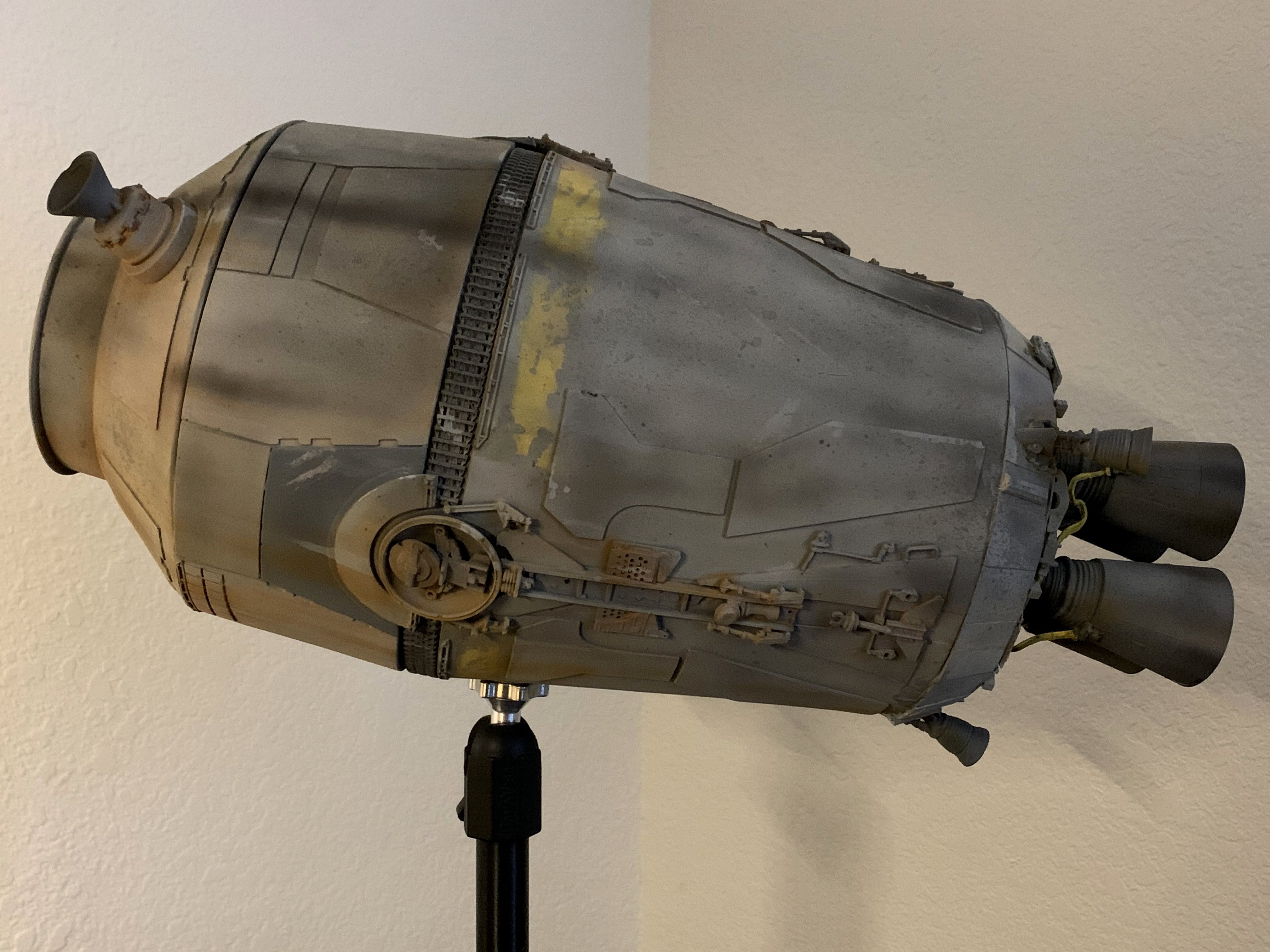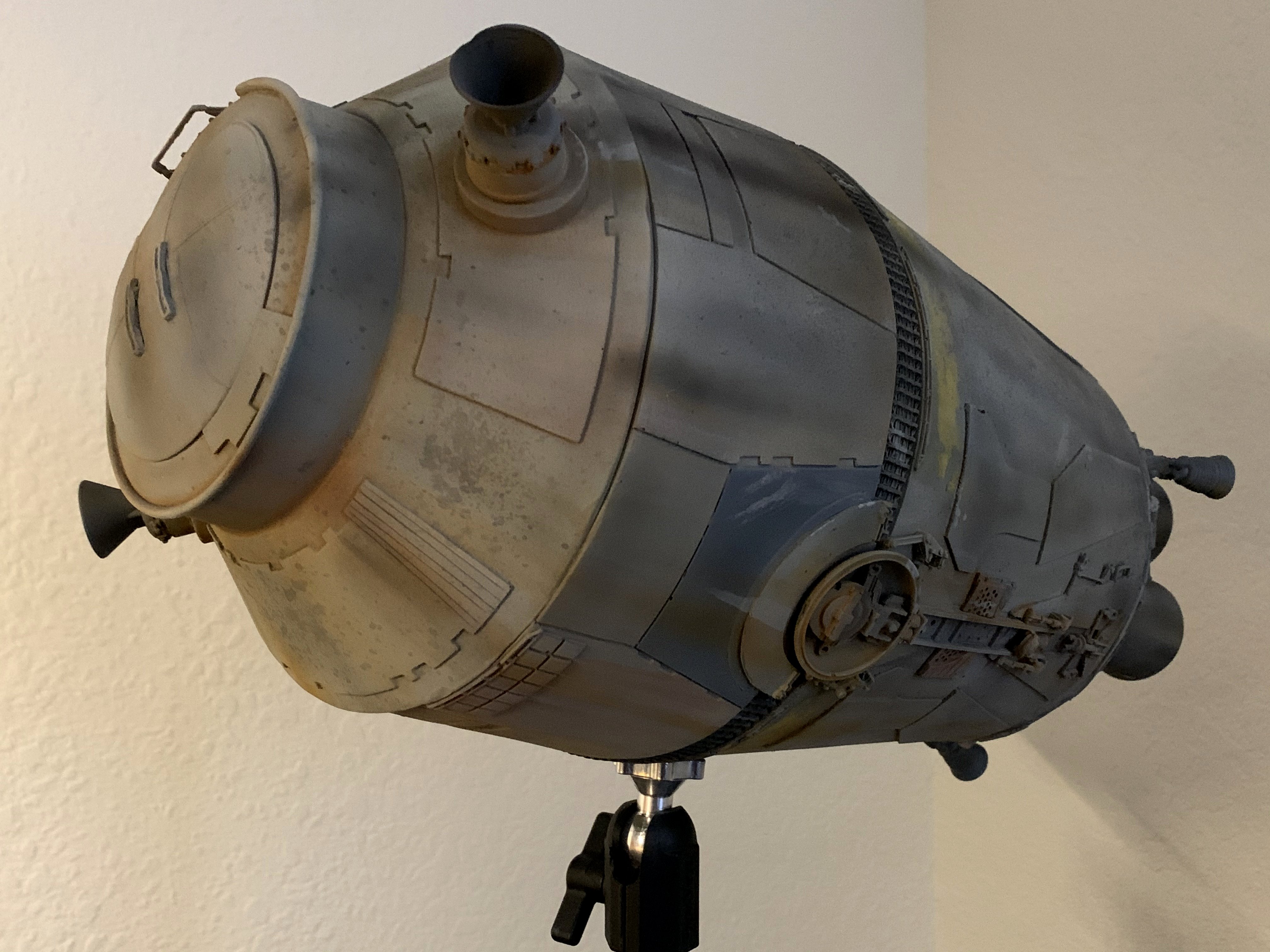 This is my buildup of the Nice-N models studio Scale Escape Pod from A New Hope. Painted primarily with Archive-X enamels, this was a challenging but fun build. This was also my first time mounting to a PanaVise stand, and I was really happy with the positioning options it afforded after it was completed. Now in the collection of Brian Wooldridge.