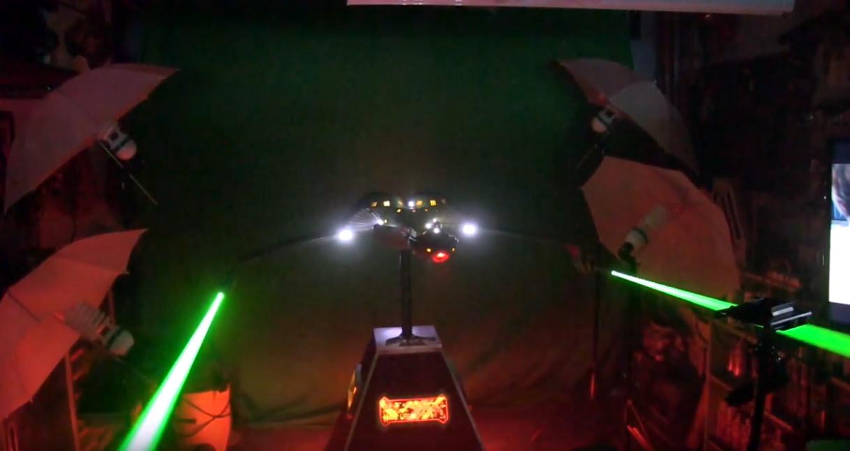 Another beautiful studio scale Bird of Prey has been built… this one by artist Simon Mercs of The Kit Factory! This amazing piece has some fantastic effects with actual lasers placed into the wing canons, and the automated wing lift and lowering! I love this! The mechanism used for the wing to raise and lower was developed by another known artist… from Monkey Works… Ed Holt! With permission given by Simon, I edited down the original video Simon filmed to be only 6 minutes long, now showing the model only. It is worth the full watch to see the fantastic wing and laser effects in different lighting that Simon added. This great collaboration of talent truly is magnificent. Nicely done!