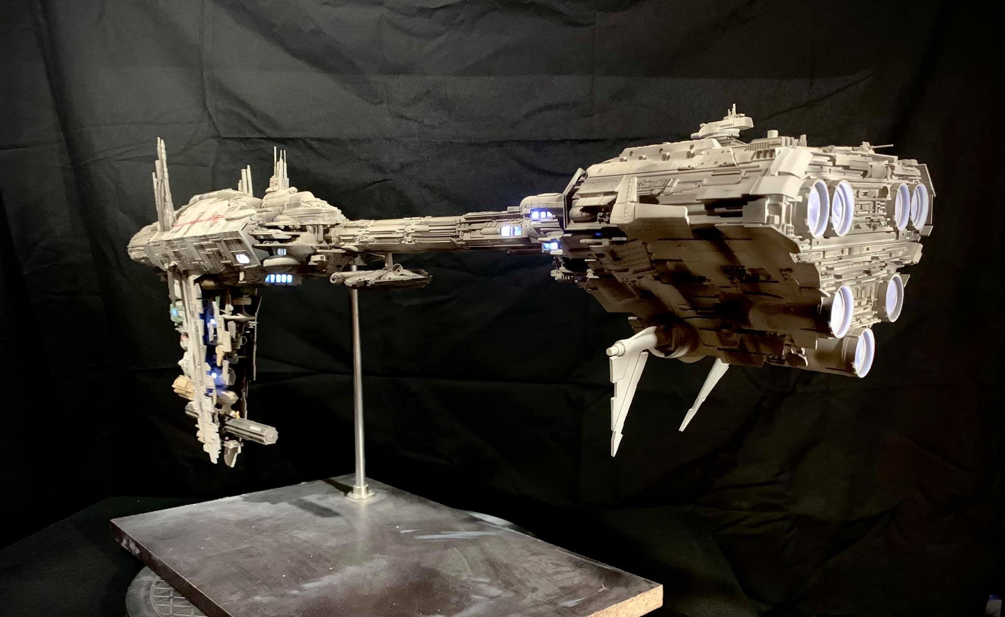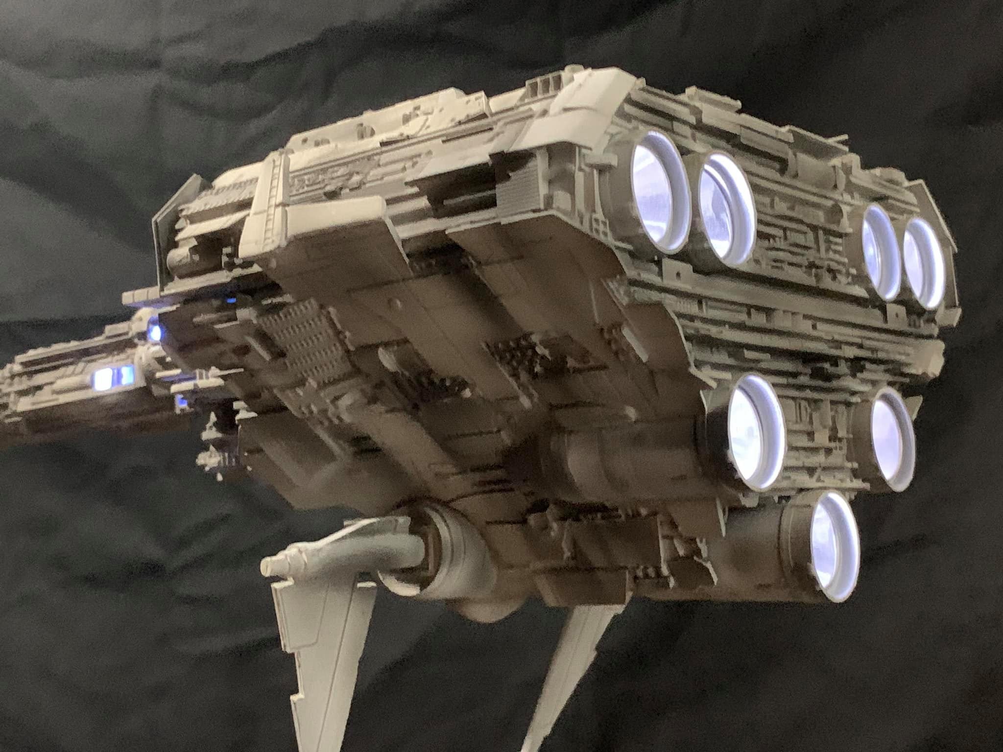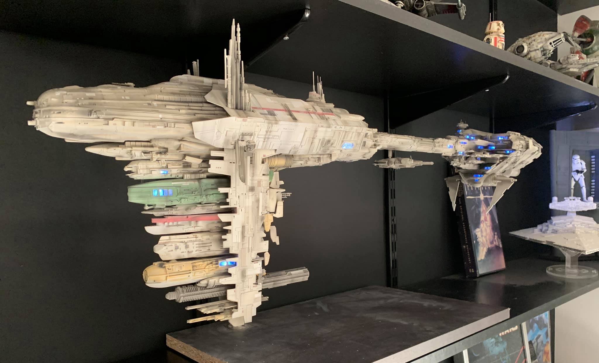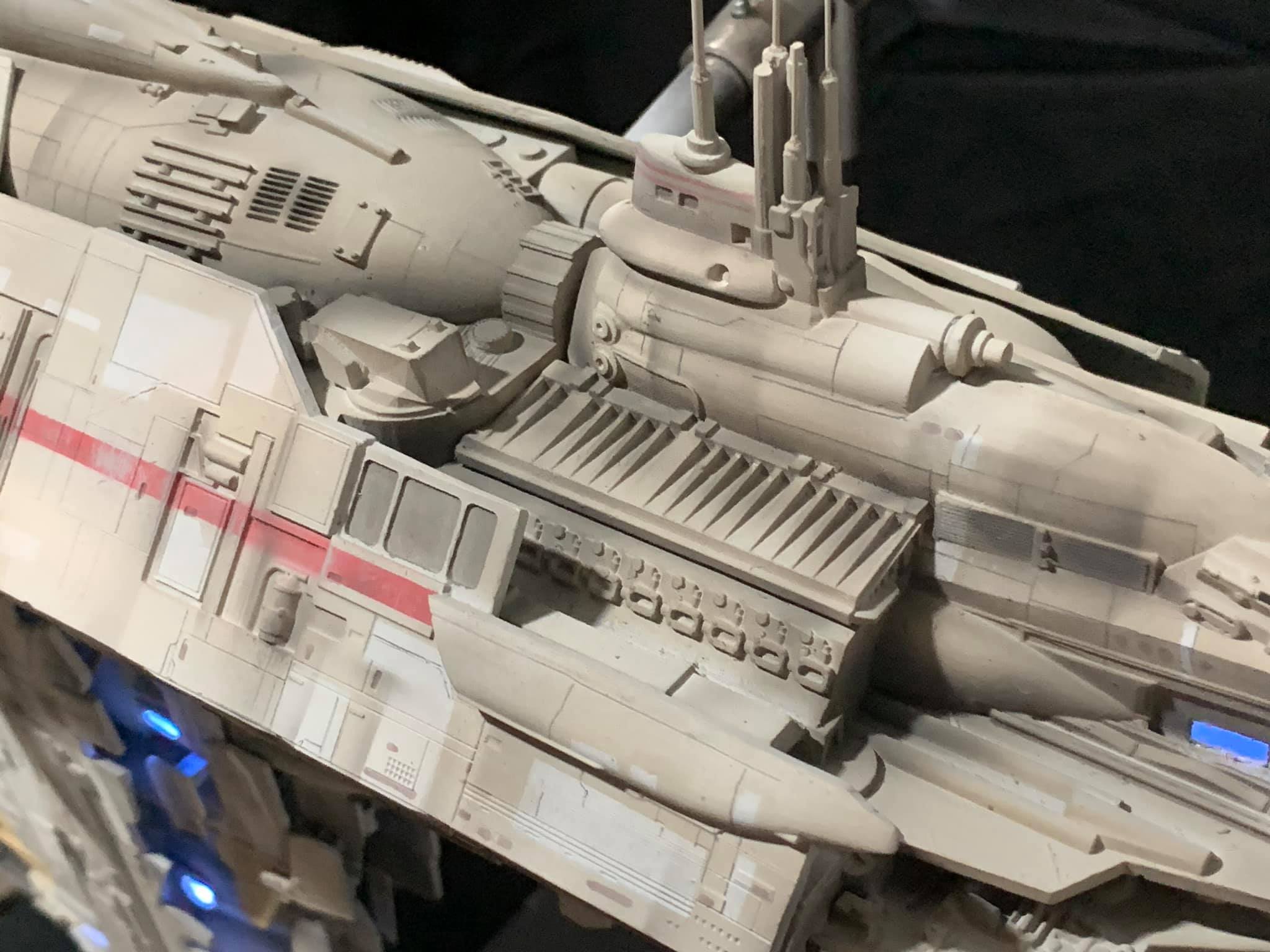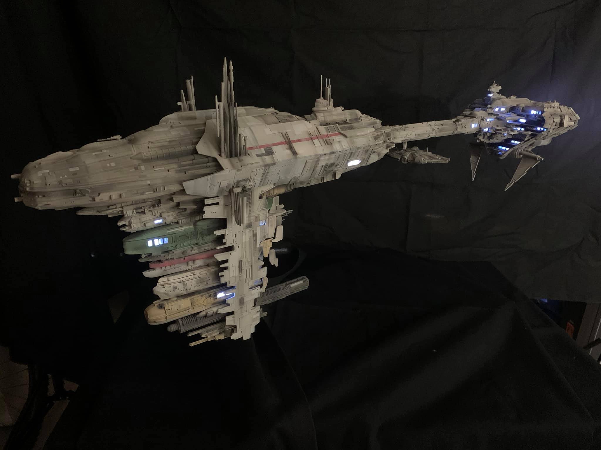 I present to you my latest creation, the 1: 350 scale Rebel Medical Frigate seen for the first time in the Empire Strikes Back. It is a model edited by jpg-productions and designed by Nicholas Sagan. I built, improved, lit and painted it with my usual “Archive-X” paints. You may view more images on my Facebook page: “The niko’s STAR WARS scale models” and on Instagram: “niko.scalemodels”.