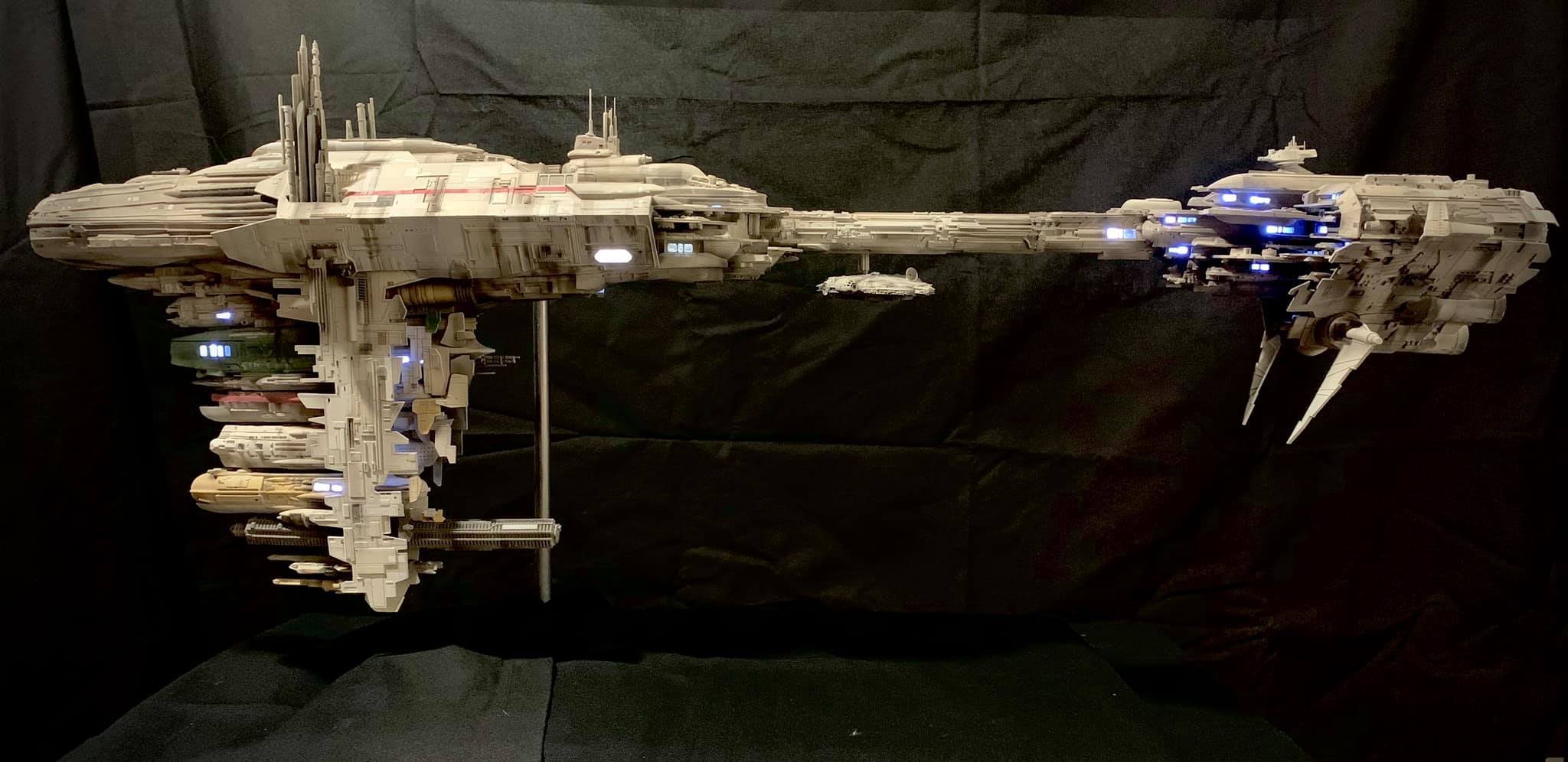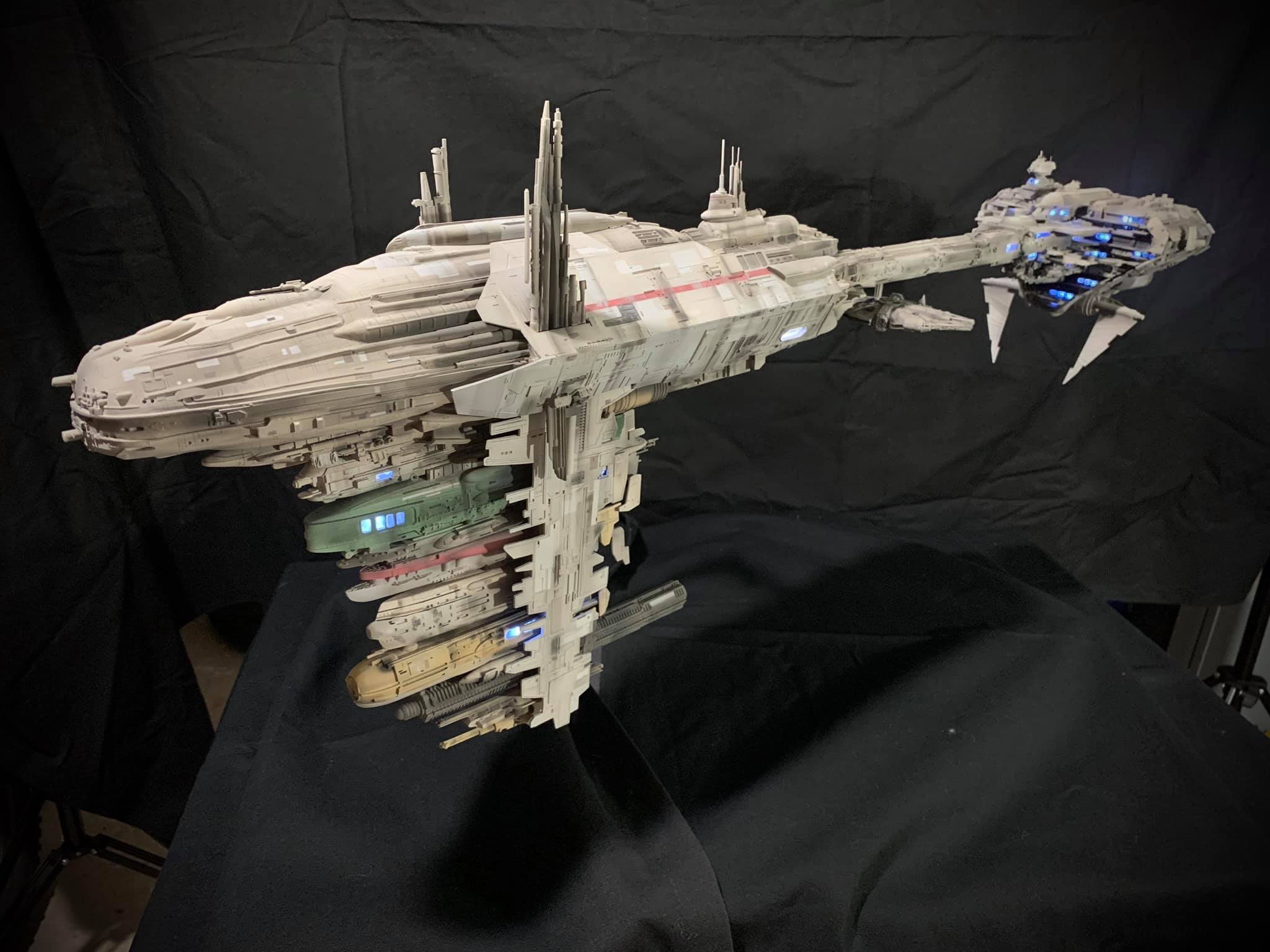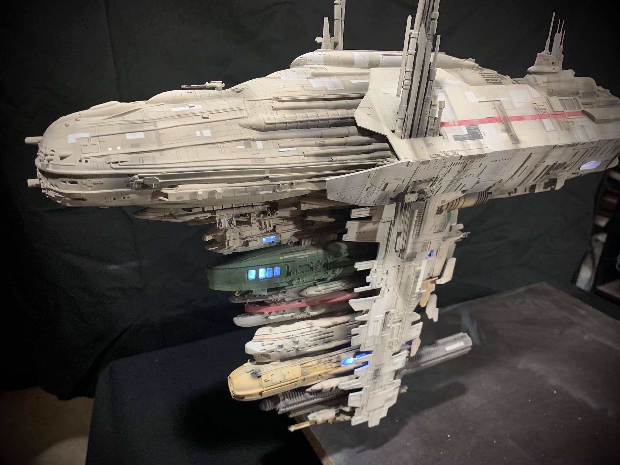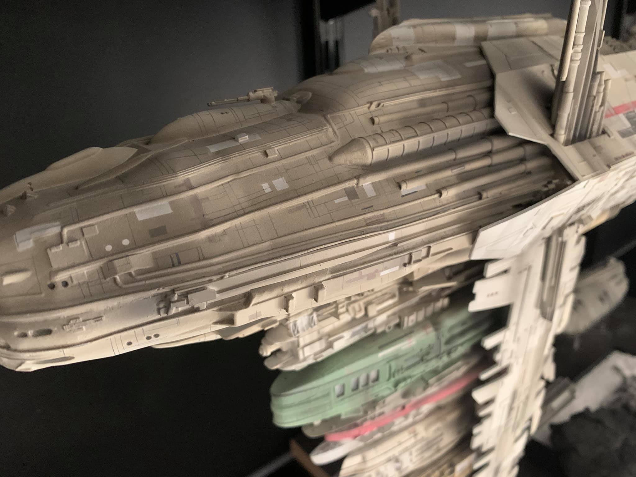 I present to you my latest creation, the 1: 350 scale Rebel Medical Frigate seen for the first time in the Empire Strikes Back. It is a model edited by jpg-productions and designed by Nicholas Sagan. I built, improved, lit and painted it with my usual “Archive-X” paints. You may view more images on my Facebook page: “The niko’s STAR WARS scale models” and on Instagram: “niko.scalemodels”.